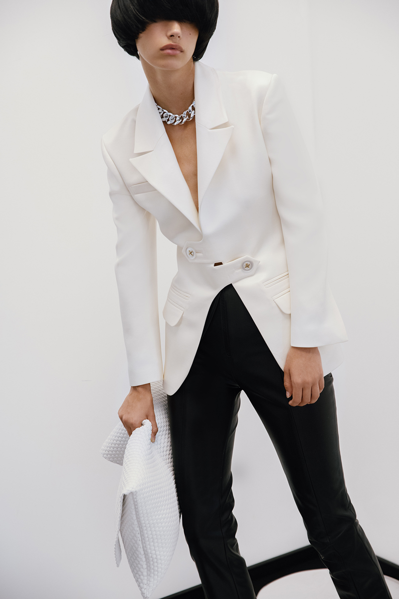 Дизайнер Лаша Мдинарадзе посвятил коллекцию морю, вдохновляясь его динамикой и графикой. Так, фирменную строгость жакетов он уравновесил волнообразными элементами, а контрастную черно-белую палитру разбавил оттенком морской лазури и летящими, воздушными тканями. "Во время карантина мне очень не хватало моря рядом, – рассказывает Лаша Мдинарадзе. – В моей голове оно соседствовало с урбанистическими пейзажами, которые окружали меня в тот момент, благодаря чему графичные линии Gudu соединились с флюидностью, которую нам дарит вода".