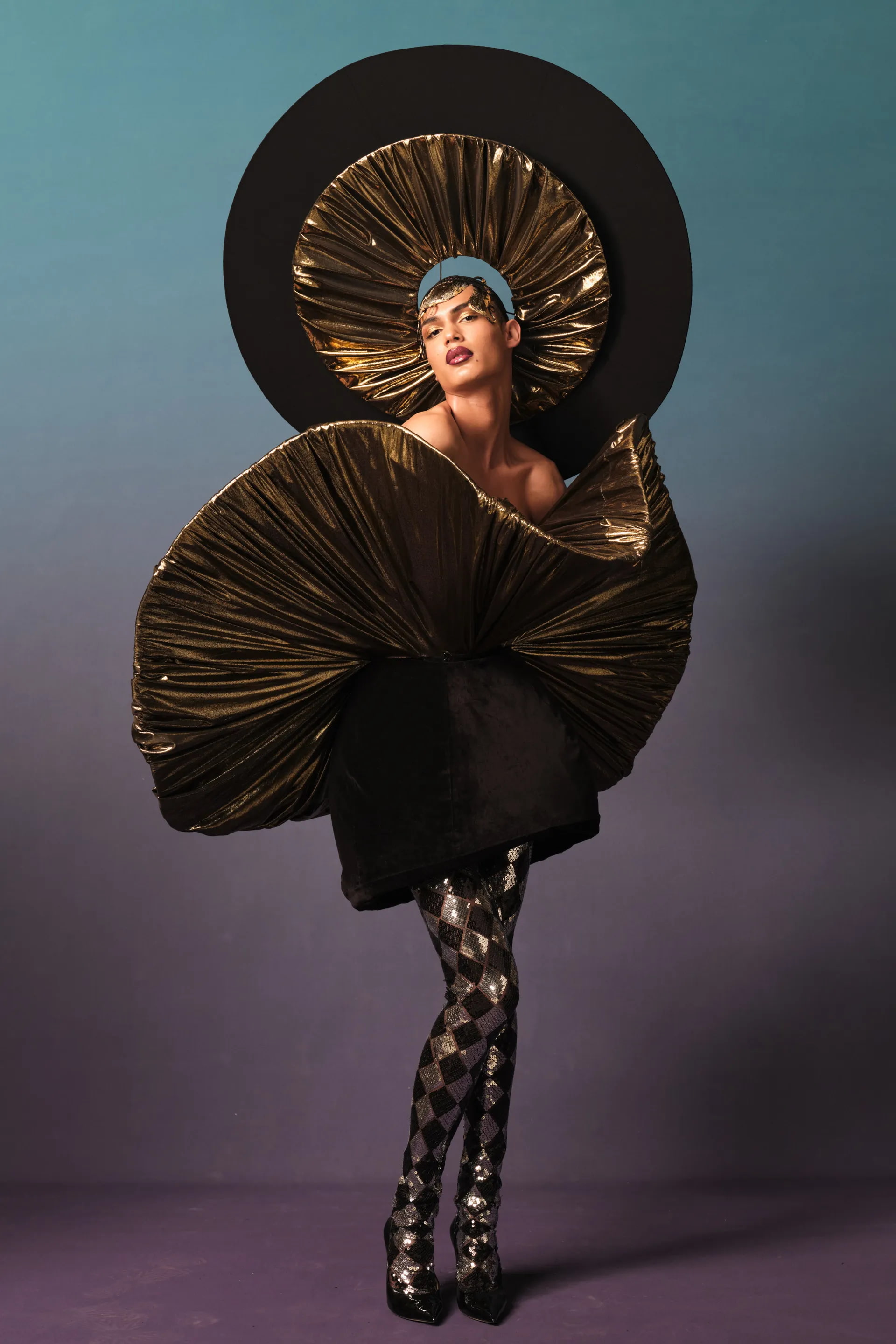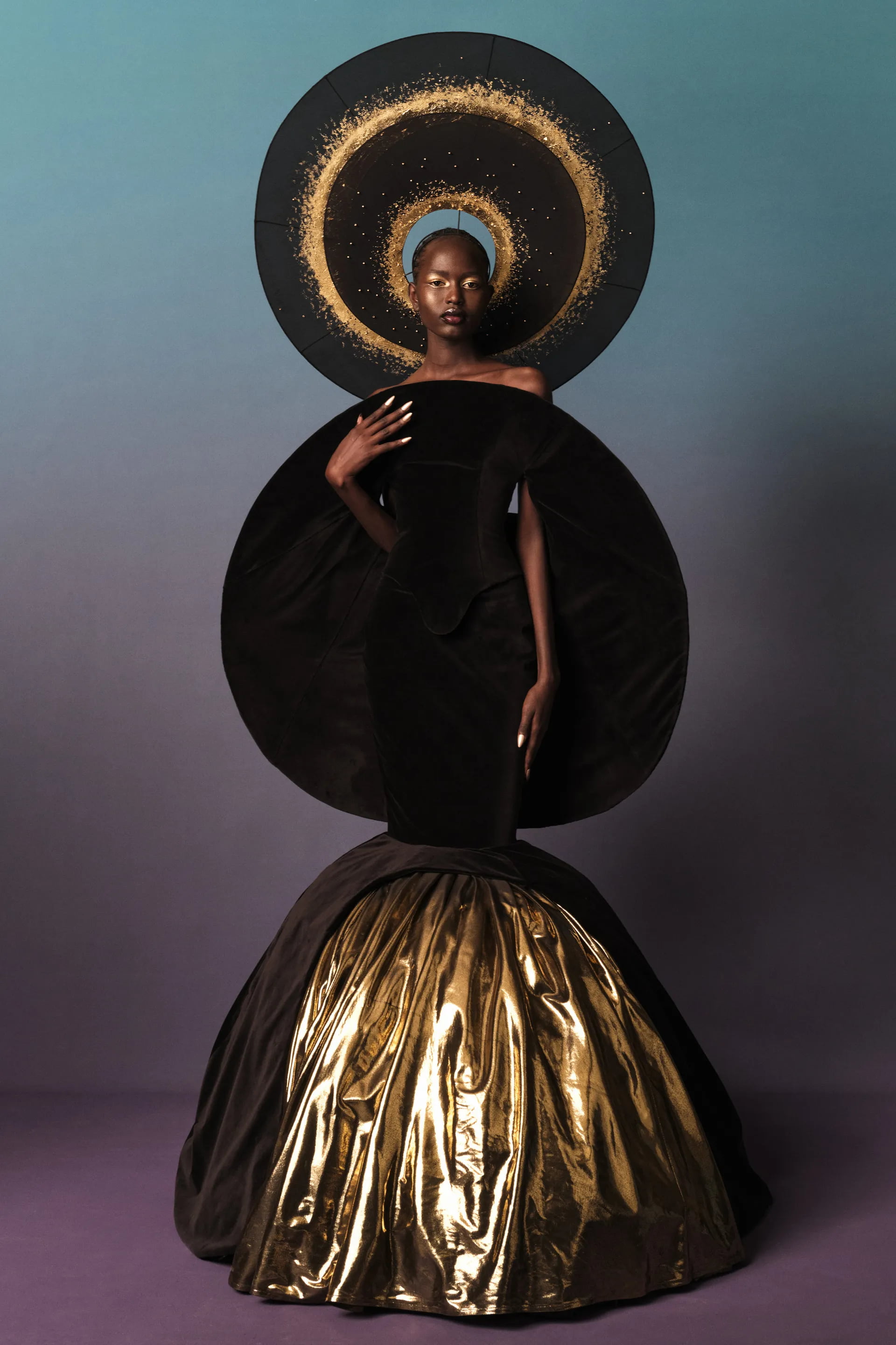Сукні з об’ємними бустьє, фактурні головні убори, фіштейл юбки — усе це як ода до кутюру через призму скульптурності кожного окремого образу. Та, безумовно, як втілений життя референс “королев краси” з їхньою яскравістю і впевненістю в собі.