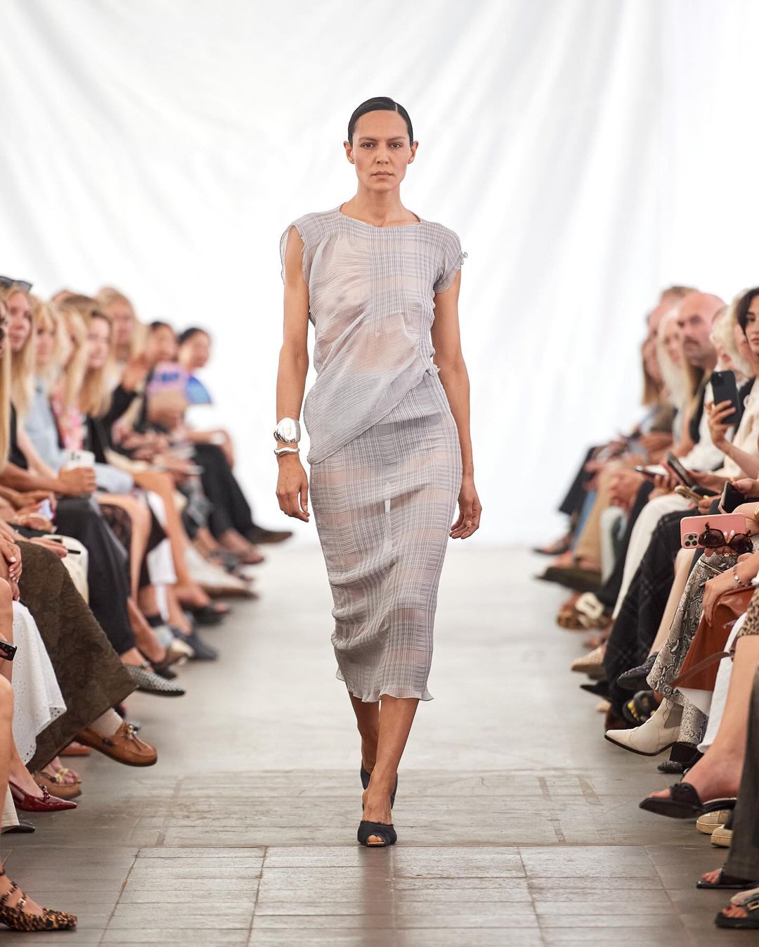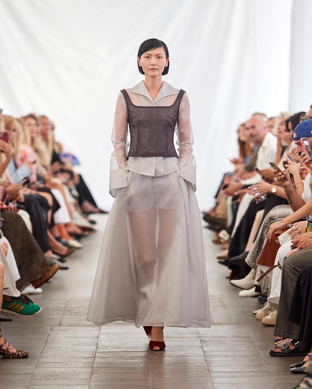 У межах презентації J'amemme представили скульптурні, нестандартні силуети й асиметричні сукні, що створені з напівпрозорих і легких матеріалів. А також — містять фірмове плісе бренду. Натхненням для колекції стали загадкові медузи, що наповнили колекцію ефемерними формами й делікатними торочками.