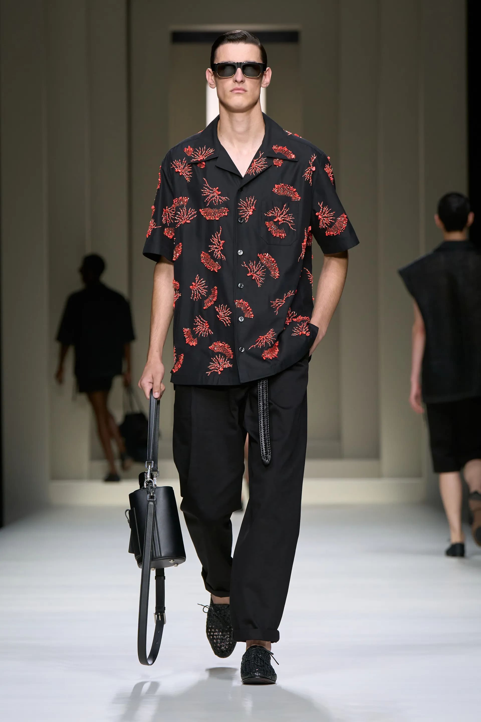 «Ця колекція розповідає про зустрічі між містом і пляжем, а також людьми, які люблять життя», — зазначив Себато де Сарно. «Зрештою, це про свободу. Я сподіваюся, що в моєму одязі людьми почуватимуться вільно та гостинно». У другій чоловічій колекції дизайнера для Gucci простежувалися життєствердність, легкість, і, звісно, вкладене натхнення способом життя, що поєднує міську культуру й пляжну. Вони втілилися в барвистих кольорах, принтах із серферами, дельфінами, квітами гібіскусів, листям банана, спокусливих сітчастих сорочках поло, шкіряних топах і шортах та піджаках з бісерними торочками.