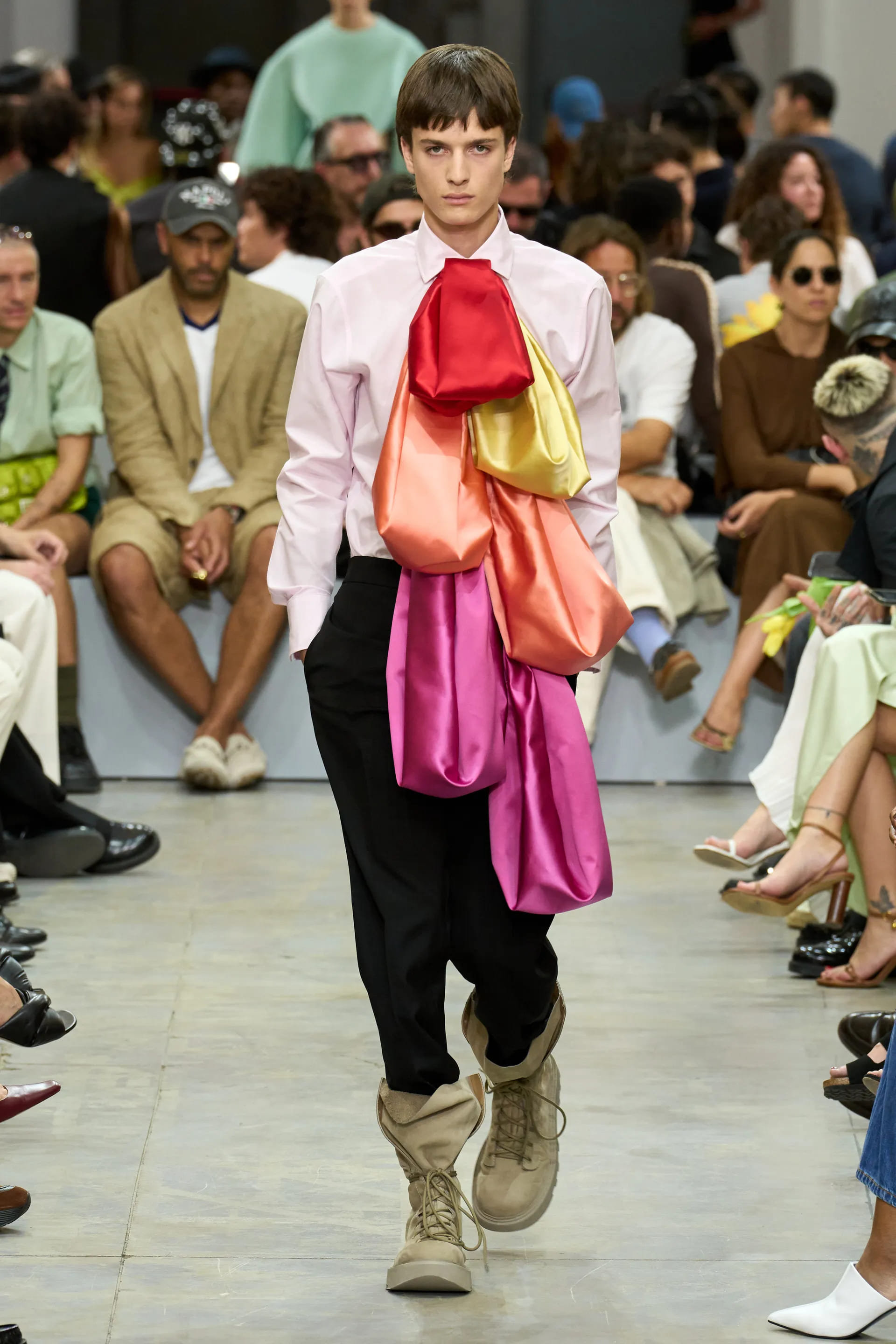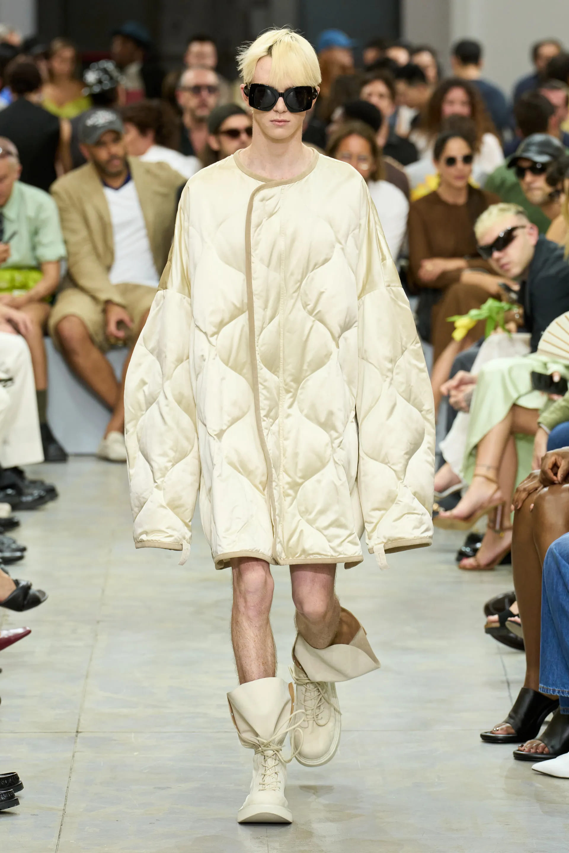 Ірраціональність — саме вона стана лейтмотивом нової колекції J.W Anderson, що об’єднала чоловічий і курортний одяг. Креативний директор бренду Джонатан Андерсон продовжив експериментувати зі звичайним одягом і тим, наскільки незвичайним він може стати. Джинсові жилети й краватка були збільшені до невластивих їм розмірів, великі кольорові «подушечки» виринули на светрах, інтерпретація жабо набула форми масивних драпірованих згортків, схожих на шатро, що виринали з-під пальта або сорочки. Водночас ноту іронії цьому ірраціональному параду додав напис Real Sleep («Справжній сон») на чорному джемпері.