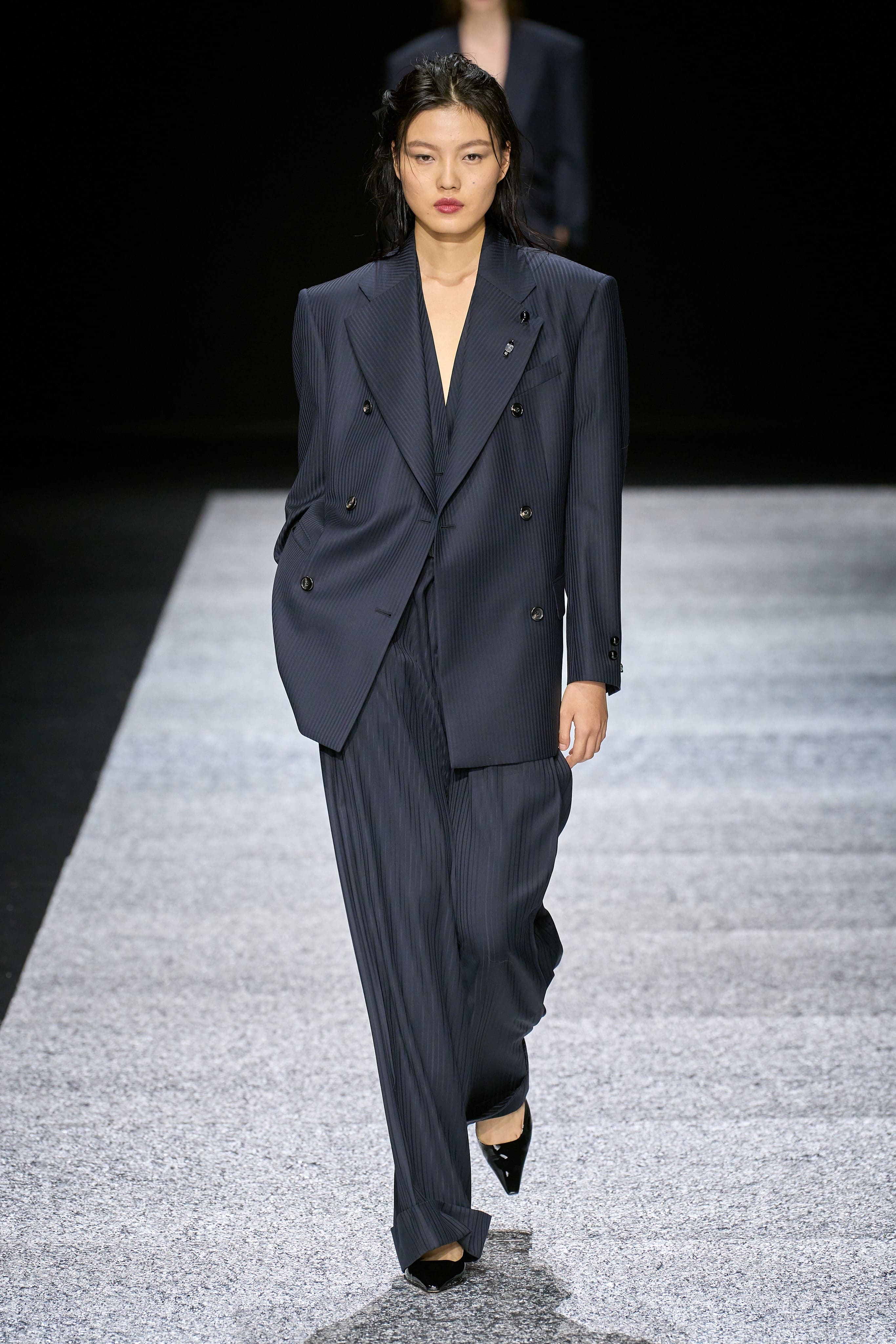 Як тільки маяк освітив простір навколо, імпровізованим морським берегом задефілювали моделі. Настрій колекції – ода морякам, юнгам, інженерам й офіцерам – виник після глибоких роздумів Джорджо Армані щодо стрімкого моря взимку і тих викликів, що воно приносить морякам. Лінійка одягу пронизана деталями морської уніформи: характерні капелюхи, смугасті сорочки, довгі рукавиці, масивні чоботи та штани фасону галіфе. Кульмінацією колекції стала серія рясно прикрашених коштовностями накидок та суконь.