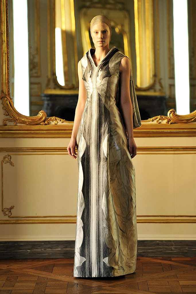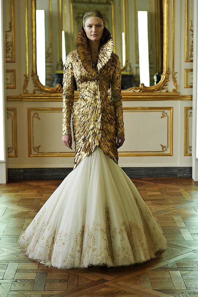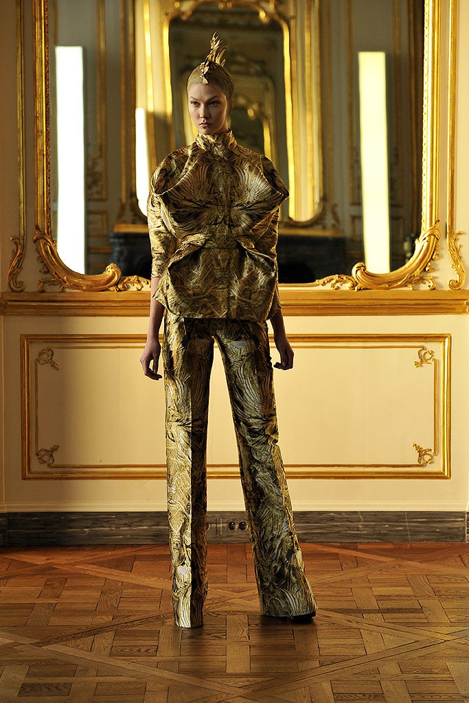 Модельер переводил в жаккардовые принты лики высших ангелов и демонов Иеронима Босха с помощью цифровой печати, вдохновлялся иконописью, образами Мадонны и византийскими императрицами. Отсюда роскошные кейпы, ультрасилуэтные платья с золотой вышивкой и обернутые плотными полосами ткани головы моделей. 16 образов, ставших последними творениями модельера, были пронизаны ностальгией по бунтарской молодости Алекса, отсылками к его знаковым коллекциям Asylum и Icarus. Пальто, похожее на золотое оперение, напоминало о первых шагах Маккуина в мире высокой моды и стало культовой вещью, которую последующие несколько лет можно было увидеть в главных модных съемках.