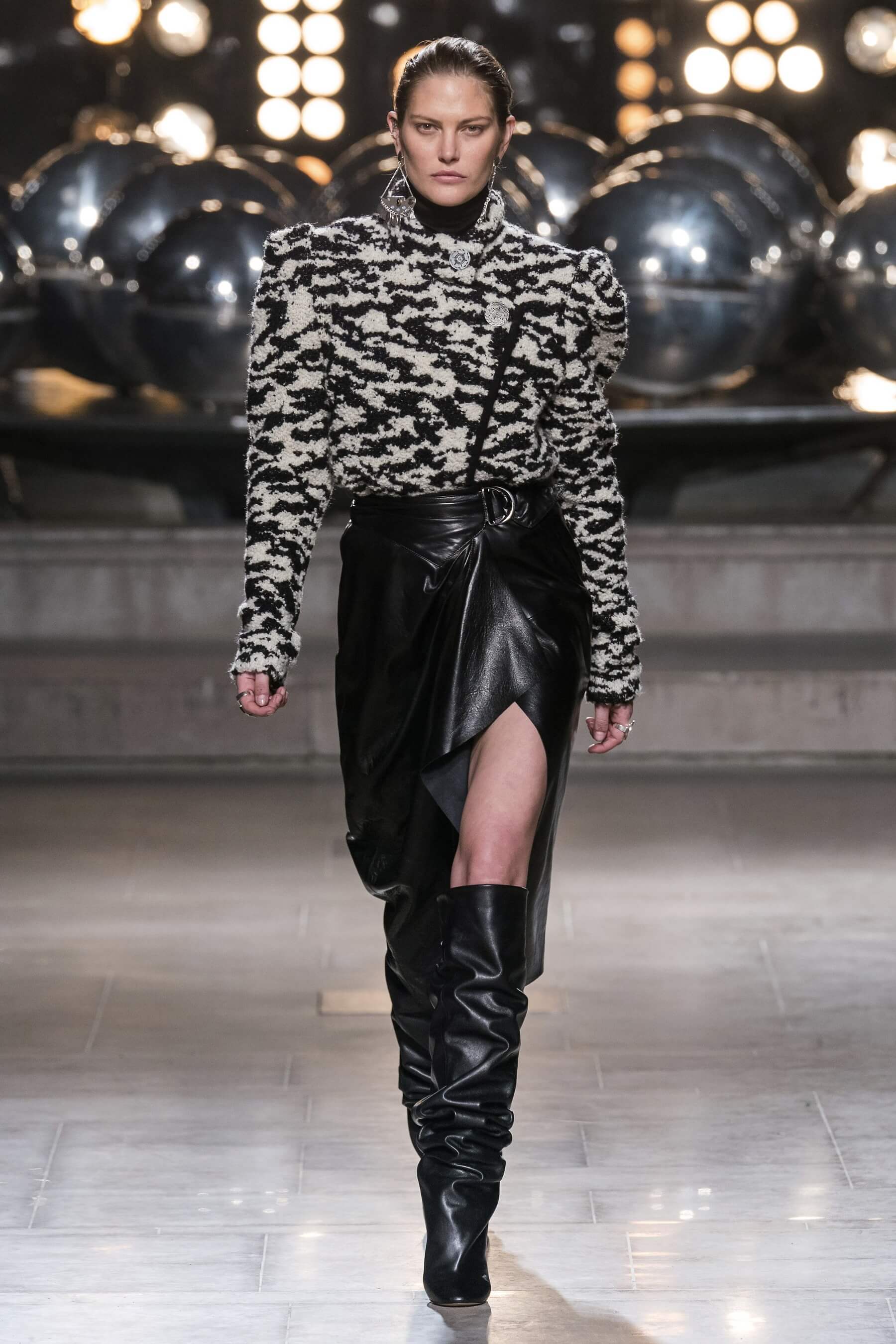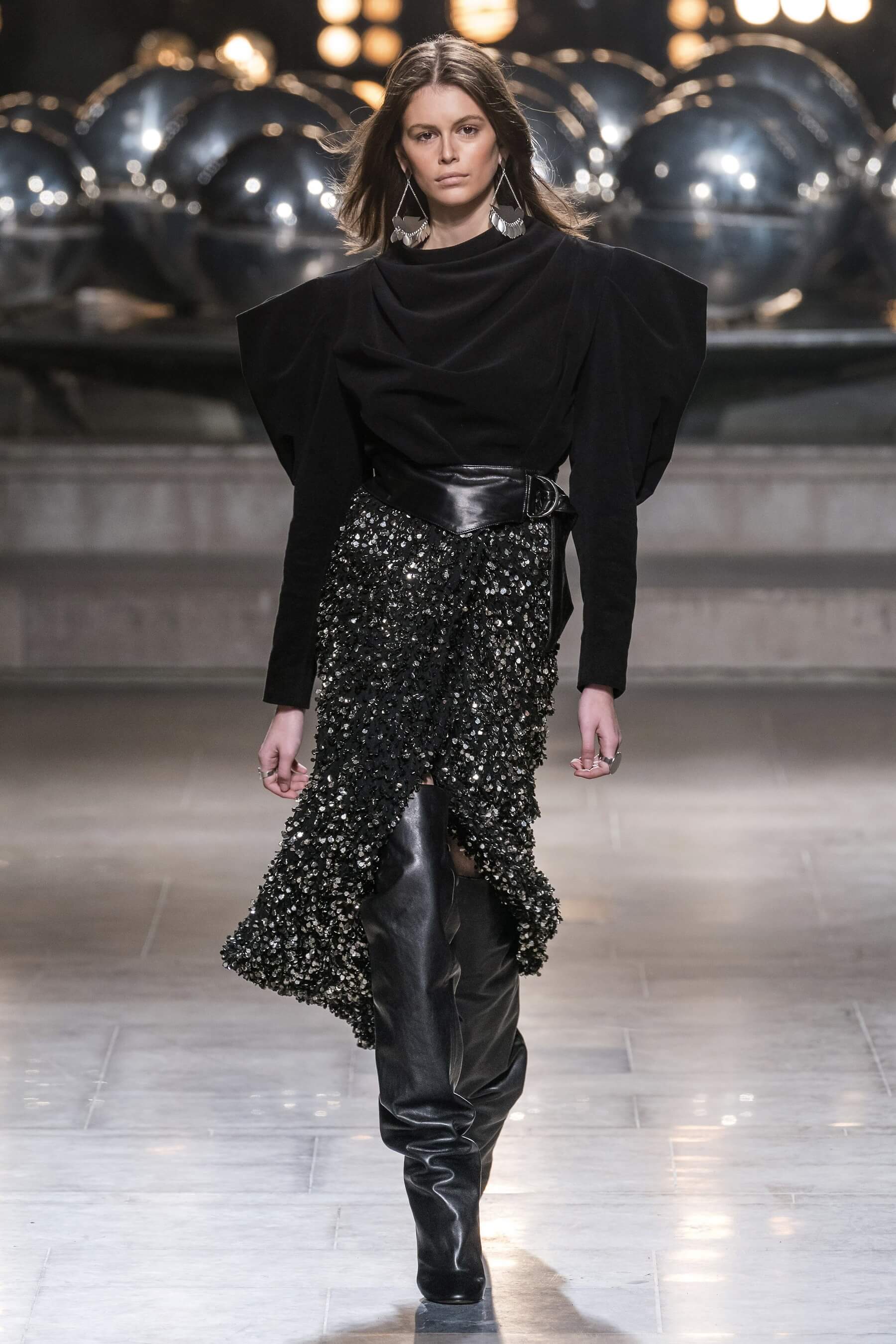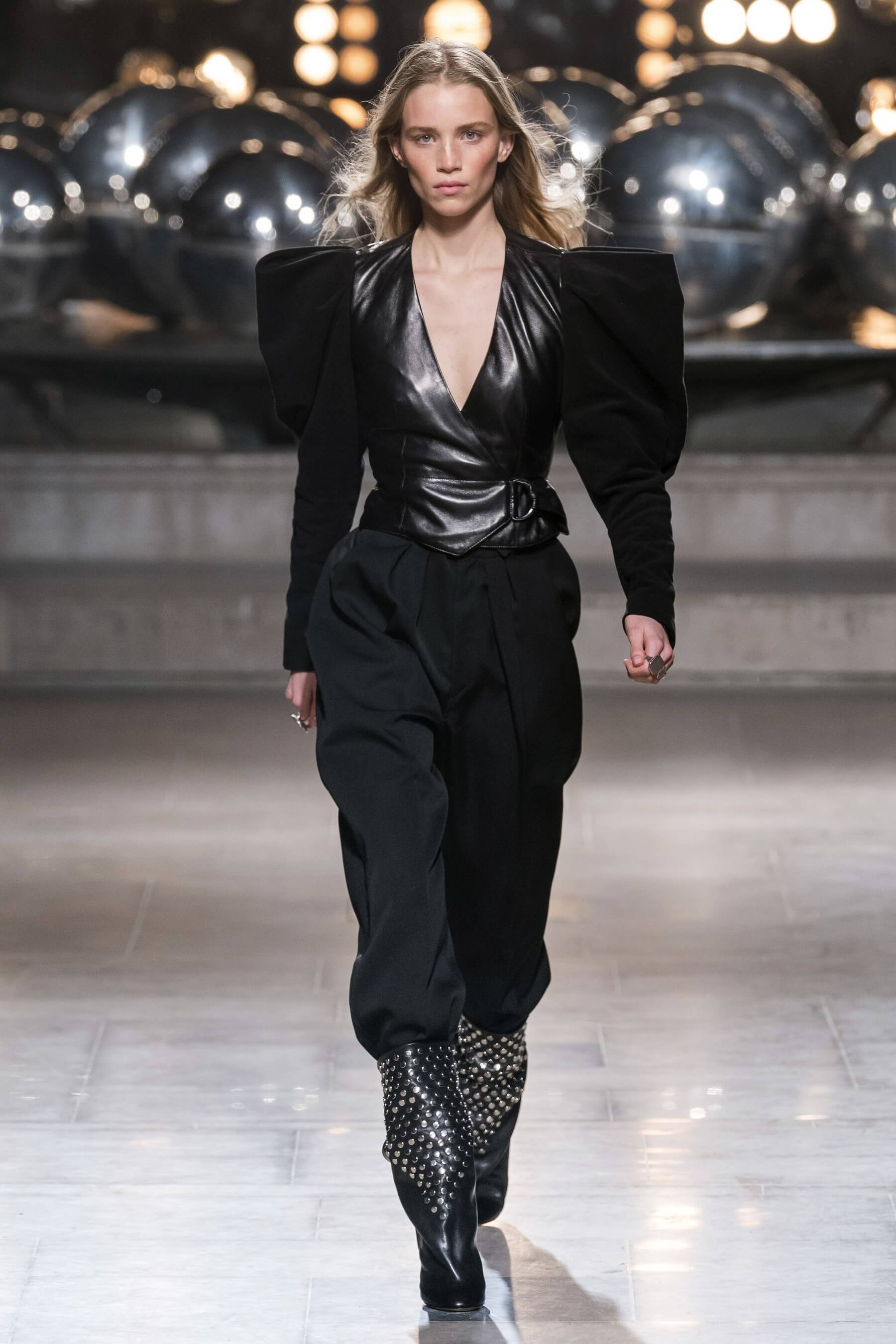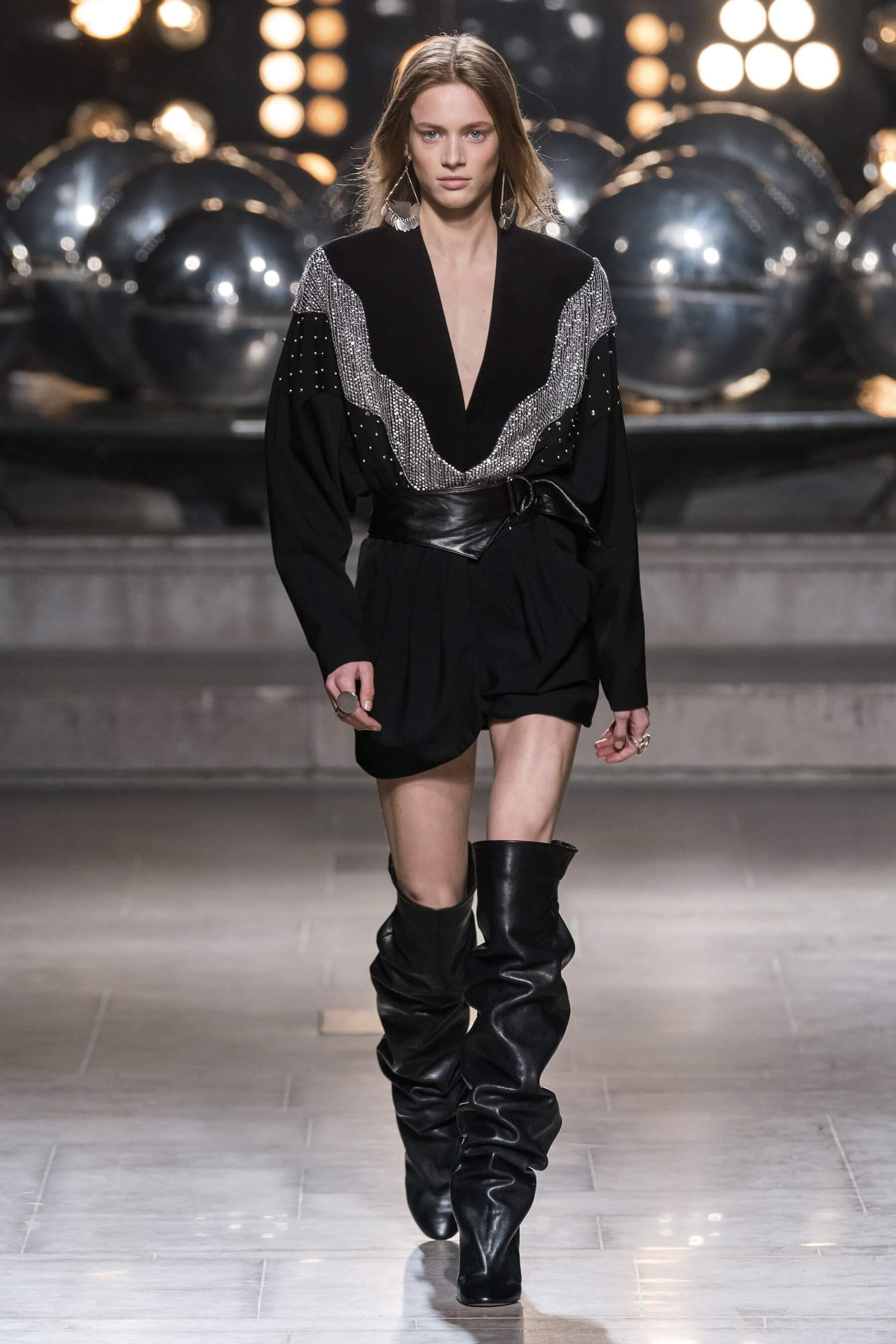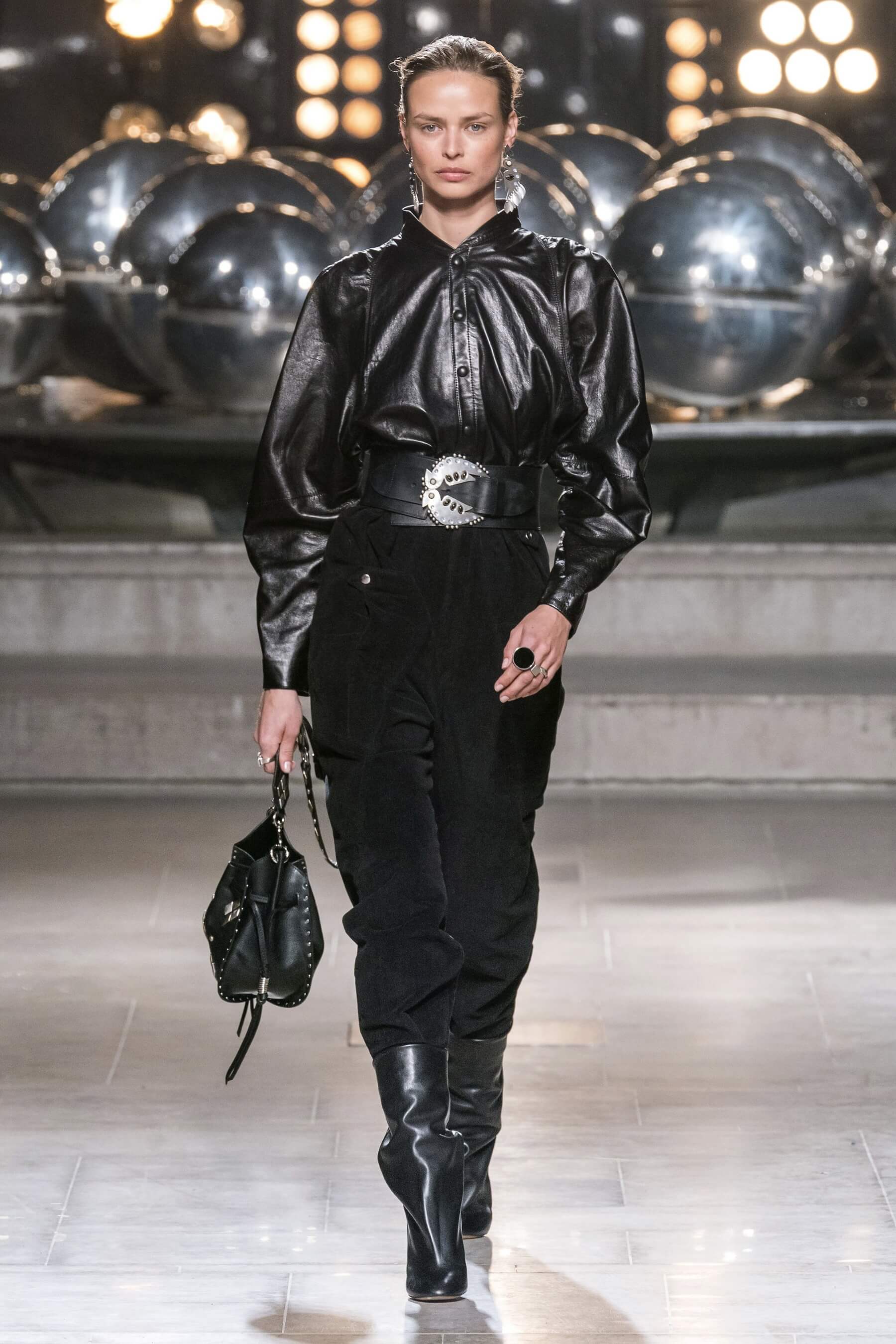 В коллекции также есть намёки на эстетику Дикого Запада - закрытые блузы с рюшами и силуэтные юбки выглядят сдержанно и сексуально одновременно. Массивные дубленки, жакеты с широкими плечами и гламурные платья дополнены широкими кожаными поясами с резными металлическими пряжками и удобными "дорожными" сумками.
