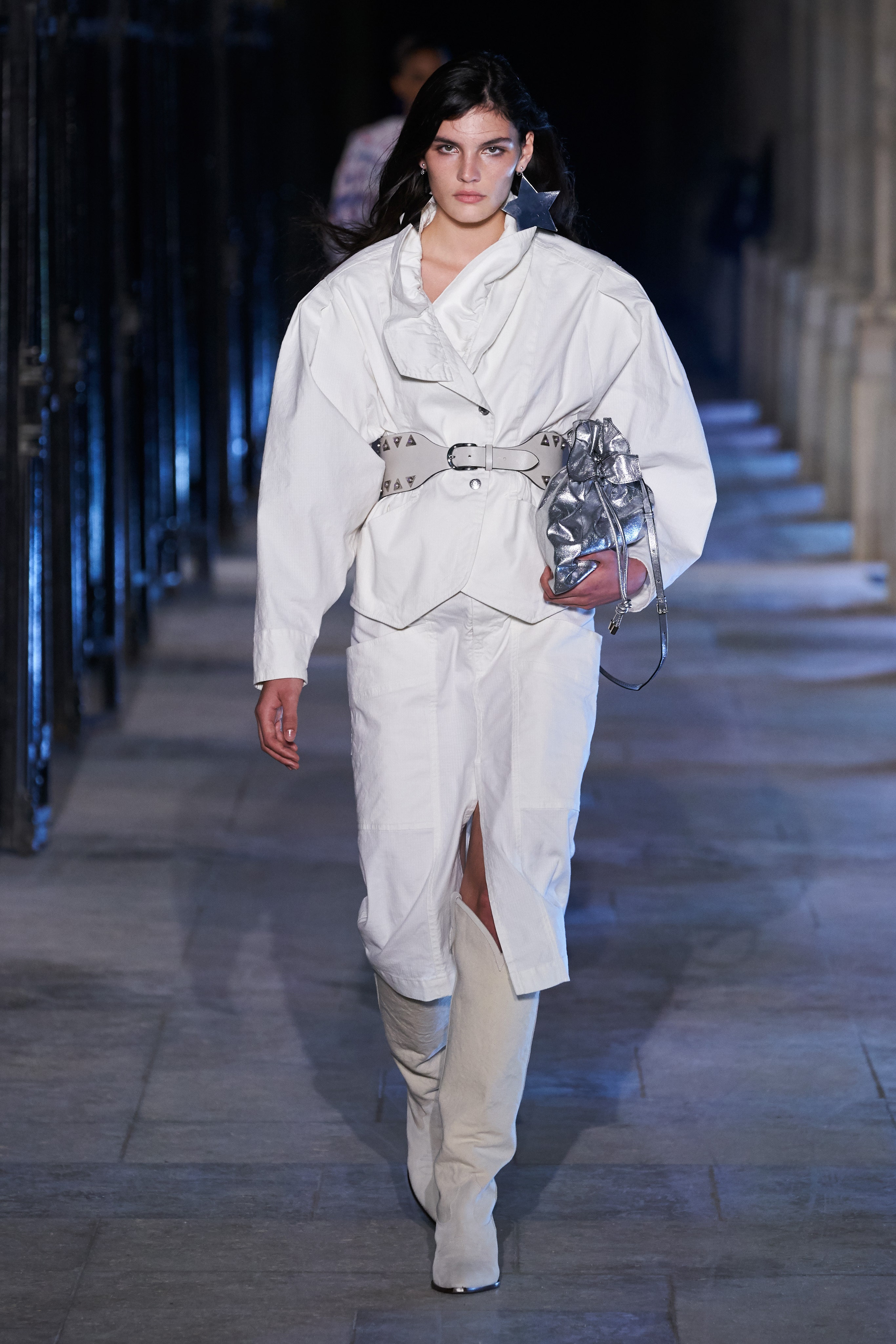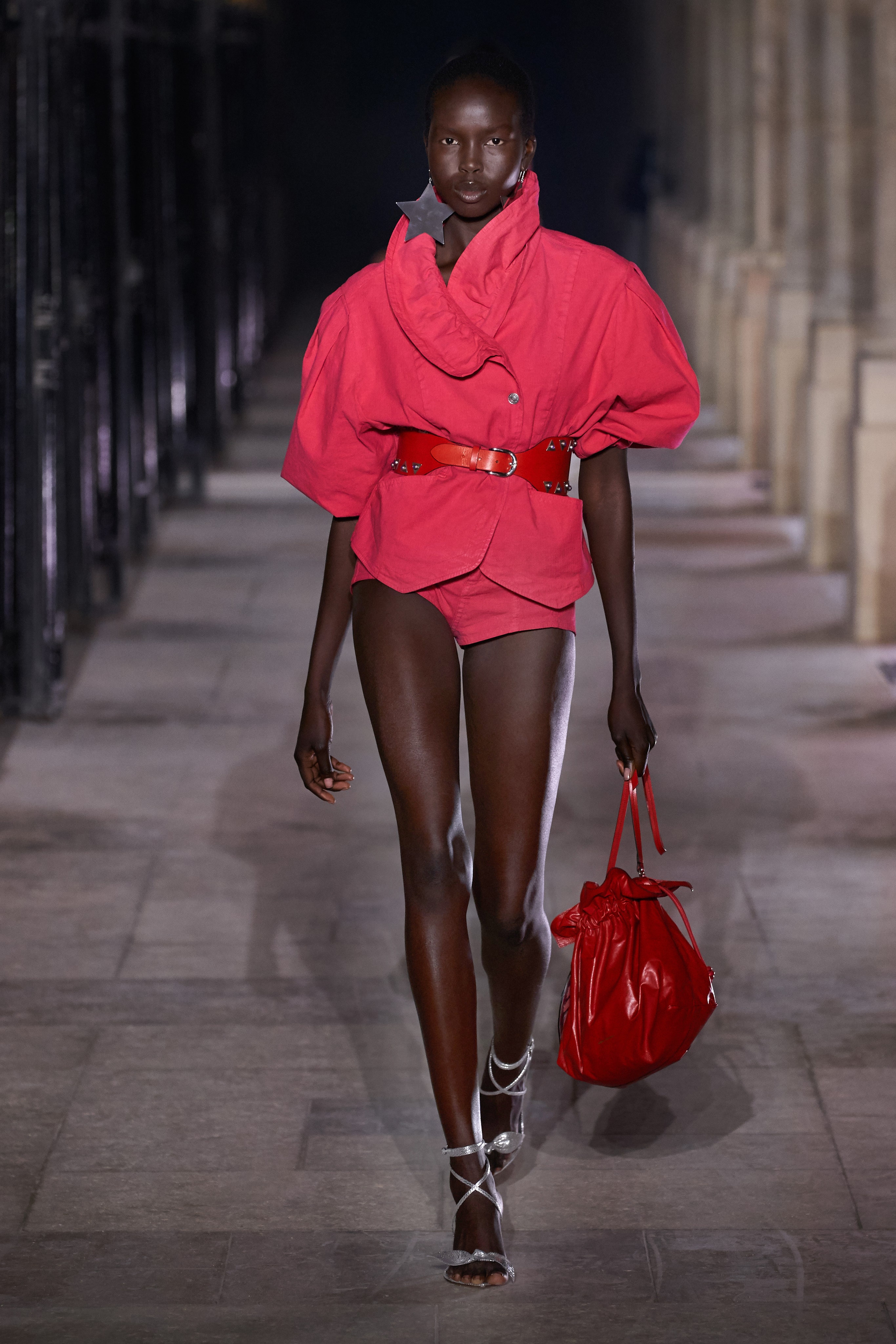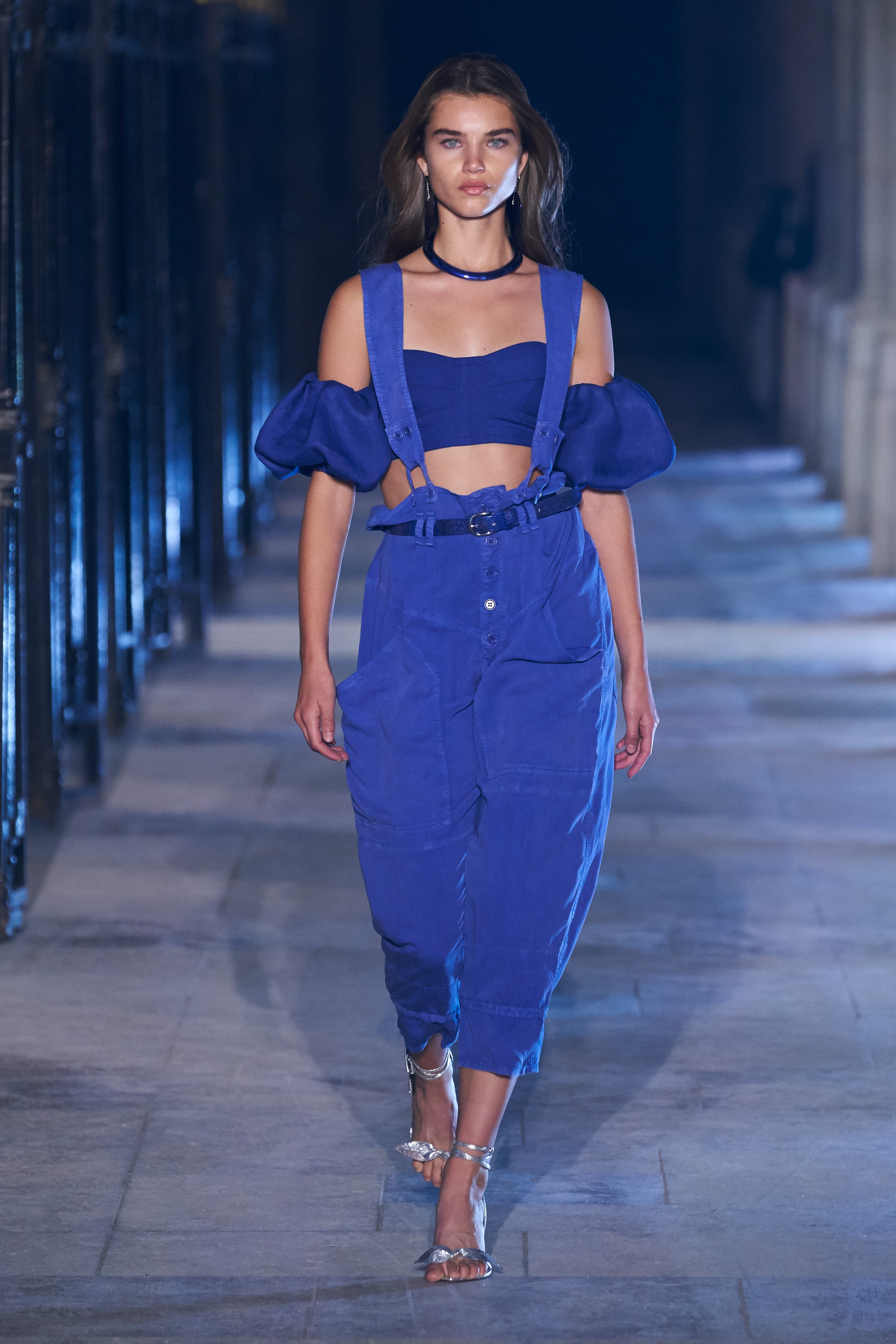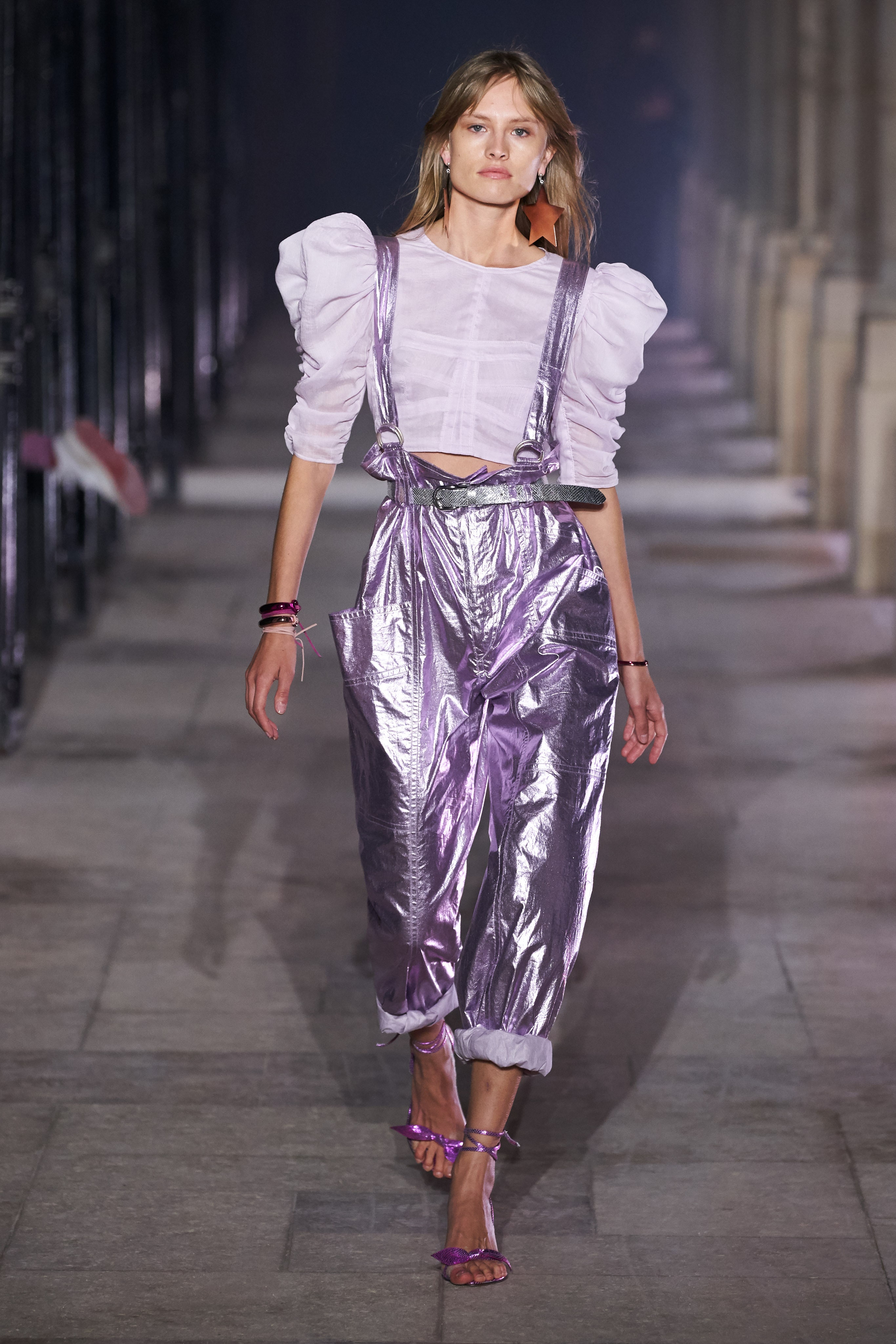 Еще неделю назад Изабель Маран совсем не хотела проводить показ. Однако прошедшей ночью у неё получилась настоящая клубная вечеринка, какой она могла бы быть после долгих месяцев самоизоляции. Саундтреком к показу стал техно-ремикс песни Донны Саммер I Feell Love, которая также звучала днем ранее в шоу Рика Оуэнса.