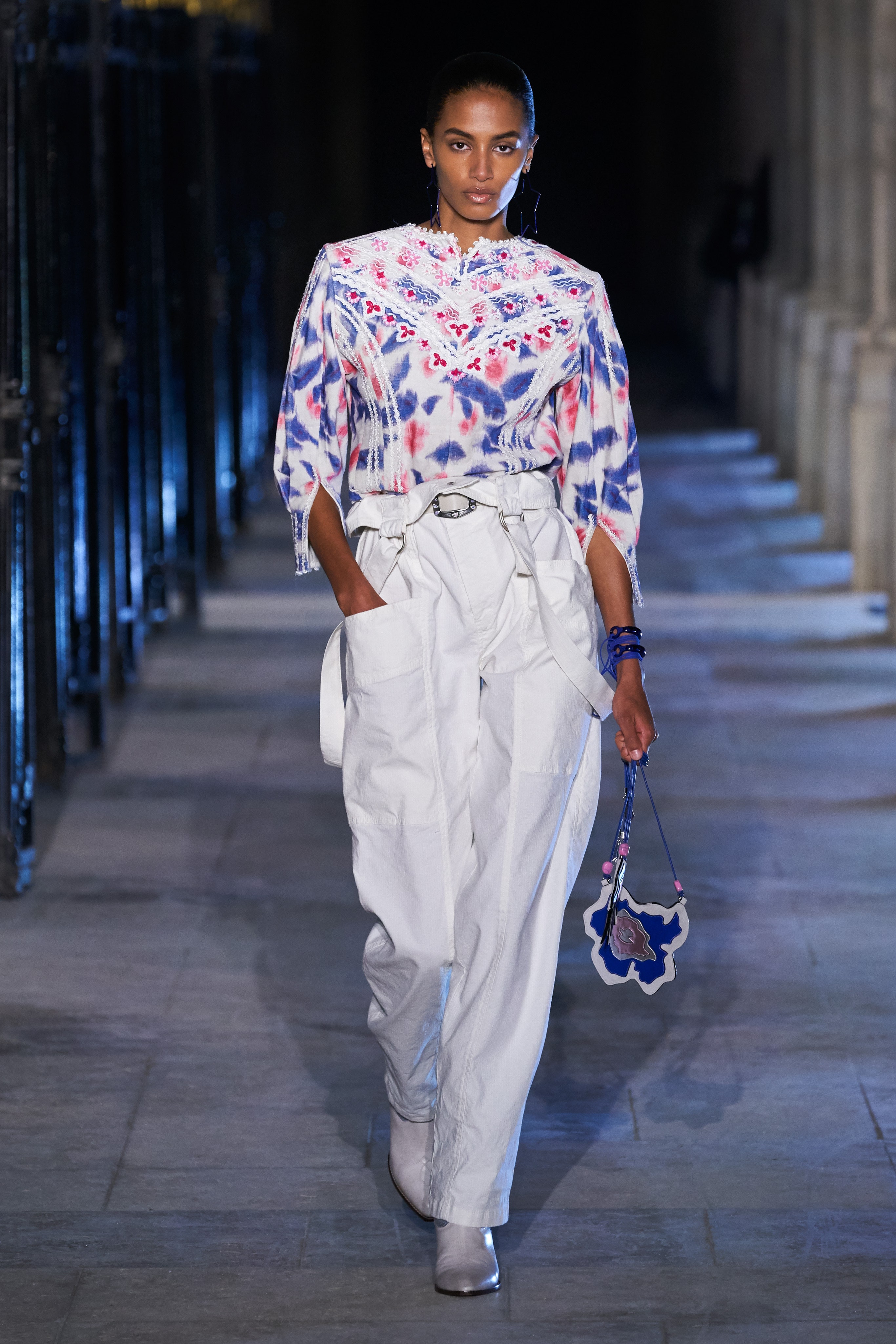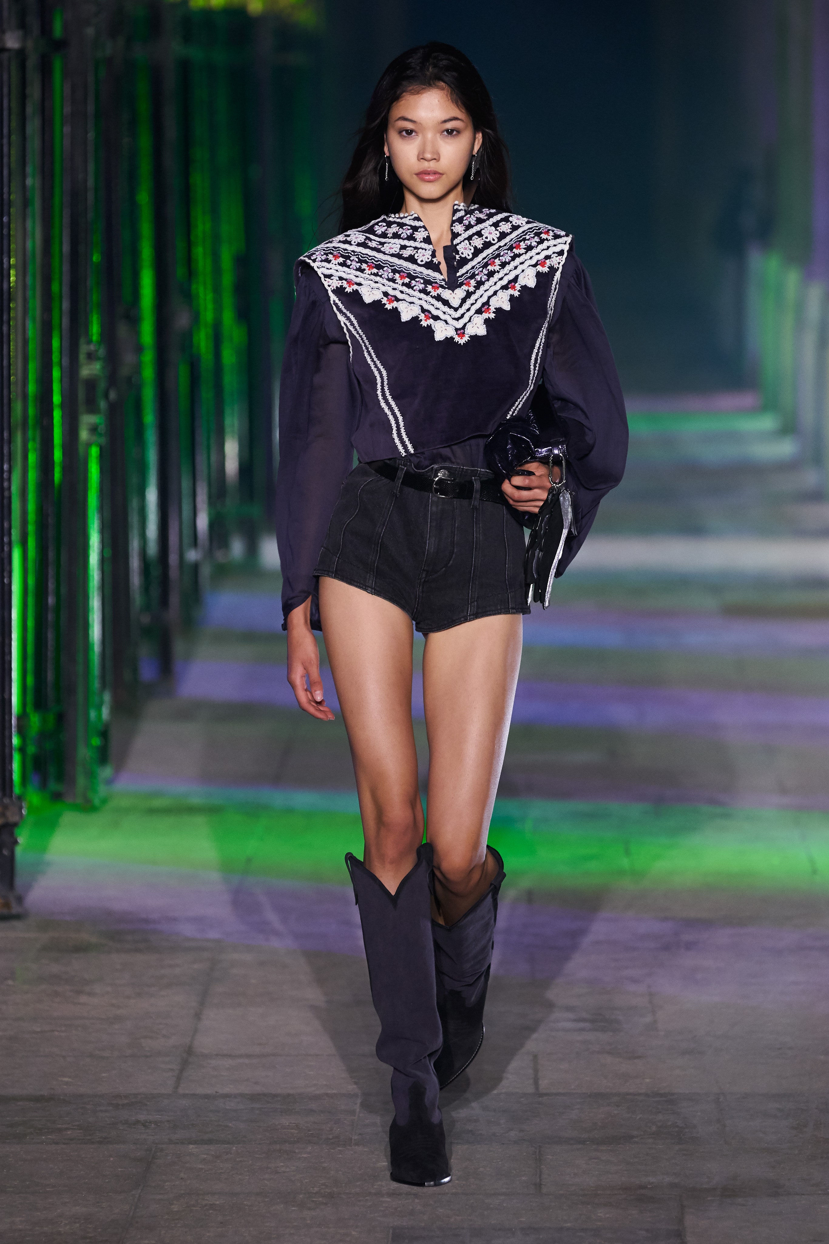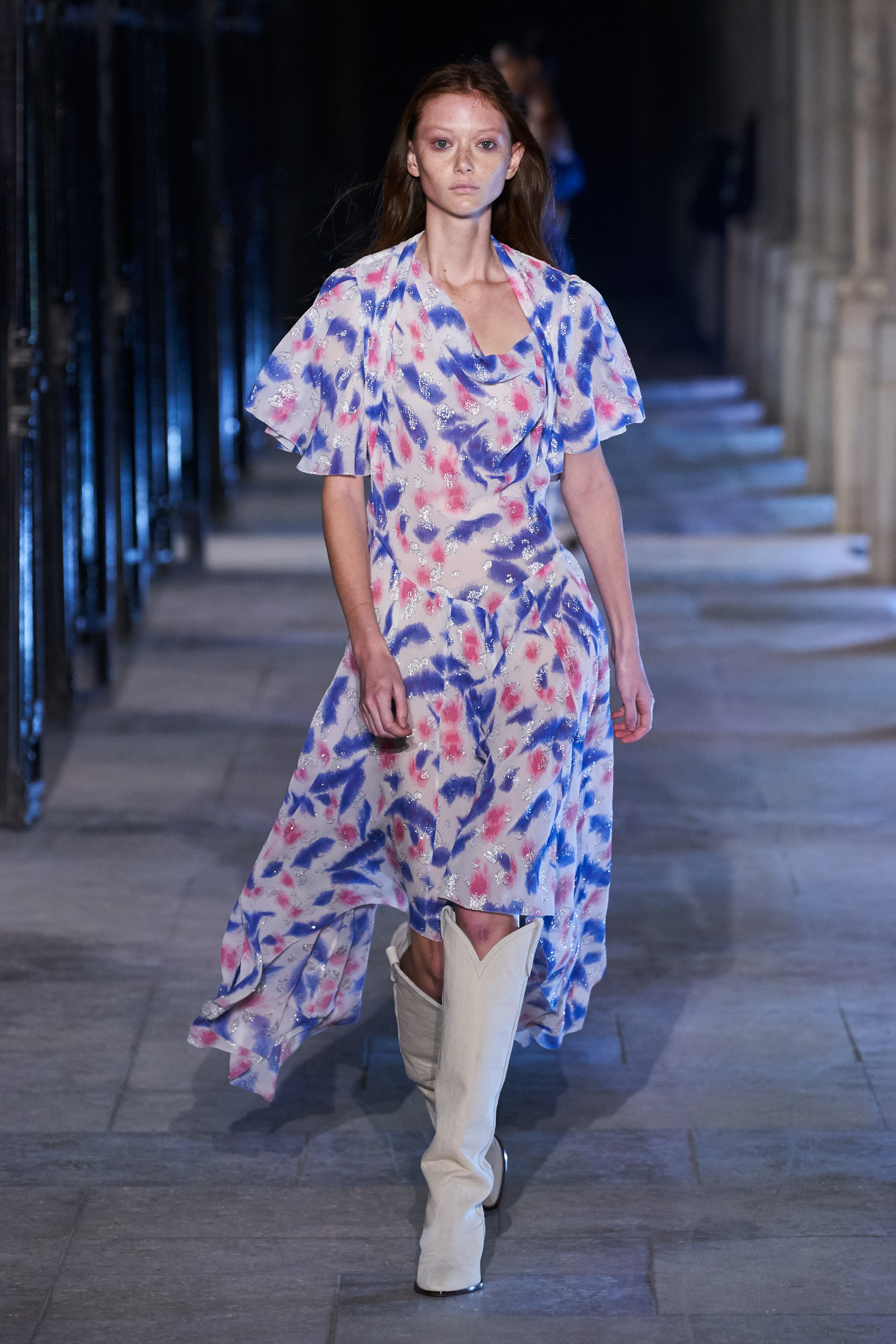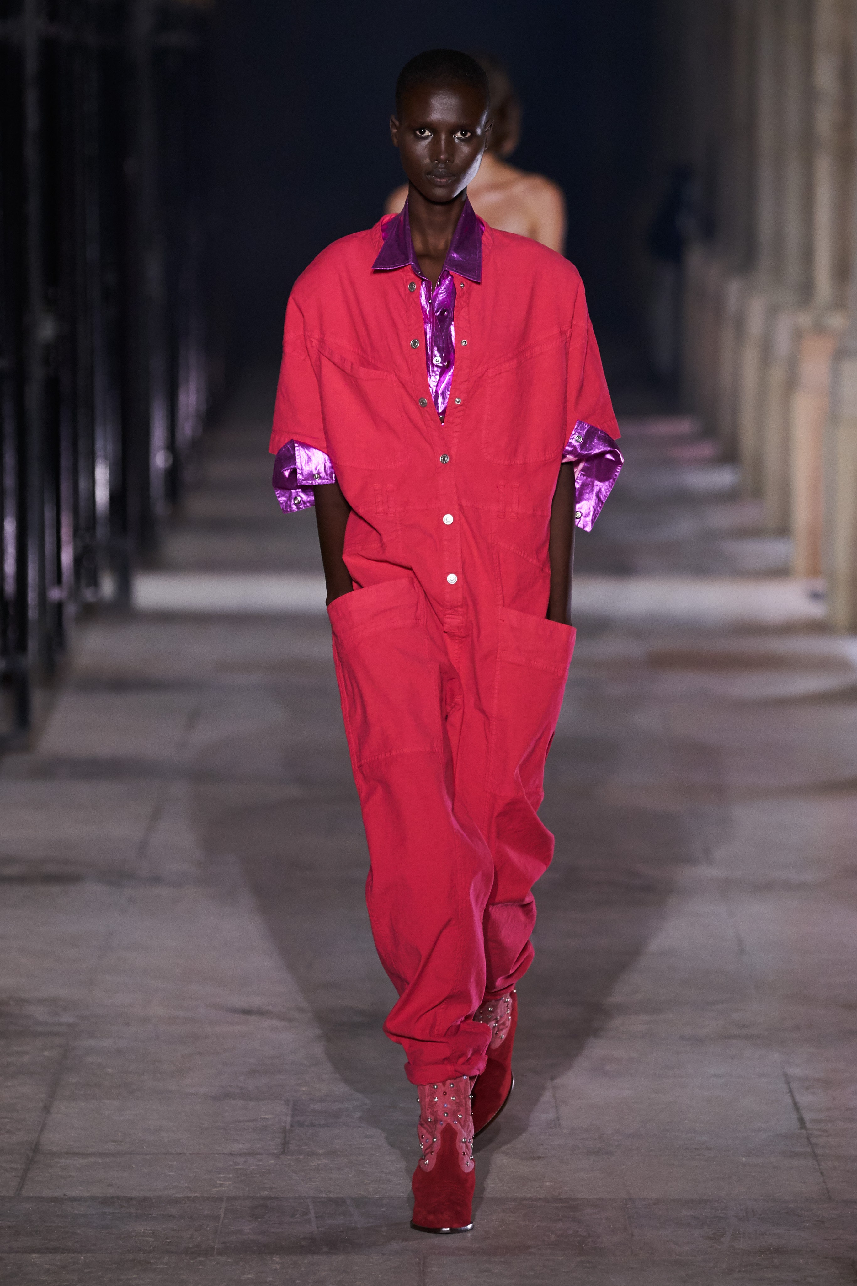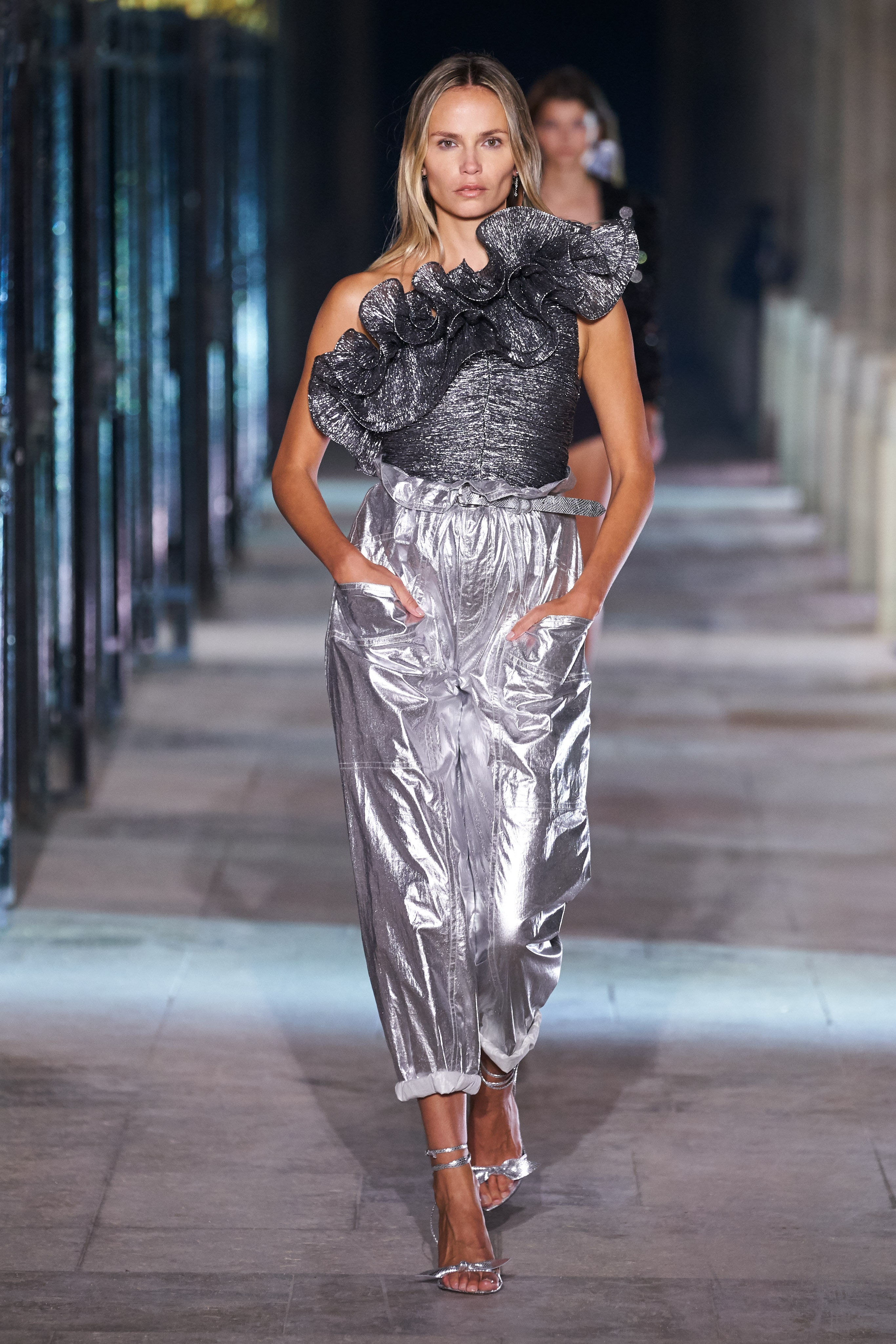 Еще неделю назад Изабель Маран совсем не хотела проводить показ. Однако прошедшей ночью у неё получилась настоящая клубная вечеринка, какой она могла бы быть после долгих месяцев самоизоляции. Саундтреком к показу стал техно-ремикс песни Донны Саммер I Feell Love, которая также звучала днем ранее в шоу Рика Оуэнса.