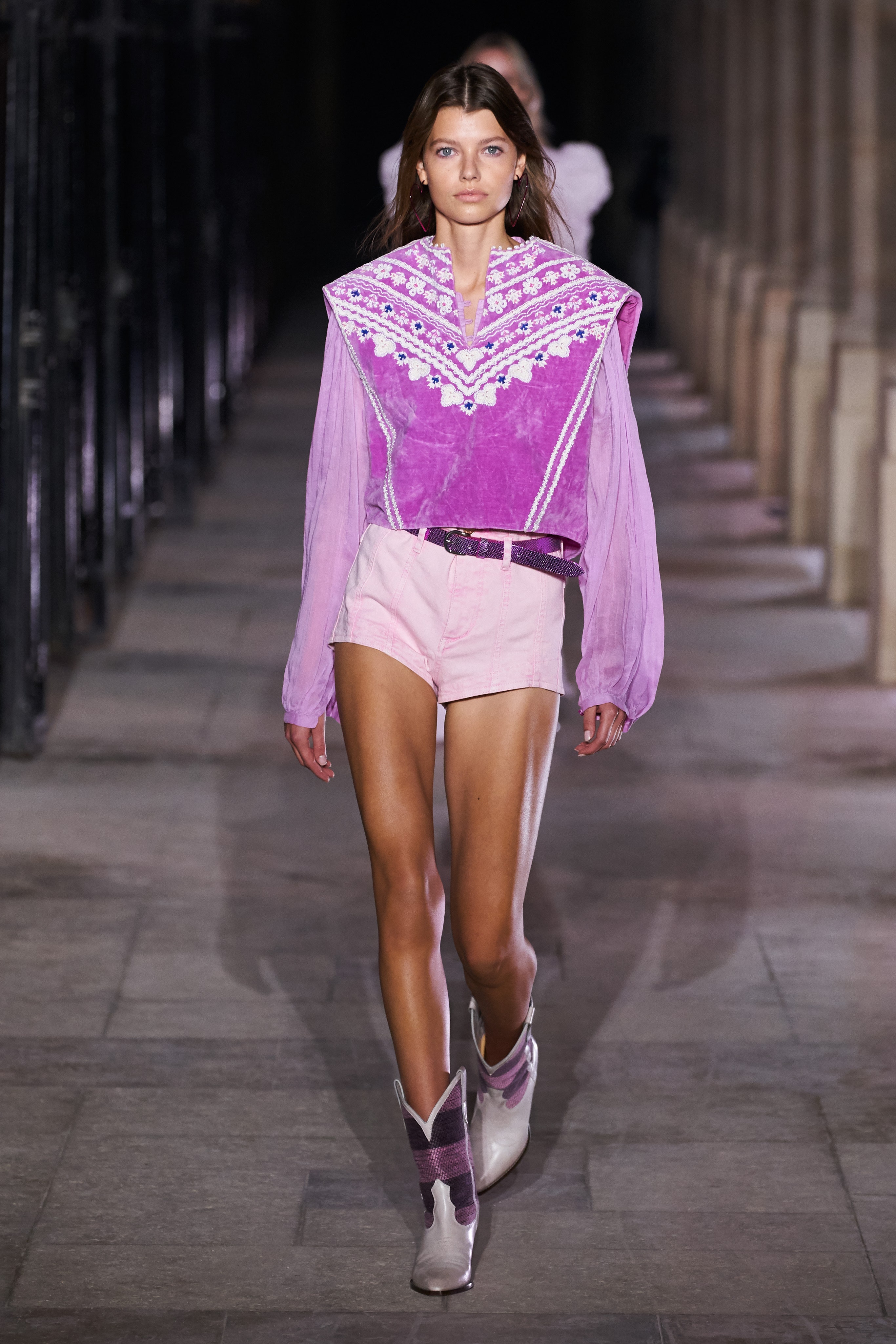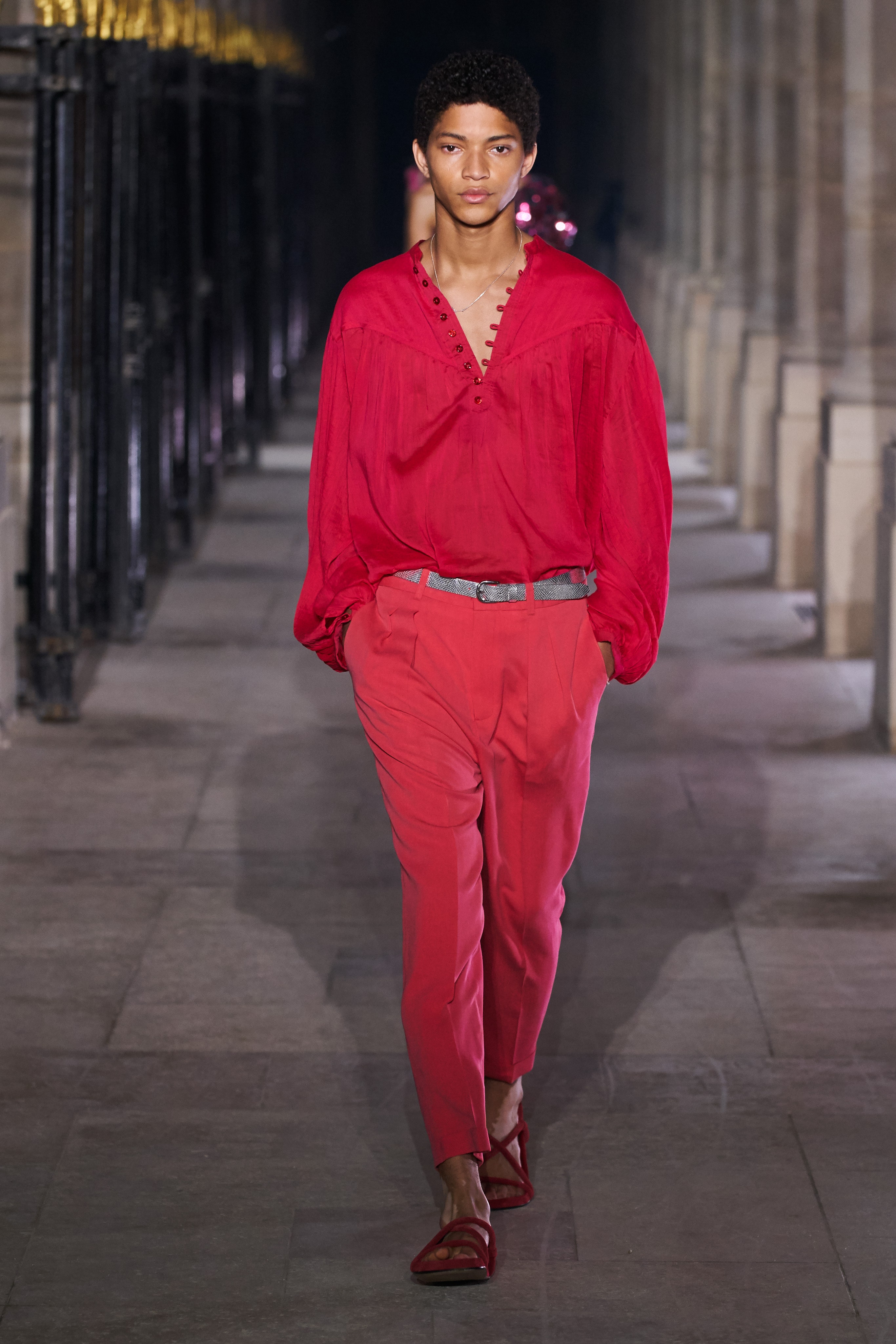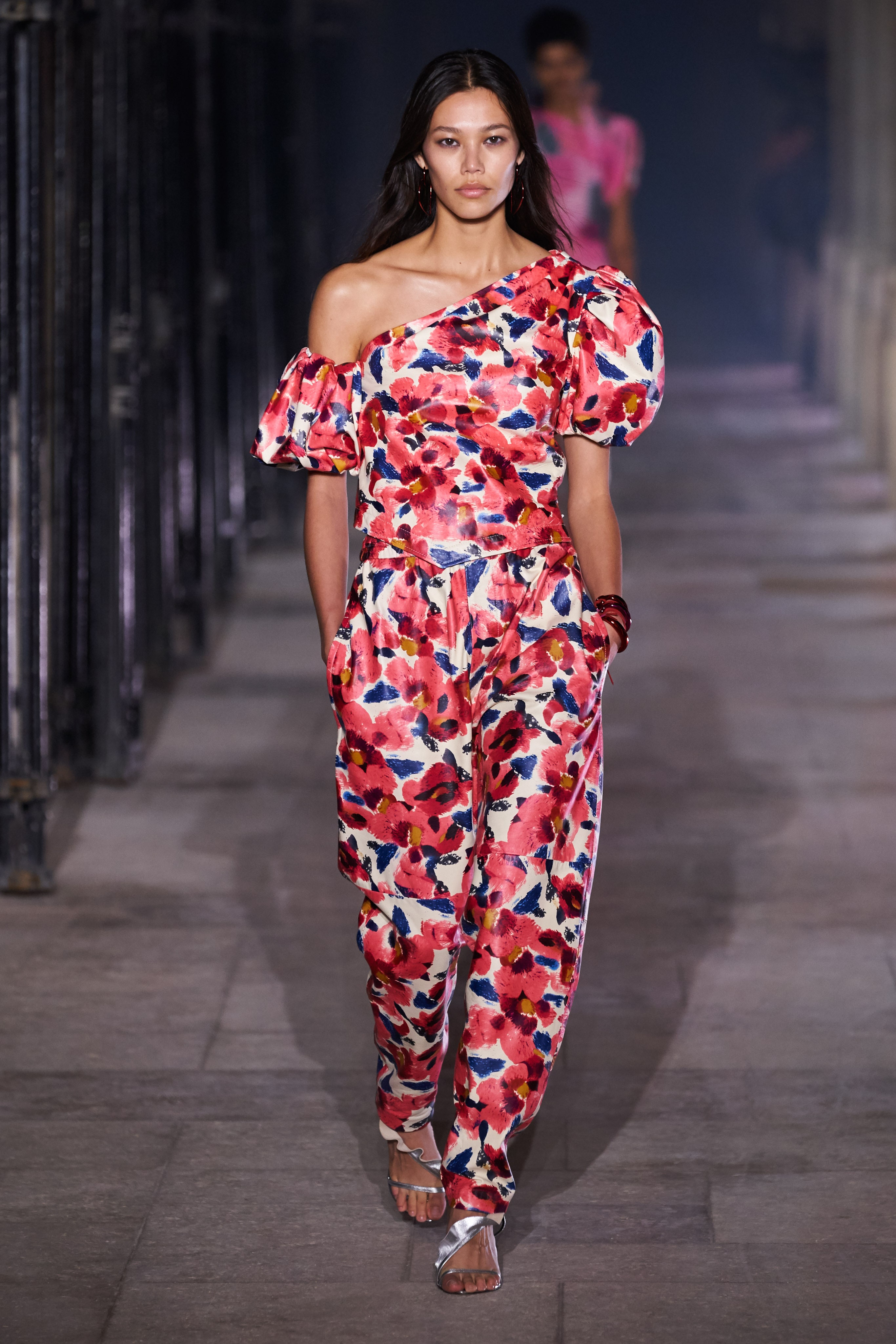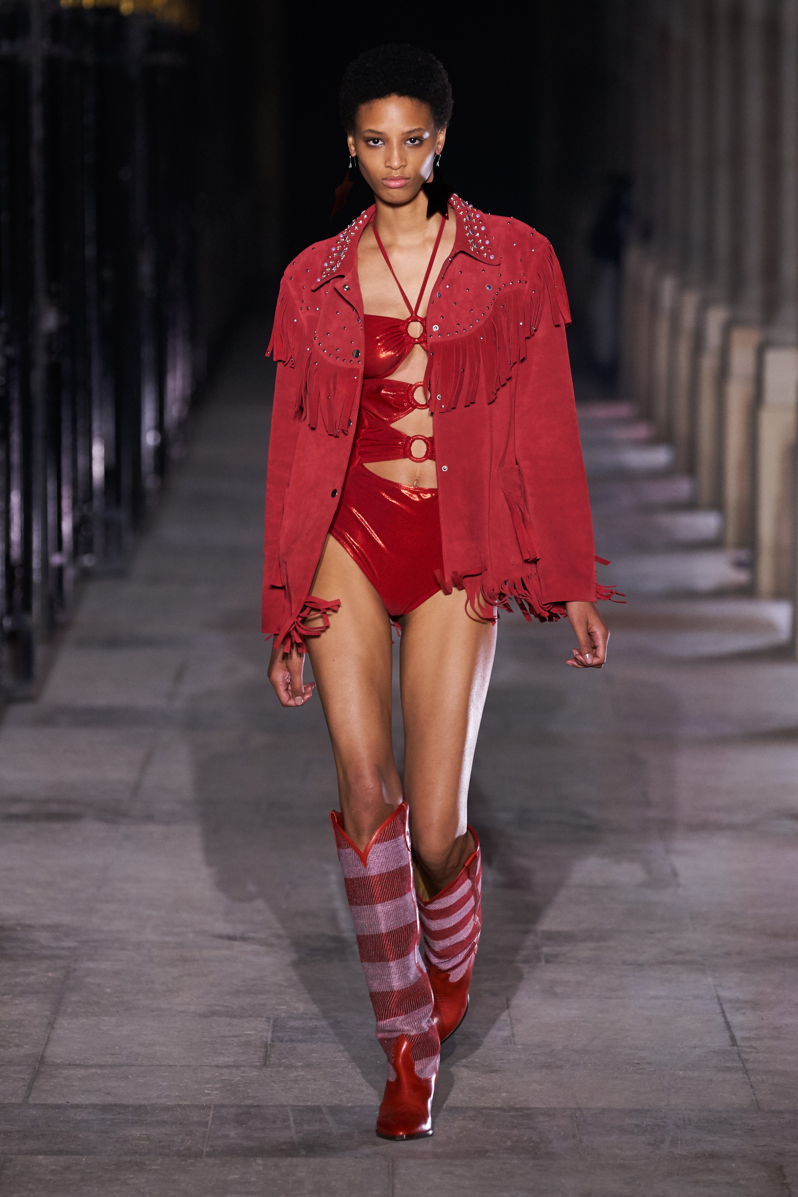 Еще неделю назад Изабель Маран совсем не хотела проводить показ. Однако прошедшей ночью у неё получилась настоящая клубная вечеринка, какой она могла бы быть после долгих месяцев самоизоляции. Саундтреком к показу стал техно-ремикс песни Донны Саммер I Feell Love, которая также звучала днем ранее в шоу Рика Оуэнса.
