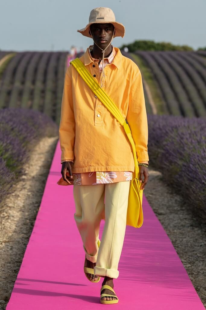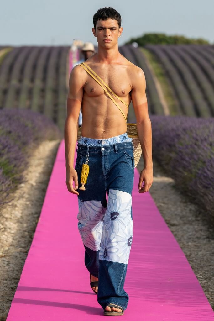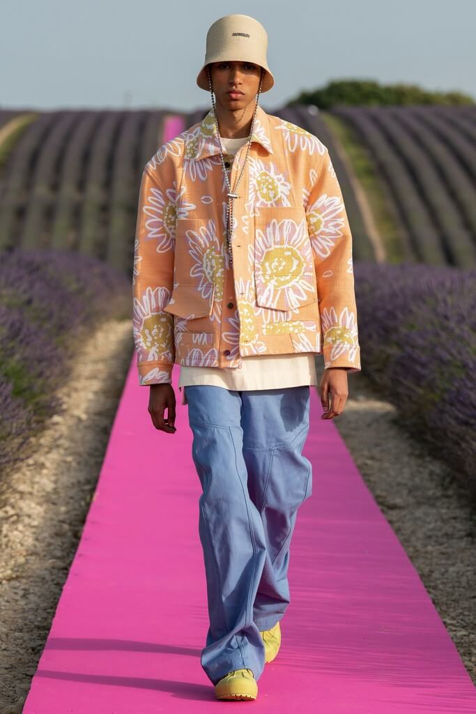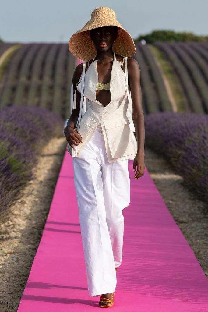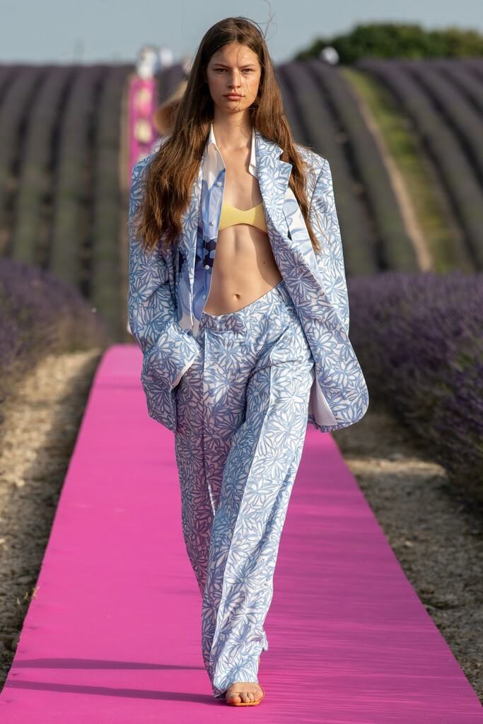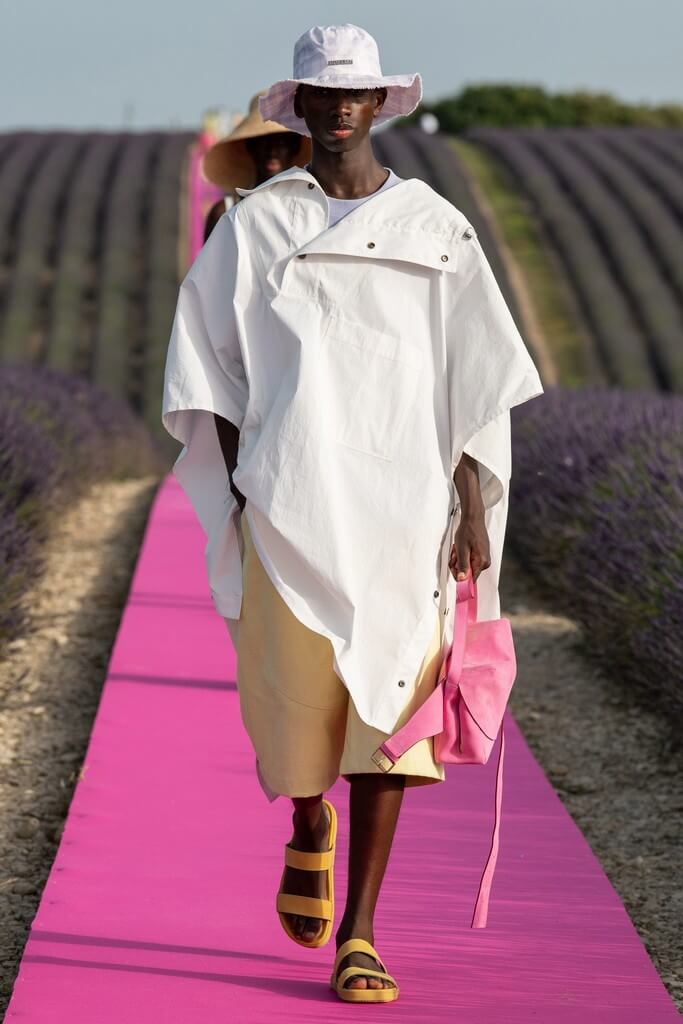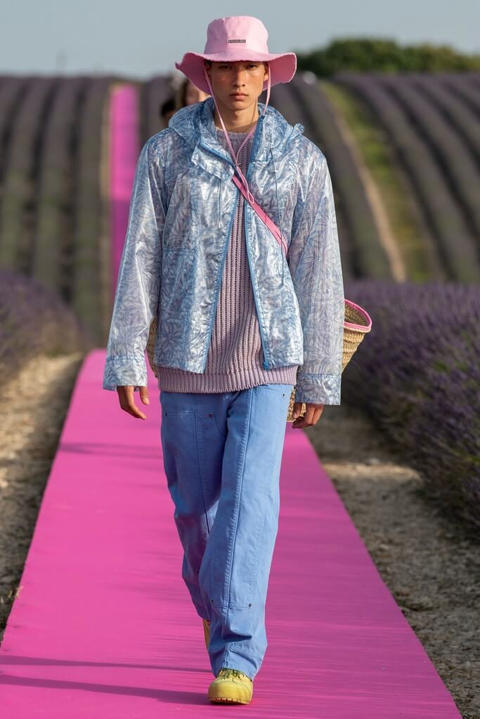 24 июня Симон Порт Жакмюс отметил 10-летие своего бренда. В честь этого он устроил живописный показ на юге Франции, где прошло его детство. Модели прошлись по провансальской деревне Брамежан, а гости рассматривали коллекцию, сидя в лавандовом поле. Розовая дорожка вдохновлена картиной Дэвида Хокни "Приход весны".
