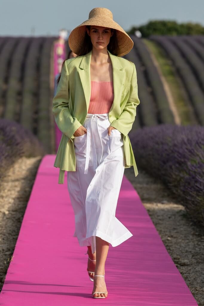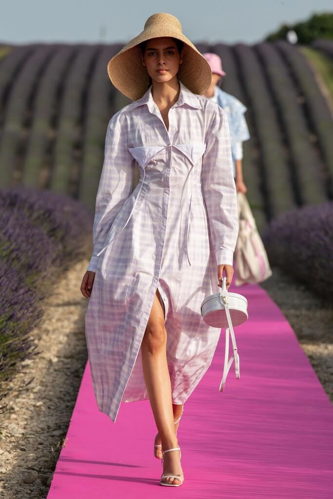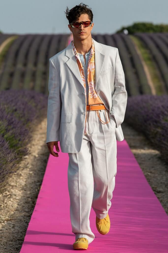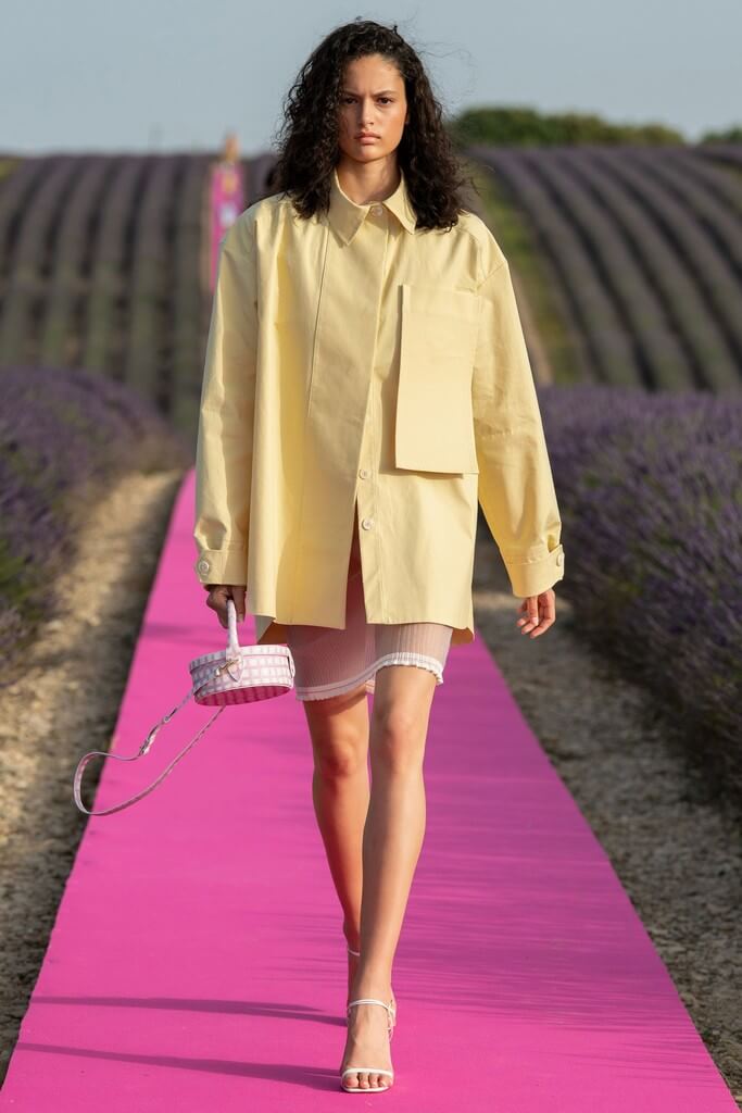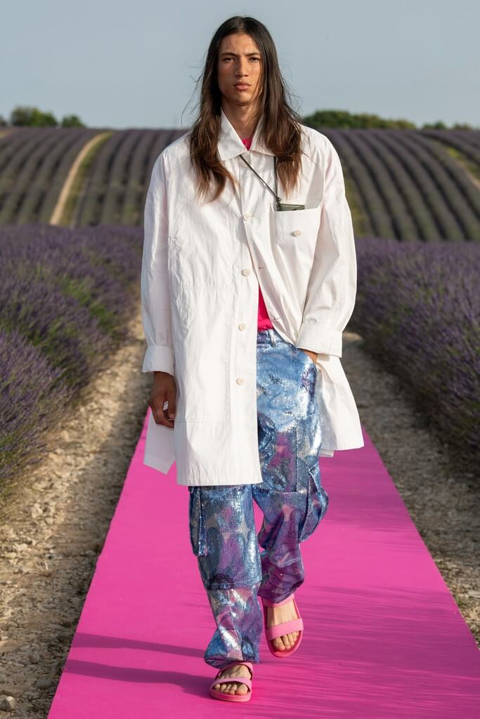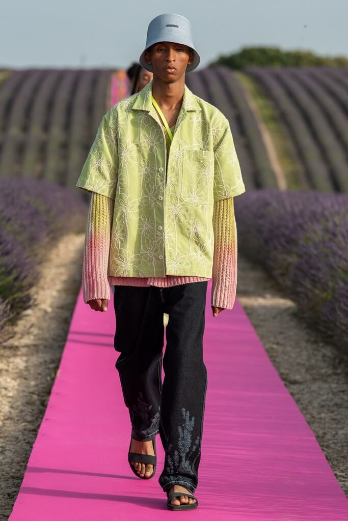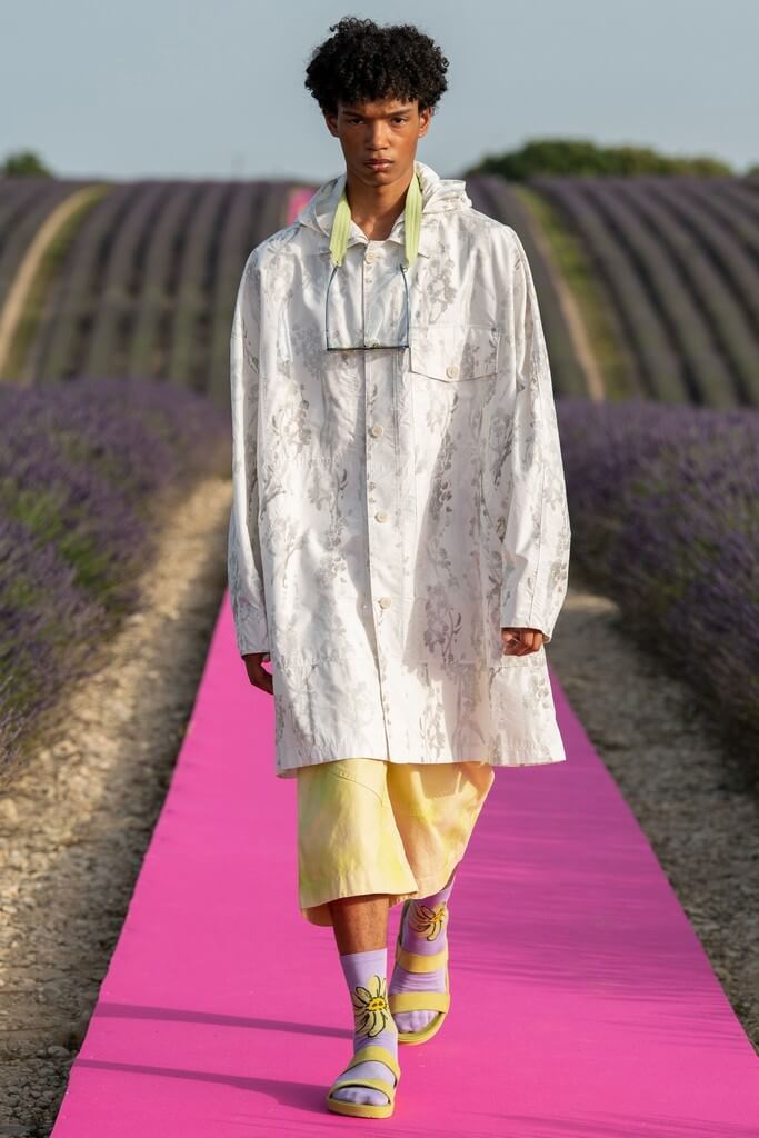 24 июня Симон Порт Жакмюс отметил 10-летие своего бренда. В честь этого он устроил живописный показ на юге Франции, где прошло его детство. Модели прошлись по провансальской деревне Брамежан, а гости рассматривали коллекцию, сидя в лавандовом поле. Розовая дорожка вдохновлена картиной Дэвида Хокни "Приход весны".