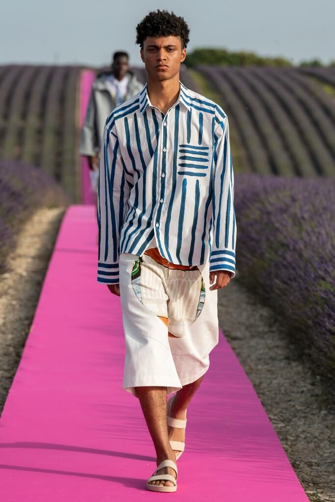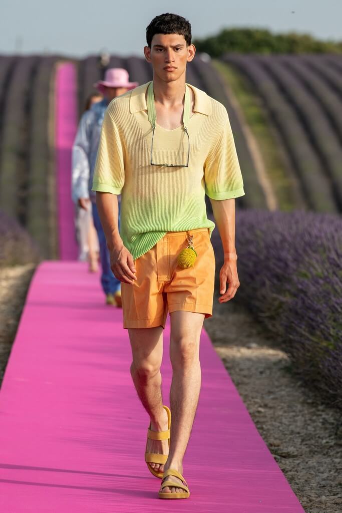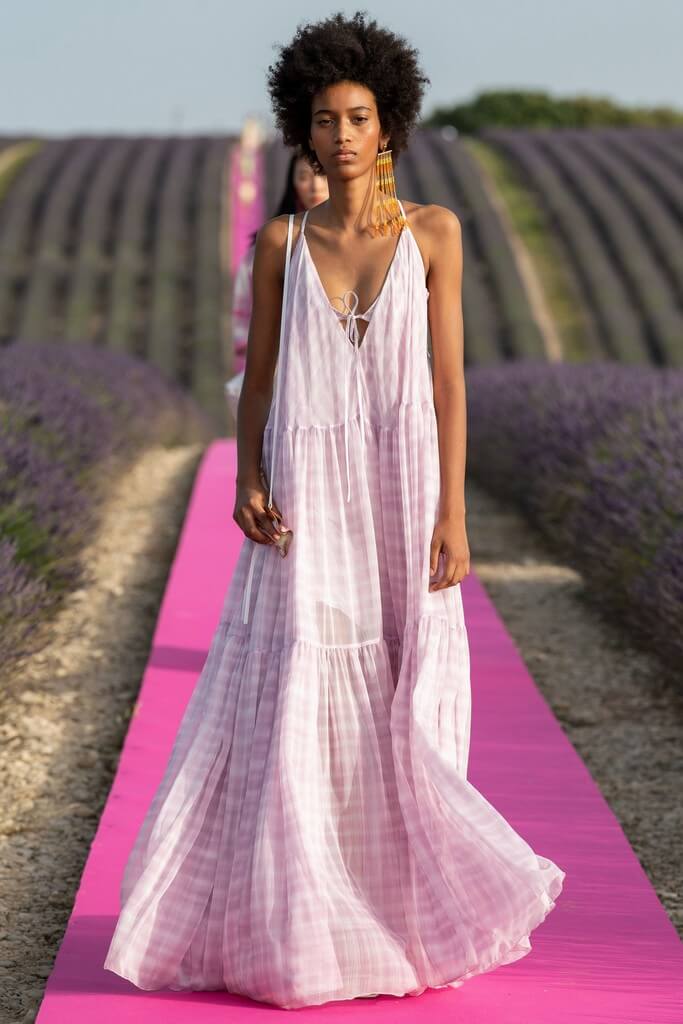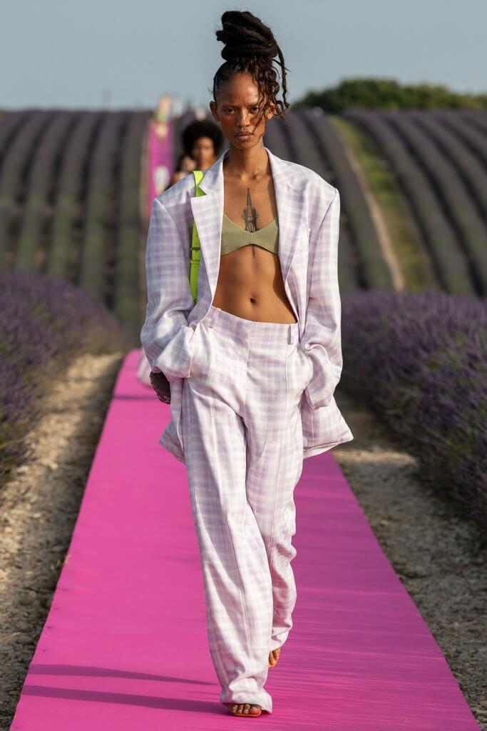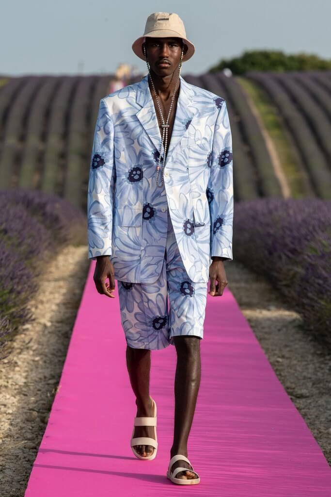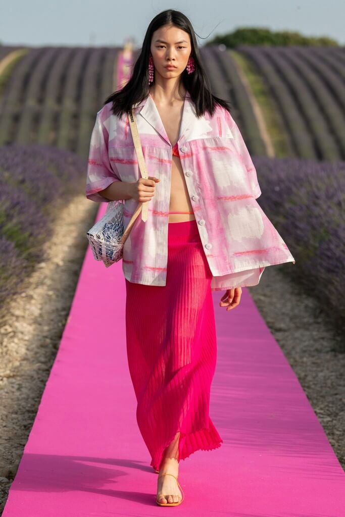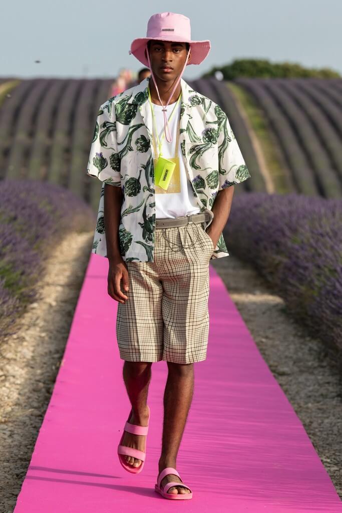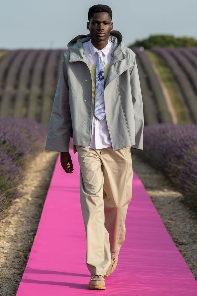24 июня Симон Порт Жакмюс отметил 10-летие своего бренда. В честь этого он устроил живописный показ на юге Франции, где прошло его детство. Модели прошлись по провансальской деревне Брамежан, а гости рассматривали коллекцию, сидя в лавандовом поле. Розовая дорожка вдохновлена картиной Дэвида Хокни "Приход весны".