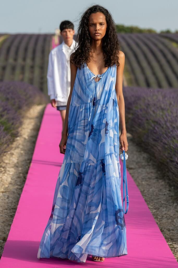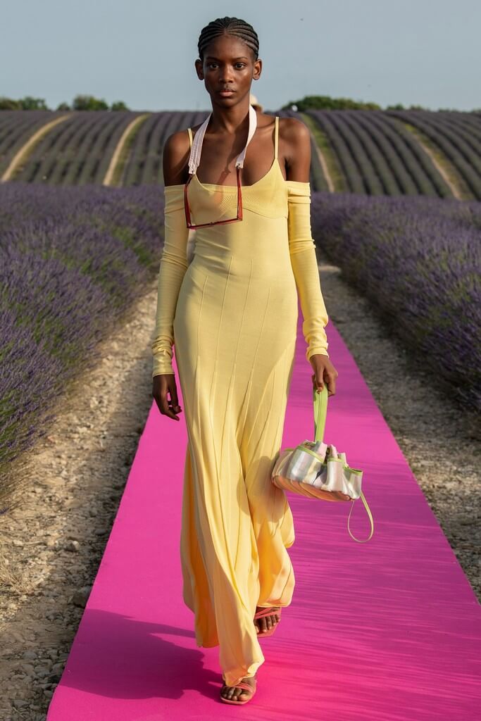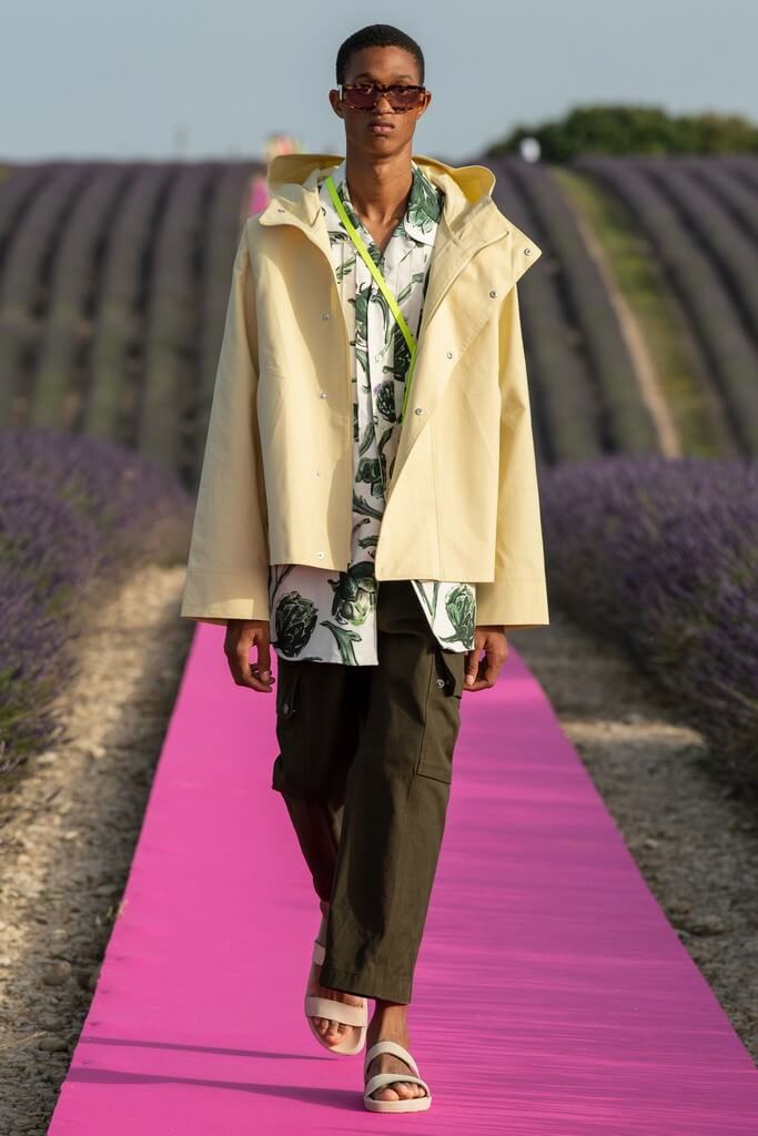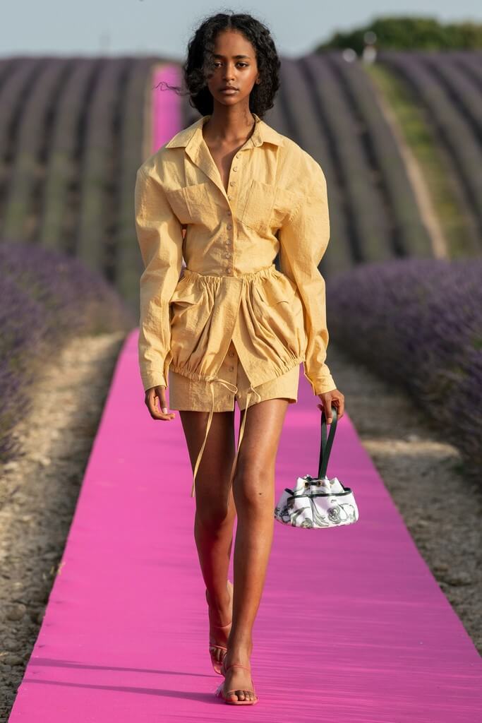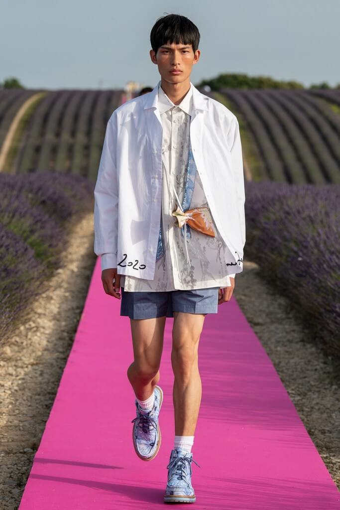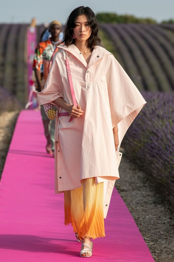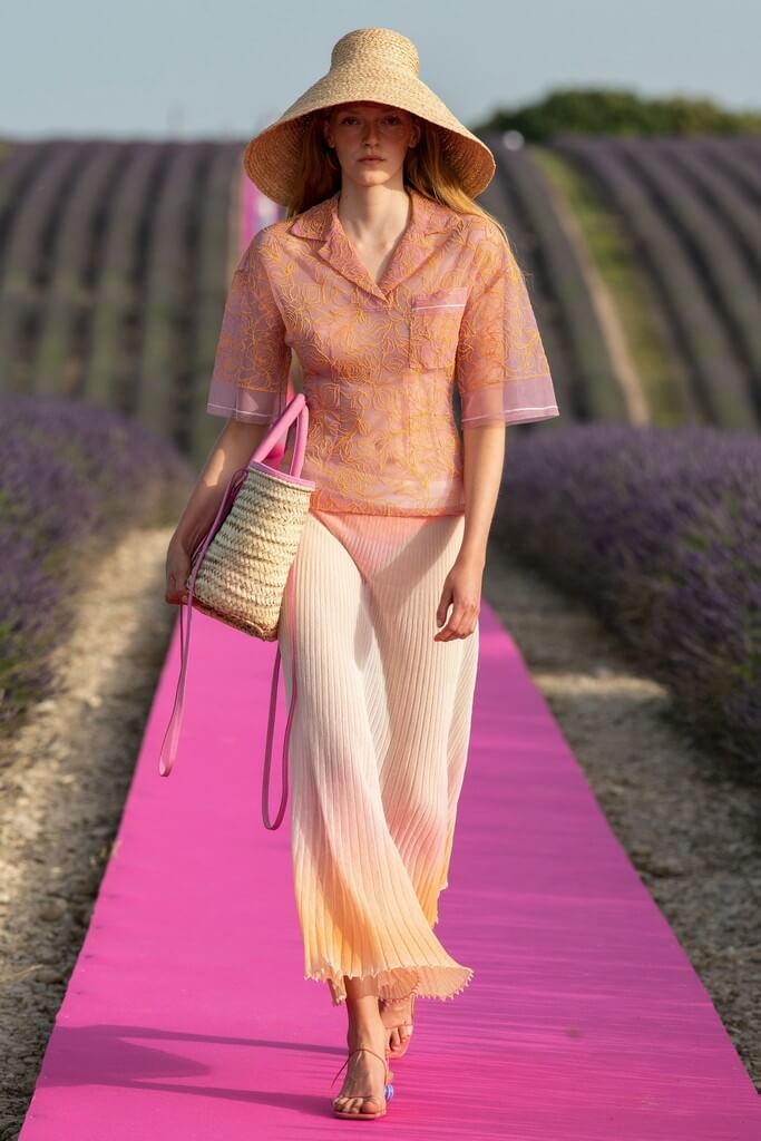 24 июня Симон Порт Жакмюс отметил 10-летие своего бренда. В честь этого он устроил живописный показ на юге Франции, где прошло его детство. Модели прошлись по провансальской деревне Брамежан, а гости рассматривали коллекцию, сидя в лавандовом поле. Розовая дорожка вдохновлена картиной Дэвида Хокни "Приход весны".