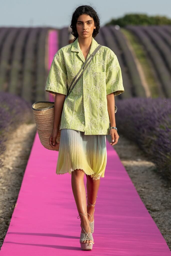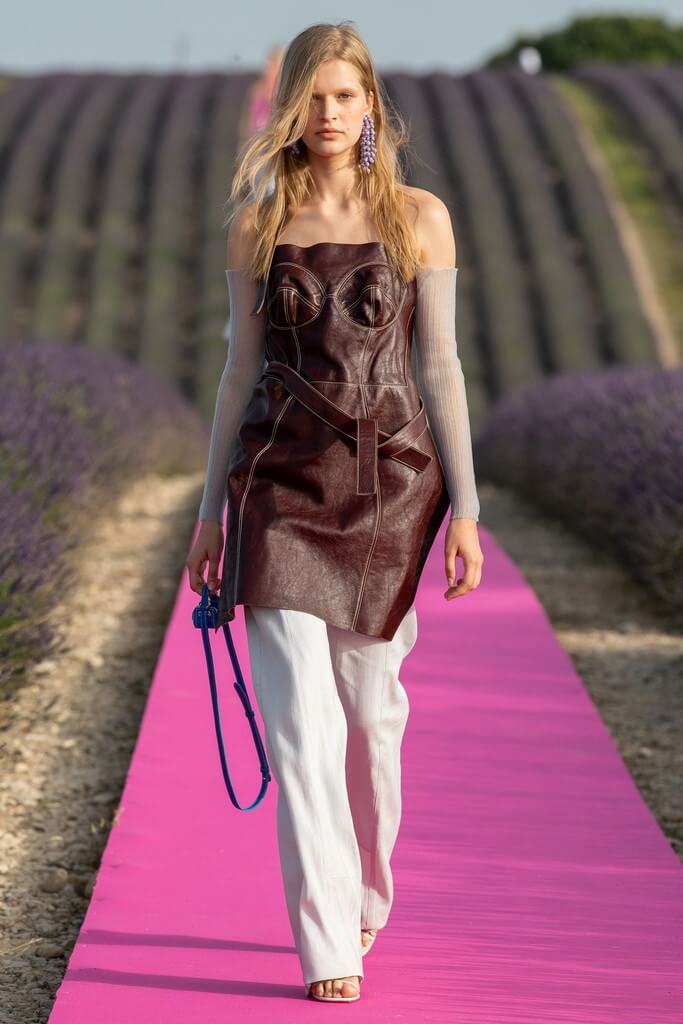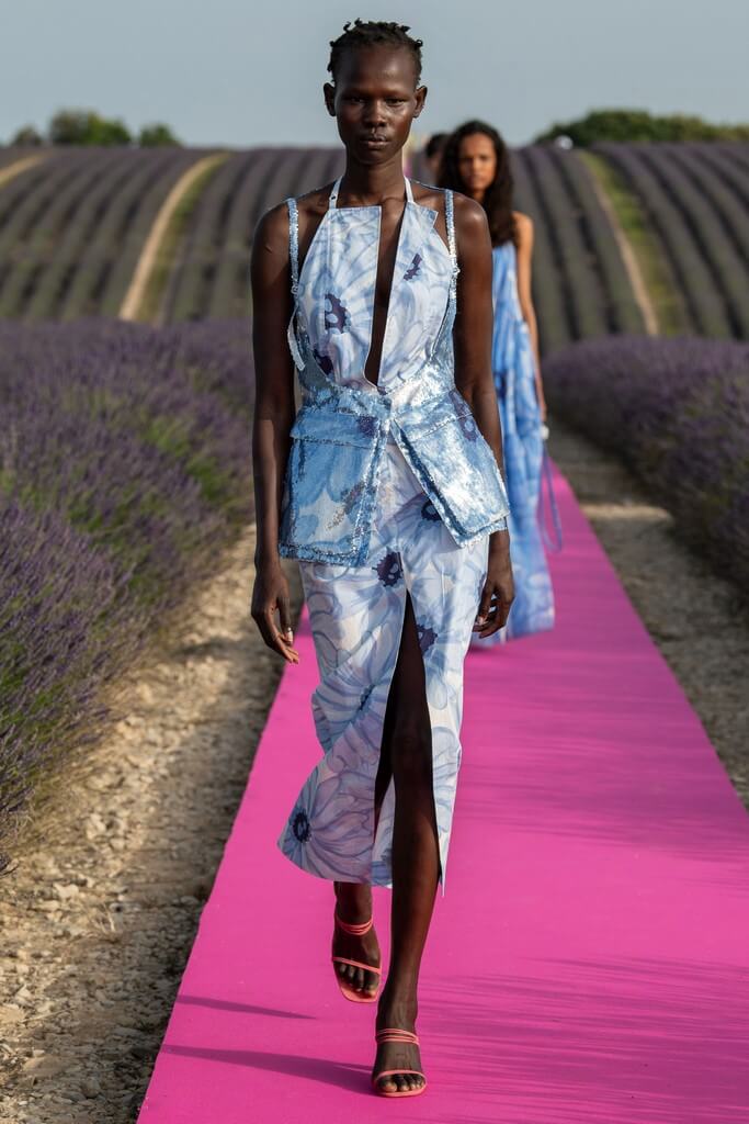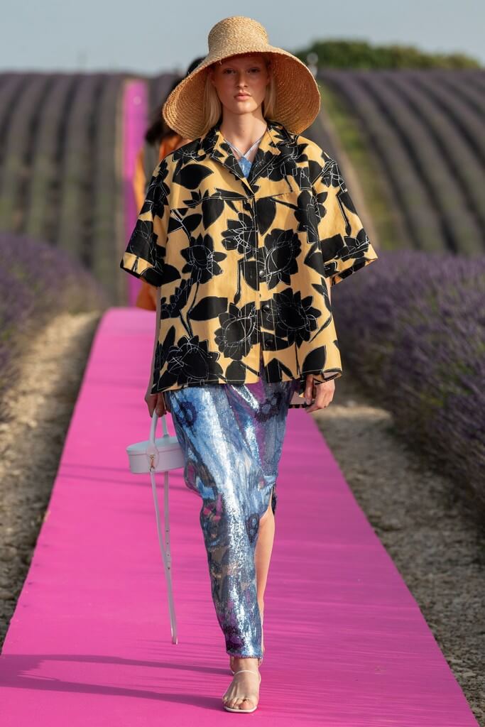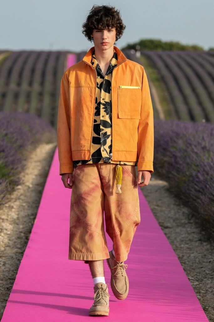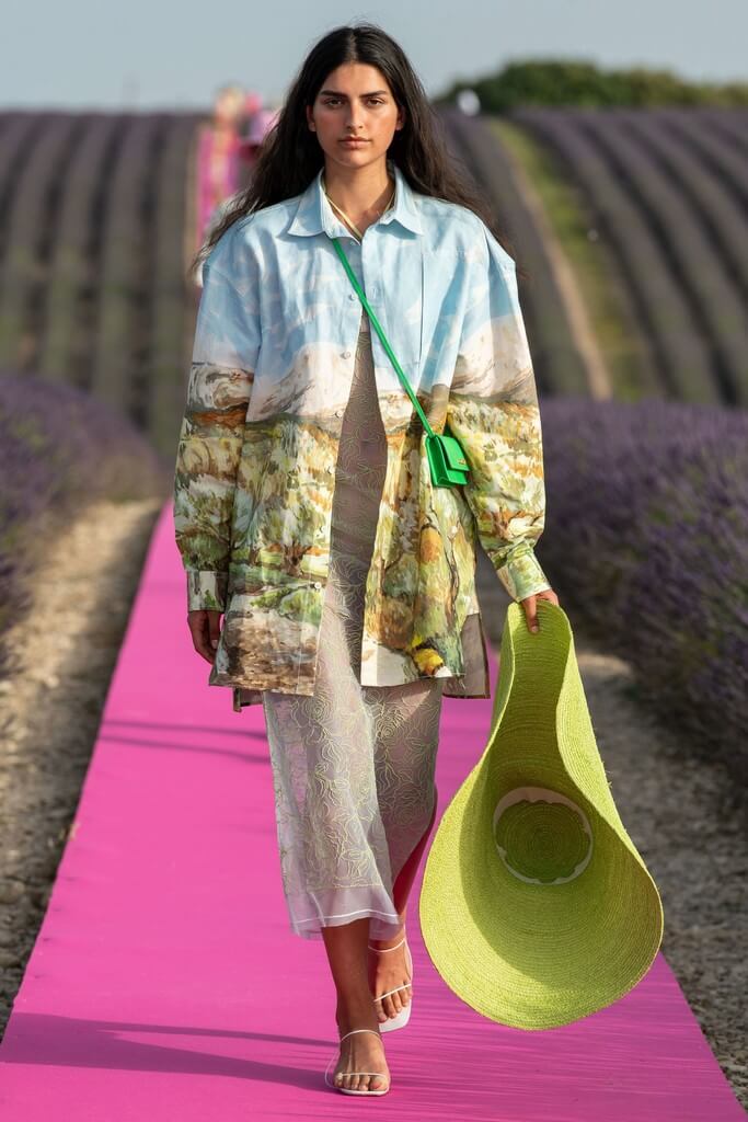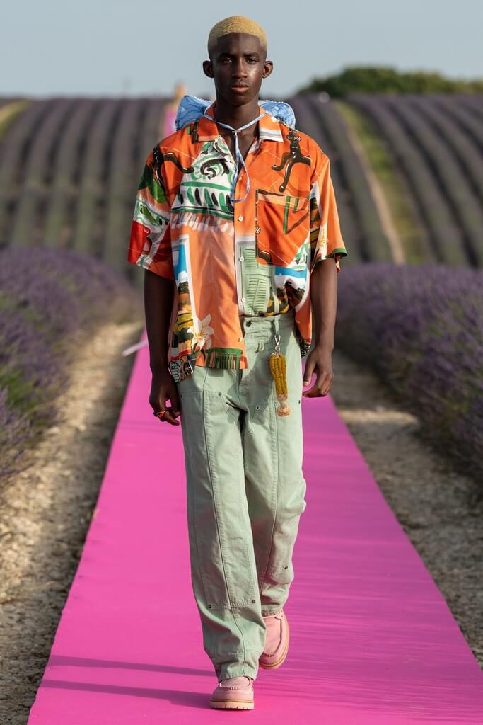 24 июня Симон Порт Жакмюс отметил 10-летие своего бренда. В честь этого он устроил живописный показ на юге Франции, где прошло его детство. Модели прошлись по провансальской деревне Брамежан, а гости рассматривали коллекцию, сидя в лавандовом поле. Розовая дорожка вдохновлена картиной Дэвида Хокни "Приход весны".