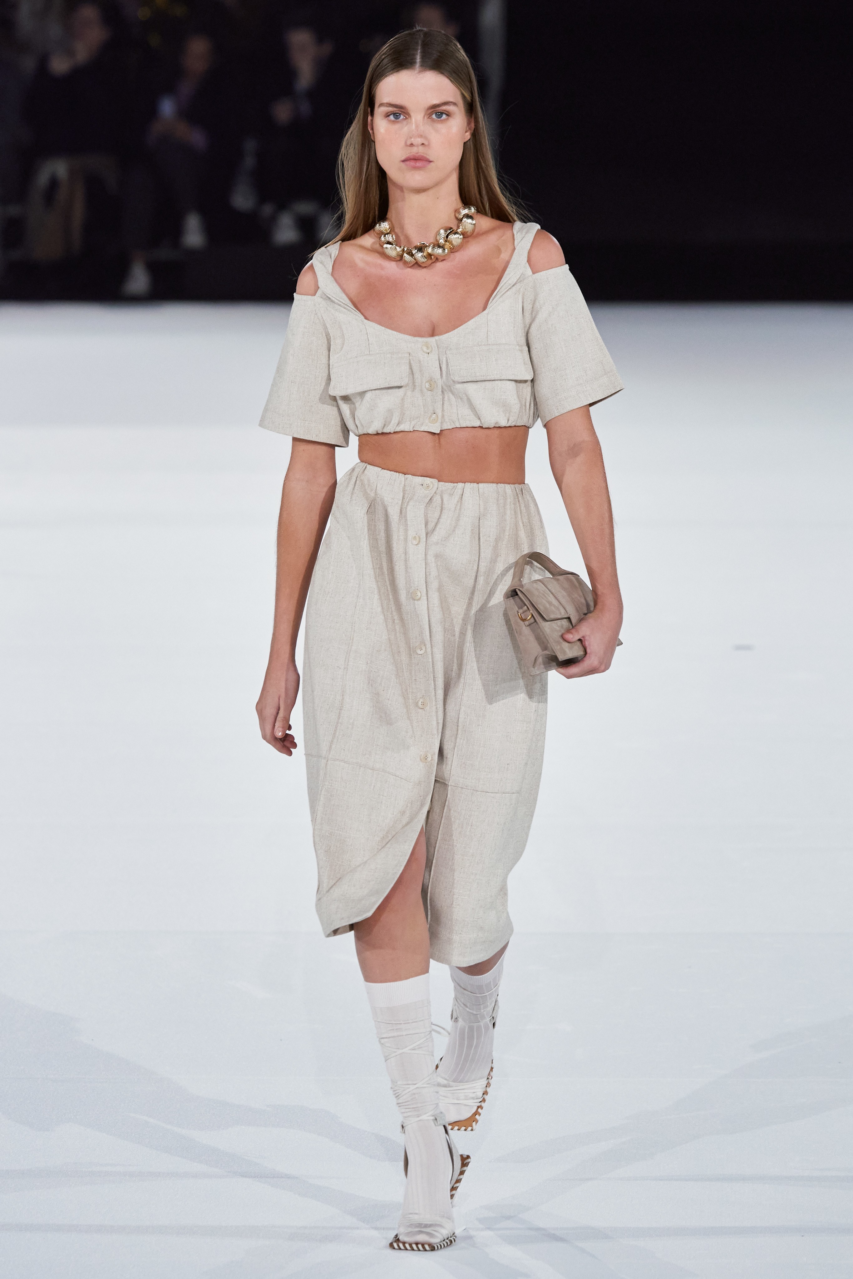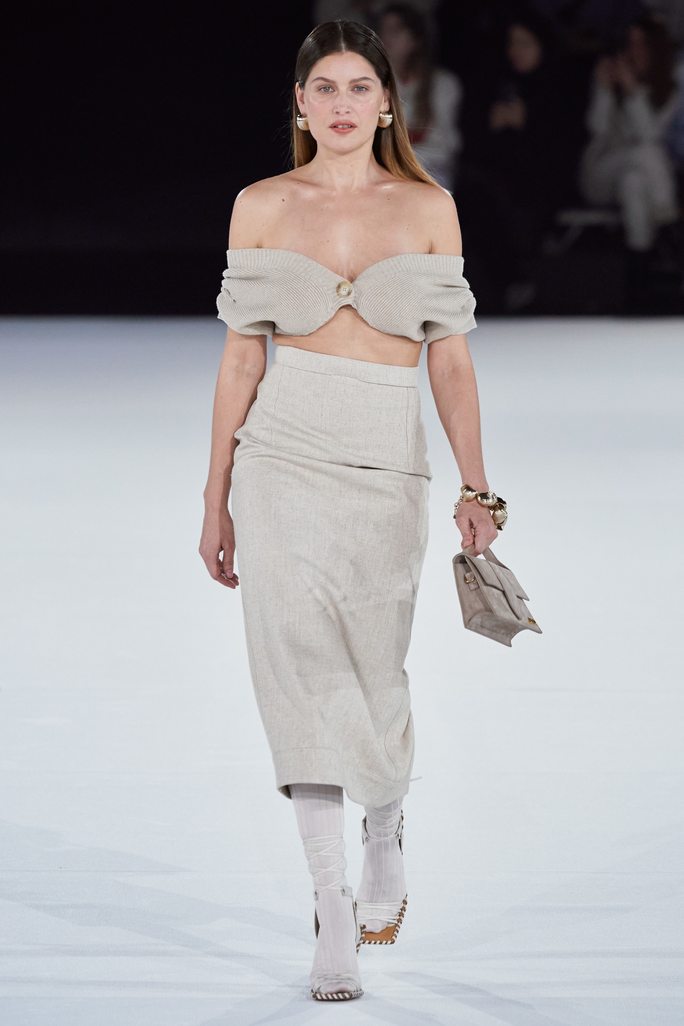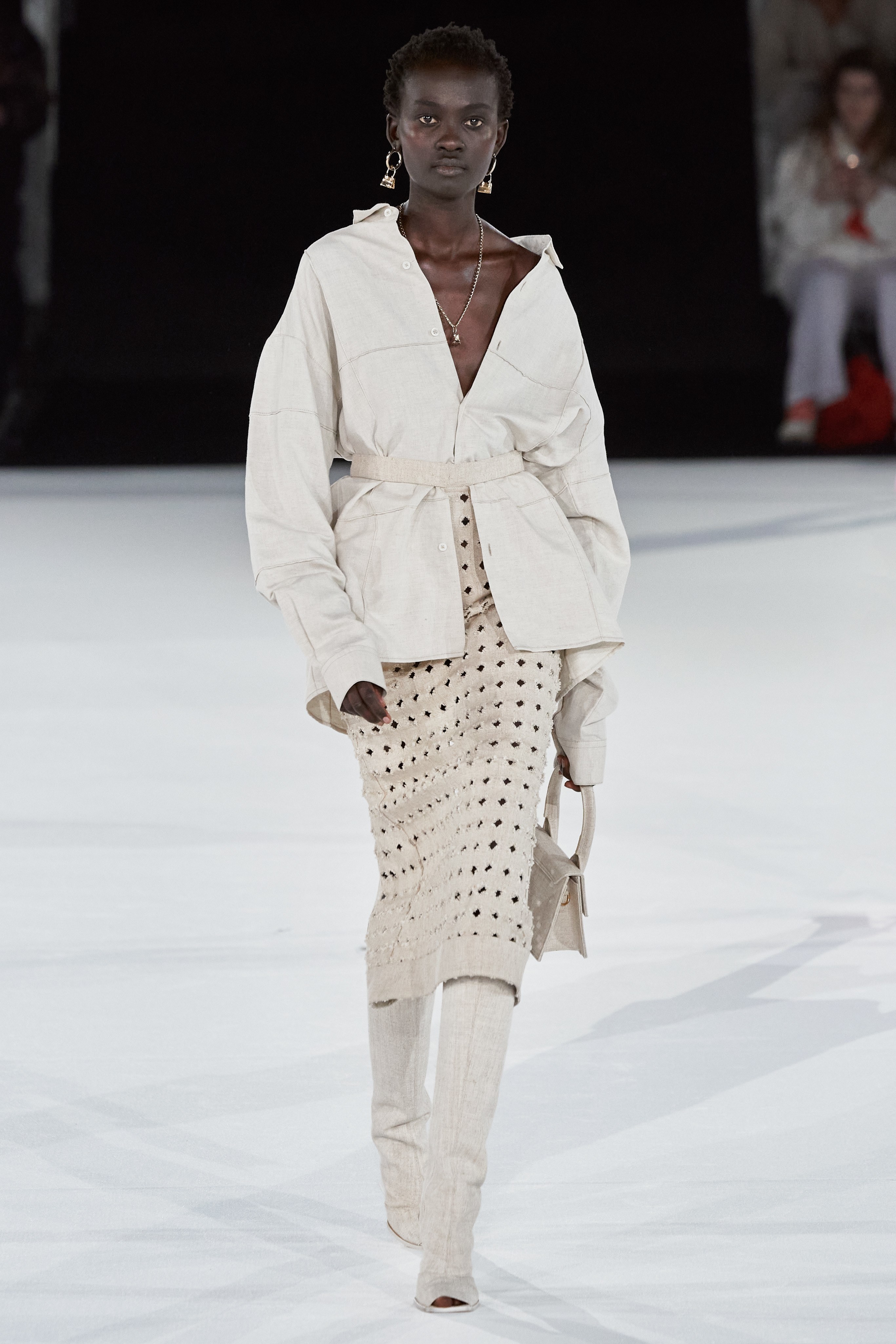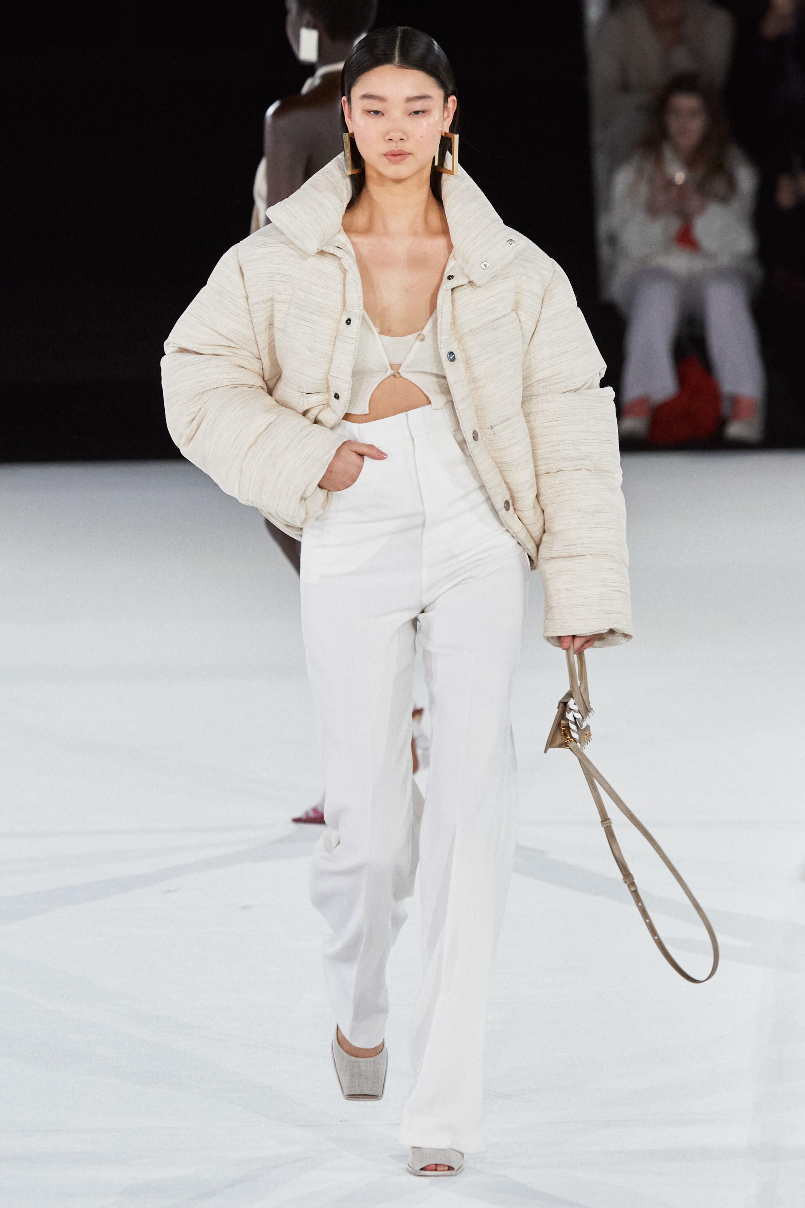 После показа в лавандовом поле, который в общей сложности в сети посмотрело 1,8 миллиона человек, Симон Порт Жакмюс выбрал более скромную локацию - крупнейший концертный зал Европы Paris La Défense Arena.