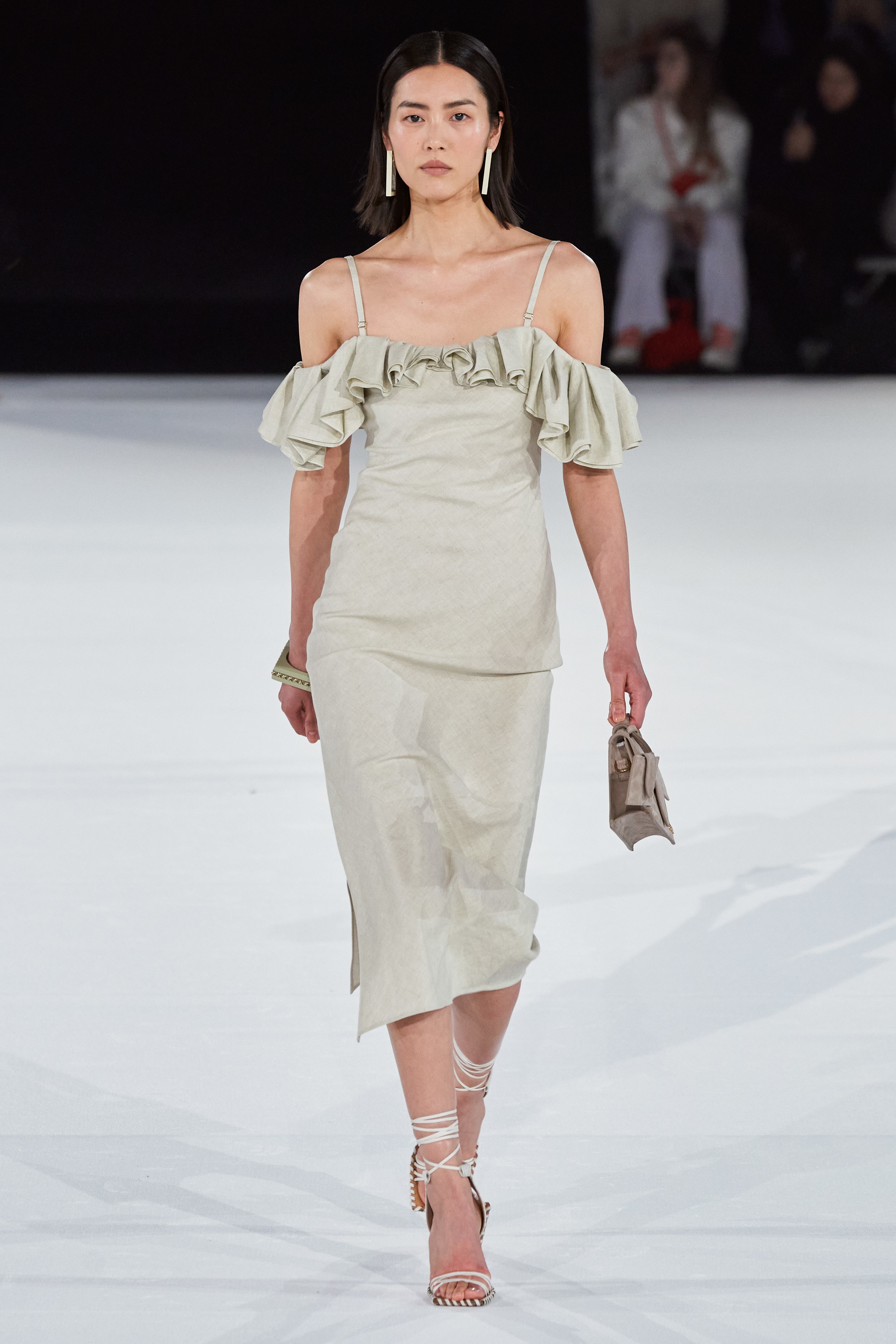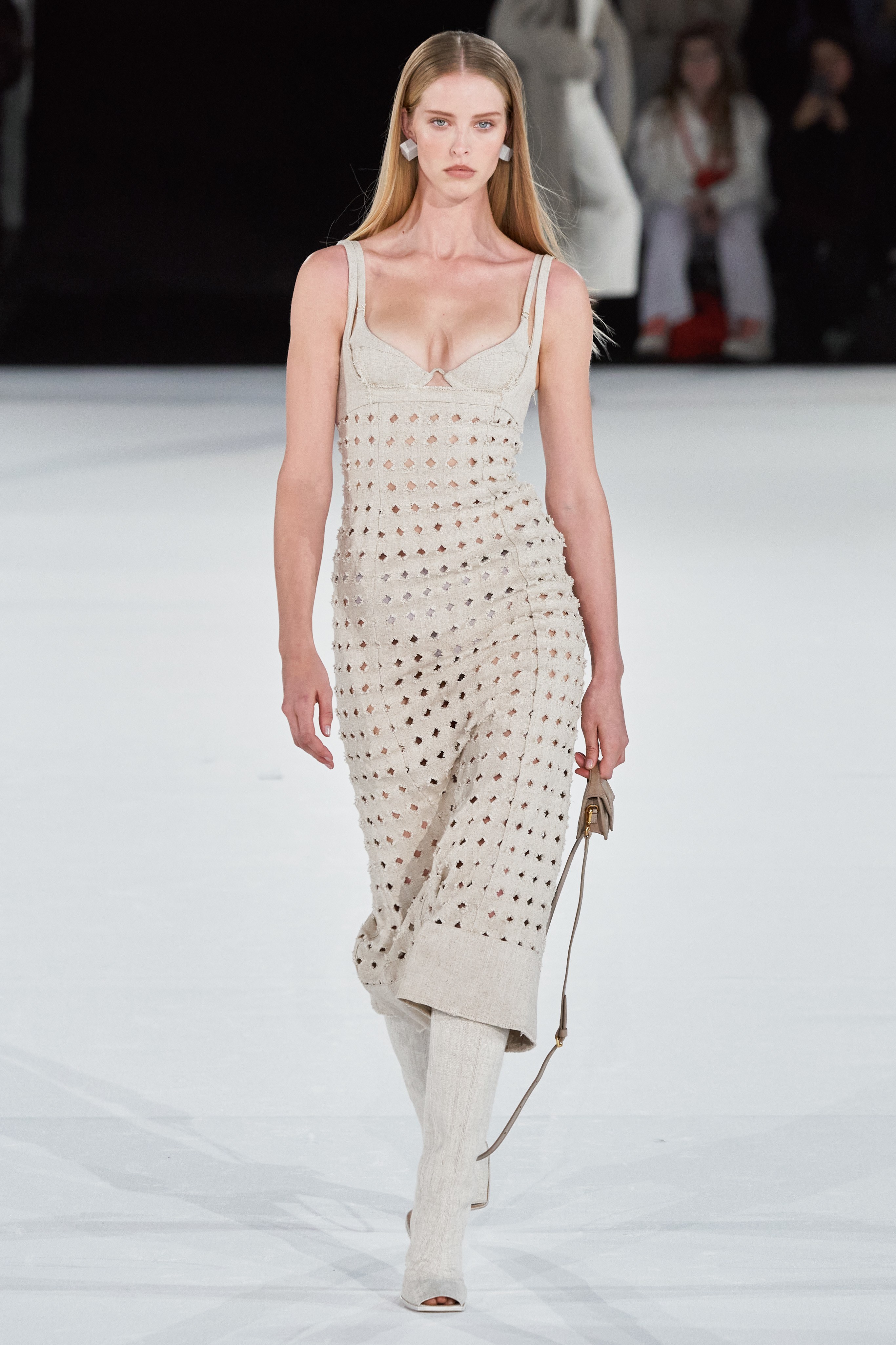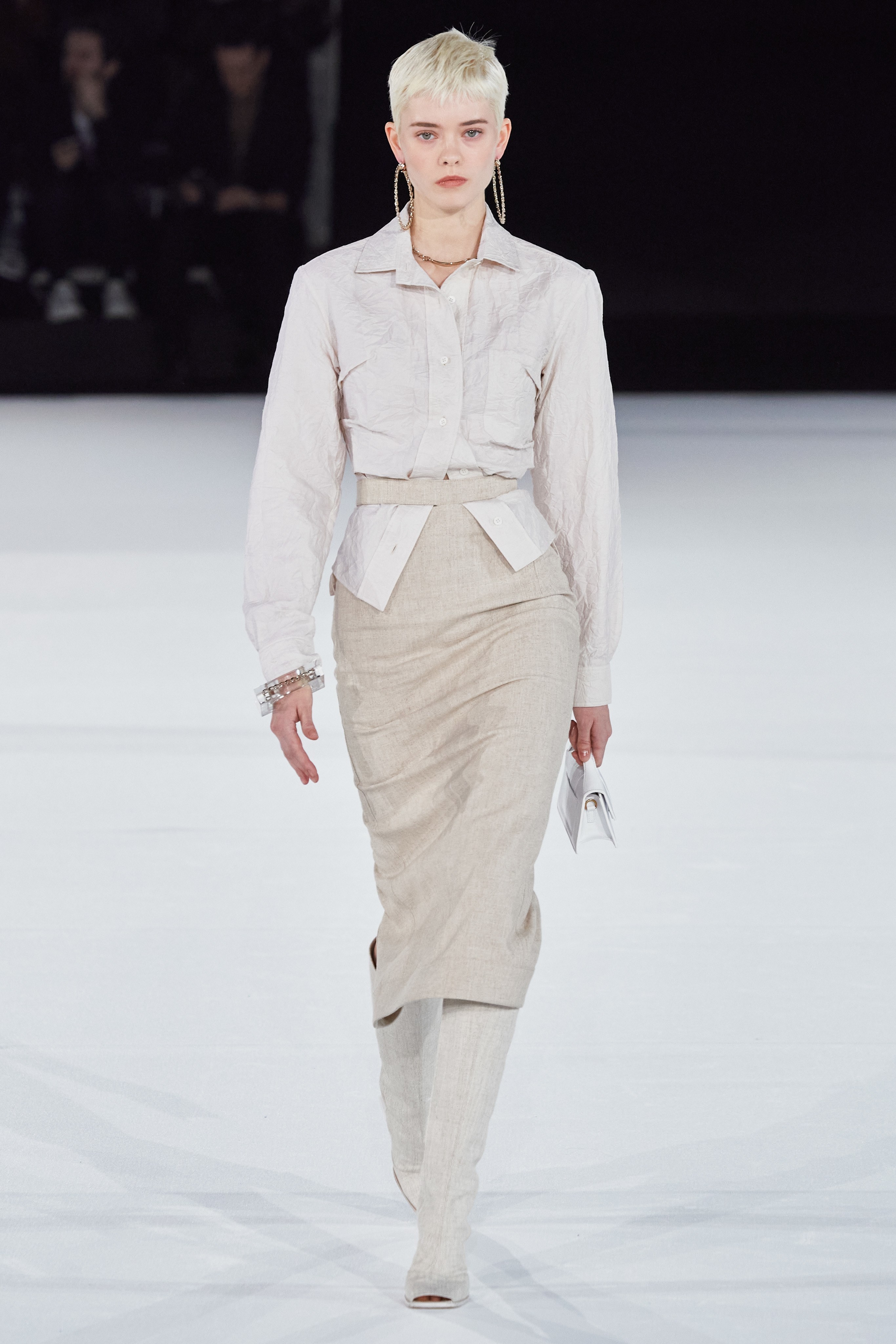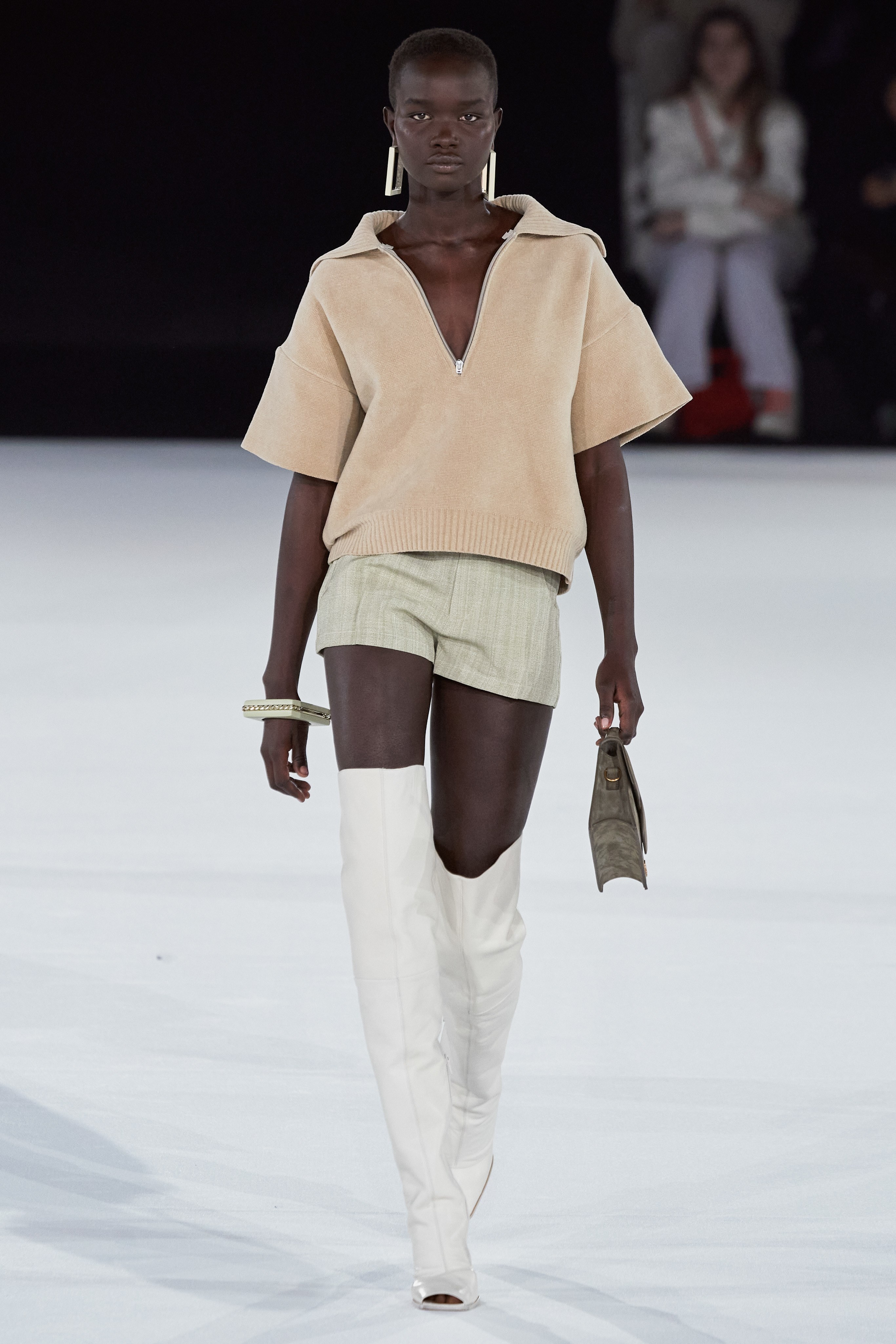 После показа в лавандовом поле, который в общей сложности в сети посмотрело 1,8 миллиона человек, Симон Порт Жакмюс выбрал более скромную локацию - крупнейший концертный зал Европы Paris La Défense Arena.