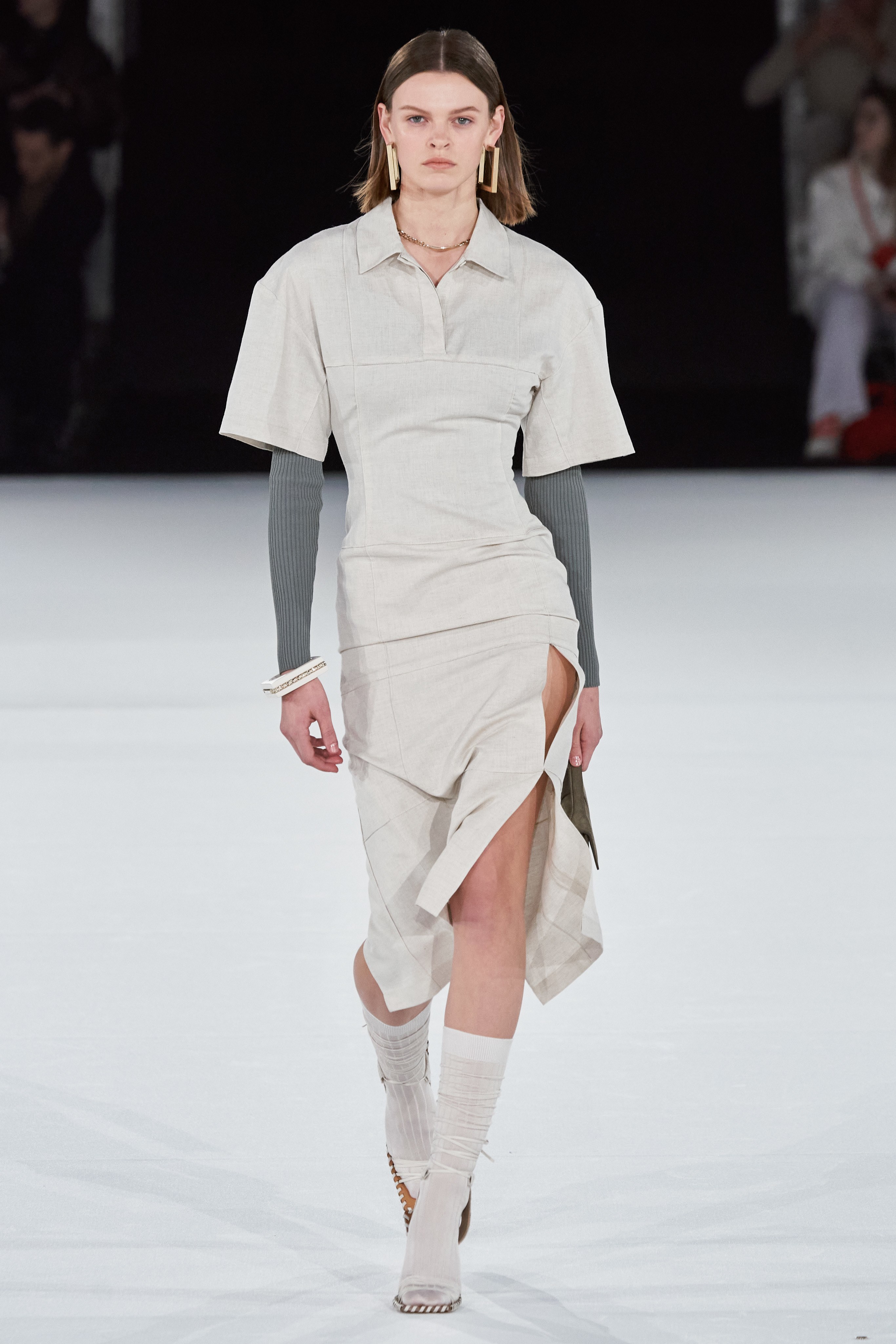 Жакмюс задал тон всему следующему сезону — все женские образы были выполнены в разных оттенках бежевого. К цветовой палитре дизайнер также добавил песочный, нежно-голубой, темно-синий, светло-серый, хаки и яркие вспышки малинового, розового и сиреневого.