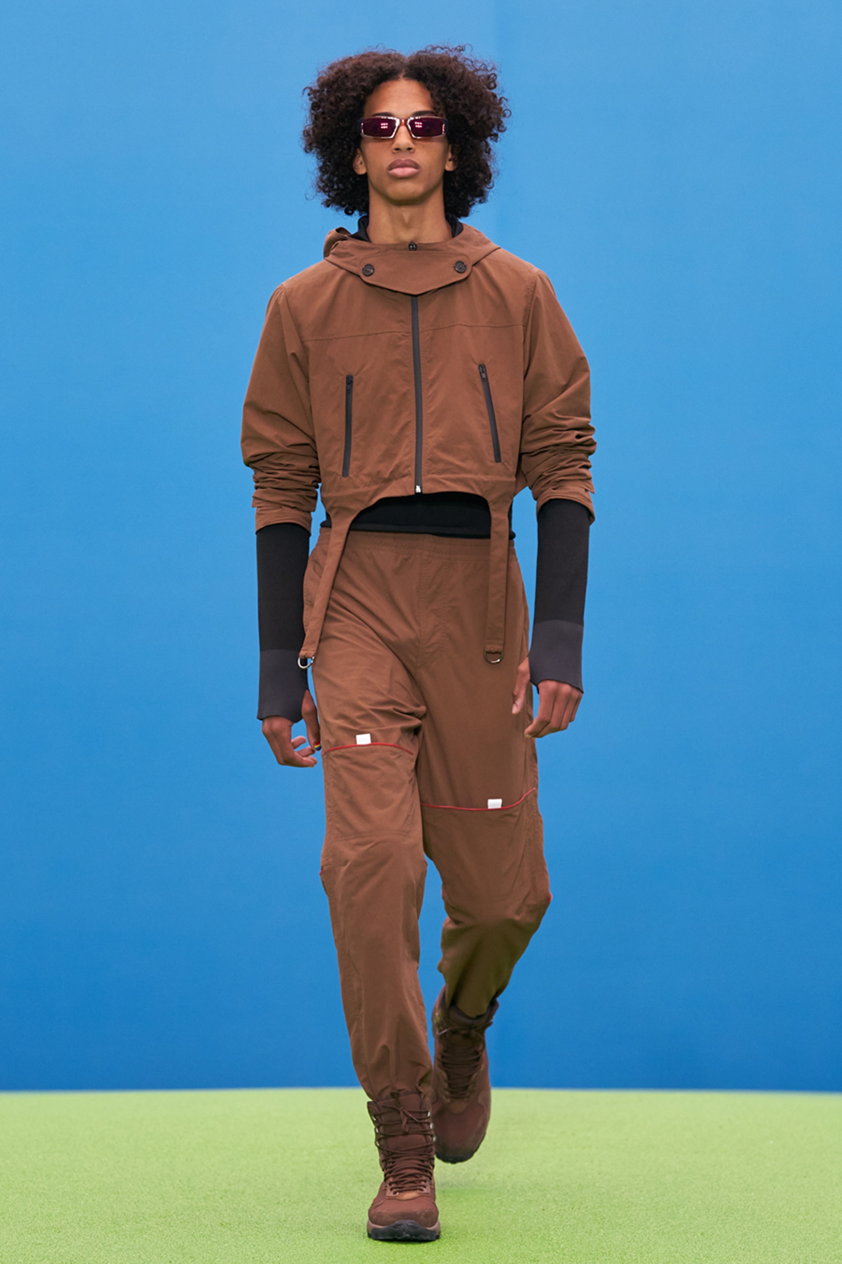 Симон Порт Жакмюс после долгого перерыва представил новую коллекцию — осенне-зимнюю. Вдохновением для дизайнера стали мужская мода и горячо любимые горные путешествия. Так, коллекция получила название La Montagne, а вещи в ней напоминают предметы горной и туристической экипировки. Прямая юбка макси оттенка фуксии, в которой вышла модель Адут Акеч, аккуратно сворачивается на талии и скрепляется ремешком, совсем как спальник, а женские топы напоминают крепления страховок альпинистов. Дизайнер поддался очарованию outdoor-шика, которым буквально пронизаны коллекции будущего холодного сезона. В коллекцию вошли джемперы, имитирующие так называемые "флиски", трекинговые ботинки и брюки карго со множеством креплений для походных принадлежностей. Походные панамы, карабины, непромокаемые жилеты и страховочные нагрудные ремни органично сочетаются с привычными для бренда силуэтными узкими платьями, короткими соблазнительными топами и велосипедными шортами. Мужская линия коллекции выглядит как спланированный гардероб для долгого восхождения на Эверест: многослойность, намеки на термобелье, вместительные карманы и сумки, а также защищающие от ледяного ветра головные уборы. И не будь Жакмюс Жакмюсом, если бы среди всего этого не нашлось место пуховикам и расслабленным костюмам в цветах.