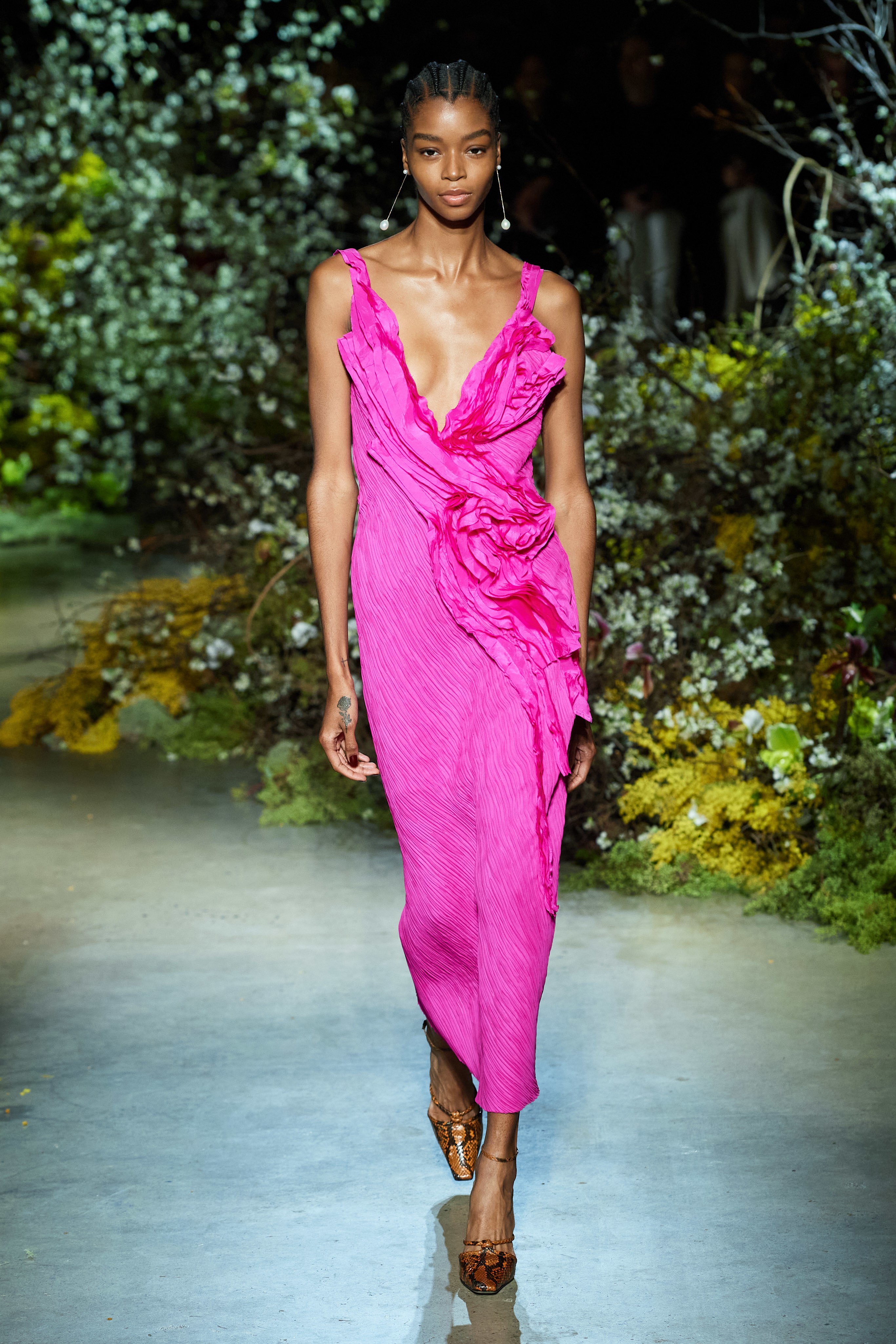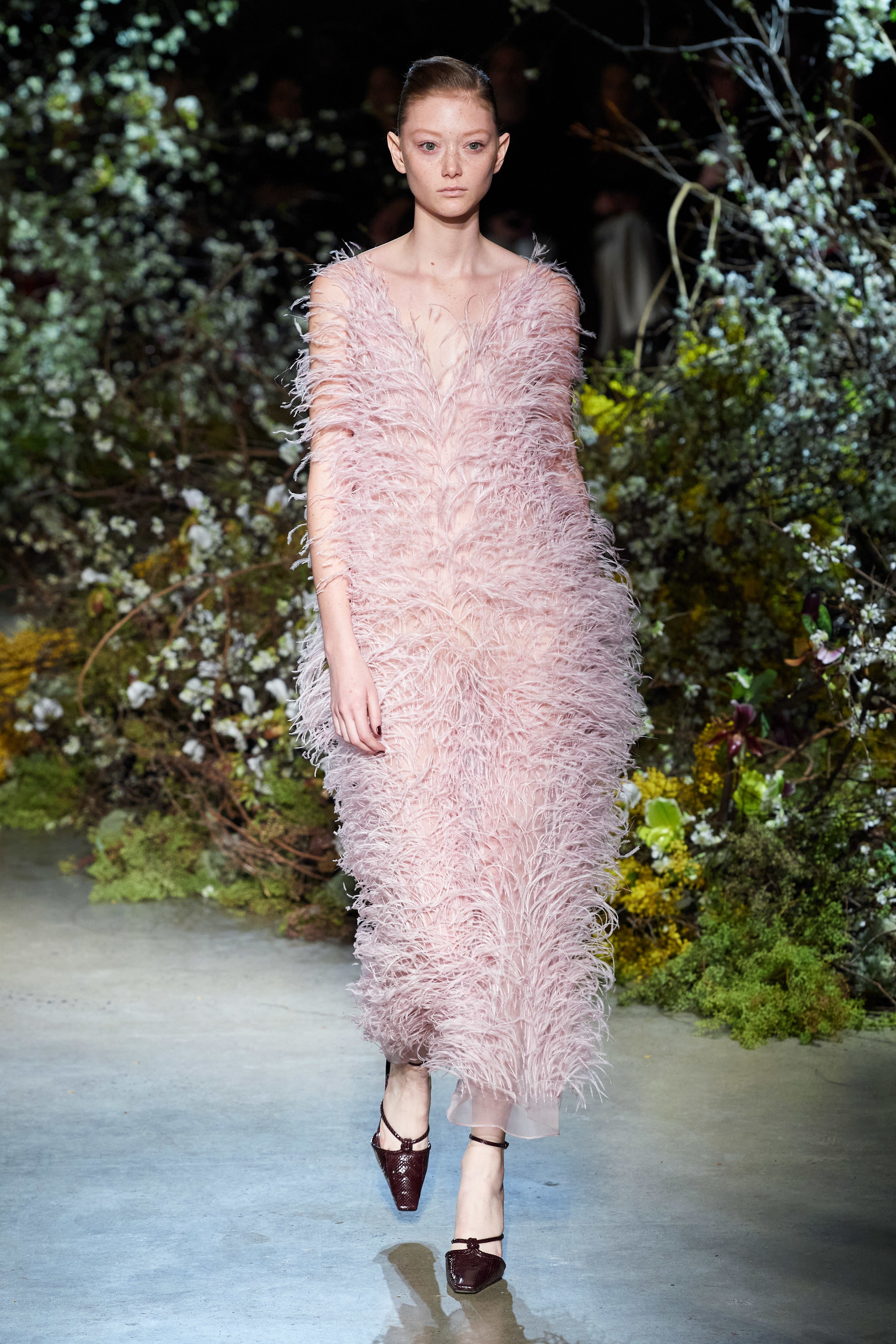Актуальные тренды: перья, "голые" платья, объёмные рукава, яркие цвета, розовый.