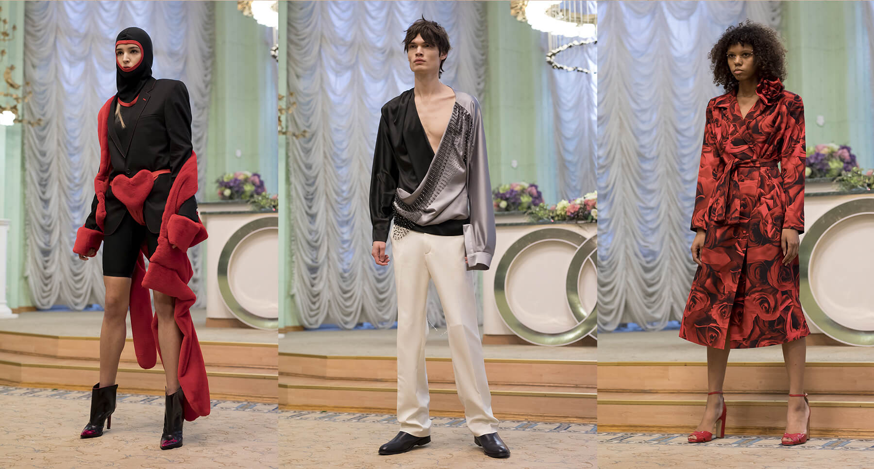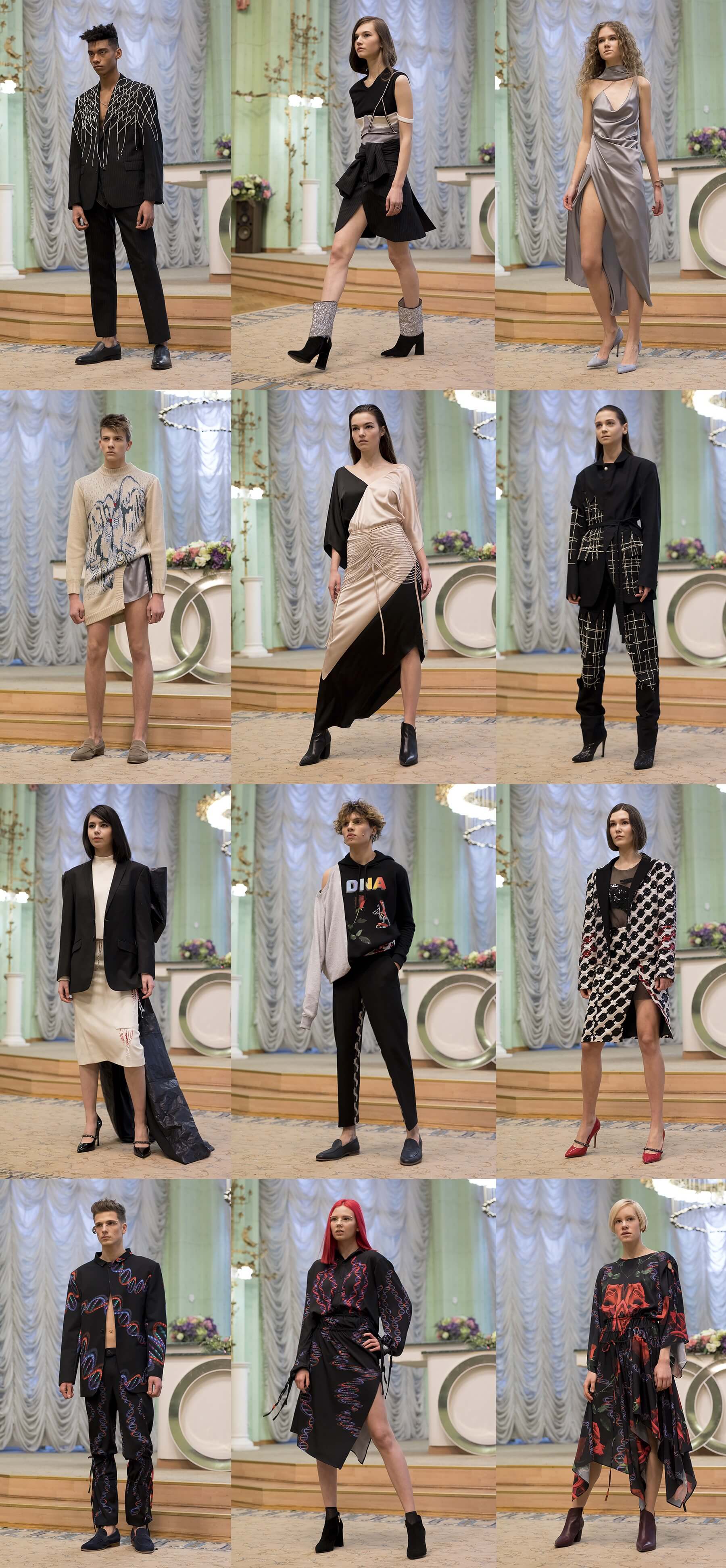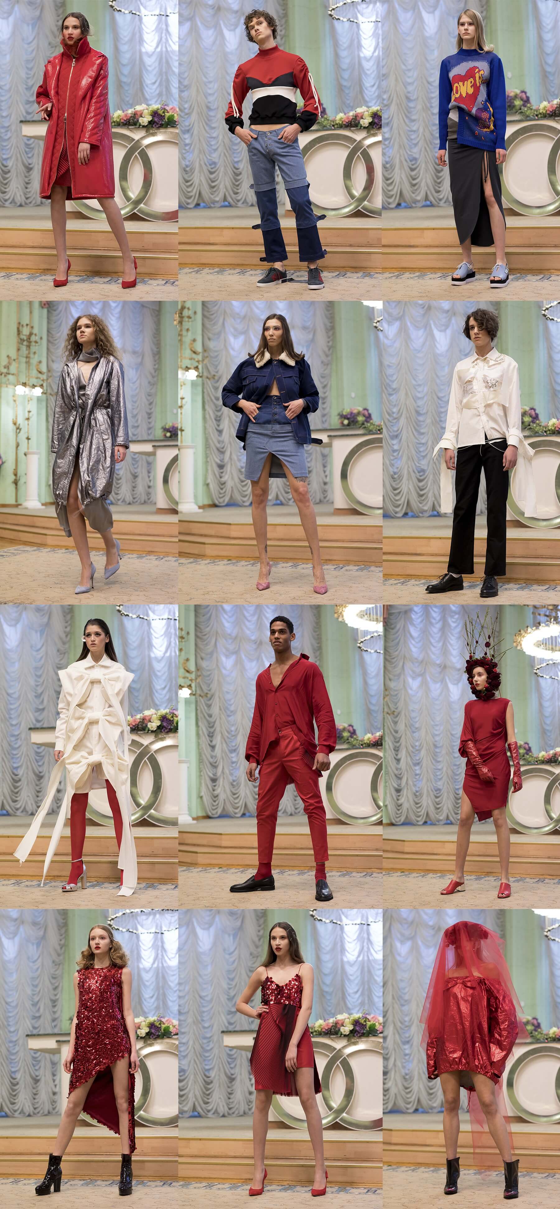 Накануне показа Жана дизайнер Иван Фролов посвятил коллекцию первой любви и безопасному сексу. Грицфельдт же решил тему любви раскрыть с юридической точки зрения и пригласил всех в центральный ЗАГС. Советская эстетика внутренних интерьеров, ковры на ступеньках, гобелены на стенах и лепнина стали отличным фоном для селфи в ожидании шоу.