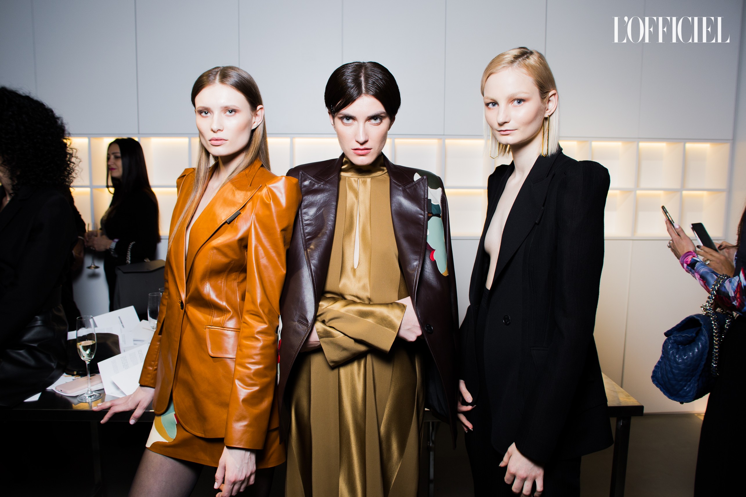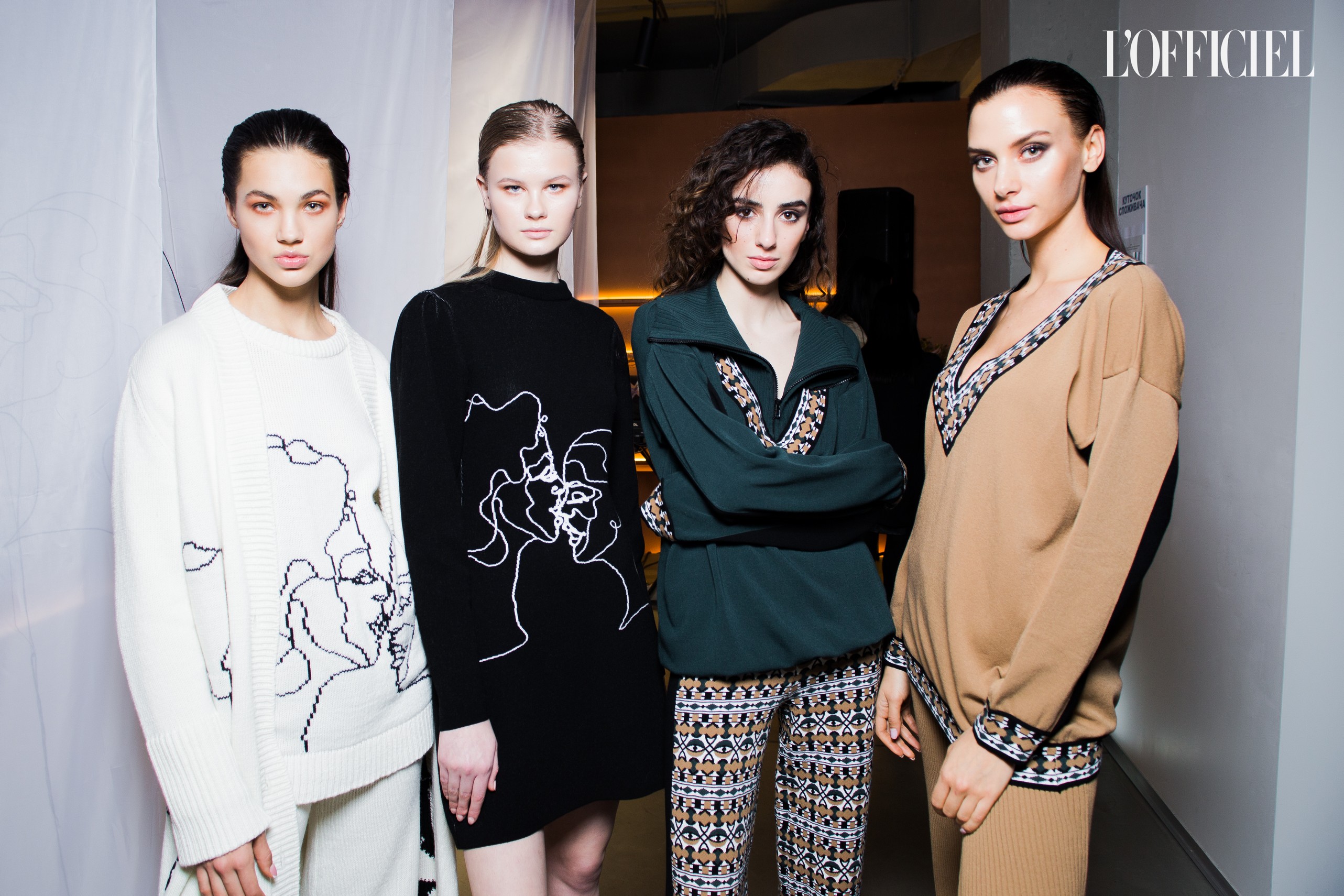 В пространстве Ol.Factory состоялась презентация осенней коллекции бренда Katerina Kvit & T.Mosca. Главный зал галереи был украшен полупрозрачными полотнами с вышитыми женскими портретами работы театральной художницы Дарьи Белой, созданными специально для дизайнерского дуэта. Среди рисунков также был главный сезонный принт T.Mosca — поцелуй пары.