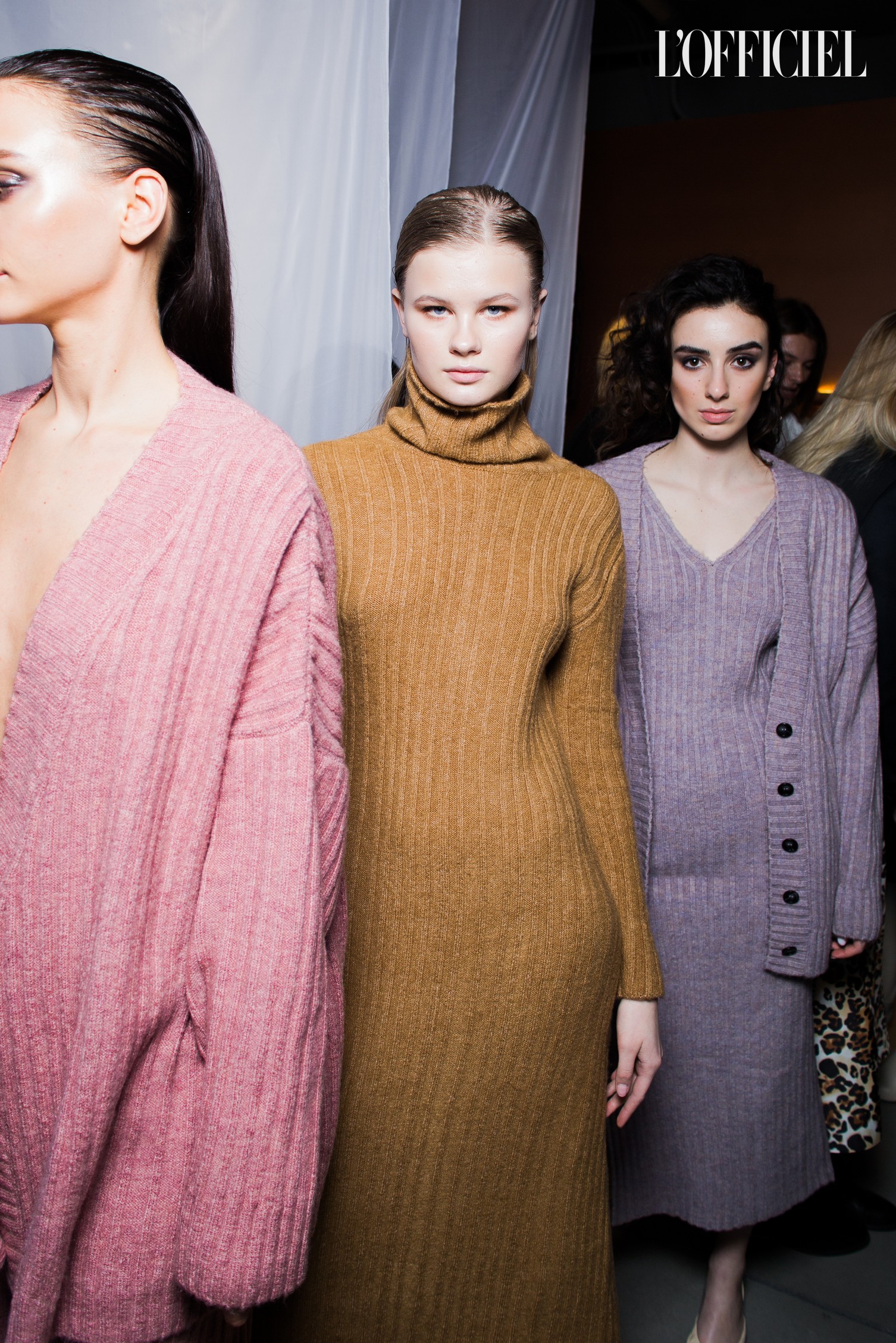 В легкой и даже романтичной обстановке модели прогуливались между гостями, позировали у цельнометаллического стола и играли в прятки между арт-полотнами. Для коллекции T.Mosca Оксана Шаповалова и Катерина Квит создали ориентальную и благородную коллекцию трикотажных вещей: свитеров, платьев и богемных кардиганов. Дизайнеров вдохновил образ девушки, попавшей в самую гущу восточного базара, где среди пряных ароматов, в колдовской дымке, она увидела собственное отражение. Этот мираж и стал одним из главных принтов коллекции, воплощенных Дарьей Белой.