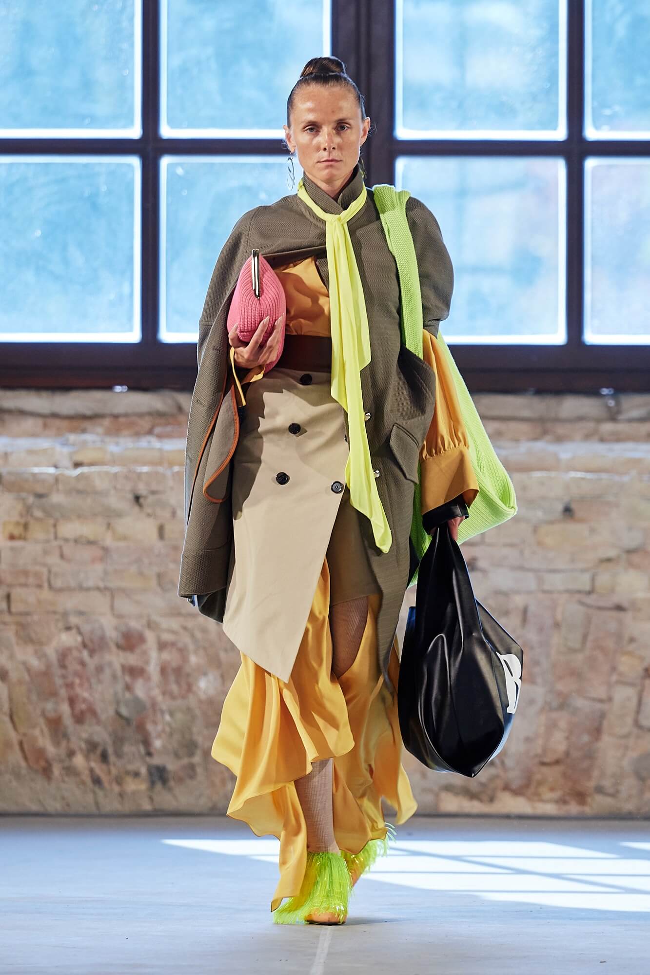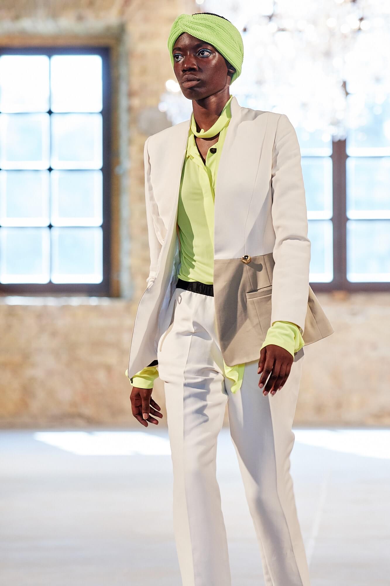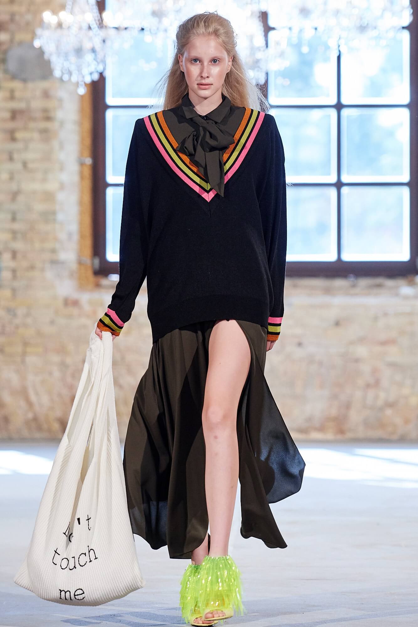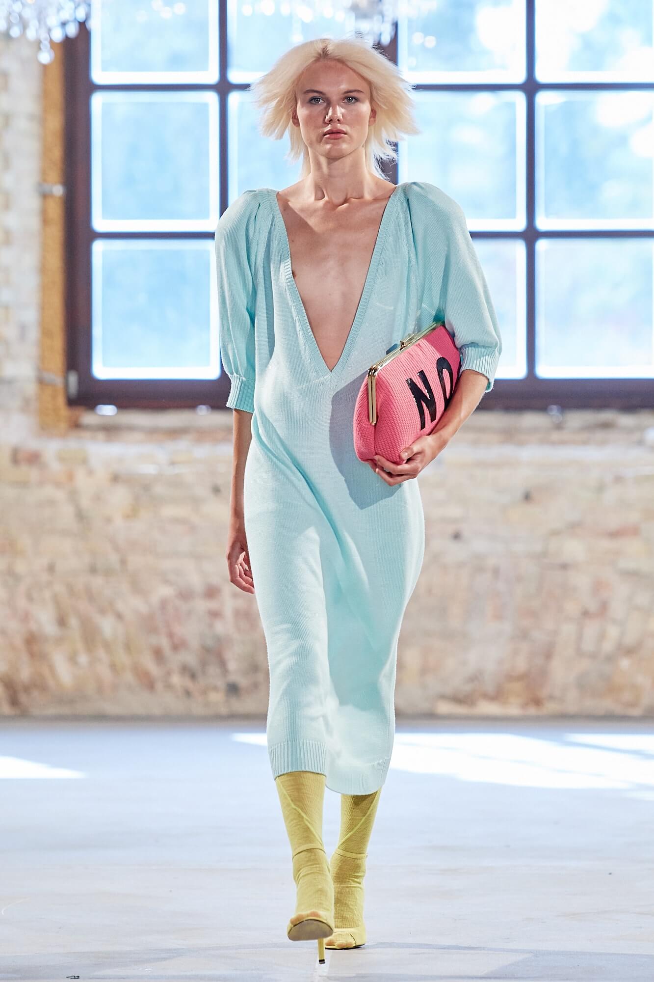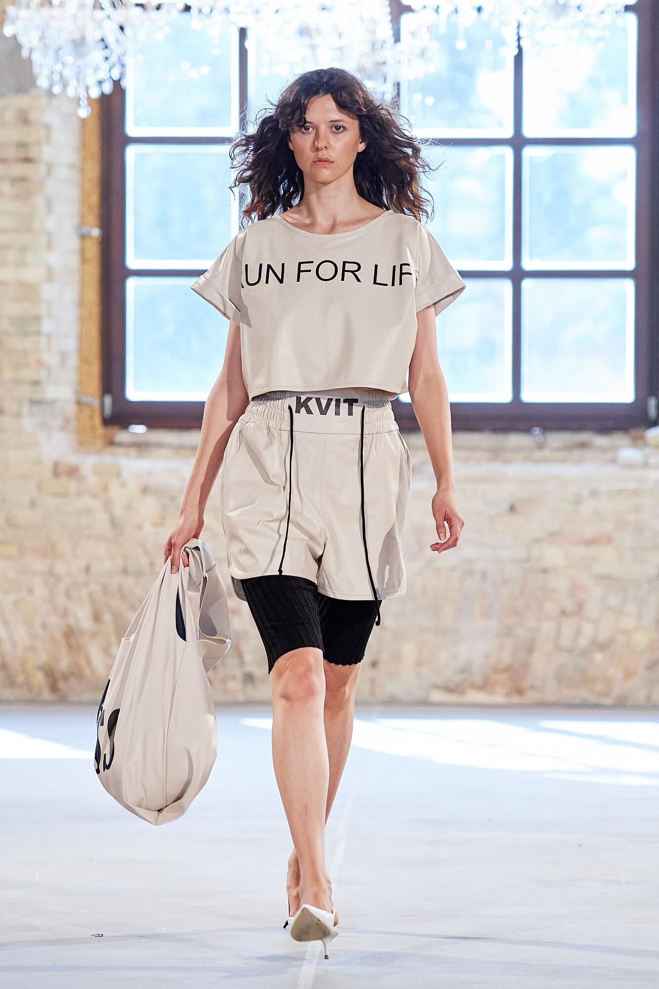 Совместно с брендом T.Mosca дизайнер Катерина Квит представила новую коллекцию, посвященную внутренней женской силе, выраженной во внешнем. Как и в осенне-зимней, в коллекции весна/лето — 2020 ставка сделана на сочетание комфорта и элегантности в рамках одного гардероба. Трикотажные худи и ниспадающие свободно по фигуре джемперы сменялись нуарными кожаными тренчами и юбками миди из костюмной ткани. Плечистые жакеты oversize дополняли мини-юбки из кожи, а кожаные бюстье модели носили вместе со спортивными брюками в неоновом декоре. Саундтреком к показу звучала песня Мадонны Like a Prayer, отчего некоторые образы коллекции вызывали теплую ностальгию в сердце. Между рядами пританцовывающих гостей модели также проходили в кожаных шортах и свободных брючных костюмах, надетых поверх футболок с надписями Bossy Girl, а одними из самых эффектных стали выход модели в платье образца времен юной Мадонны — длины миди, с объёмными рукавами и приподнятой линией плеча — и появление темнокожей красавицы-модели в асимметричном черном платье на одно плечо. В одной из самых красивых своих песен Мадонна поёт о том, что у неё не было выбора, а вот на вещах, в которых появлялись модели, свобода выбора была видна невооруженным глазом — надписи Yes и No красовались на объёмных сумках.