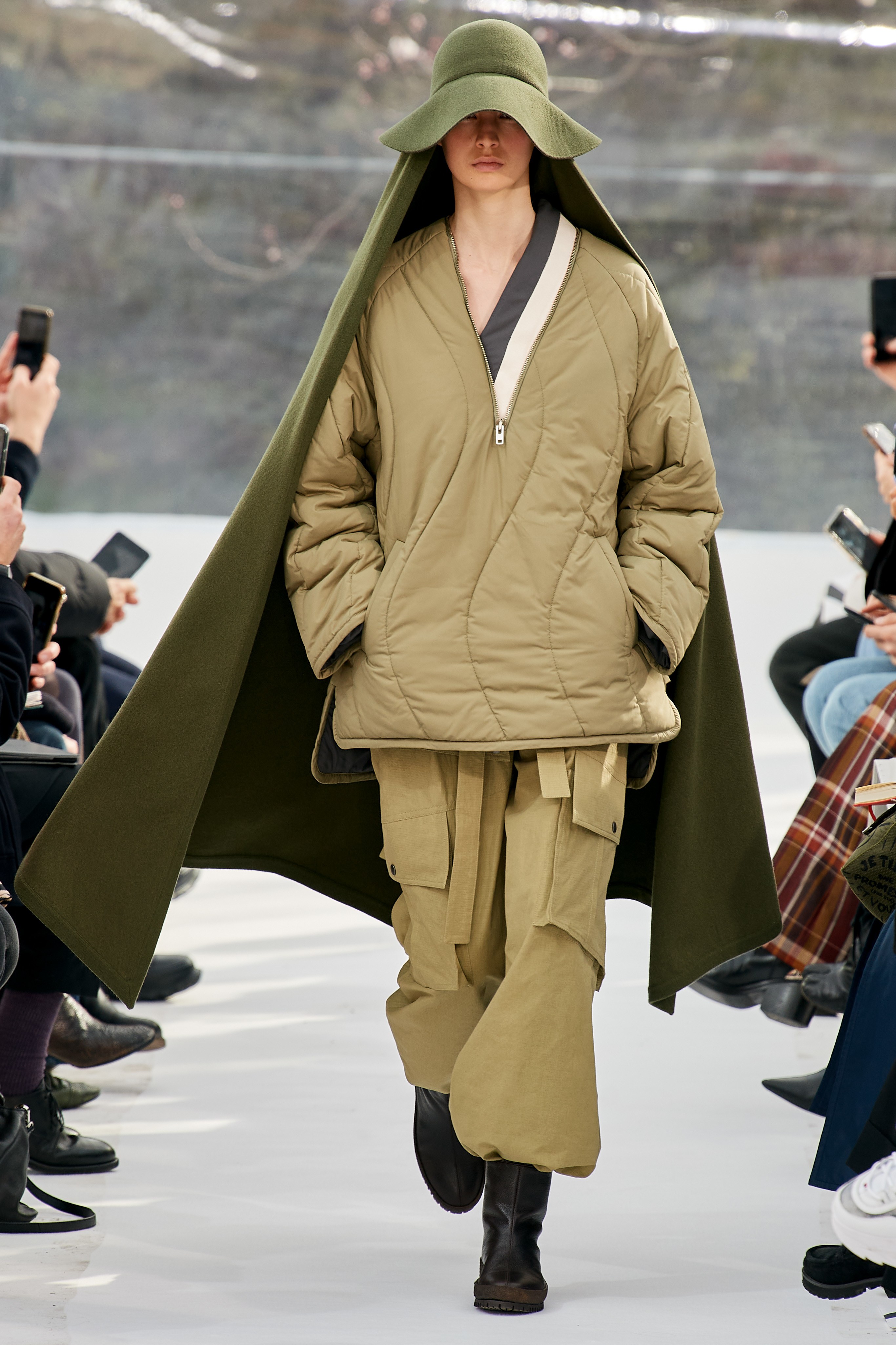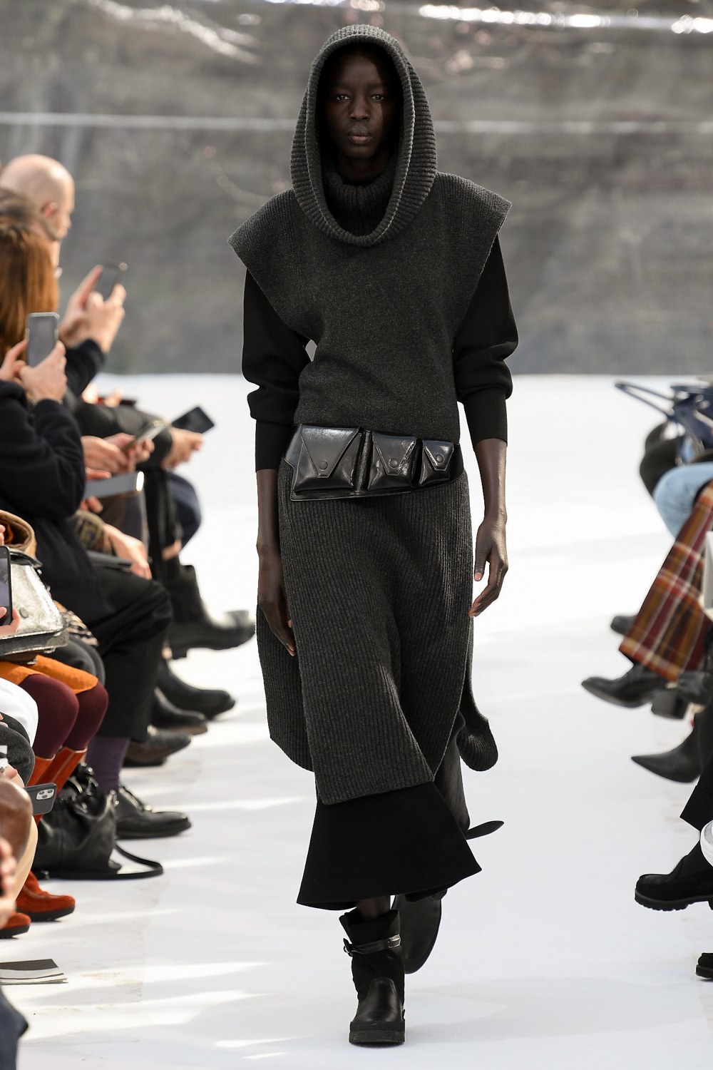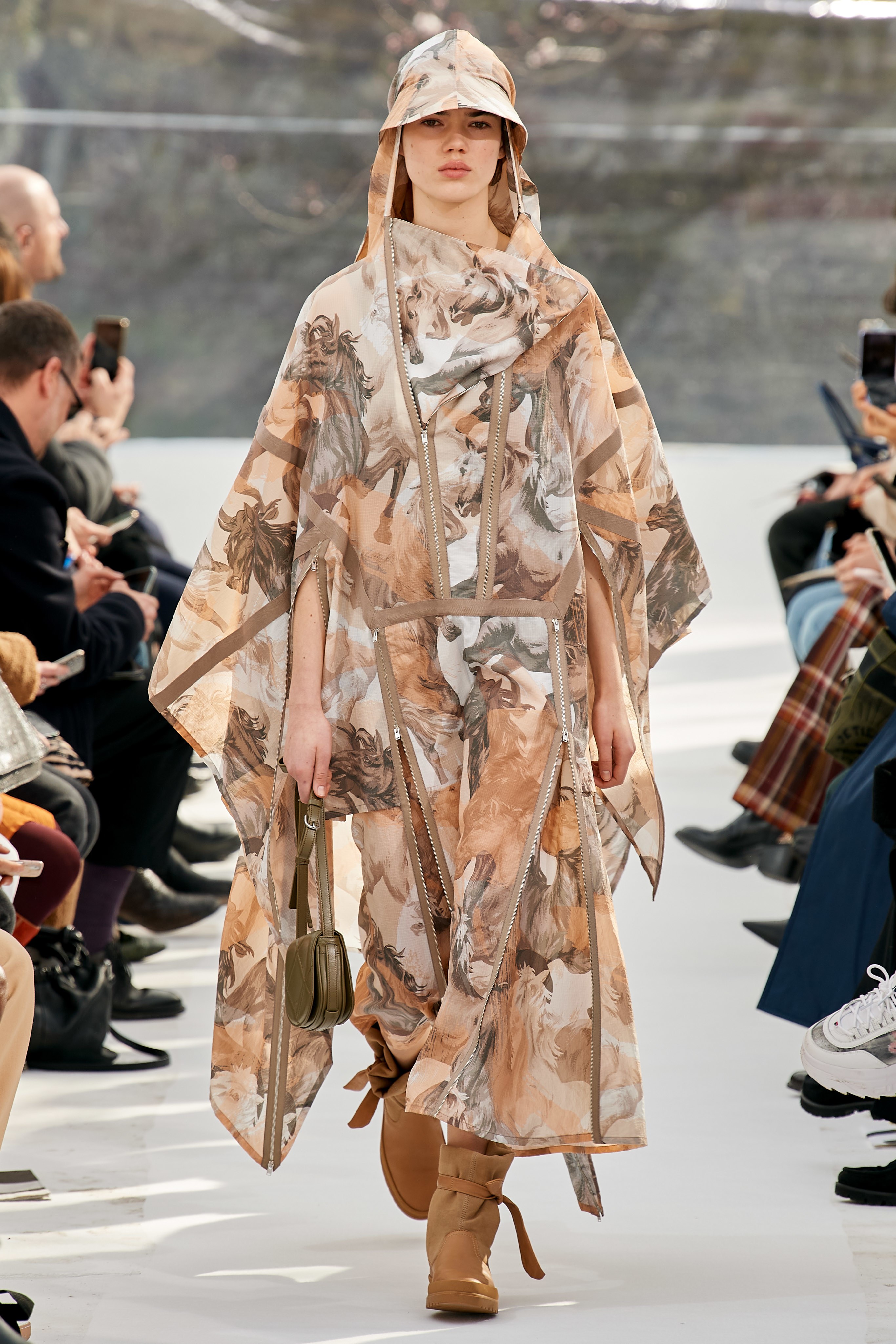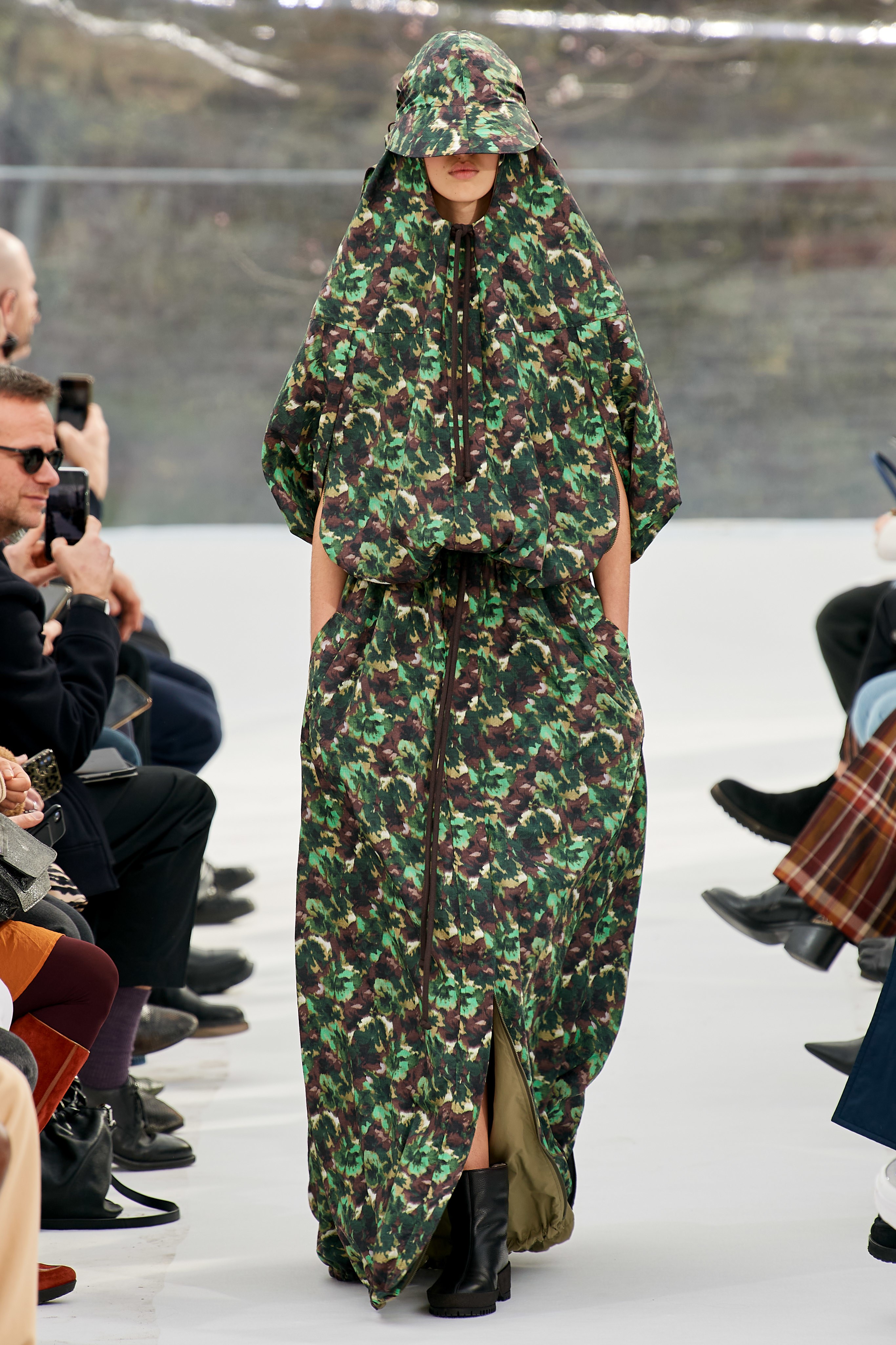 Ключевые элементы: панамки-накидки, платья-пончо, пояса-разгрузы с карманами, стеганые пальто, парки "защитных" фактур, трикотажные платья макси