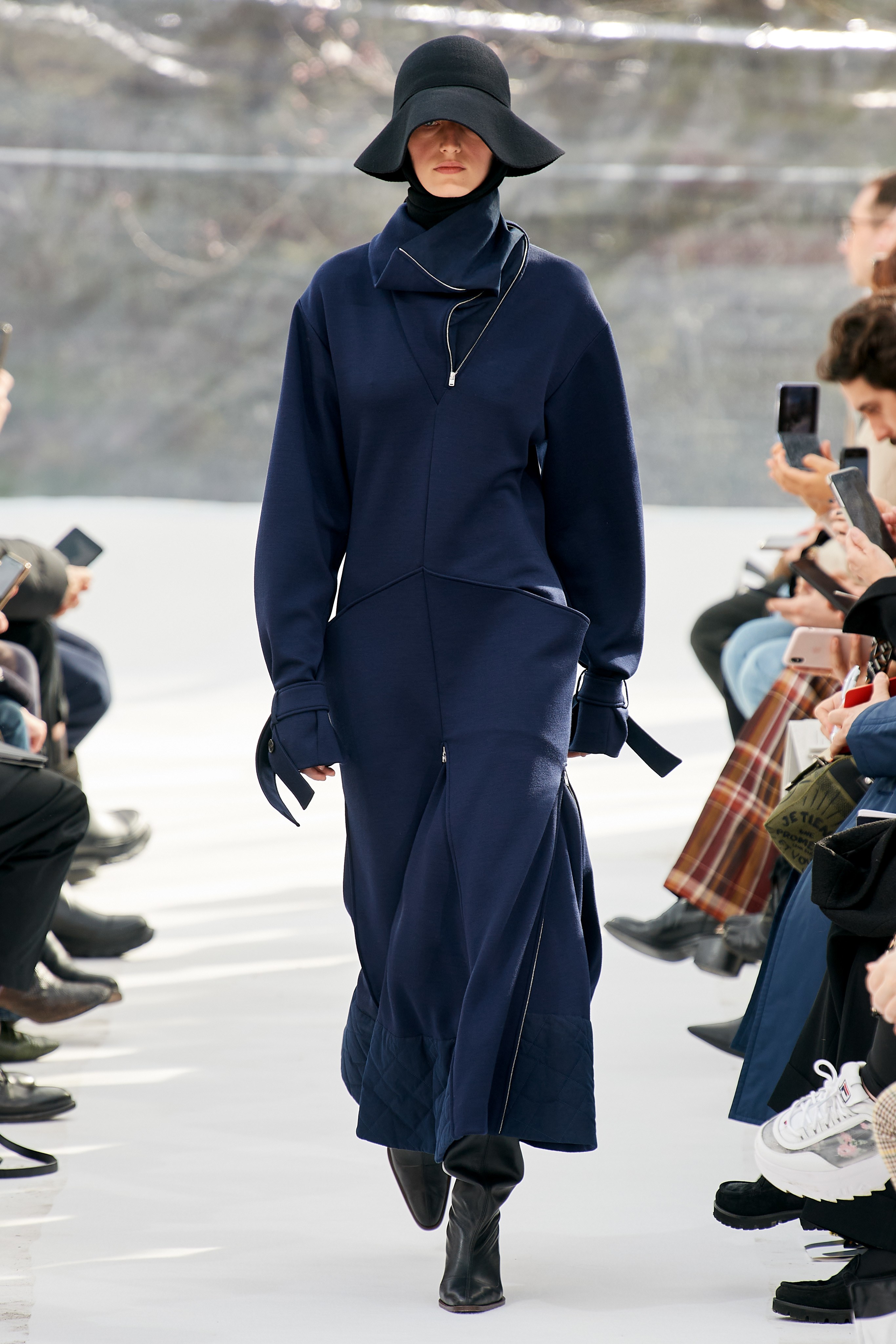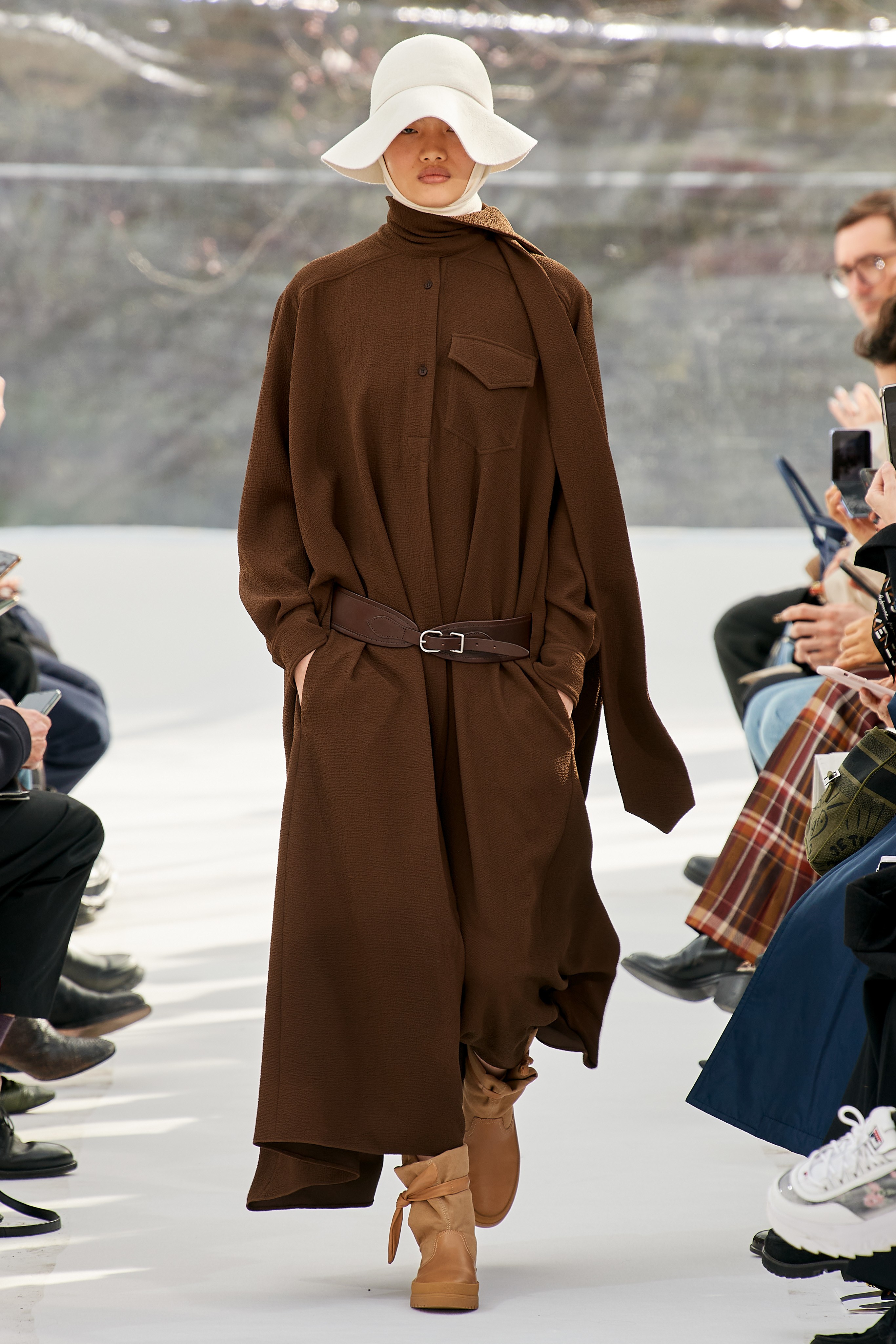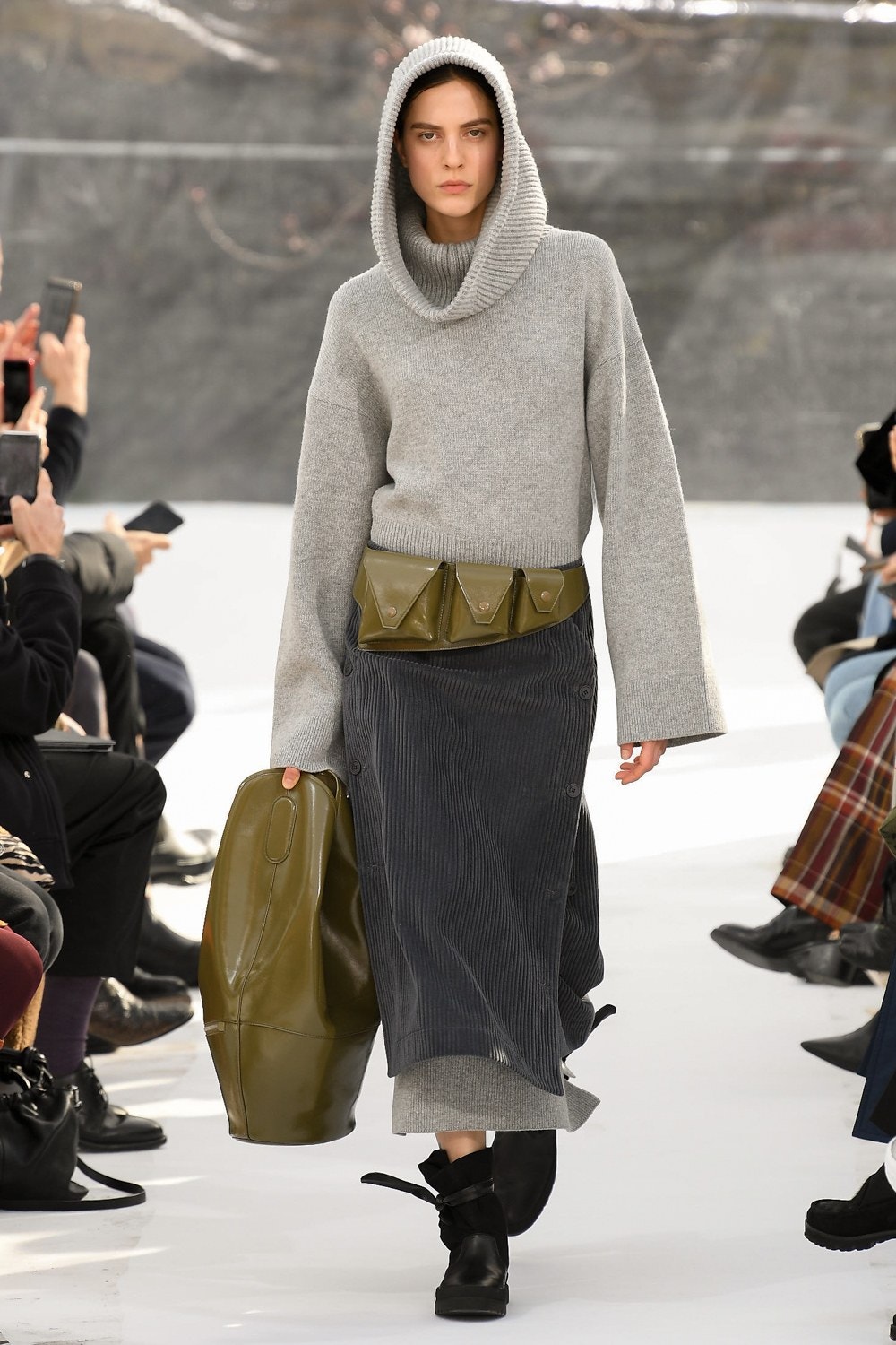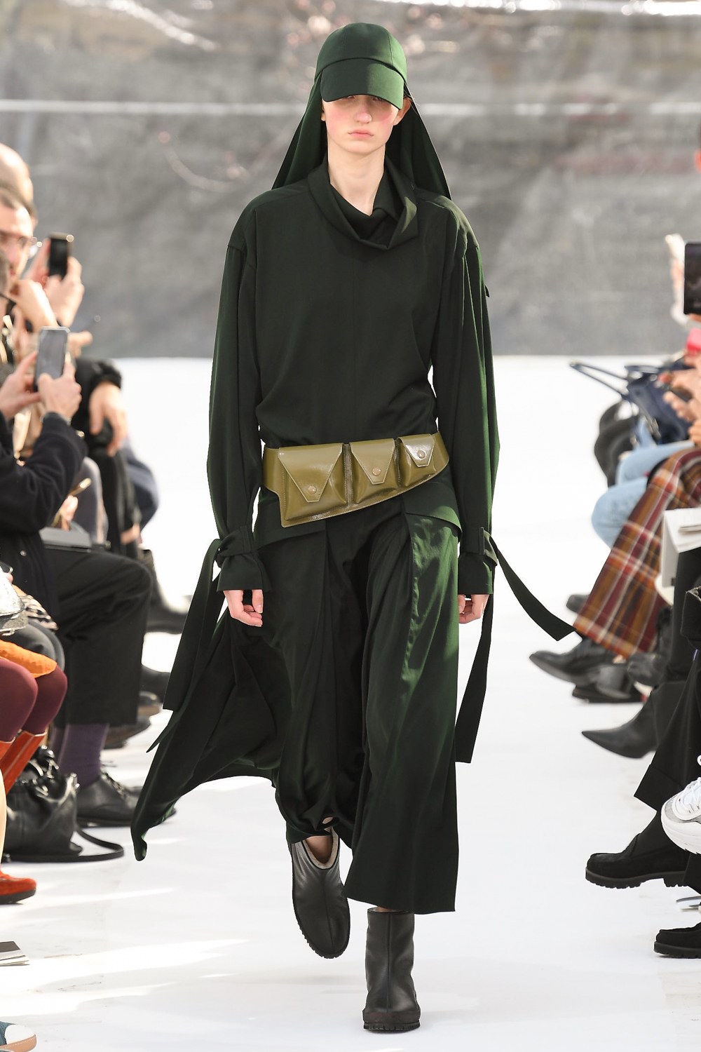 Ключевые элементы: панамки-накидки, платья-пончо, пояса-разгрузы с карманами, стеганые пальто, парки "защитных" фактур, трикотажные платья макси