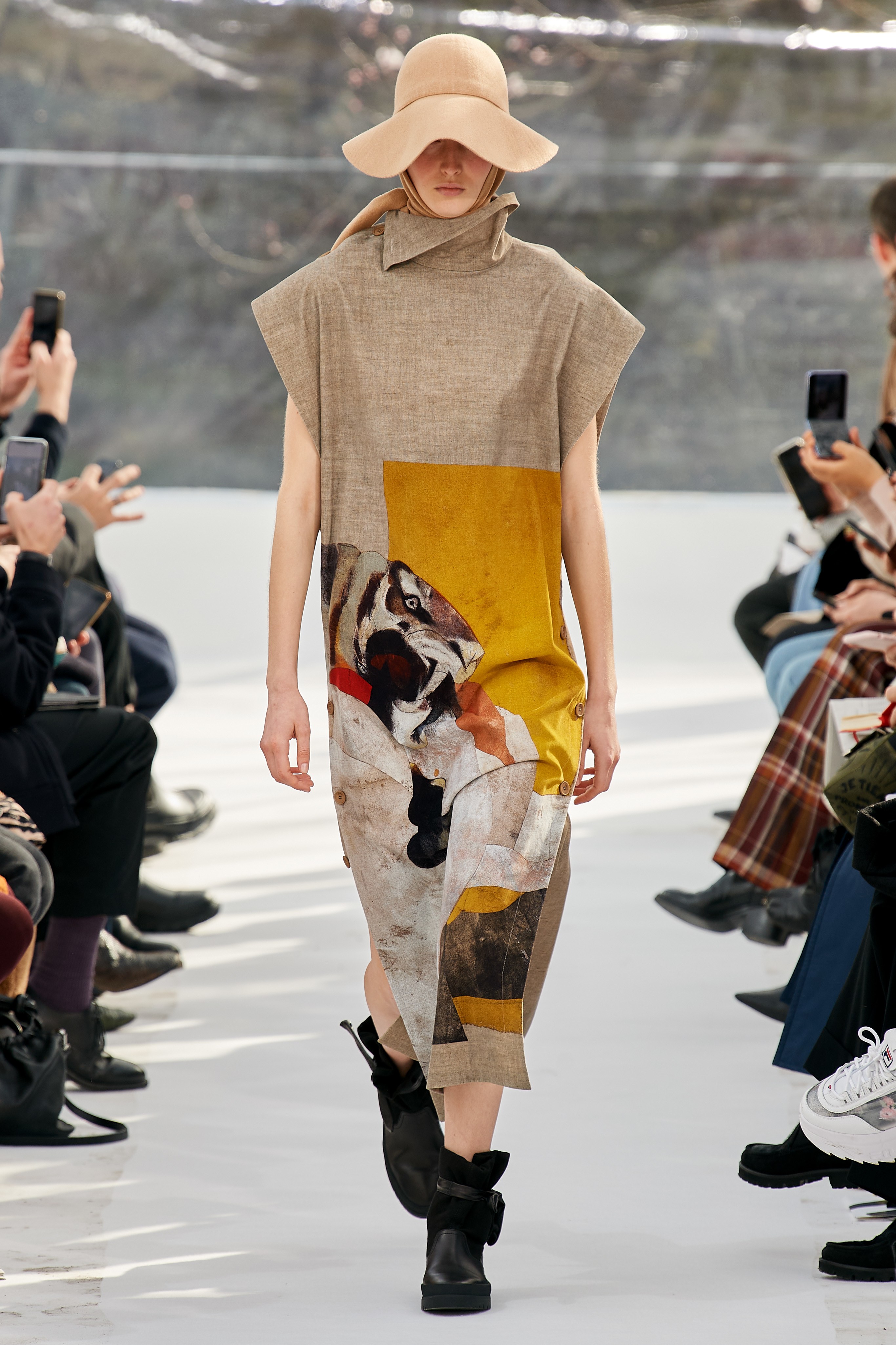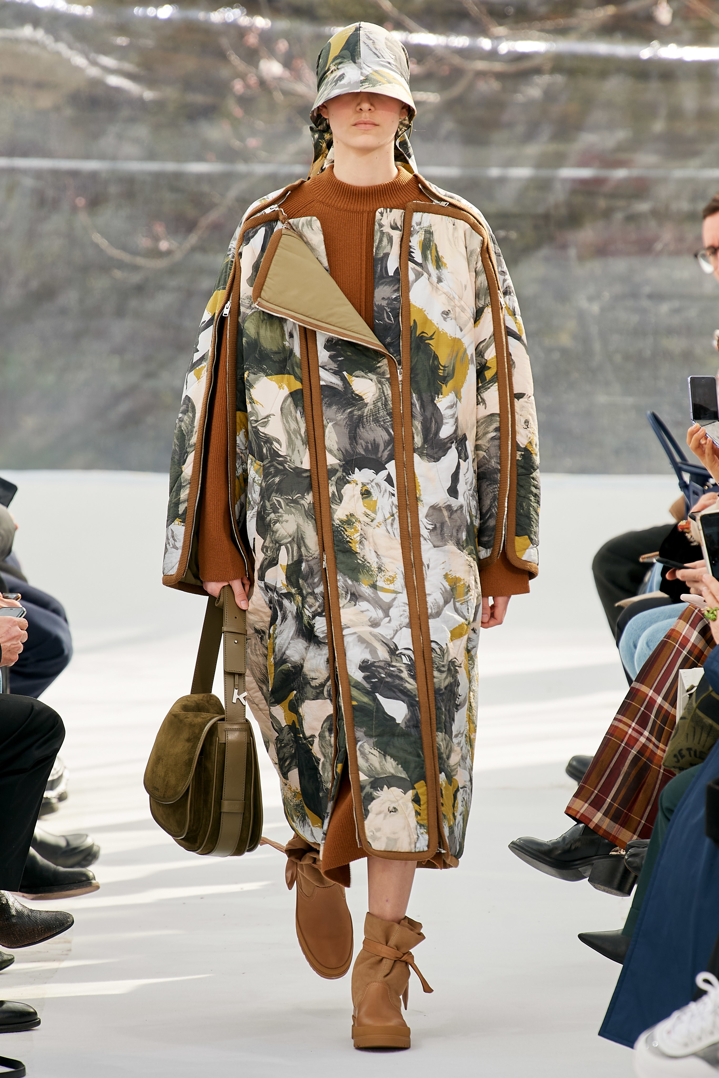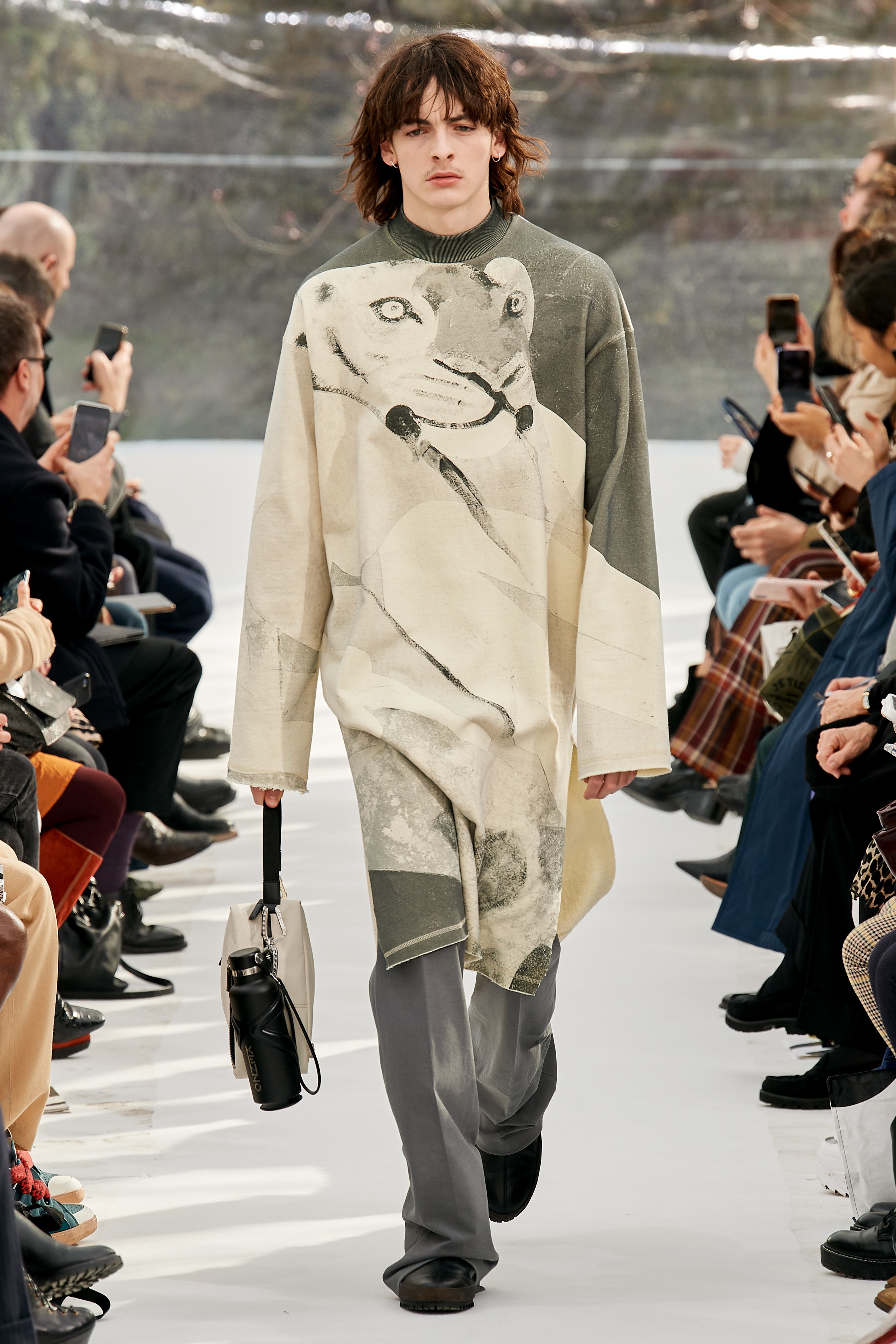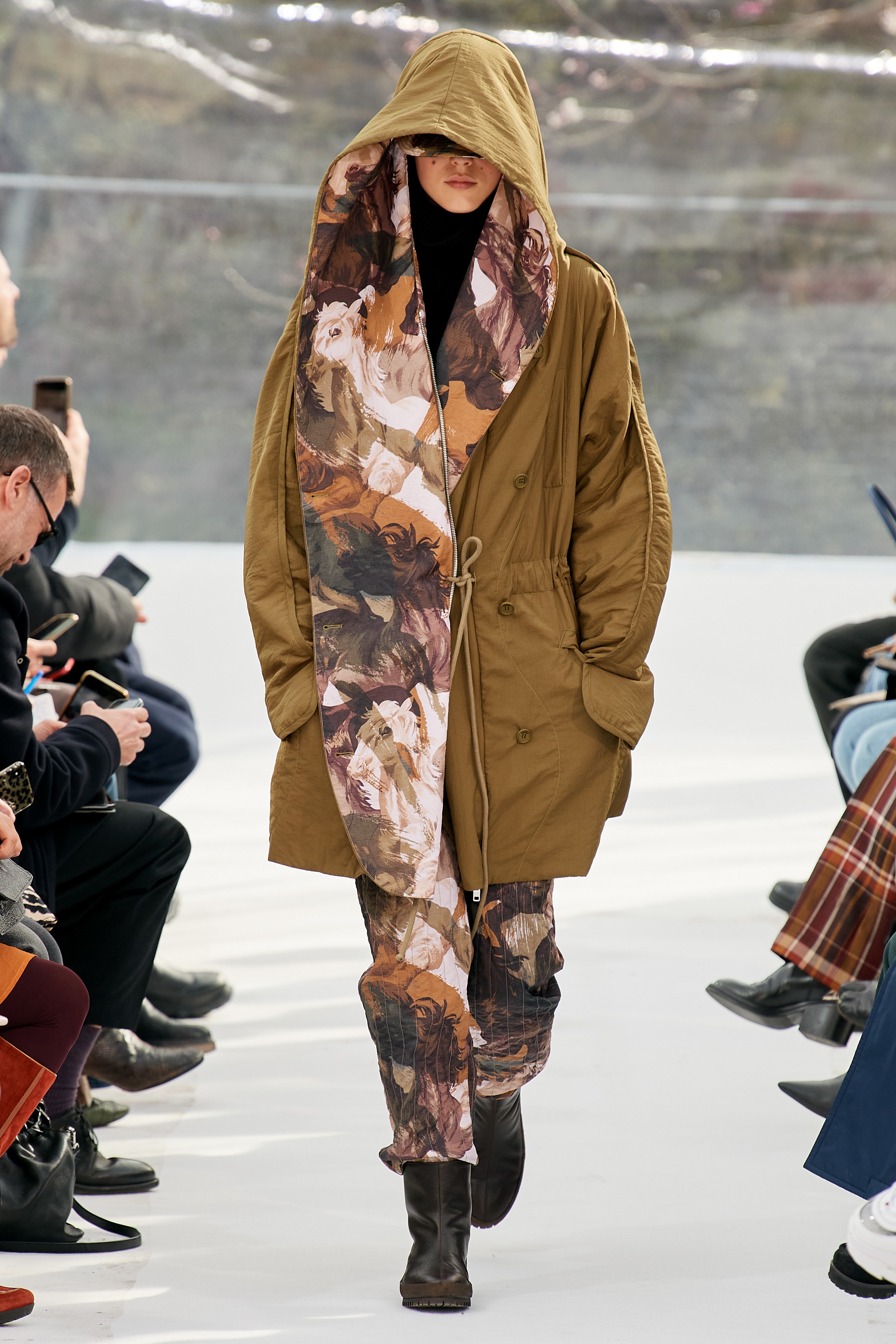 Референсом к самой коллекции стали традиционные женские костюмы Азорских островов — черные мантии с огромными капюшонами-куполами. Такой наряд-дом дизайнер представил в нескольких интерпретациях: объёмных пальто и парках с панамами, к которым крепились мантии, мягких свитерах с капюшонами и стеганом тренче с гигантским цельнокроеным капюшоном. Одним из главных знаков коллекции стали портреты диких животных: тигров, львов и барсов.
