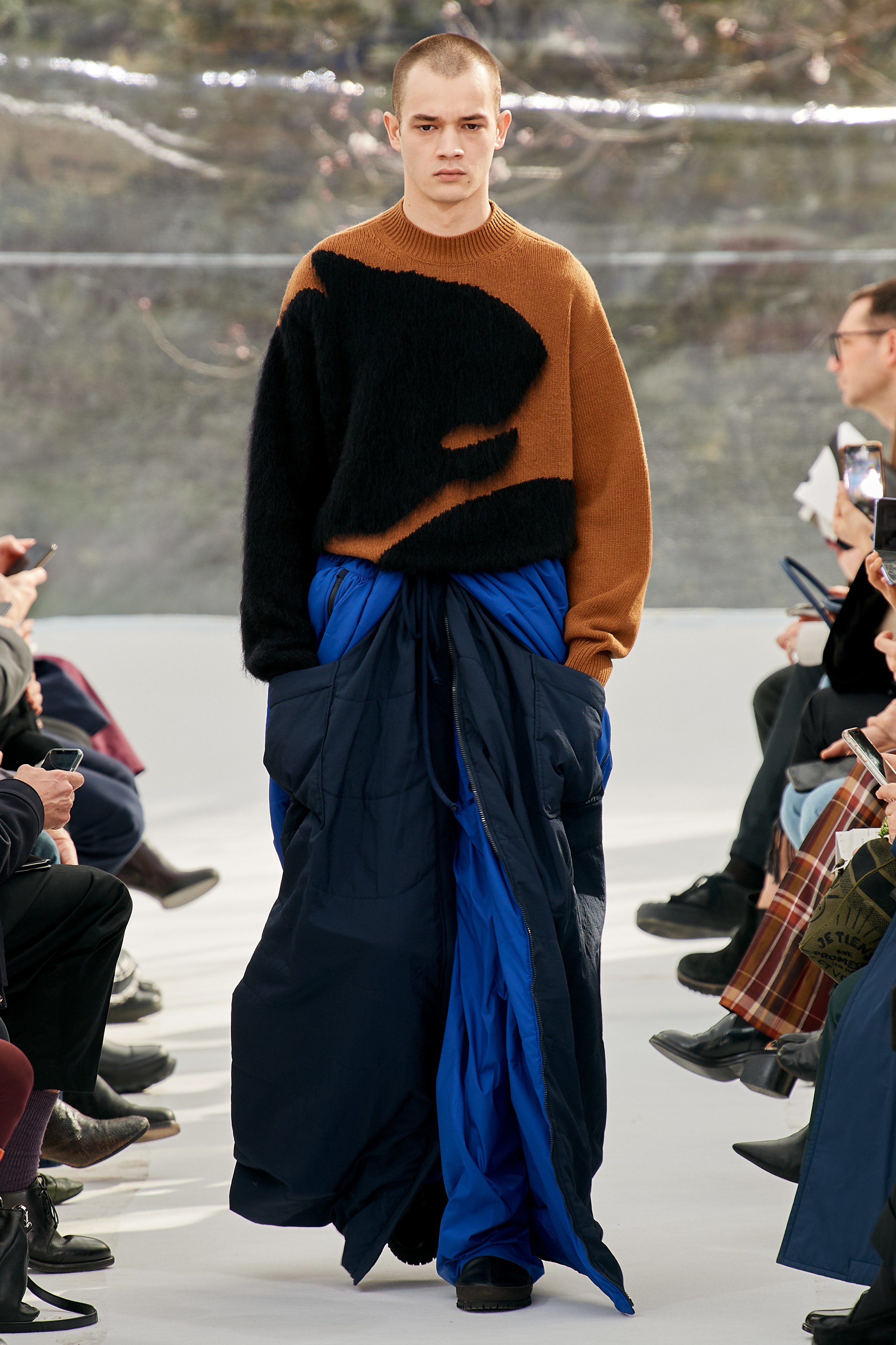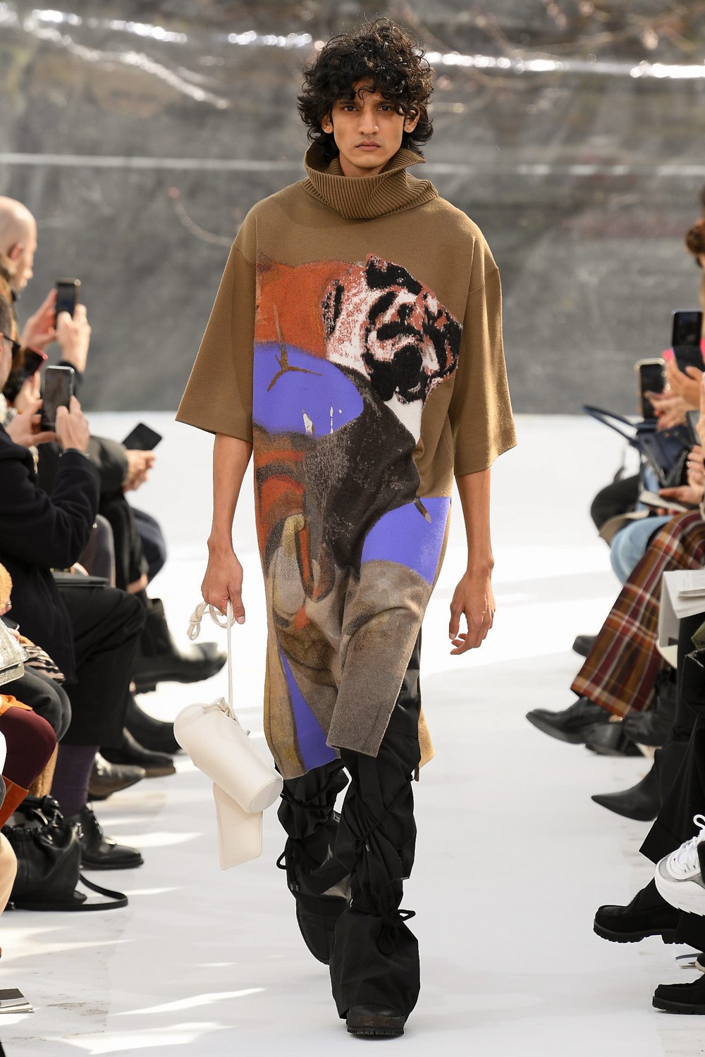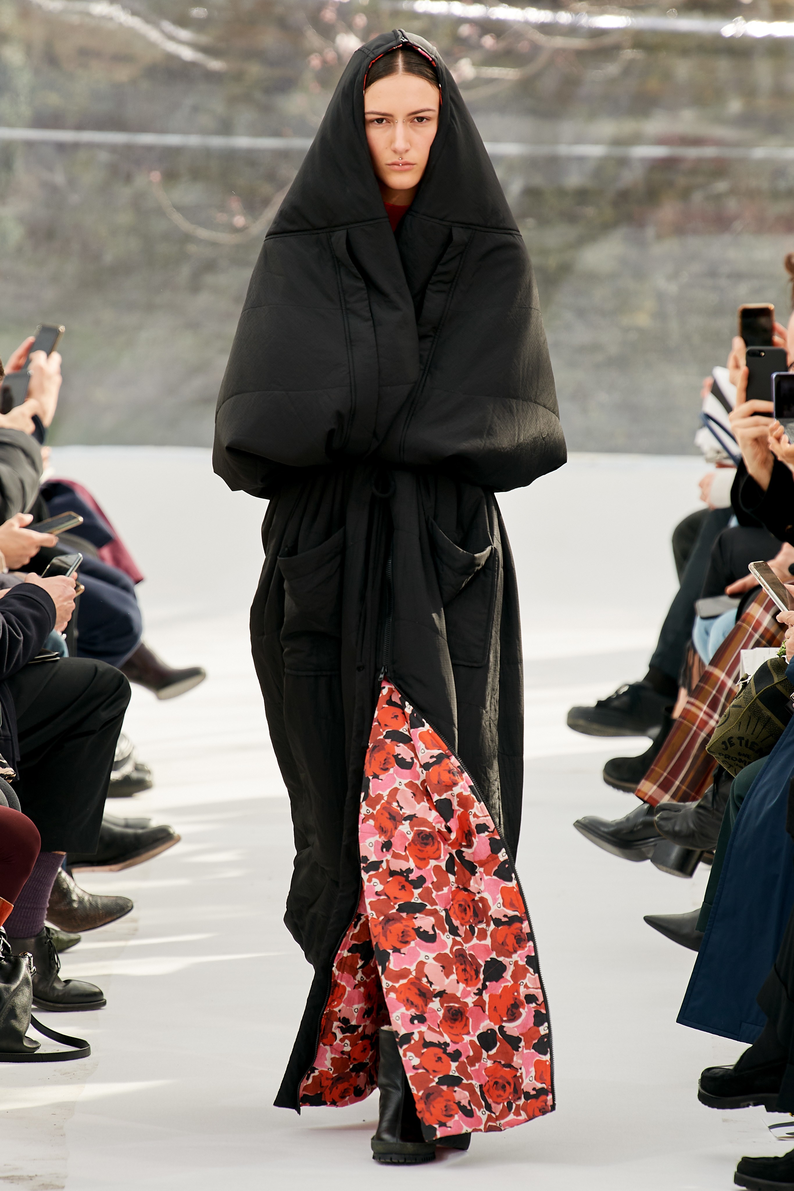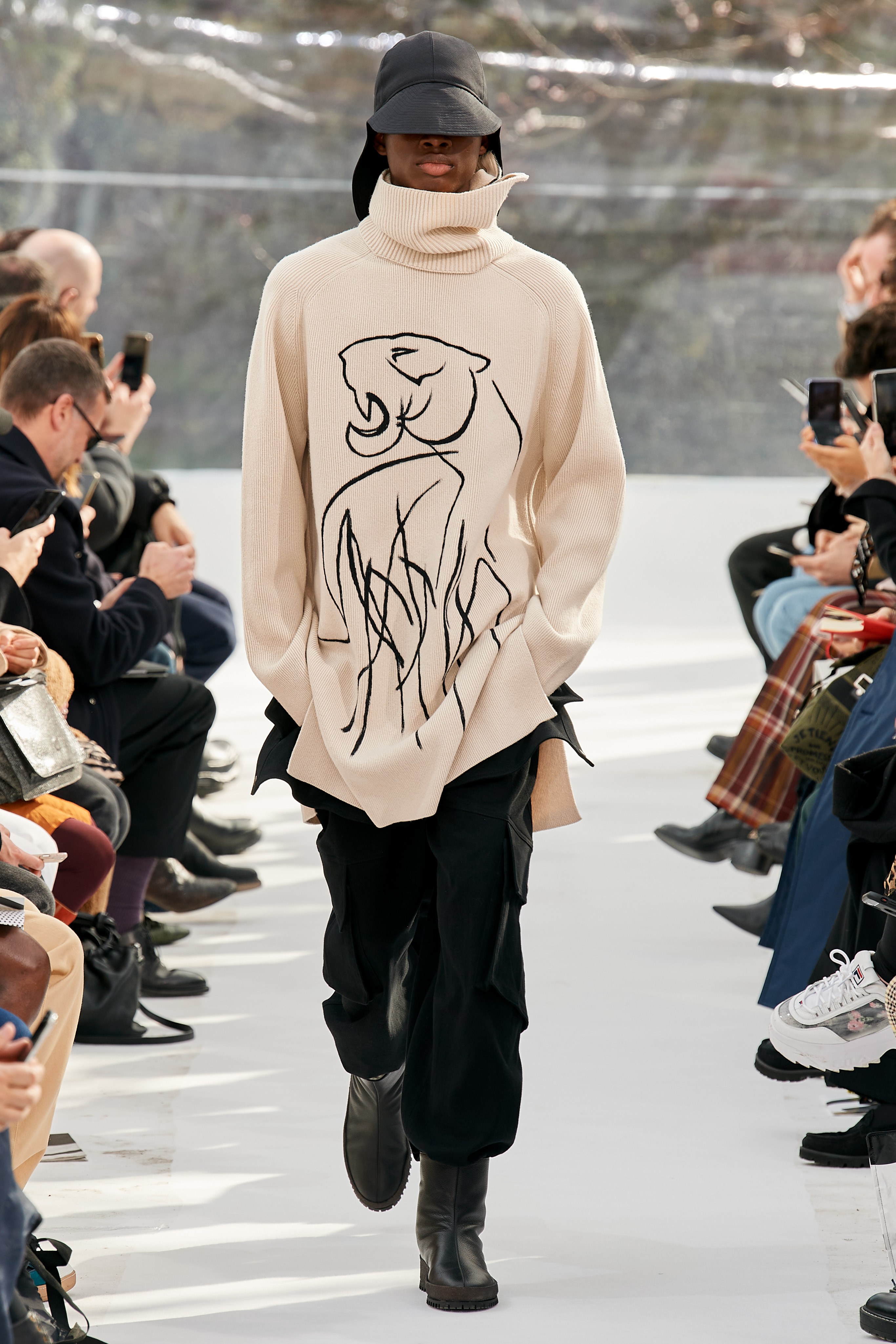 Референсом к самой коллекции стали традиционные женские костюмы Азорских островов — черные мантии с огромными капюшонами-куполами. Такой наряд-дом дизайнер представил в нескольких интерпретациях: объёмных пальто и парках с панамами, к которым крепились мантии, мягких свитерах с капюшонами и стеганом тренче с гигантским цельнокроеным капюшоном. Одним из главных знаков коллекции стали портреты диких животных: тигров, львов и барсов.