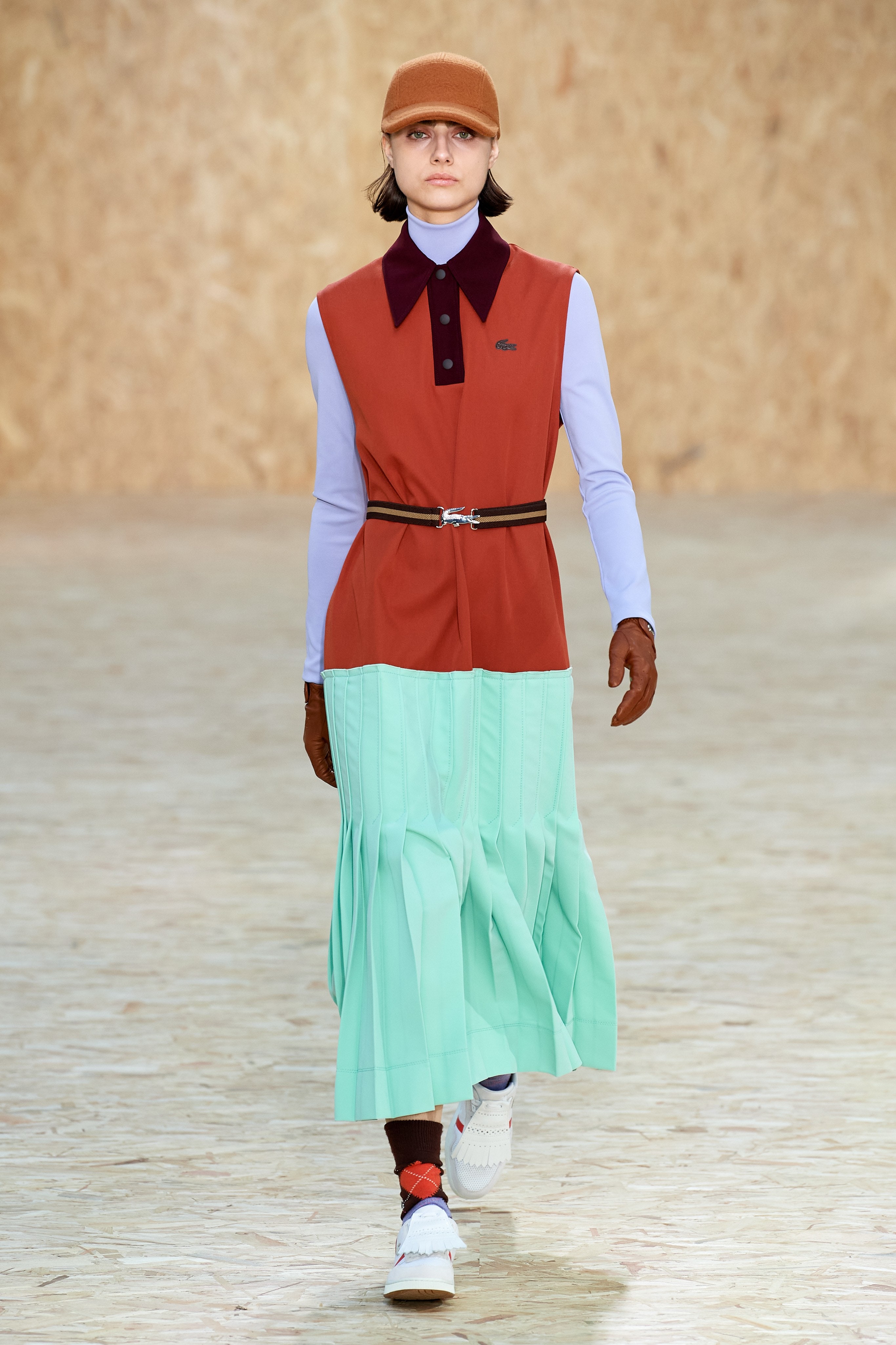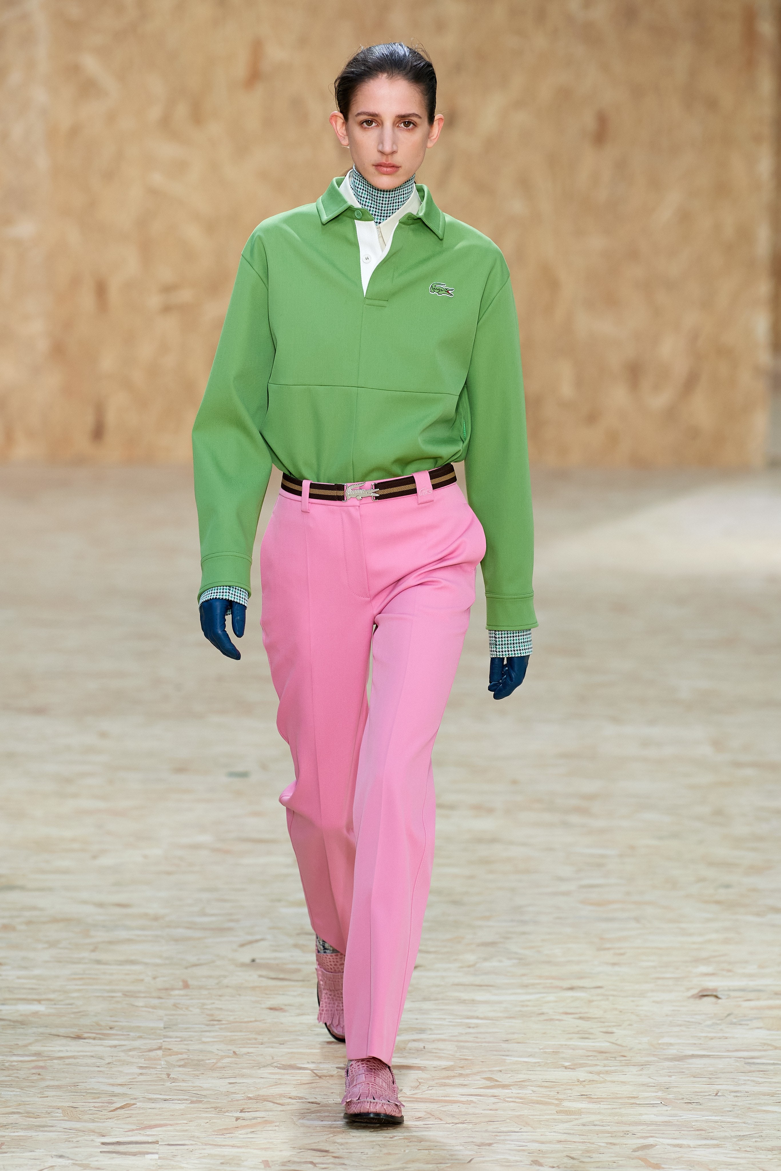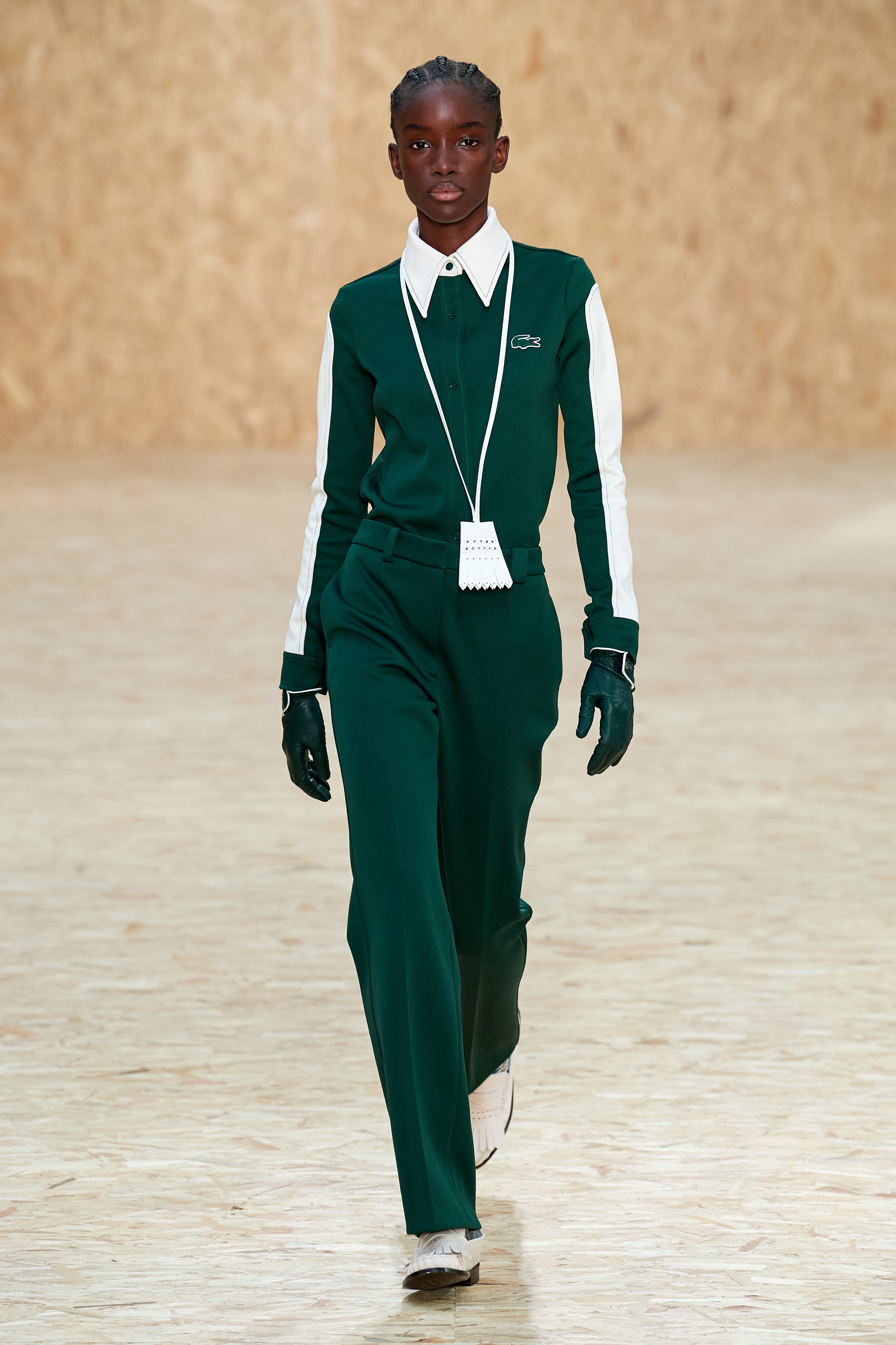 За 2 года работы на посту креативного директора Lacoste дизайнер Луиза Троттер придала эстетике марки черты городского шика и буржуазной утонченности. Последняя, осенняя коллекция, например, пропитана духом 1920-х, когда спорт, мода и бурное развитие общества сливались воедино, как, впрочем, и сейчас. На подиуме были шелковые юбки миди и блузы с острыми воротниками, свободные спортивные брюки с посадкой на талии, белые платья античных силуэтов и брючные костюмы ярких оттенков.