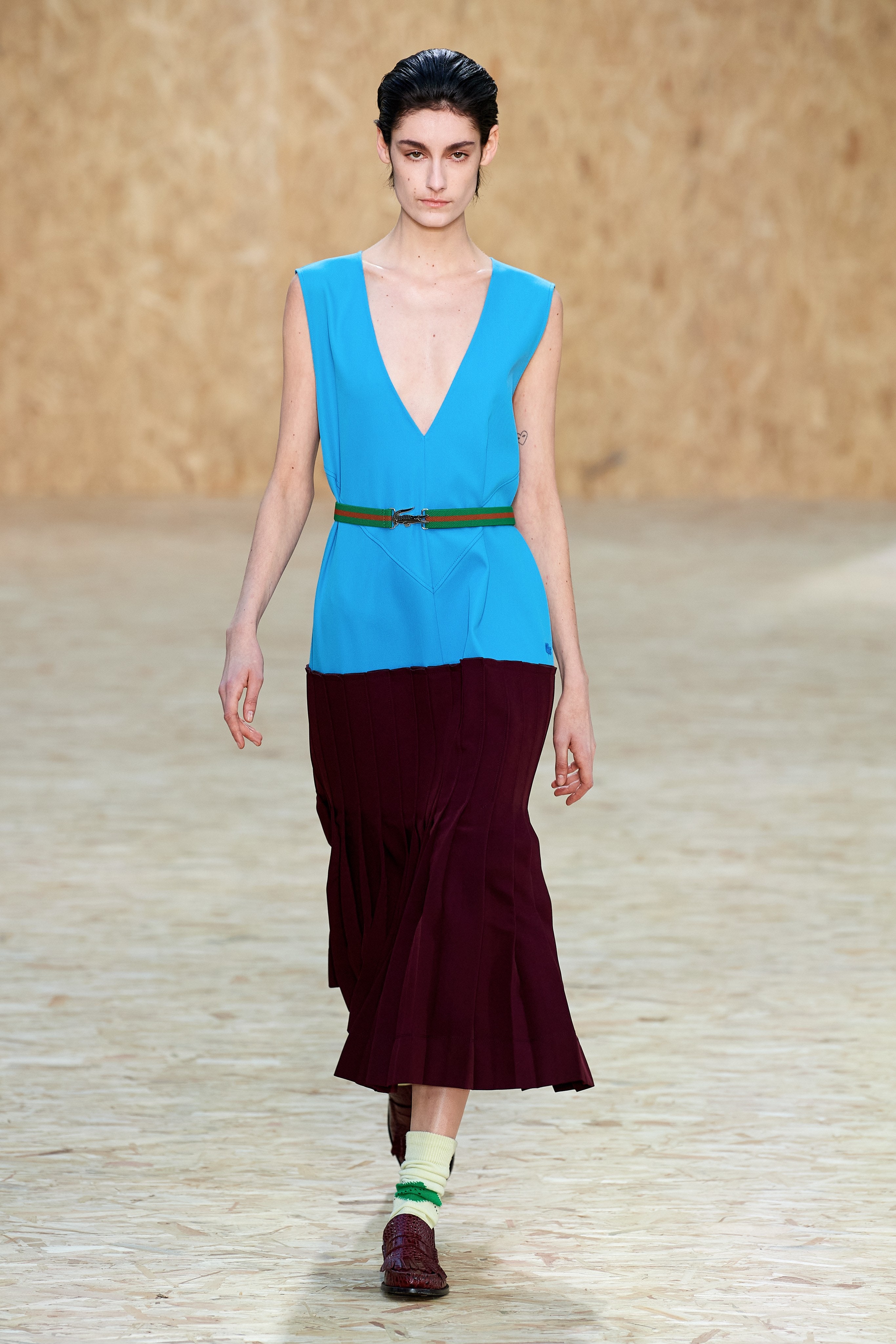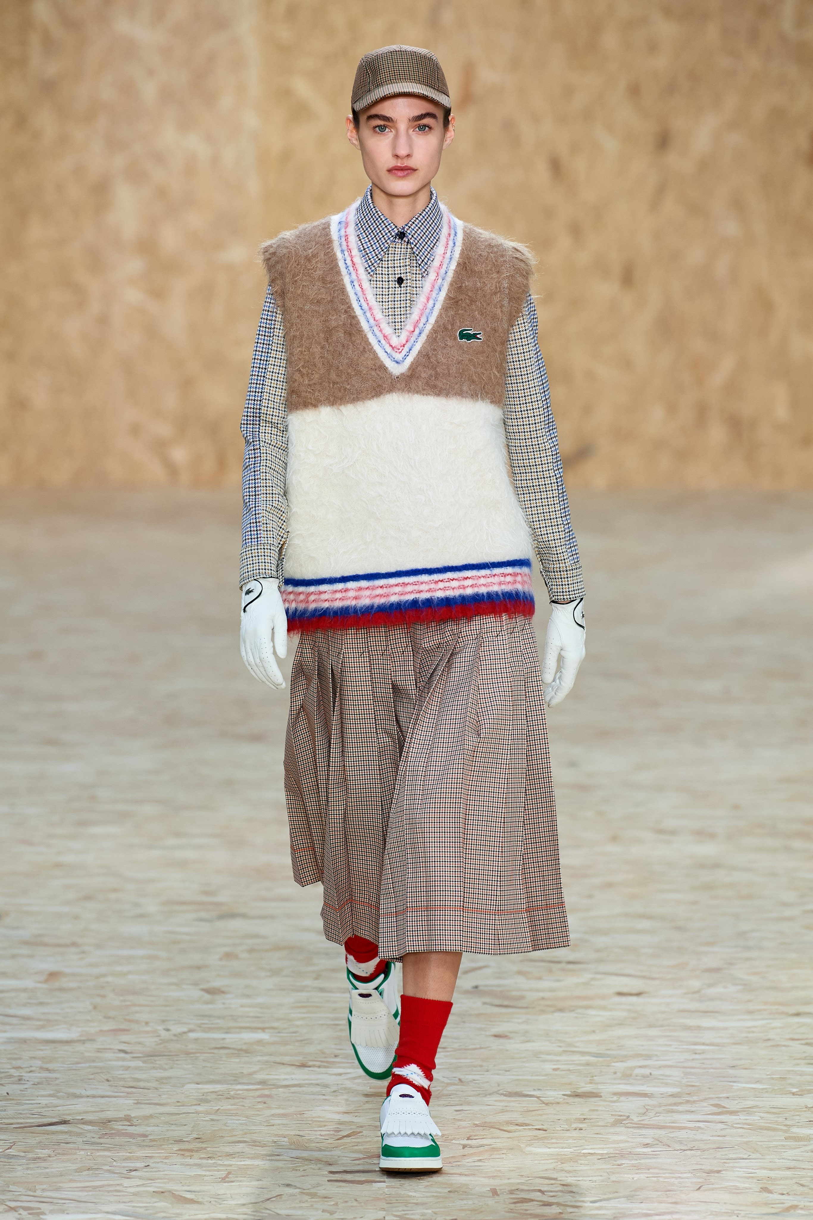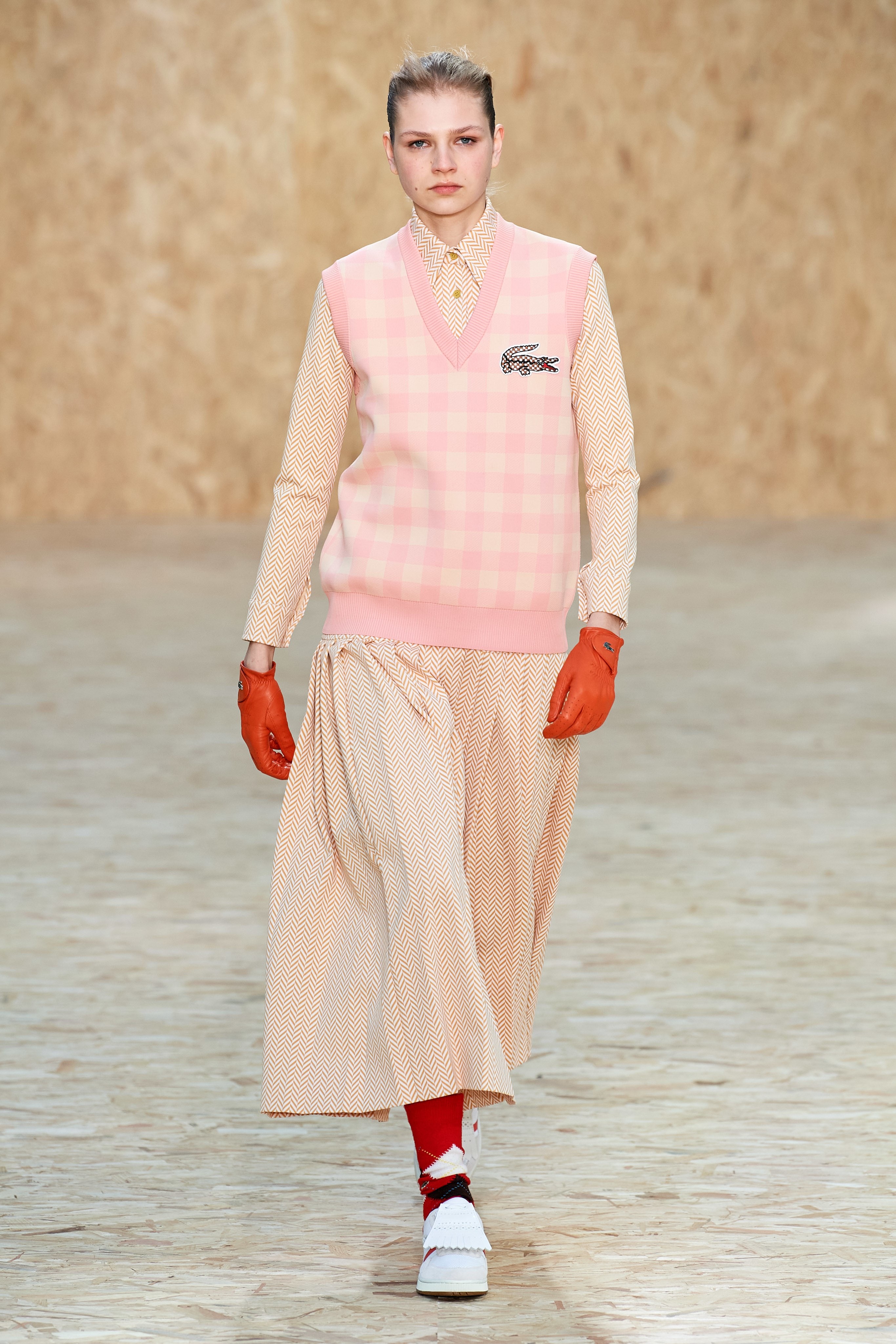 За 2 года работы на посту креативного директора Lacoste дизайнер Луиза Троттер придала эстетике марки черты городского шика и буржуазной утонченности. Последняя, осенняя коллекция, например, пропитана духом 1920-х, когда спорт, мода и бурное развитие общества сливались воедино, как, впрочем, и сейчас. На подиуме были шелковые юбки миди и блузы с острыми воротниками, свободные спортивные брюки с посадкой на талии, белые платья античных силуэтов и брючные костюмы ярких оттенков.