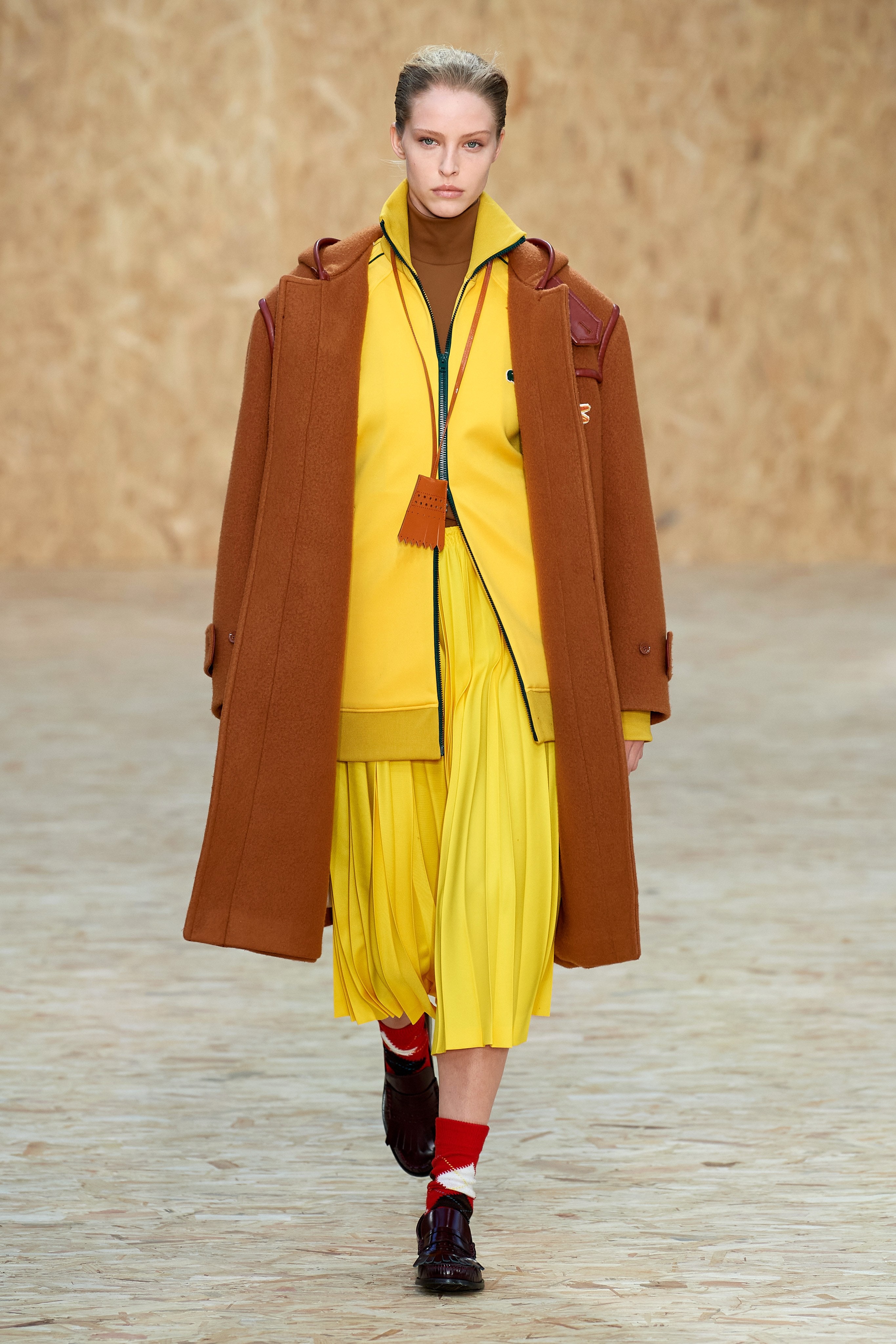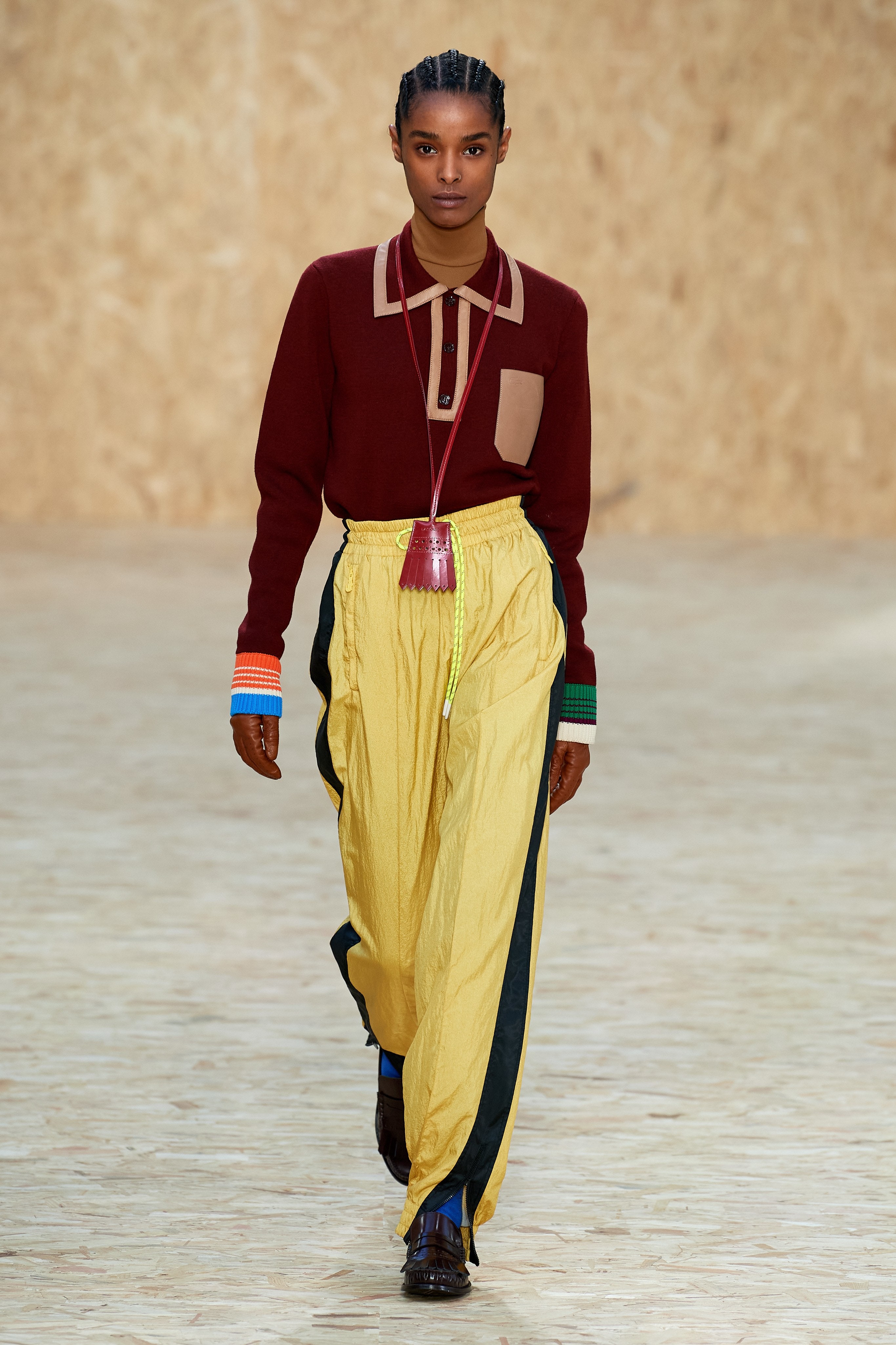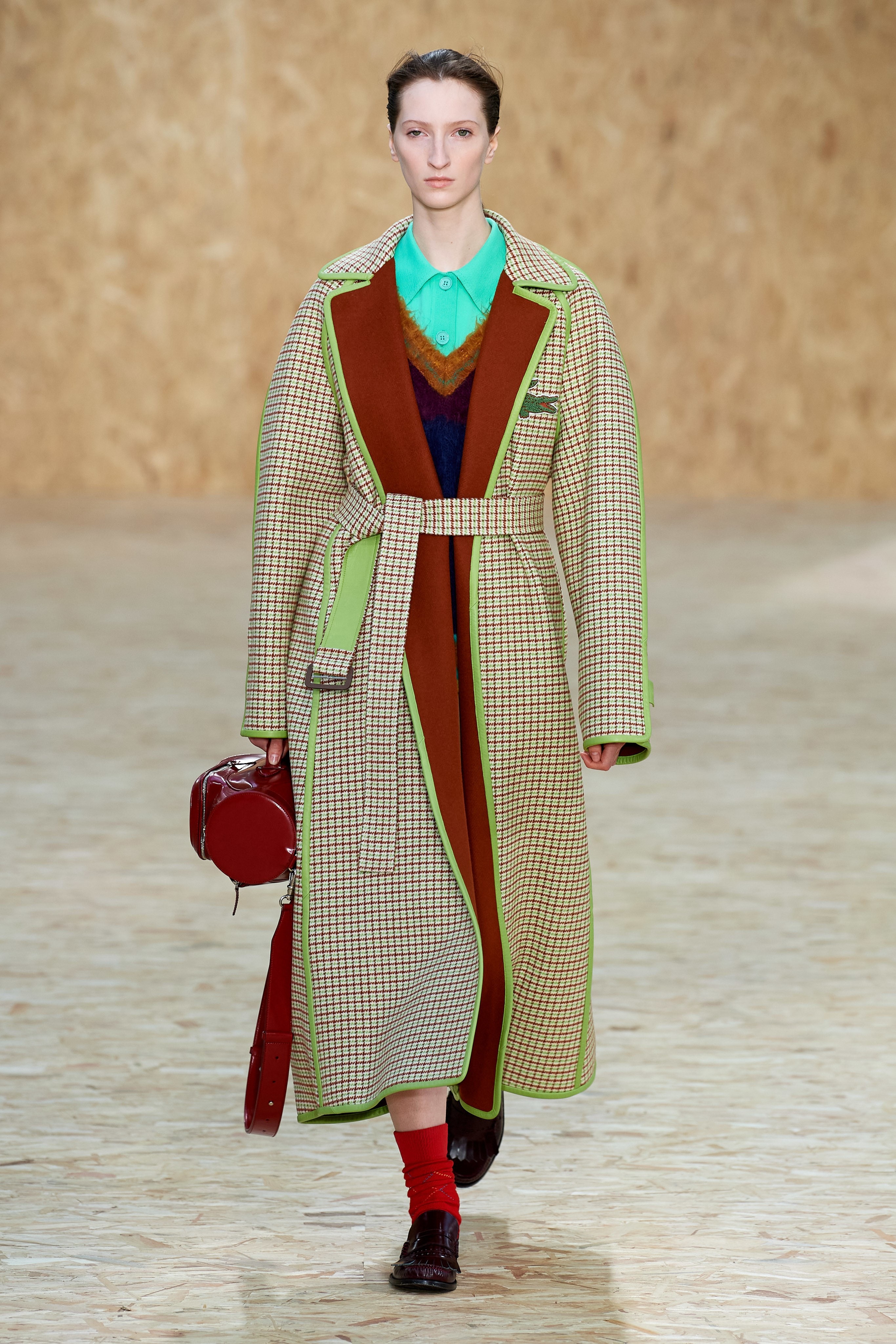Ключевые элементы: вязаные джемперы, удлиненные жакеты, брюки конфетных цветов, юбки миди, свободные брючные костюмы, мохеровые жилеты, спортивные костюмы в духе "Семейки Тененбаум".