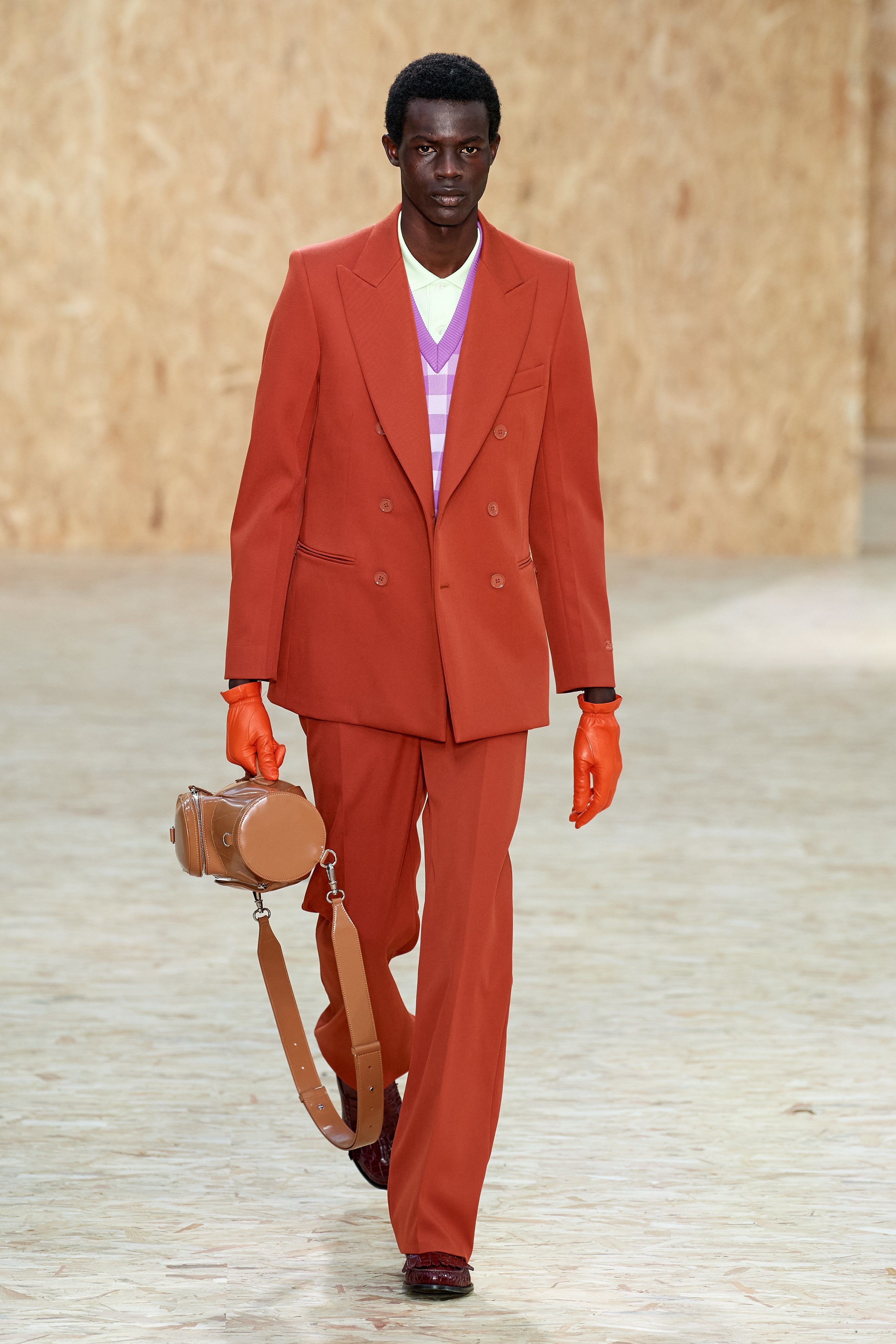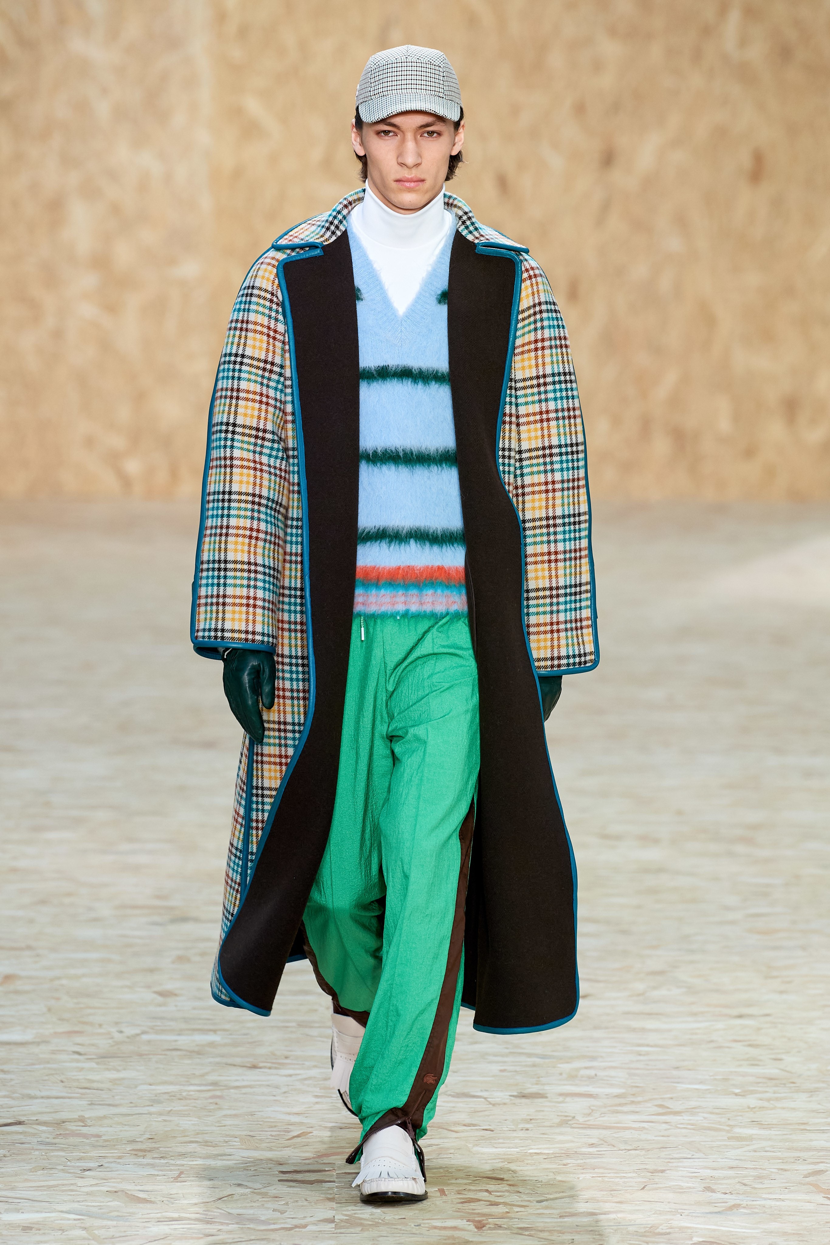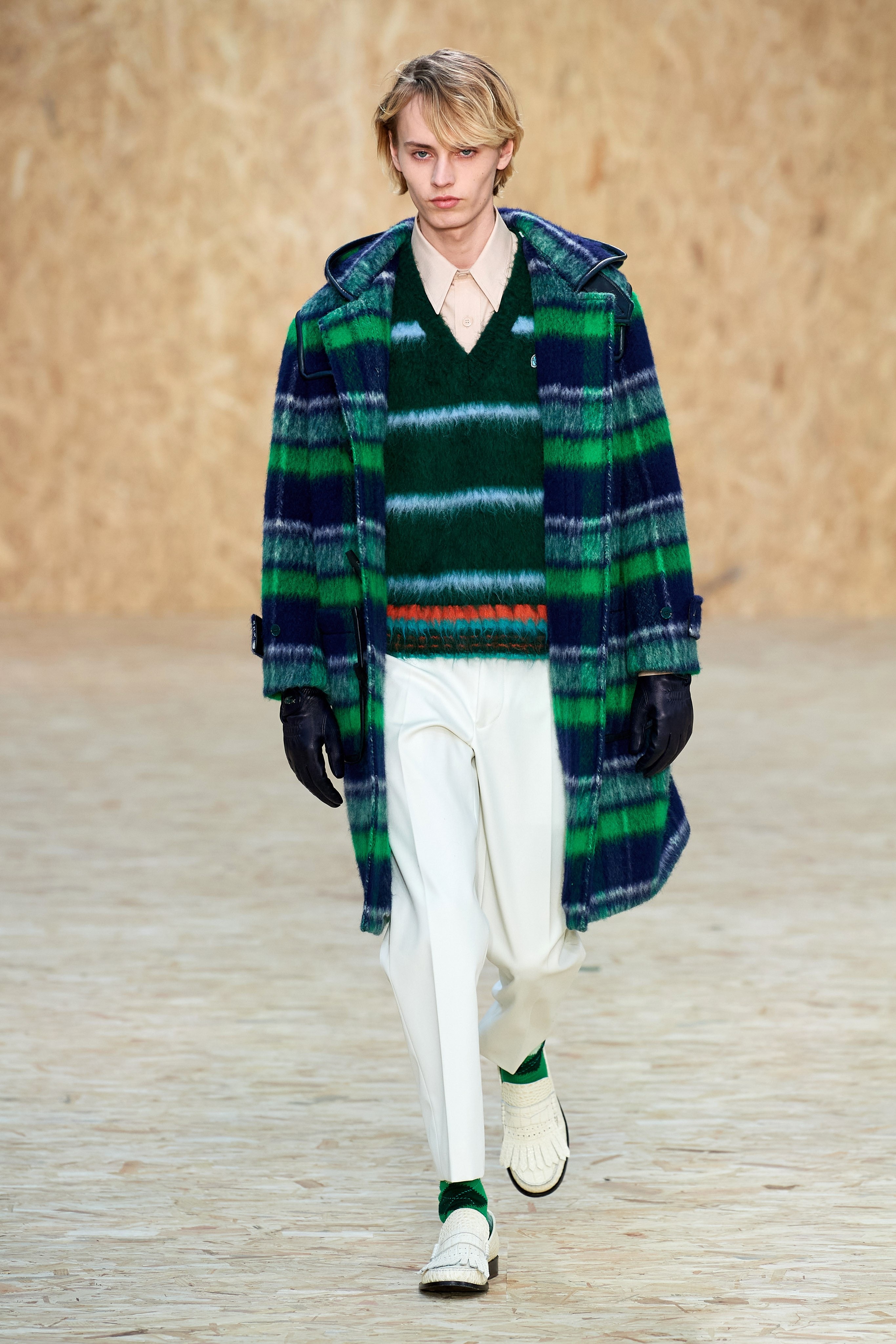 Стиль золотой молодёжи эпохи Фицджеральда нашел отражение в джемперах с красными и синими полосками у горловины, надетых поверх рубашек, анораков с кожаными перчатками и роскошных пальто. Дизайнер также использует трендовую клетку - предлагает носить клетчатые водолазки, вязаные жилеты и кепи. Цветовая палитра коллекции - оттенки мороженого, шоколада и цветов.