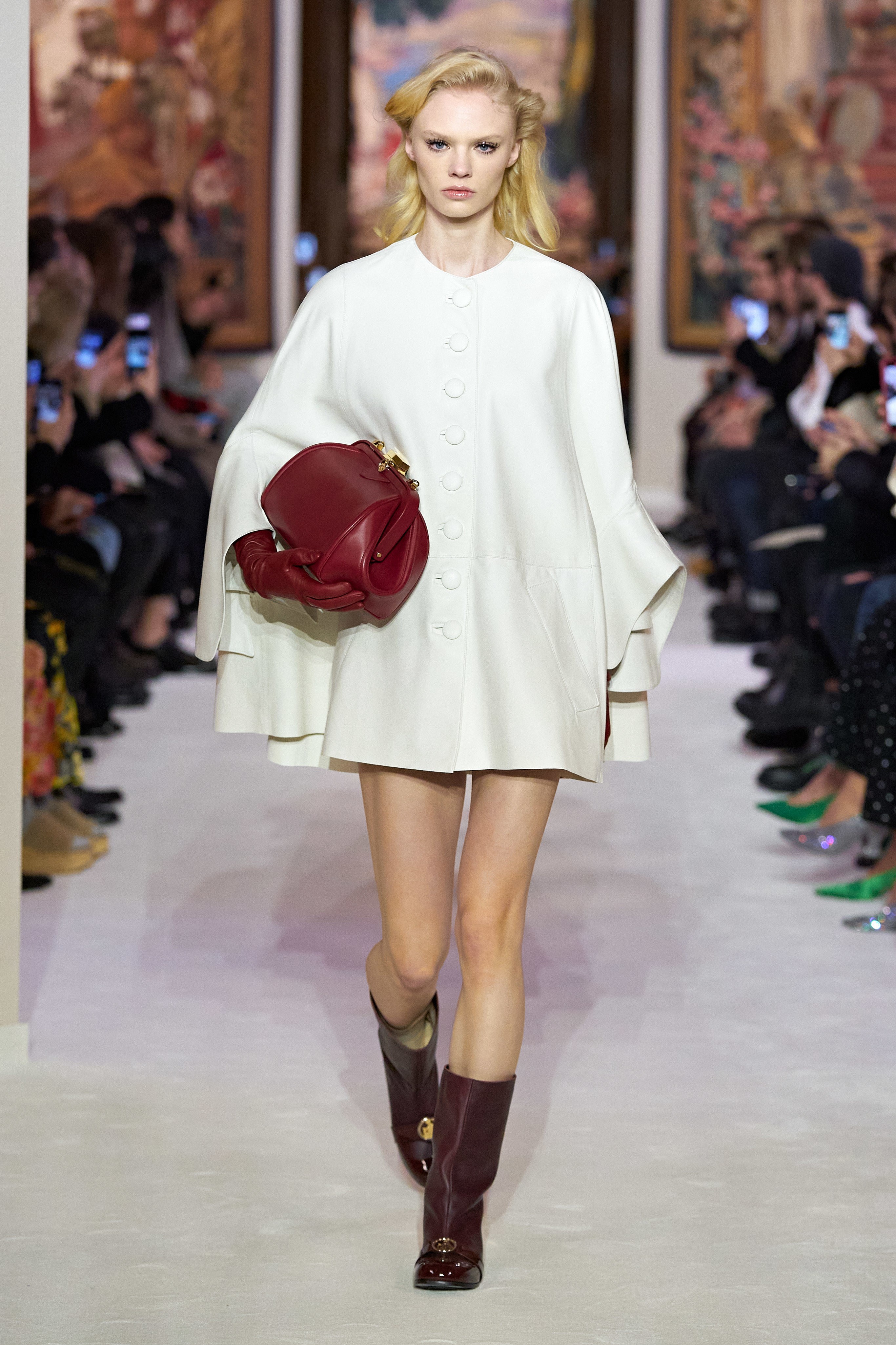 Актуальные тренды: конфетные и оттенки маршмеллоу, кейп, ручной саквояж, 60-е, двубортный пиджак.