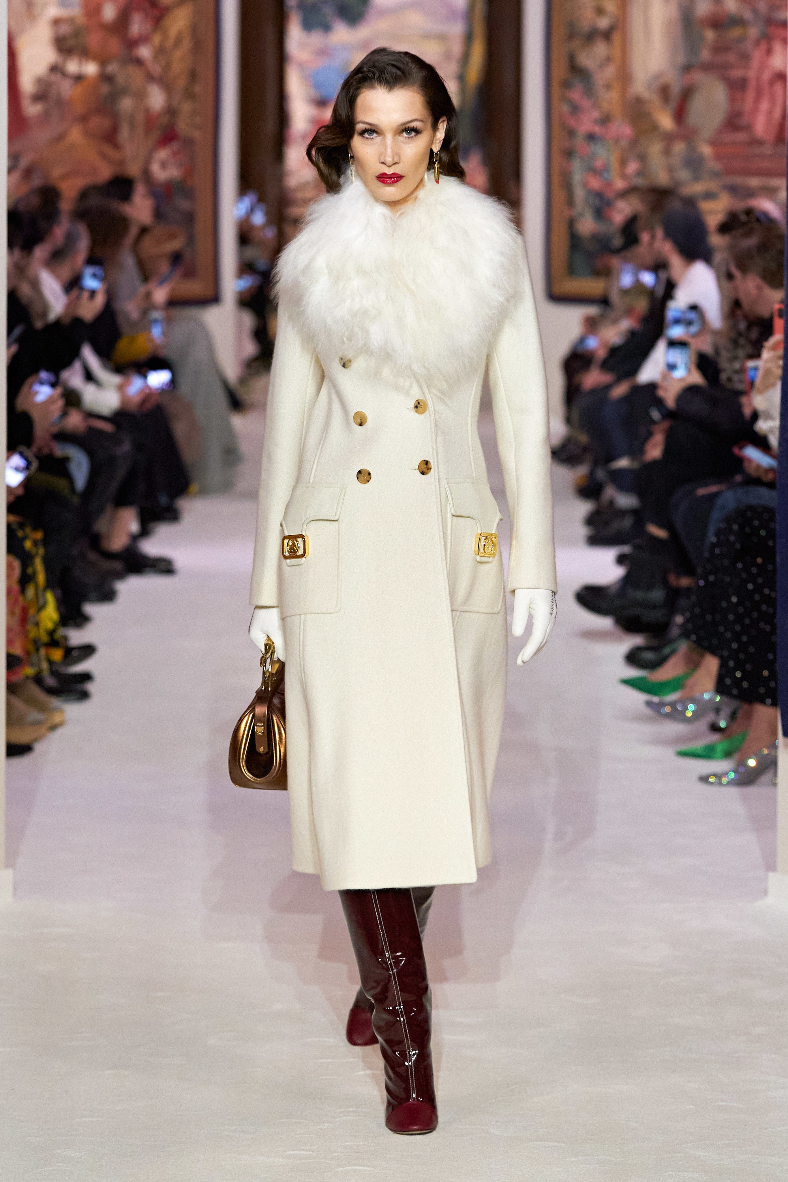 На что обратить внимание: пуховая горжетка в качестве украшения к вечернему платью и дневному наряду, гладкая шляпка-шлем на манер боксёрской, платья с удлиненным силуэтом в стиле 20-х, гороховый оттенок.