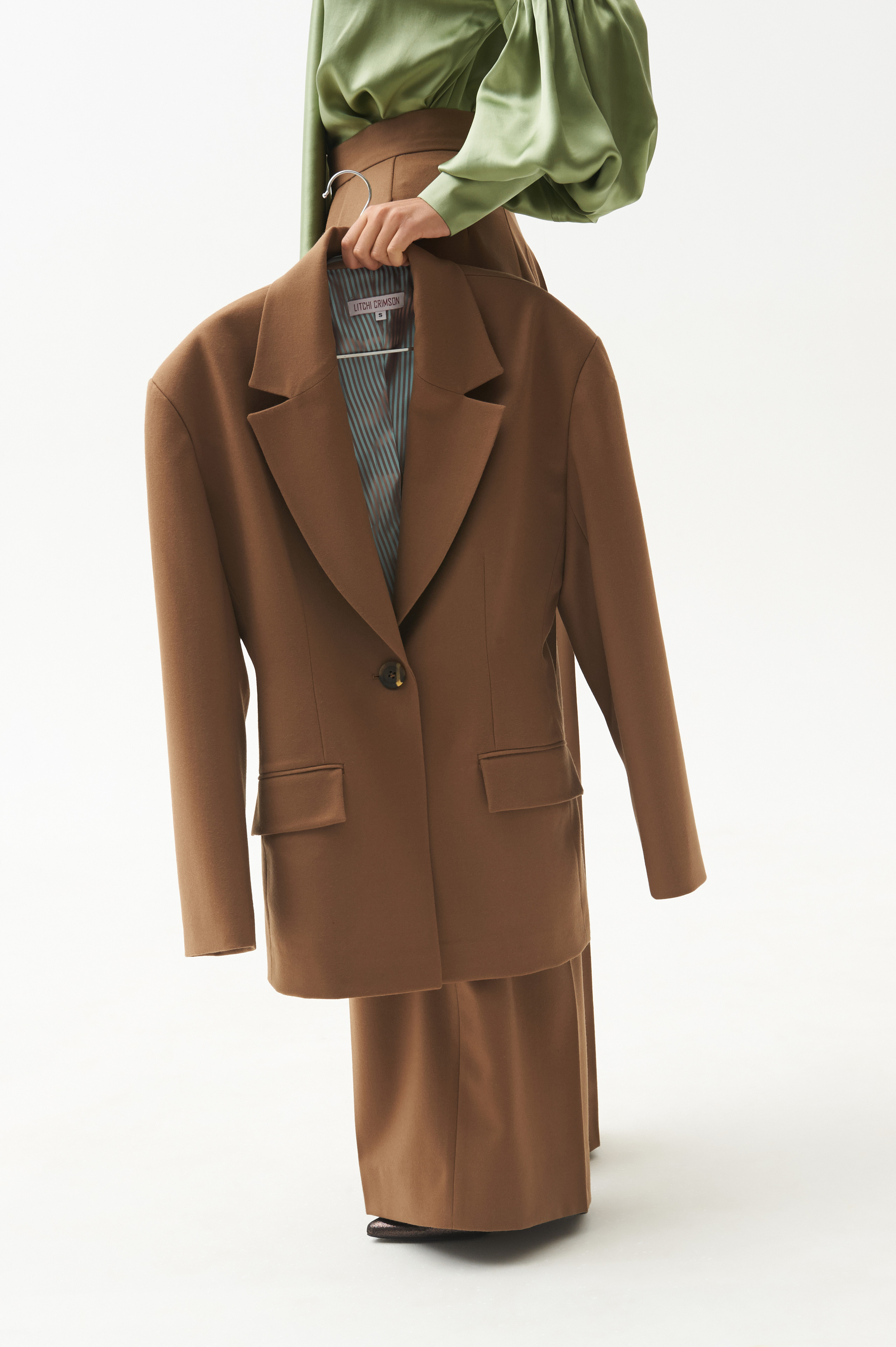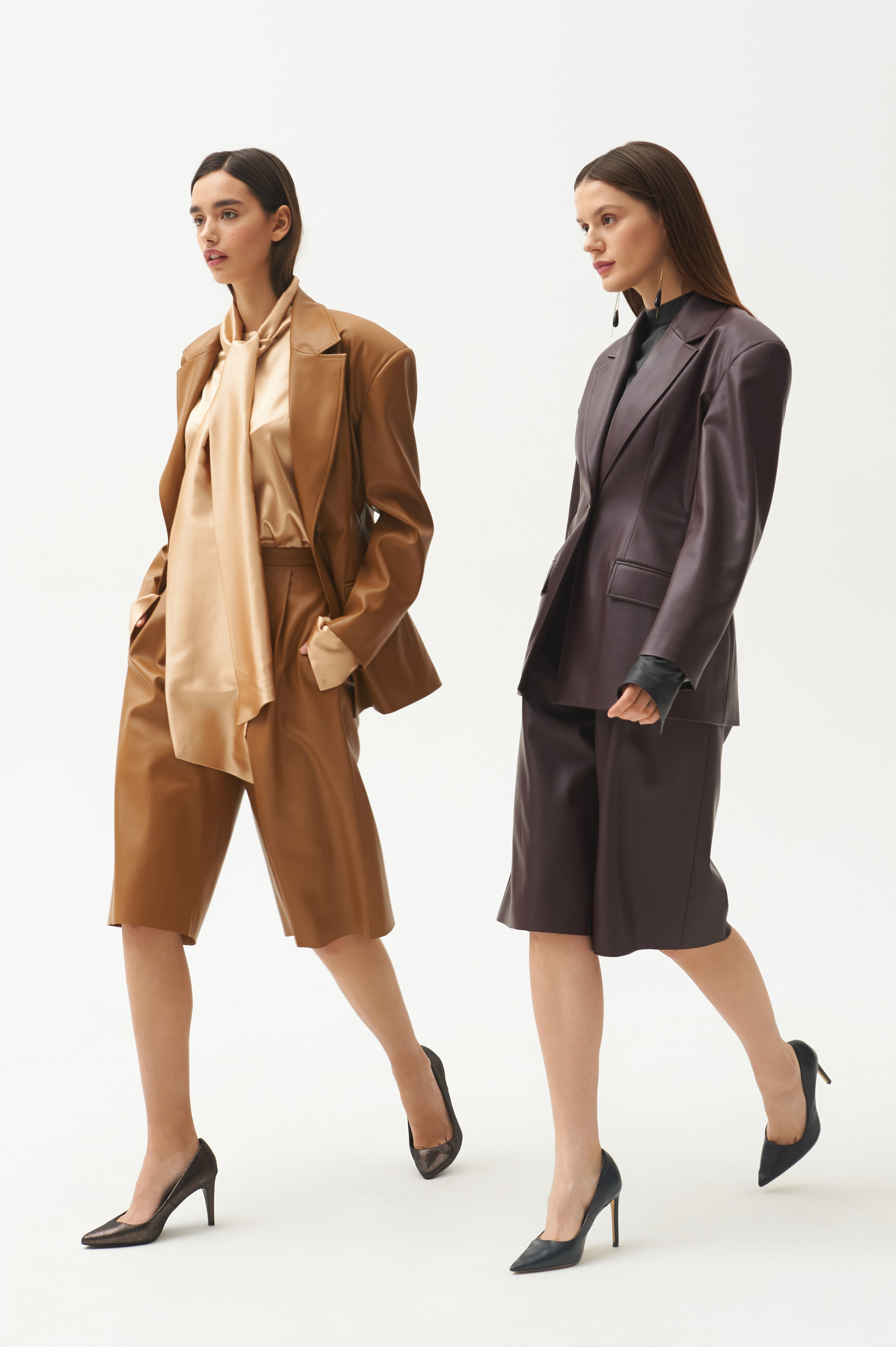 "Интеллектуальная сексуальность" - так о концепции своей марки рассказывает дизайнер украинского бренда Litchi Crimson Татьяна Кармазина. В основе ее новой коллекции – костюмы с шортами-бермудами и брюками палаццо, тренчи и длинные оверсайз-пальто с актуальными нынче "широкими плечами" в сочных синем и оранжевом цветах.