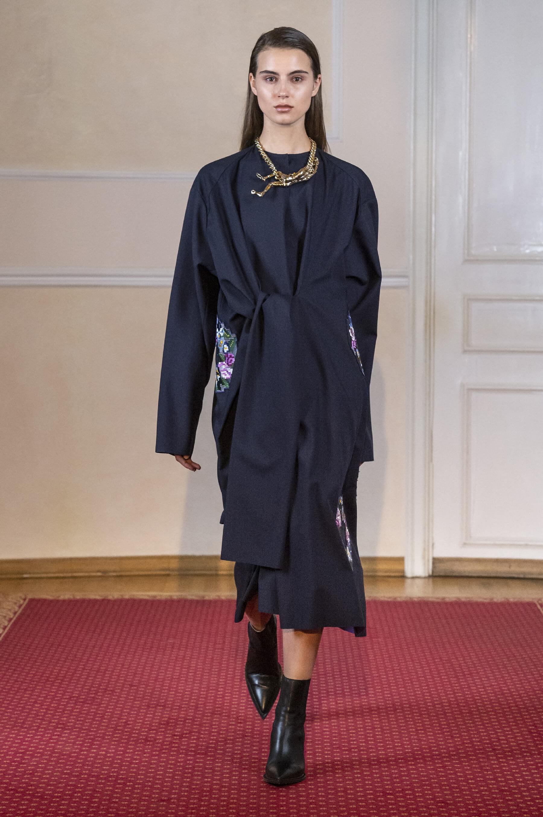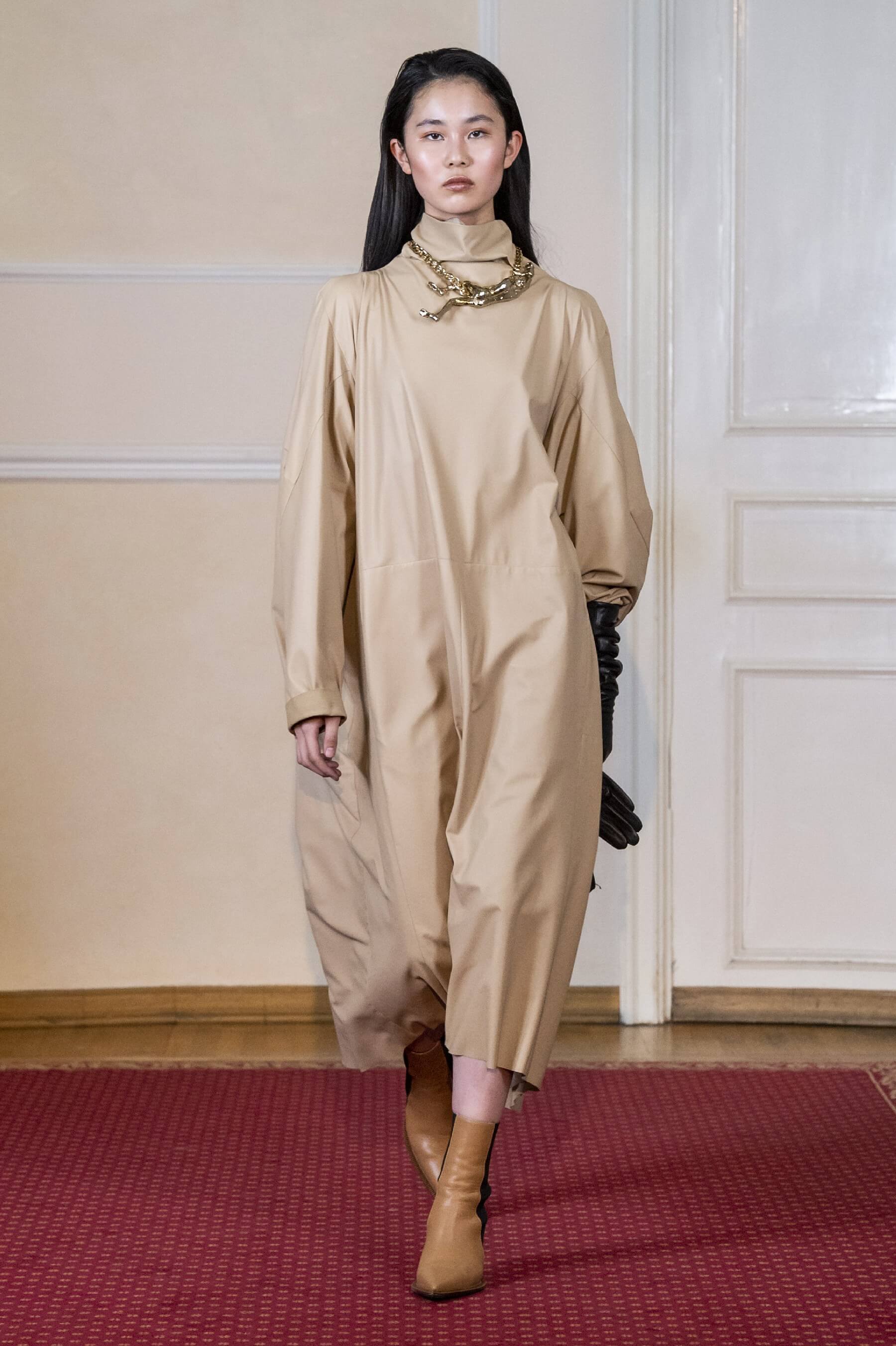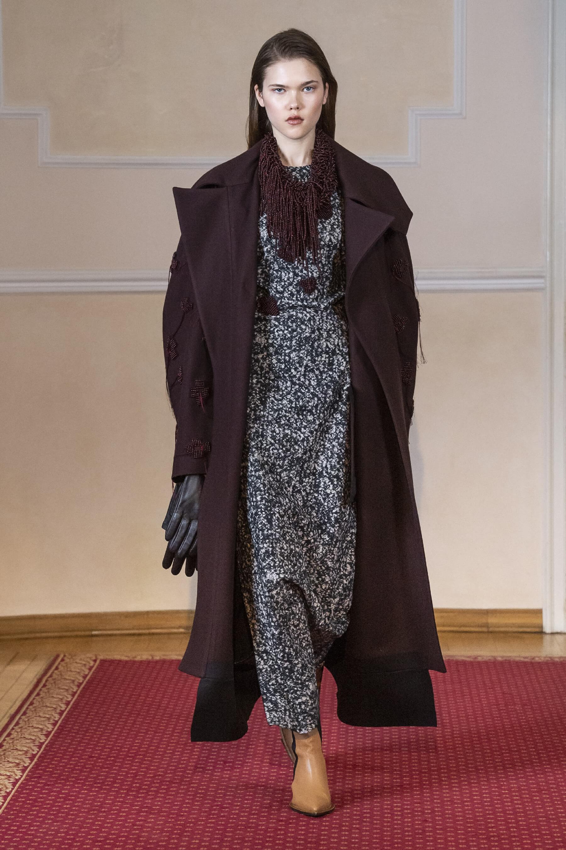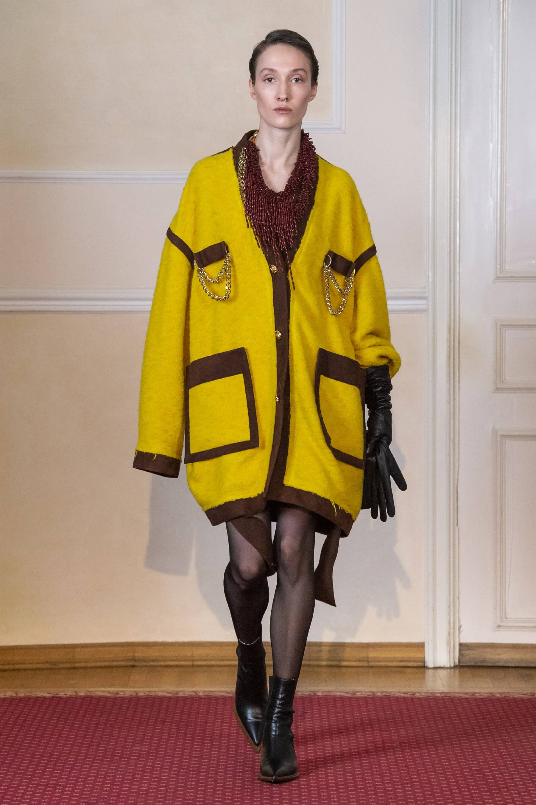 По-новому заиграли ключевые элементы и коды бренда, переосмысленные в силуэтах, фактурах и конструкциях. Модели появлялись в роскошных женственных платьях из атласа, двубортных бушлатах, габаритных кожаных куртках в духе 80-х. Чистые линии безупречного кроя пальто и костюмов были дополнены изысканными шарфами-палантинами, мягко обволакивающими стан. На платьях и блузах расположились искусная вышивка гладью и бисером и преобразованные элементы традиционных украинских орнаментов. В коллаборации с художницей Татьяной Бродач были созданы обереги — скульптуры Татьяны с чувственными мужскими фигурами, трансформированные в броши, ожерелья и подвески. В коллекции раскрыт метафорический образ Украины как хрупкого и чарующе прекрасного цветка, облаченного в массивные защитные слои, а лейтмотивом стала животворящая сила любви земной и небесной. Шоу проходило при поддержке посла Олега Шамшура и советника по вопросам культуры Наталии Кочубей.