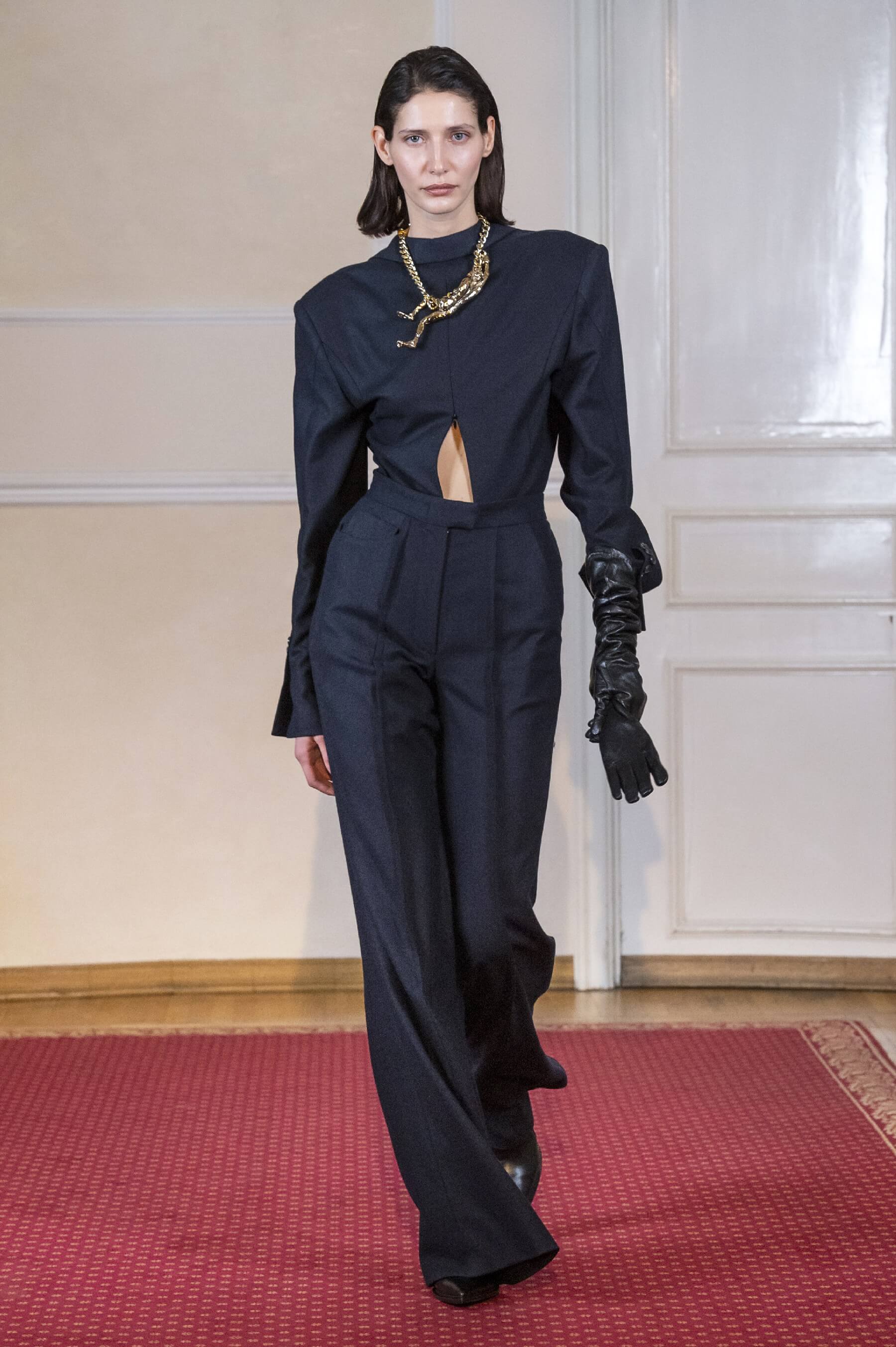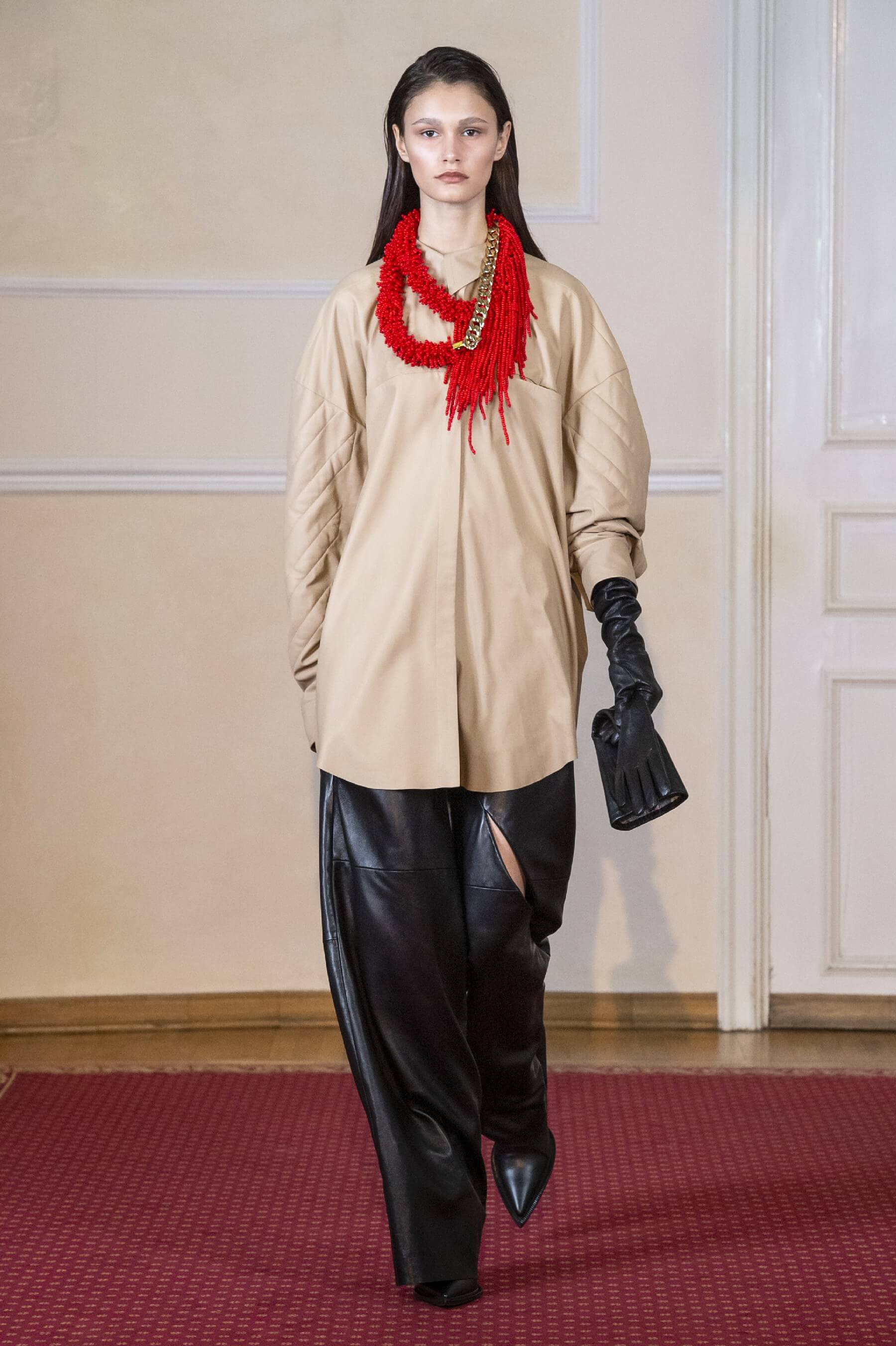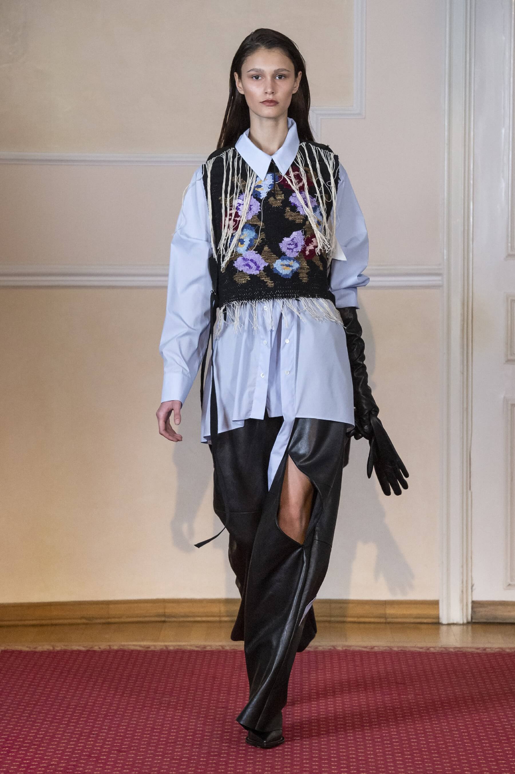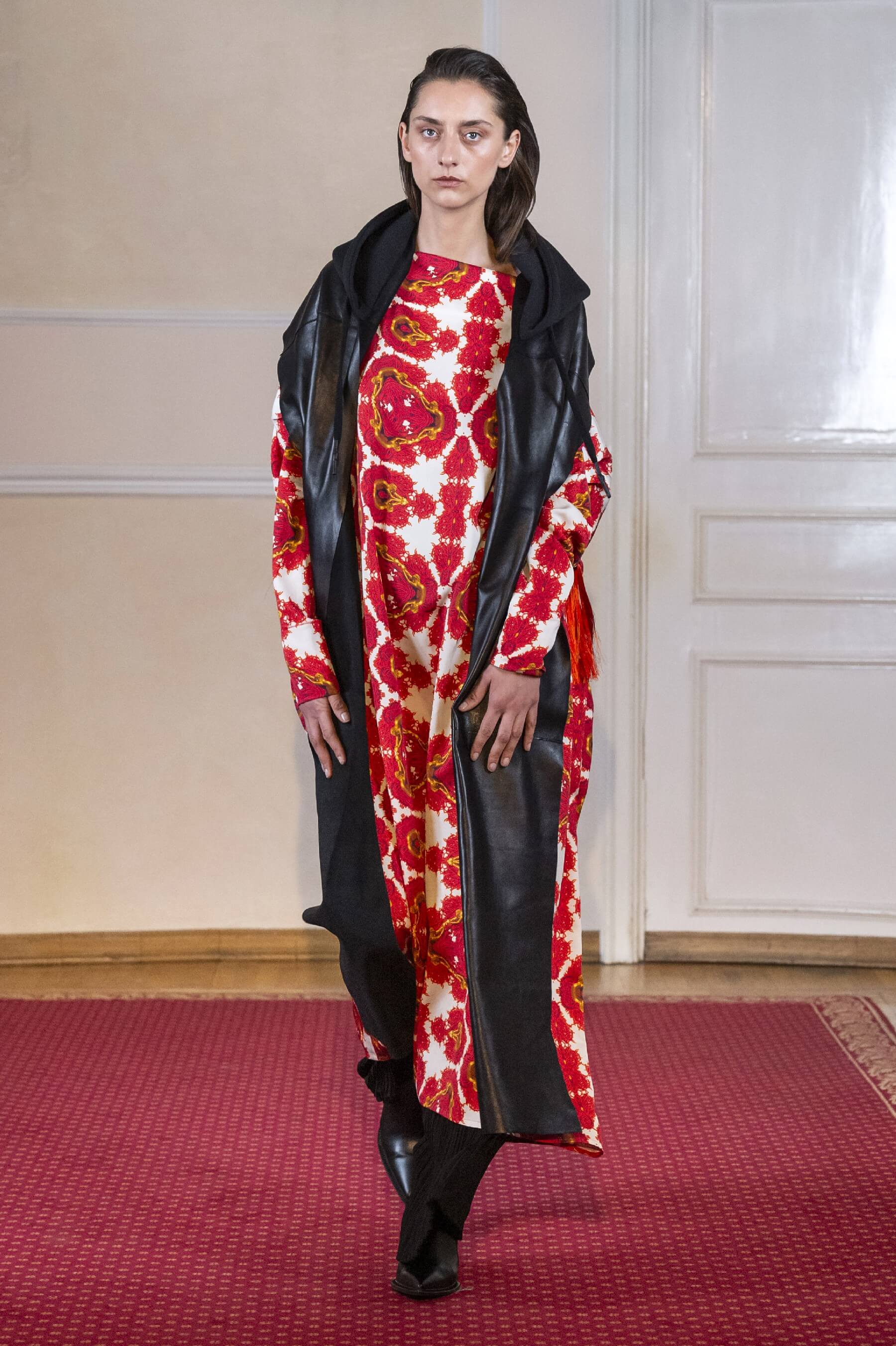 По-новому заиграли ключевые элементы и коды бренда, переосмысленные в силуэтах, фактурах и конструкциях. Модели появлялись в роскошных женственных платьях из атласа, двубортных бушлатах, габаритных кожаных куртках в духе 80-х. Чистые линии безупречного кроя пальто и костюмов были дополнены изысканными шарфами-палантинами, мягко обволакивающими стан. На платьях и блузах расположились искусная вышивка гладью и бисером и преобразованные элементы традиционных украинских орнаментов. В коллаборации с художницей Татьяной Бродач были созданы обереги — скульптуры Татьяны с чувственными мужскими фигурами, трансформированные в броши, ожерелья и подвески. В коллекции раскрыт метафорический образ Украины как хрупкого и чарующе прекрасного цветка, облаченного в массивные защитные слои, а лейтмотивом стала животворящая сила любви земной и небесной. Шоу проходило при поддержке посла Олега Шамшура и советника по вопросам культуры Наталии Кочубей.