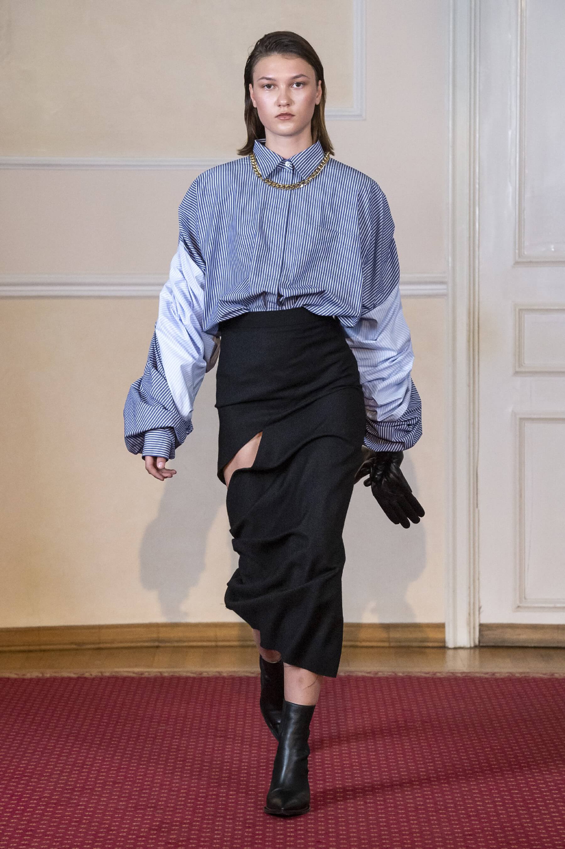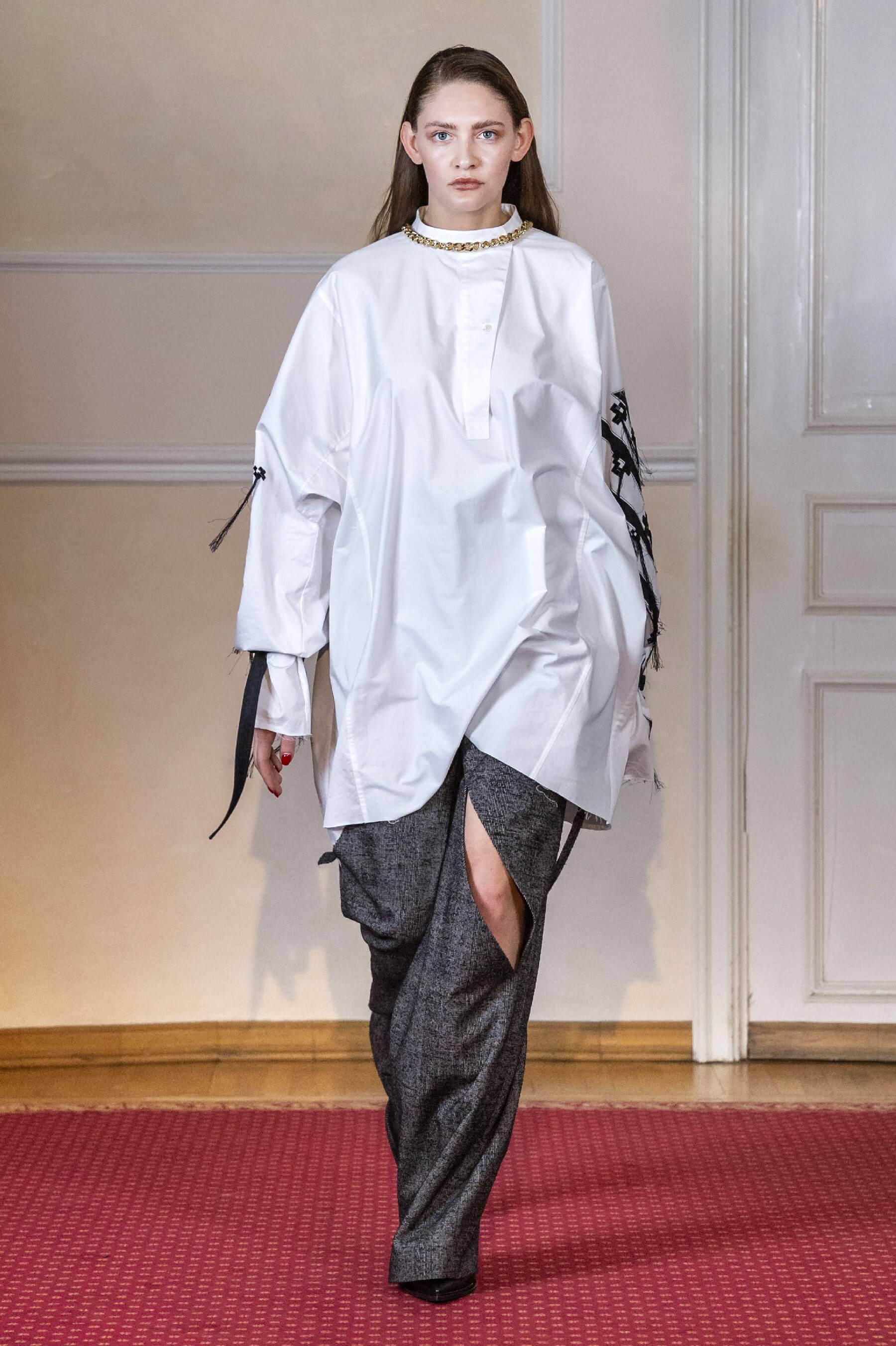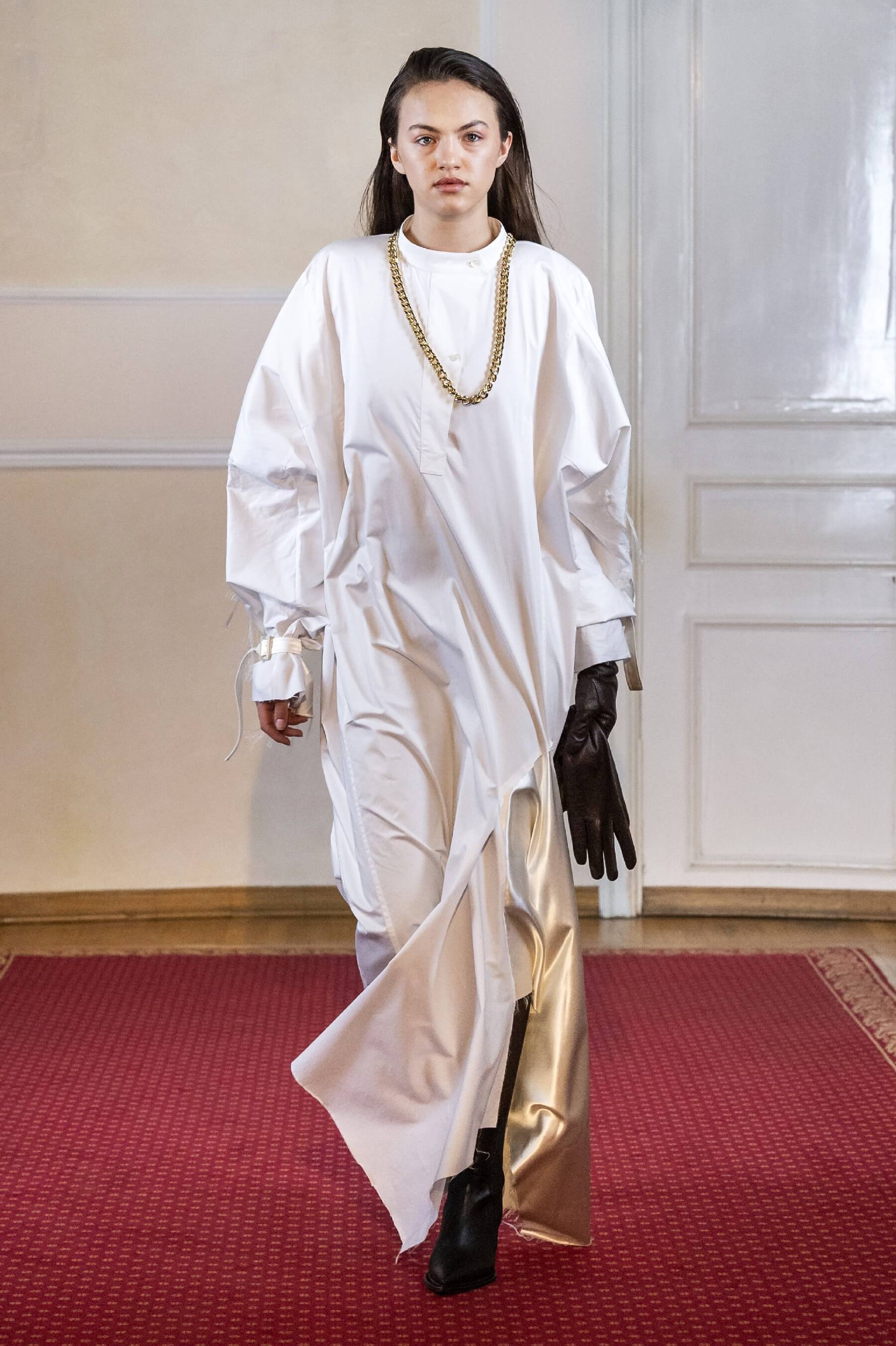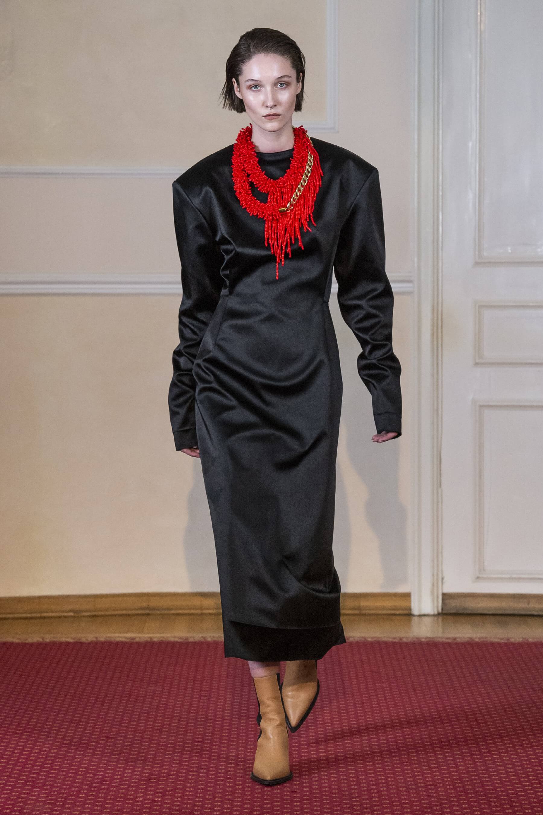 По-новому заиграли ключевые элементы и коды бренда, переосмысленные в силуэтах, фактурах и конструкциях. Модели появлялись в роскошных женственных платьях из атласа, двубортных бушлатах, габаритных кожаных куртках в духе 80-х. Чистые линии безупречного кроя пальто и костюмов были дополнены изысканными шарфами-палантинами, мягко обволакивающими стан. На платьях и блузах расположились искусная вышивка гладью и бисером и преобразованные элементы традиционных украинских орнаментов. В коллаборации с художницей Татьяной Бродач были созданы обереги — скульптуры Татьяны с чувственными мужскими фигурами, трансформированные в броши, ожерелья и подвески. В коллекции раскрыт метафорический образ Украины как хрупкого и чарующе прекрасного цветка, облаченного в массивные защитные слои, а лейтмотивом стала животворящая сила любви земной и небесной. Шоу проходило при поддержке посла Олега Шамшура и советника по вопросам культуры Наталии Кочубей.