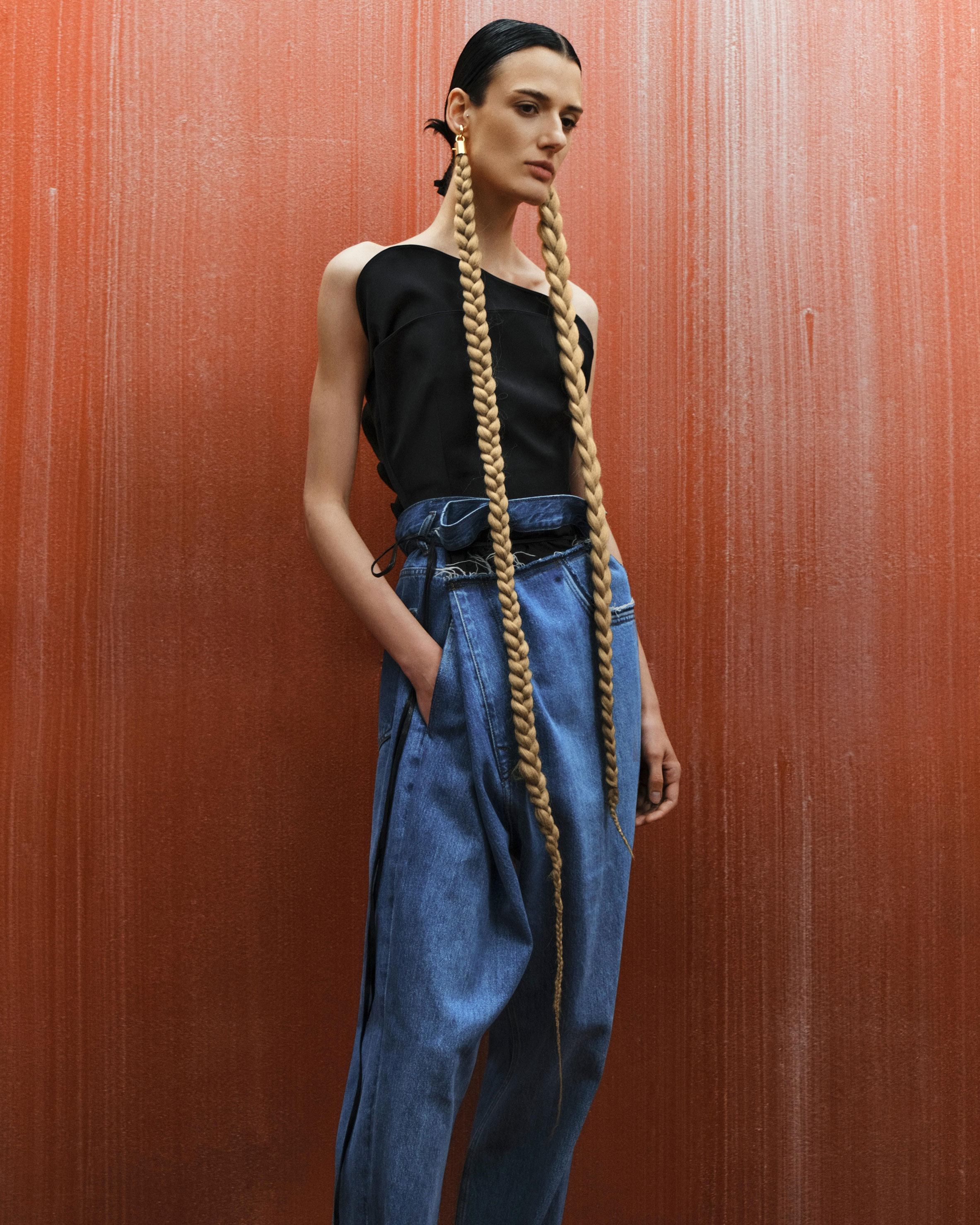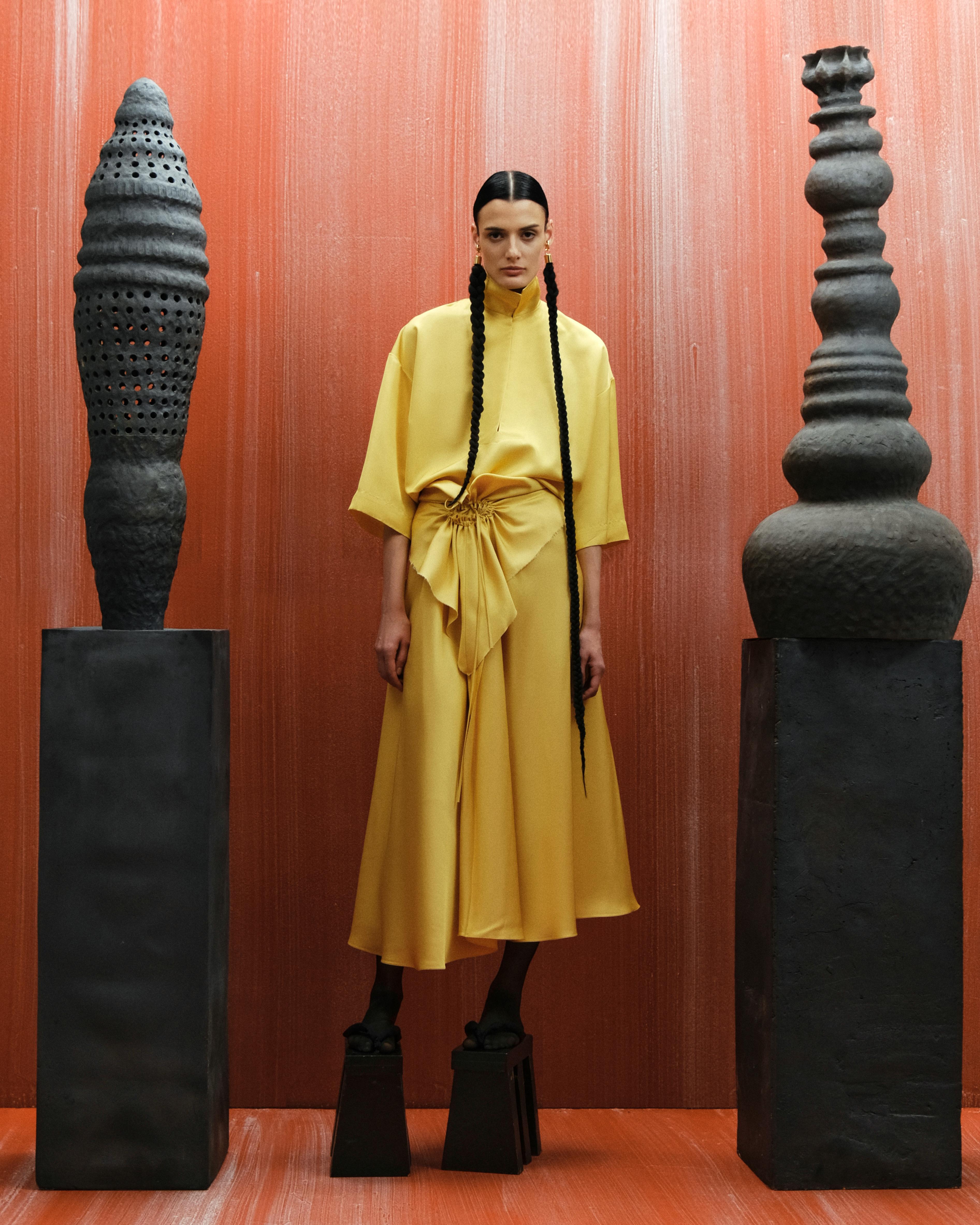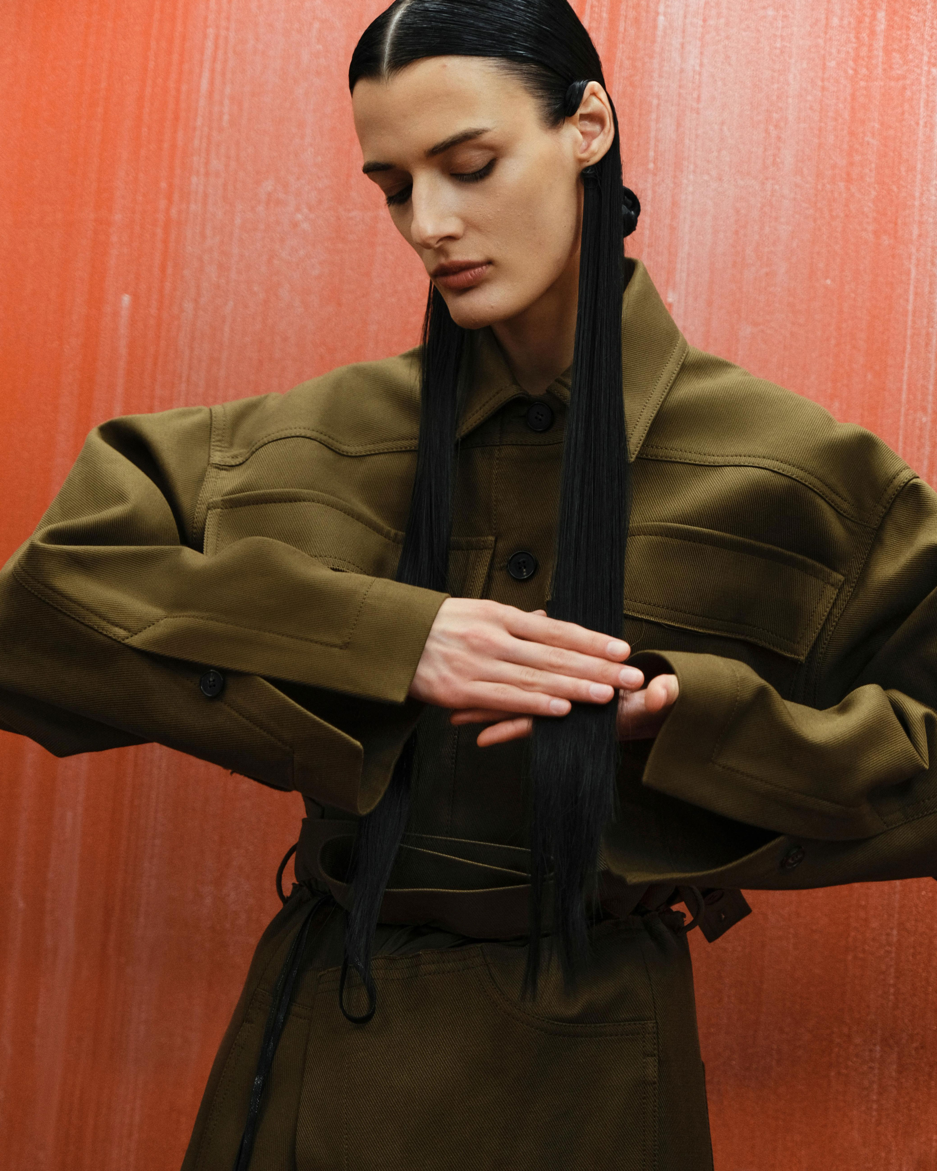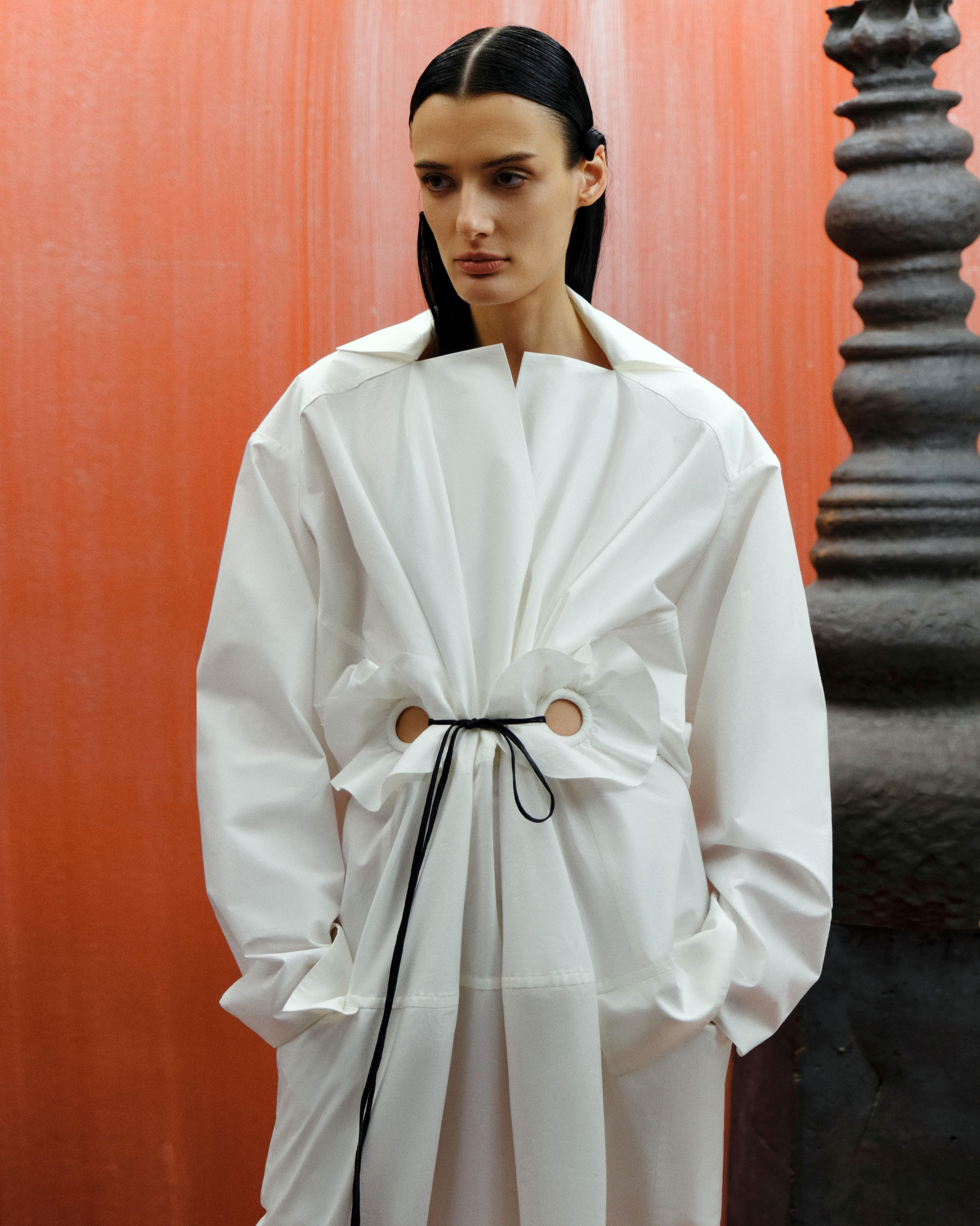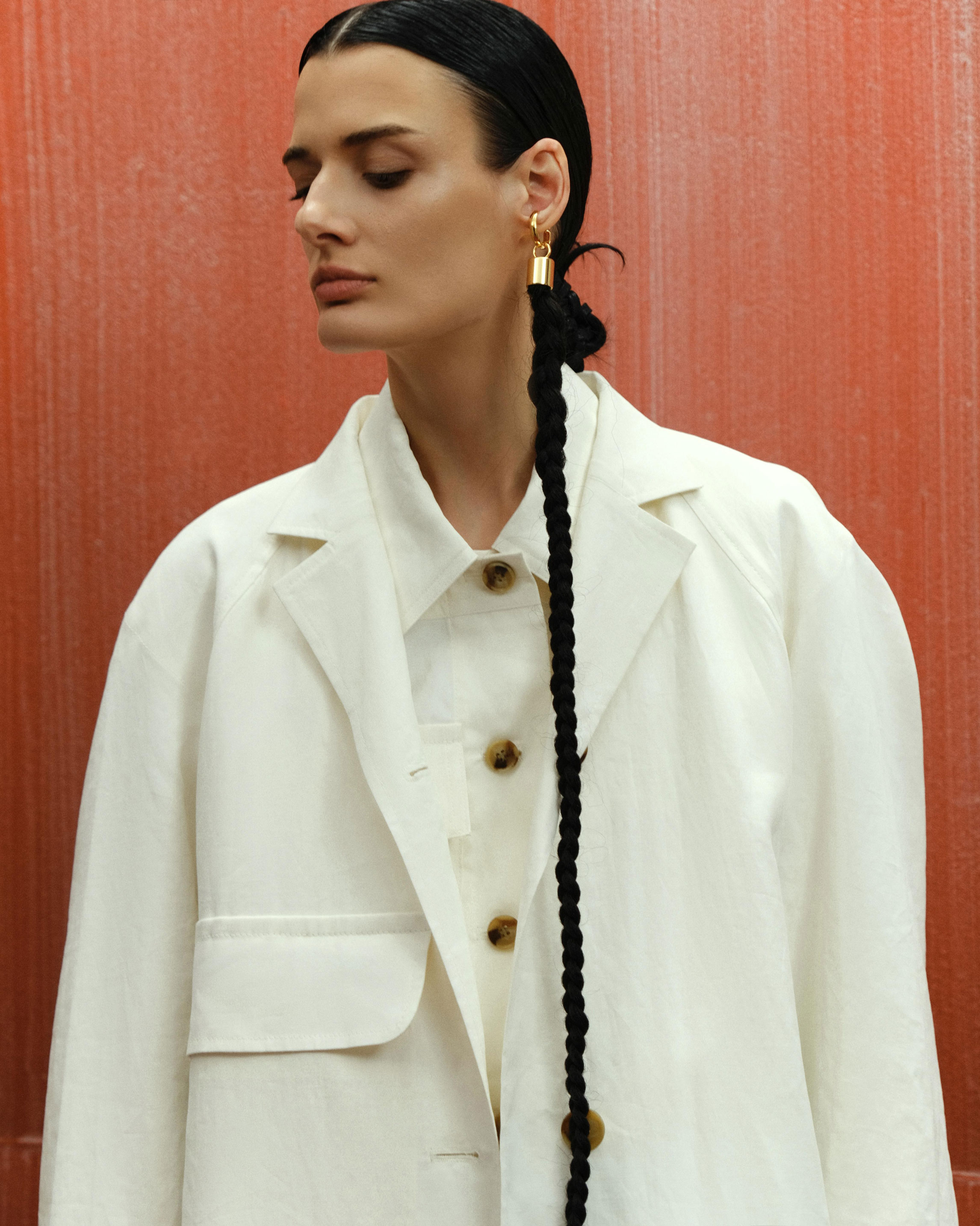 В рамках Недели моды в Париже была представлена весенняя коллекция Лилии Литковской. Дизайнера вдохновило творчество художника Кита Харинга, тема трансцендентного взаимообмена мужского и женского. Так, классические маскулинные рубашки превратились в лоскутные куртки, а знаковые для ДНК бренда костюмы "с мужского плеча" стали гендерно-нейтральными. Их, как и элегантные платья миди, украсили гиперболизированные люверсы-застежки. Солярные символы, отсылающие к солнцу и цикличному возобновлению жизни, то встречаются в перфорации, то угадываются в идеально скругленной линии плеч. Ключевым аксессуаром стали серьги и чокеры — косы, придающие каждому образу пограничное, почти матриархальное изящество. Орнамент из кос также увенчал белоснежную куртку.
