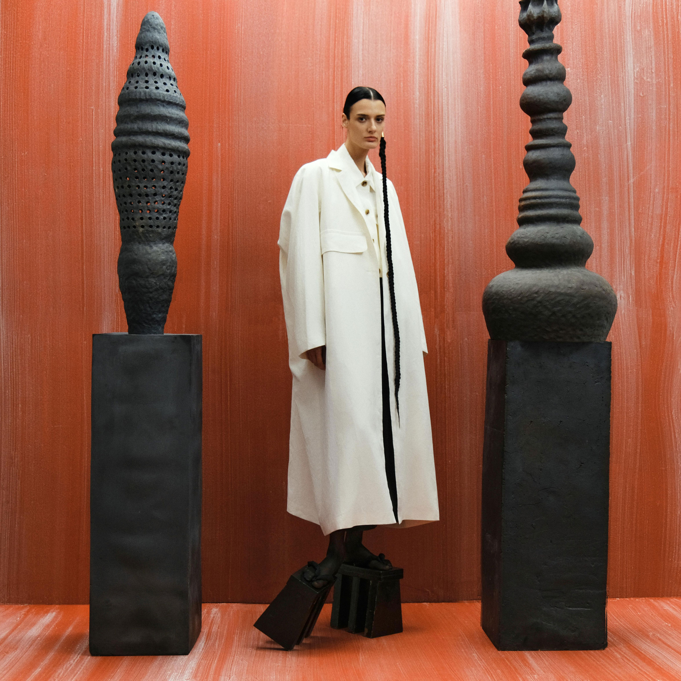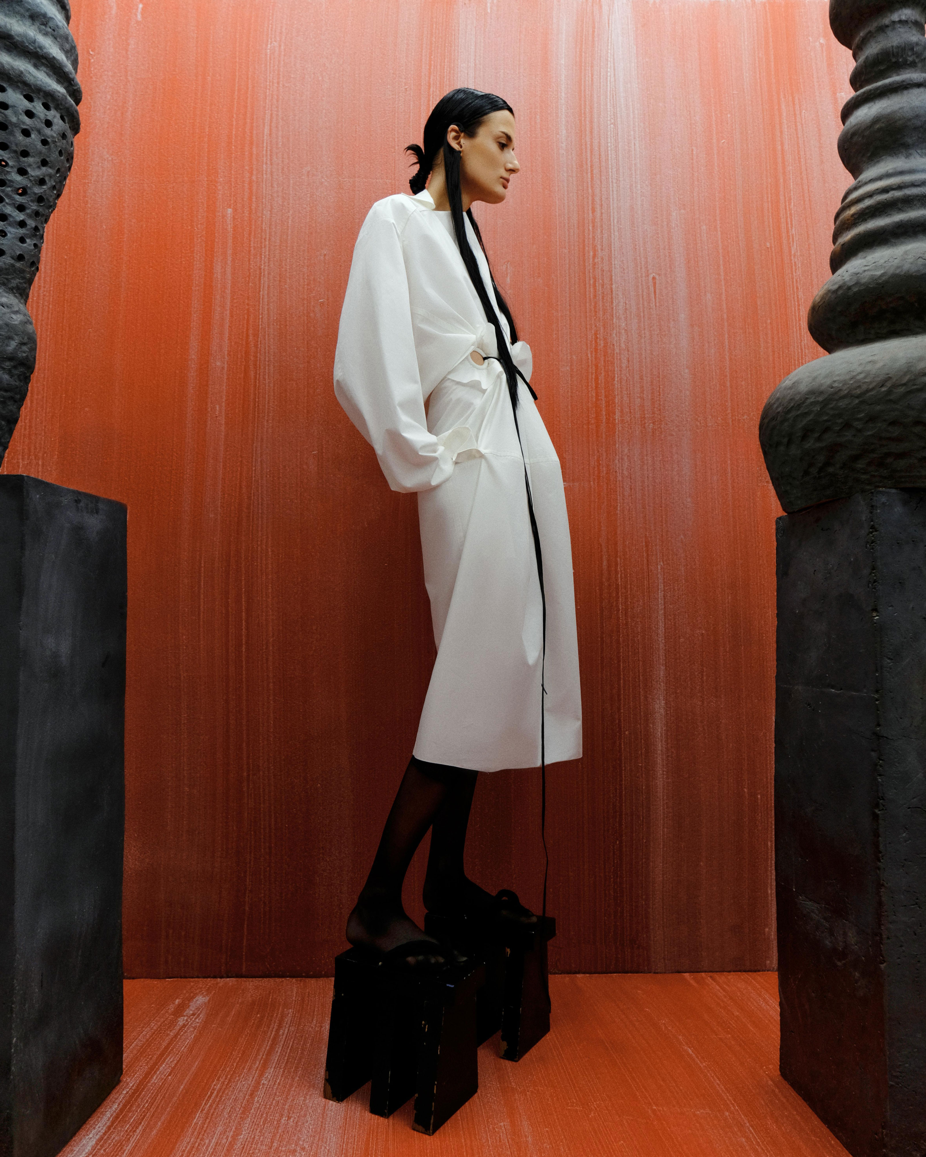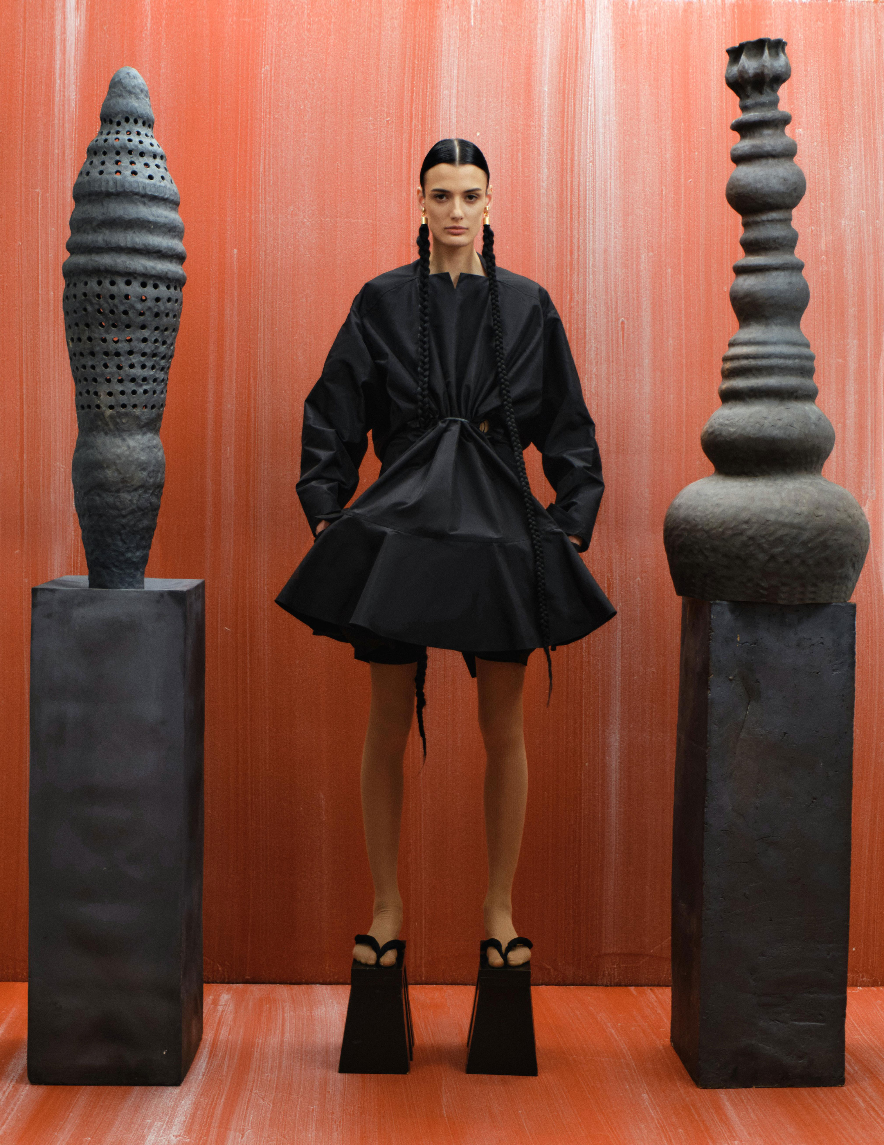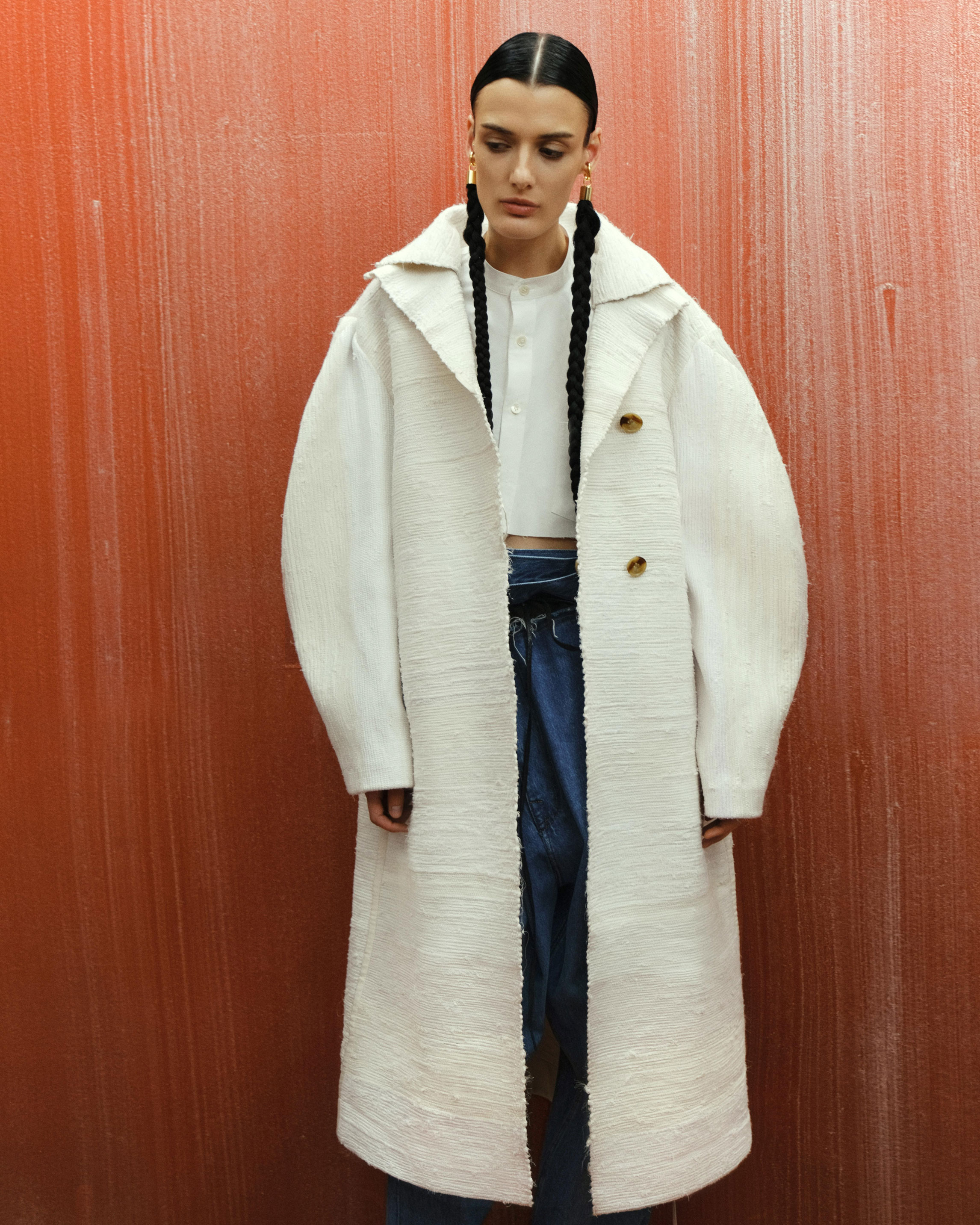 В рамках Недели моды в Париже была представлена весенняя коллекция Лилии Литковской. Дизайнера вдохновило творчество художника Кита Харинга, тема трансцендентного взаимообмена мужского и женского. Так, классические маскулинные рубашки превратились в лоскутные куртки, а знаковые для ДНК бренда костюмы "с мужского плеча" стали гендерно-нейтральными. Их, как и элегантные платья миди, украсили гиперболизированные люверсы-застежки. Солярные символы, отсылающие к солнцу и цикличному возобновлению жизни, то встречаются в перфорации, то угадываются в идеально скругленной линии плеч. Ключевым аксессуаром стали серьги и чокеры — косы, придающие каждому образу пограничное, почти матриархальное изящество. Орнамент из кос также увенчал белоснежную куртку.