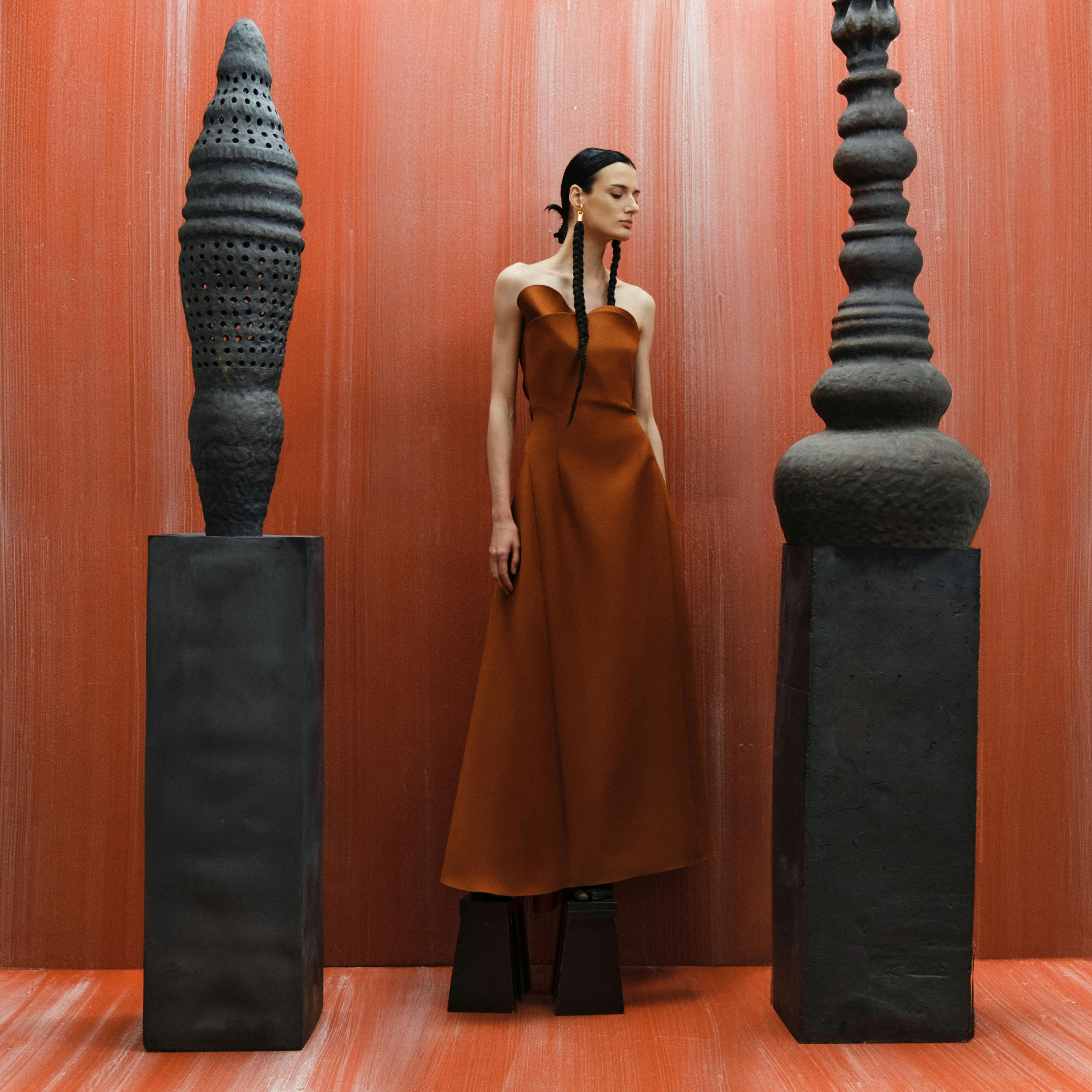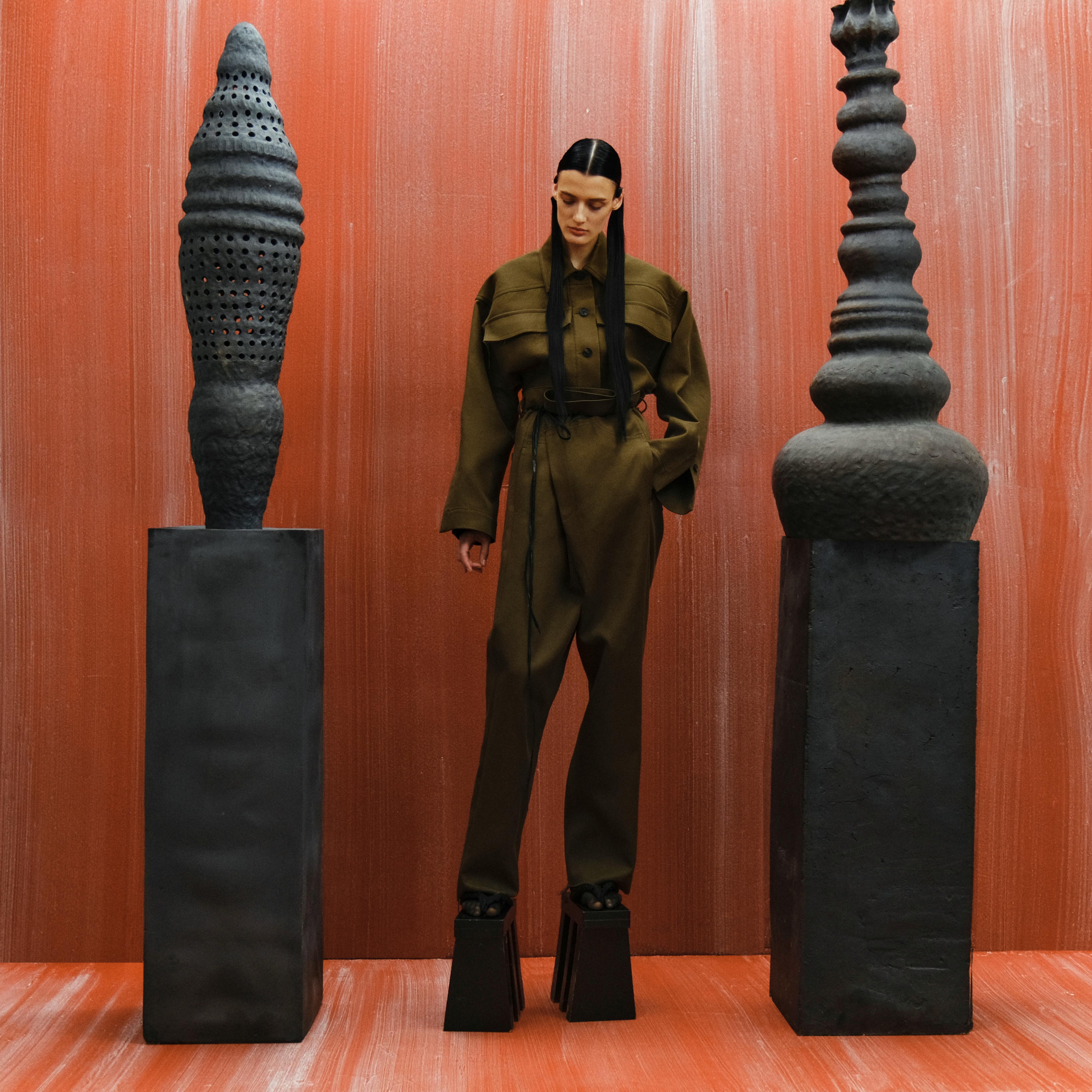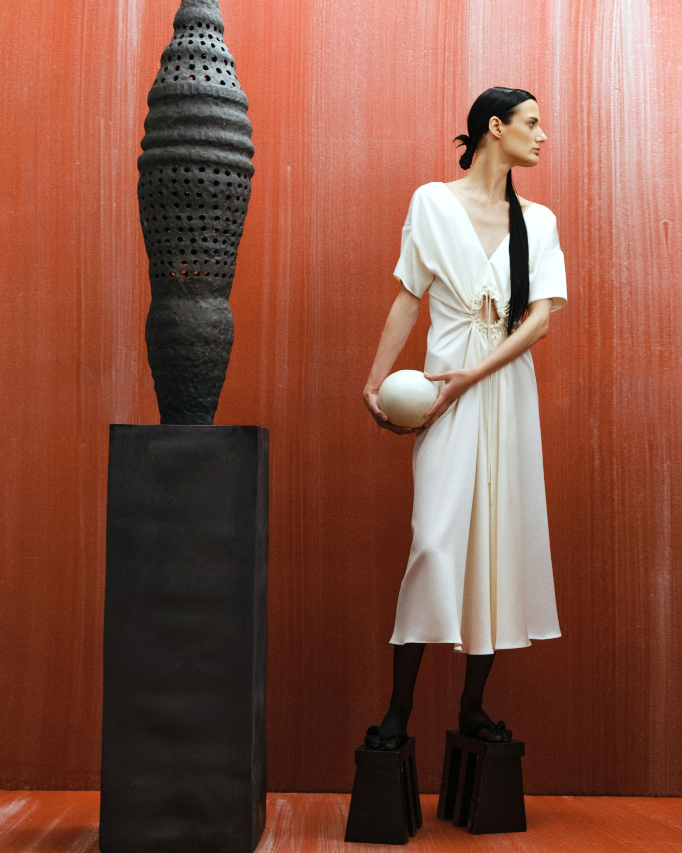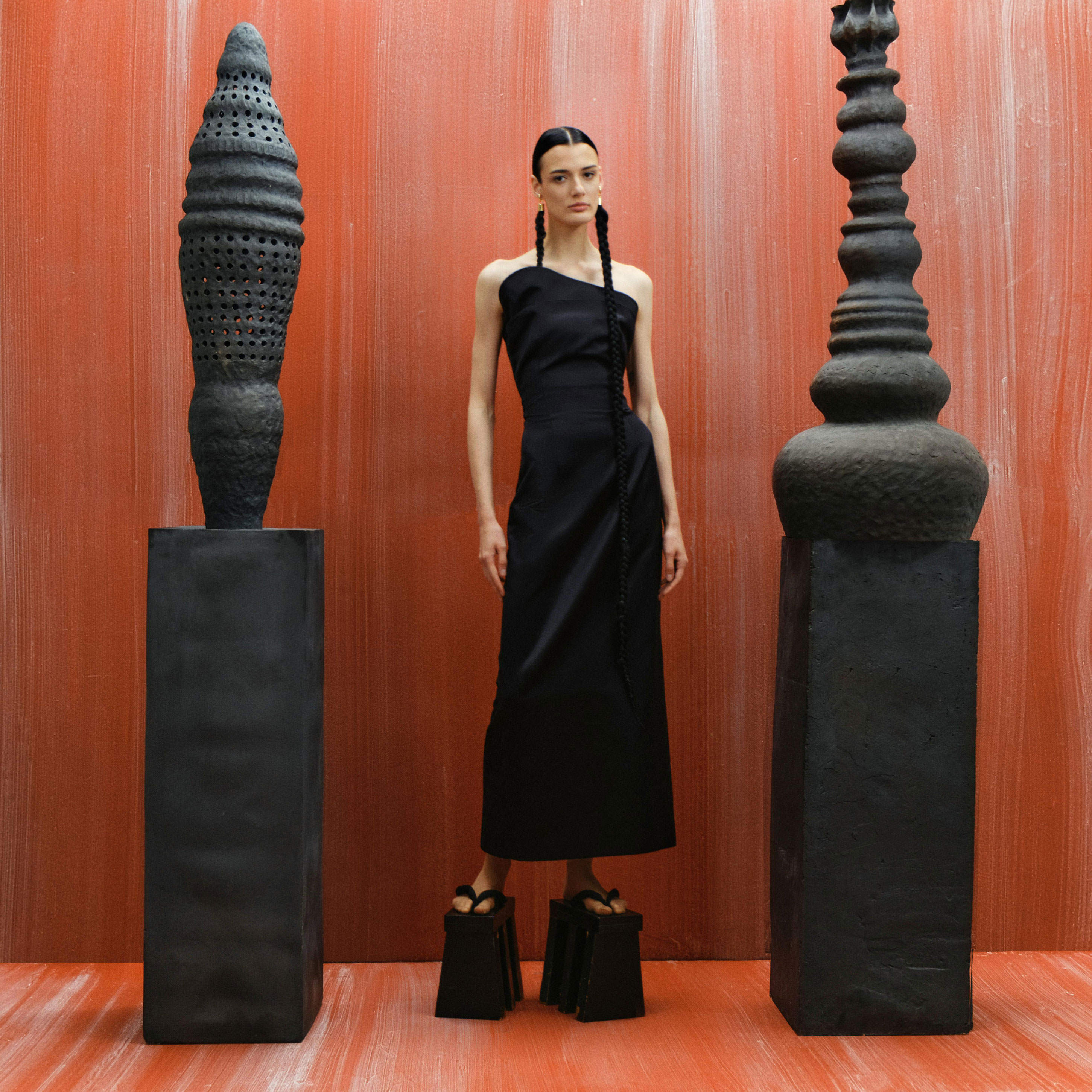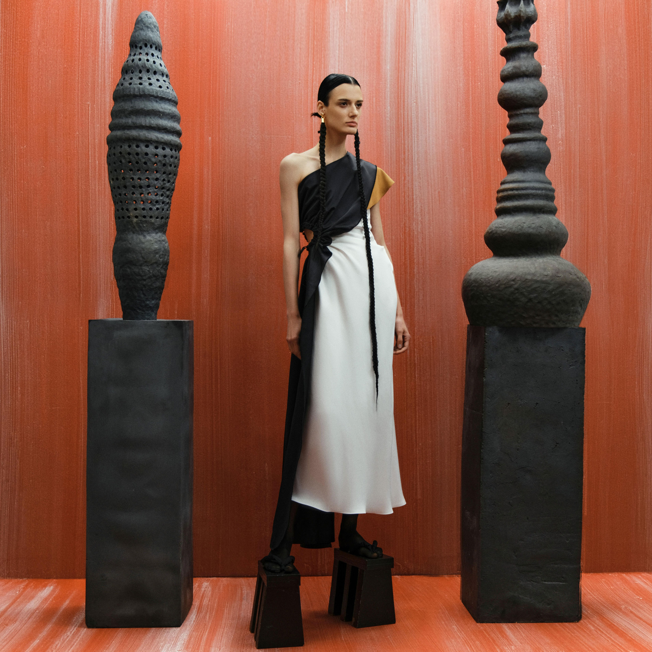 В рамках Недели моды в Париже была представлена весенняя коллекция Лилии Литковской. Дизайнера вдохновило творчество художника Кита Харинга, тема трансцендентного взаимообмена мужского и женского. Так, классические маскулинные рубашки превратились в лоскутные куртки, а знаковые для ДНК бренда костюмы "с мужского плеча" стали гендерно-нейтральными. Их, как и элегантные платья миди, украсили гиперболизированные люверсы-застежки. Солярные символы, отсылающие к солнцу и цикличному возобновлению жизни, то встречаются в перфорации, то угадываются в идеально скругленной линии плеч. Ключевым аксессуаром стали серьги и чокеры — косы, придающие каждому образу пограничное, почти матриархальное изящество. Орнамент из кос также увенчал белоснежную куртку.