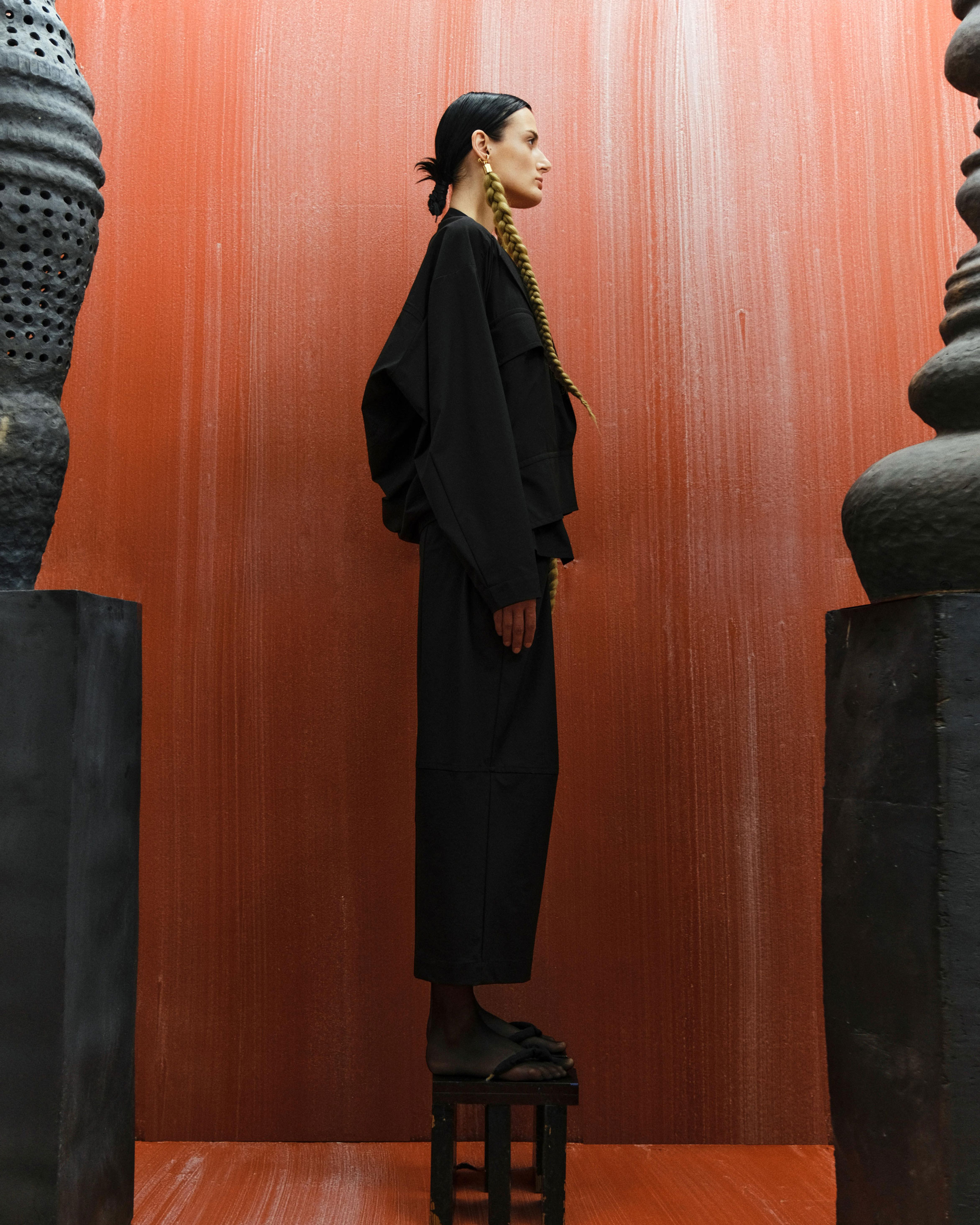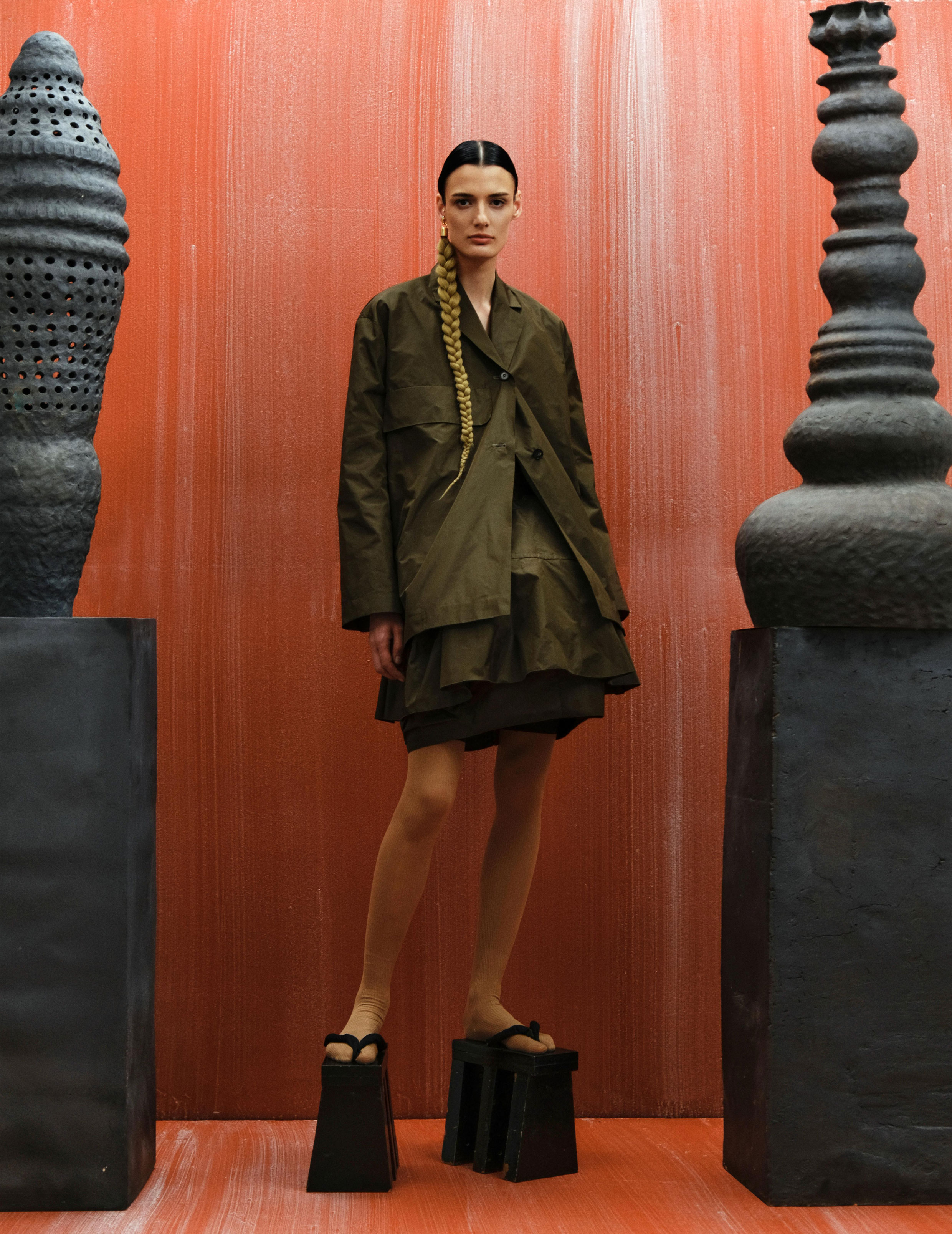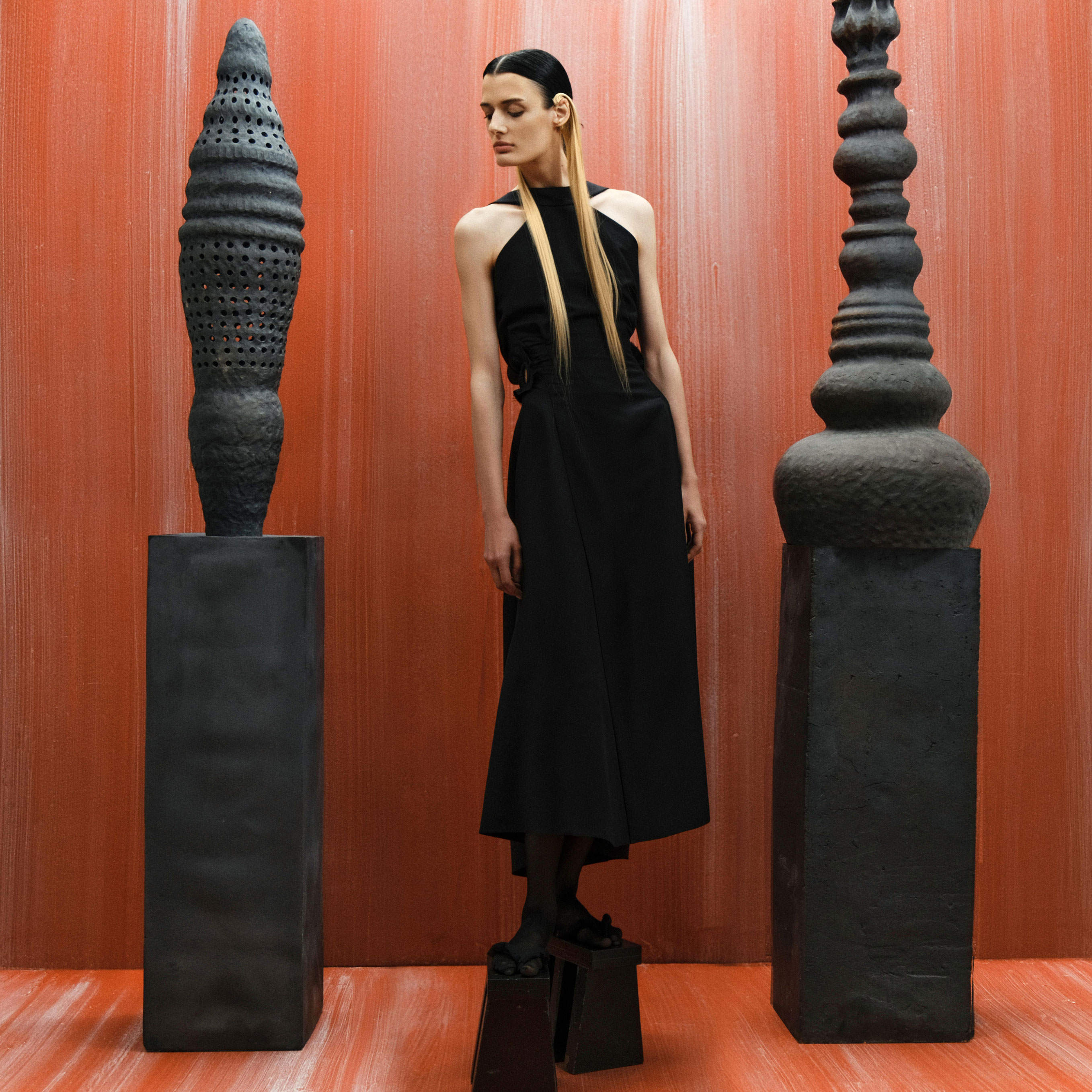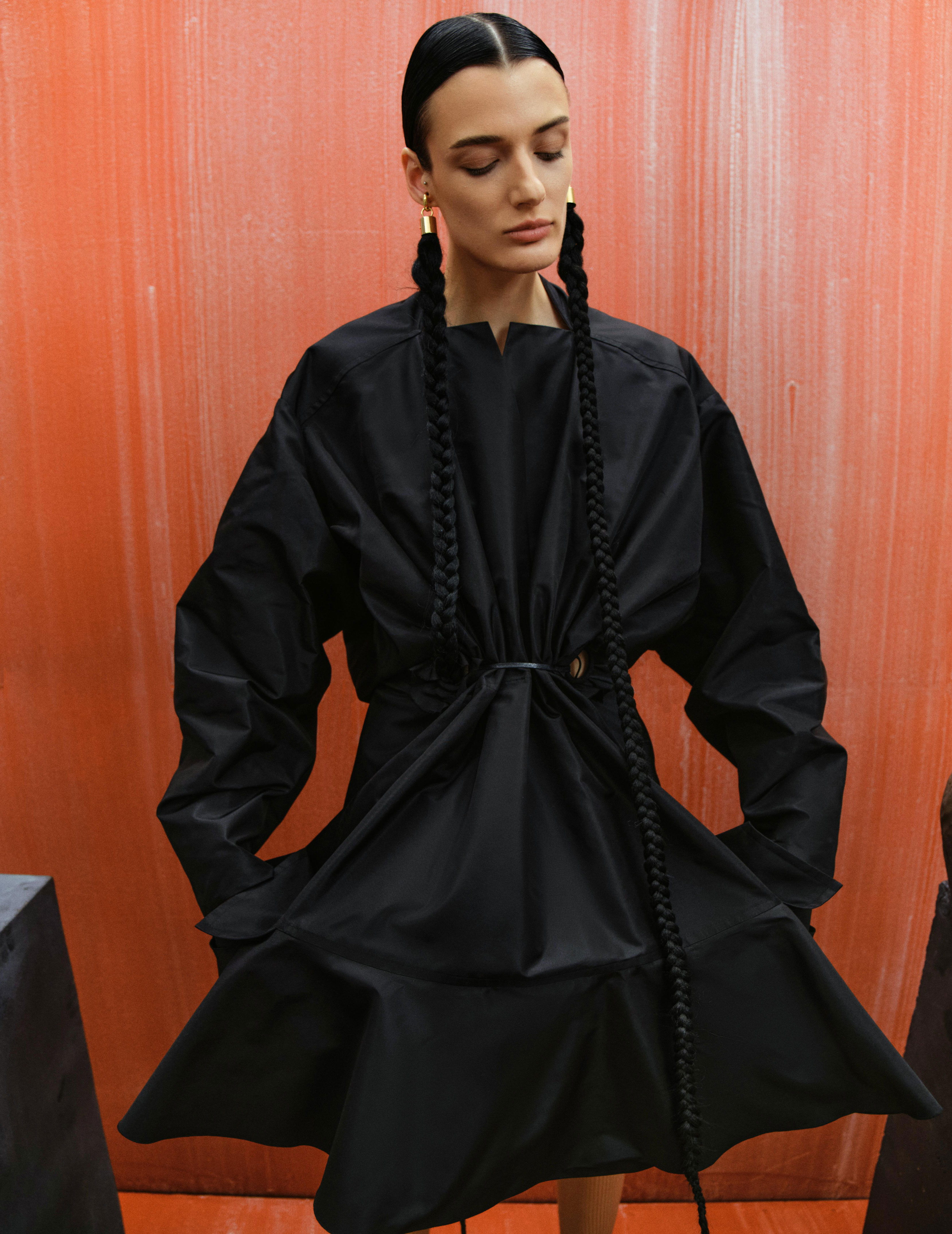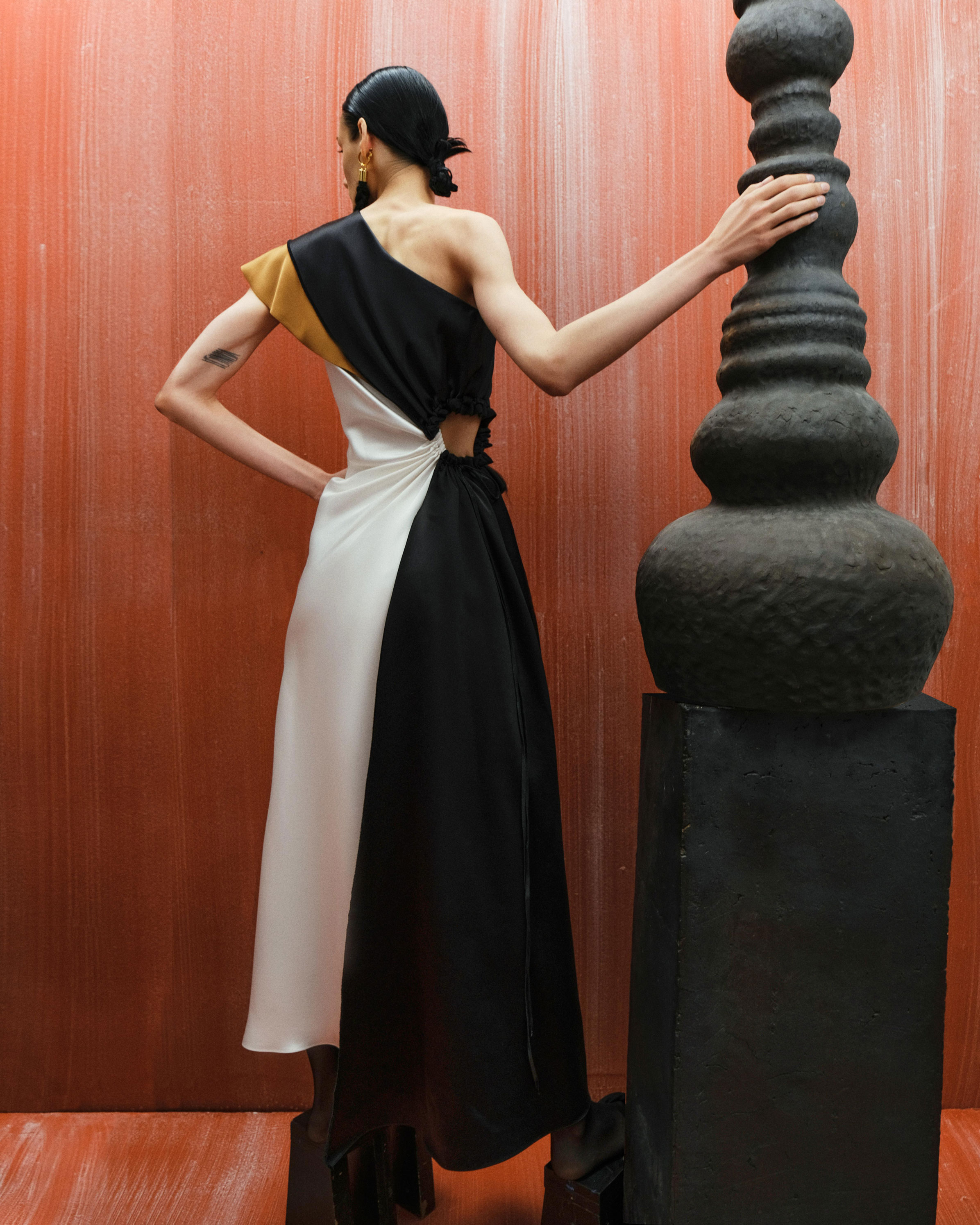 В рамках Недели моды в Париже была представлена весенняя коллекция Лилии Литковской. Дизайнера вдохновило творчество художника Кита Харинга, тема трансцендентного взаимообмена мужского и женского. Так, классические маскулинные рубашки превратились в лоскутные куртки, а знаковые для ДНК бренда костюмы "с мужского плеча" стали гендерно-нейтральными. Их, как и элегантные платья миди, украсили гиперболизированные люверсы-застежки. Солярные символы, отсылающие к солнцу и цикличному возобновлению жизни, то встречаются в перфорации, то угадываются в идеально скругленной линии плеч. Ключевым аксессуаром стали серьги и чокеры — косы, придающие каждому образу пограничное, почти матриархальное изящество. Орнамент из кос также увенчал белоснежную куртку.