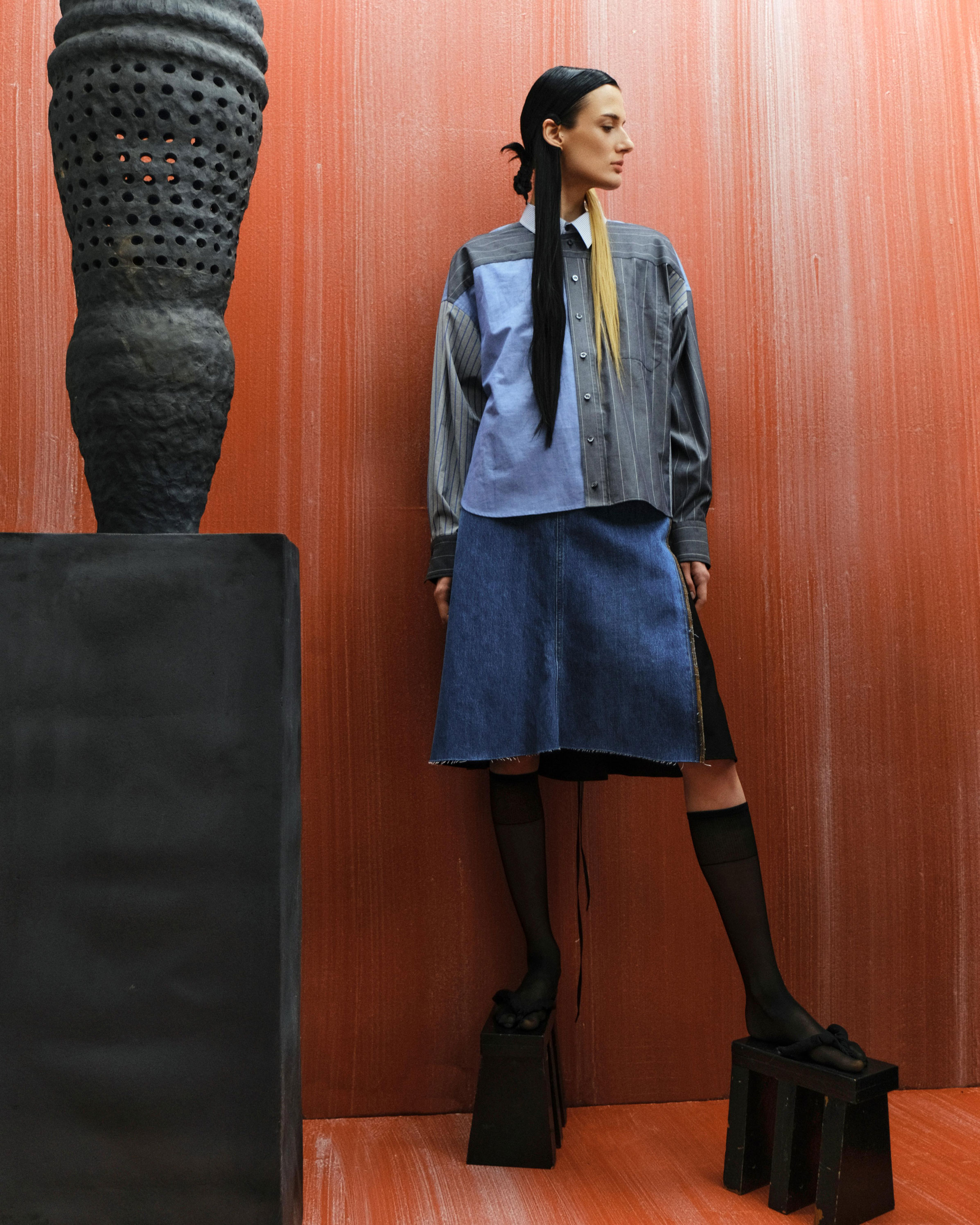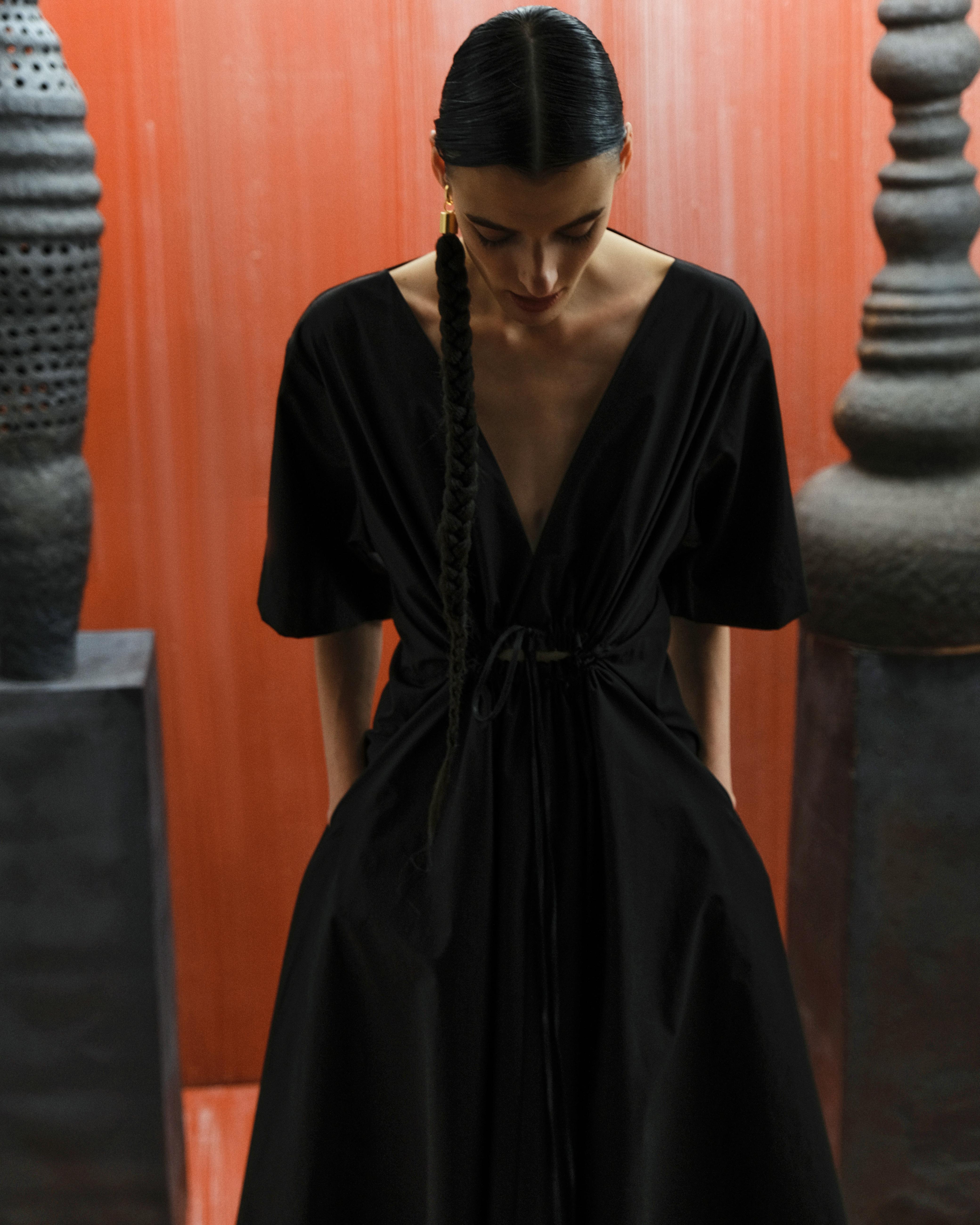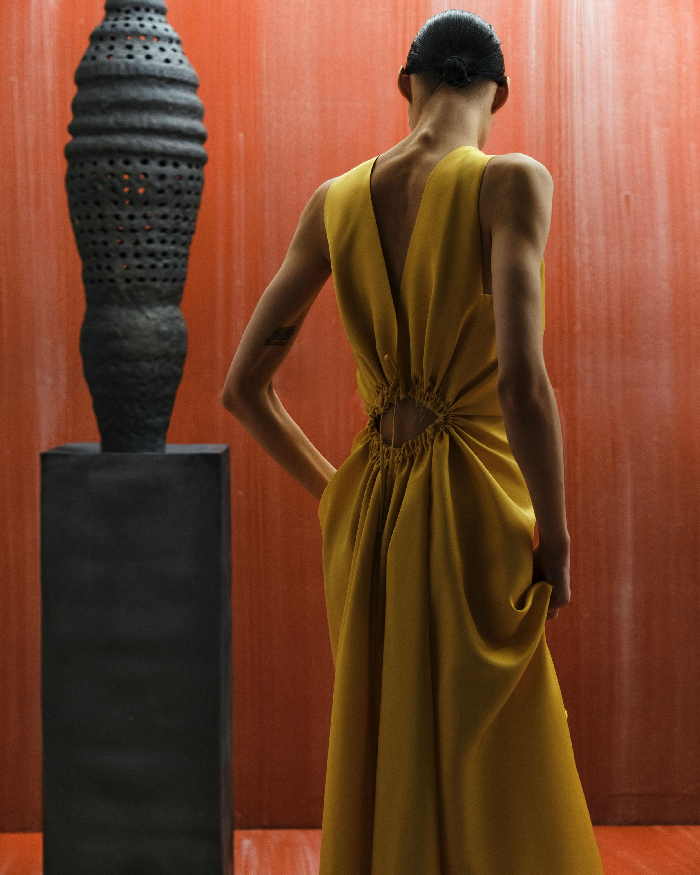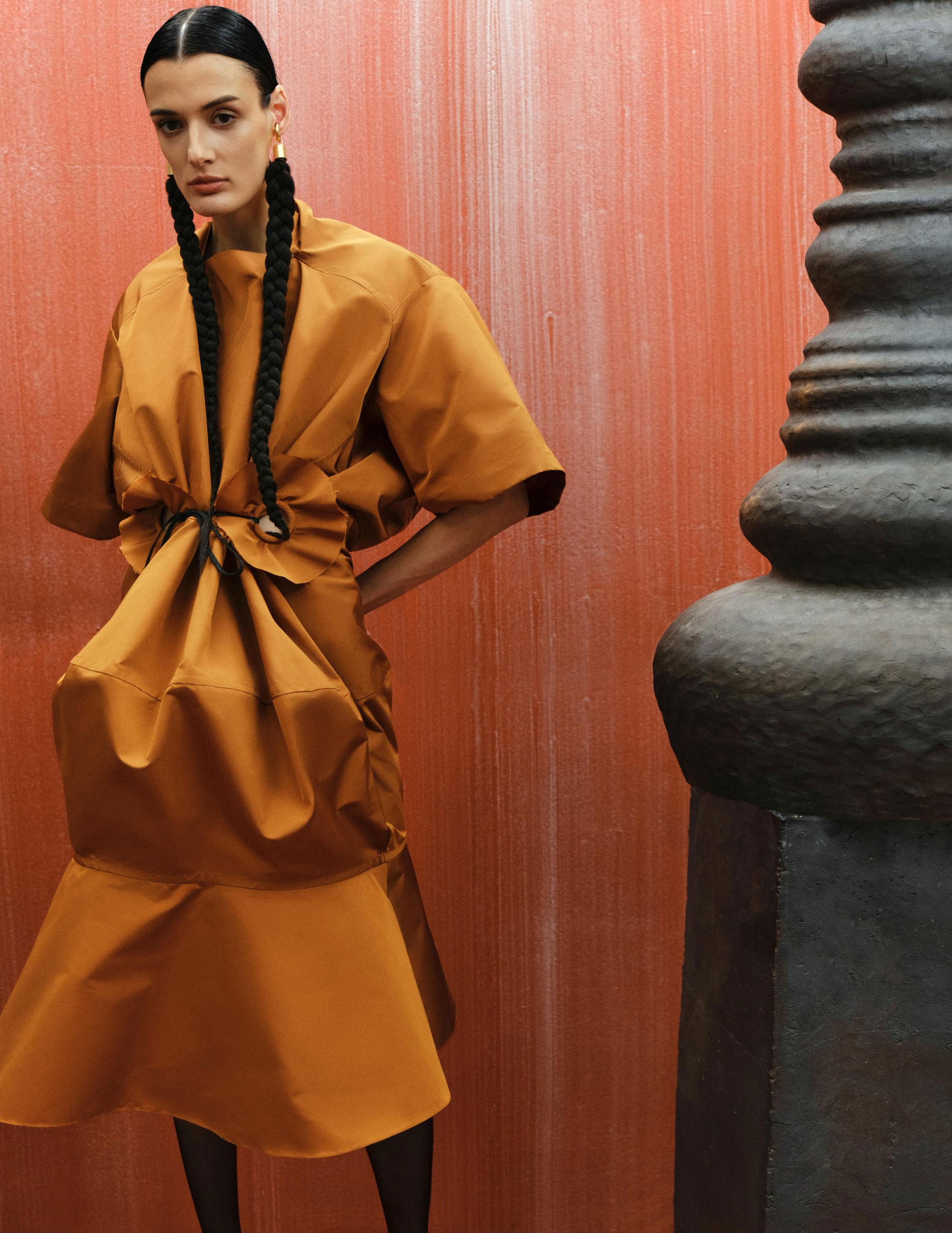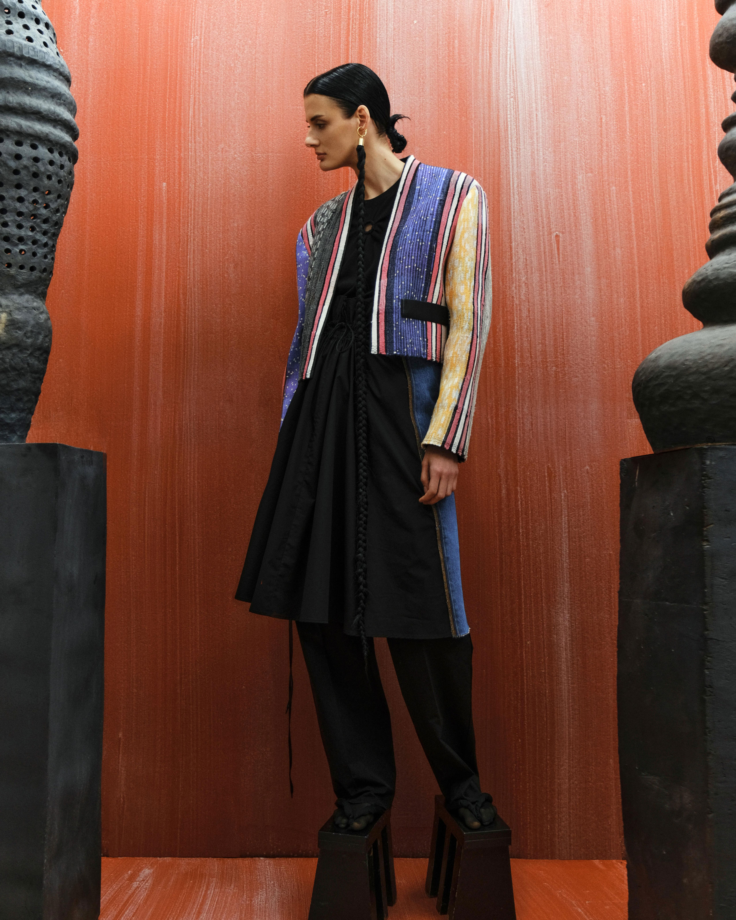 В рамках Недели моды в Париже была представлена весенняя коллекция Лилии Литковской. Дизайнера вдохновило творчество художника Кита Харинга, тема трансцендентного взаимообмена мужского и женского. Так, классические маскулинные рубашки превратились в лоскутные куртки, а знаковые для ДНК бренда костюмы "с мужского плеча" стали гендерно-нейтральными. Их, как и элегантные платья миди, украсили гиперболизированные люверсы-застежки. Солярные символы, отсылающие к солнцу и цикличному возобновлению жизни, то встречаются в перфорации, то угадываются в идеально скругленной линии плеч. Ключевым аксессуаром стали серьги и чокеры — косы, придающие каждому образу пограничное, почти матриархальное изящество. Орнамент из кос также увенчал белоснежную куртку.