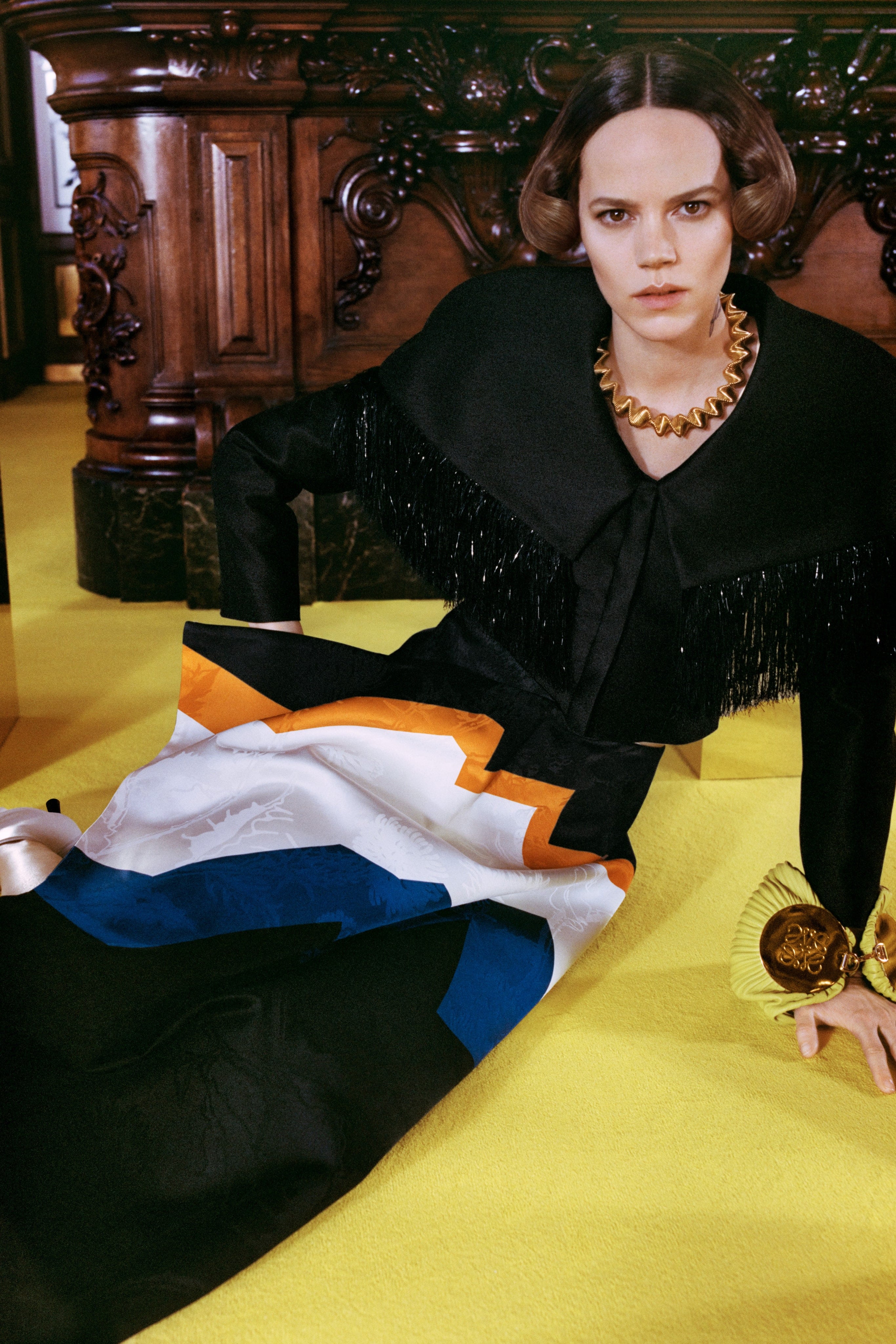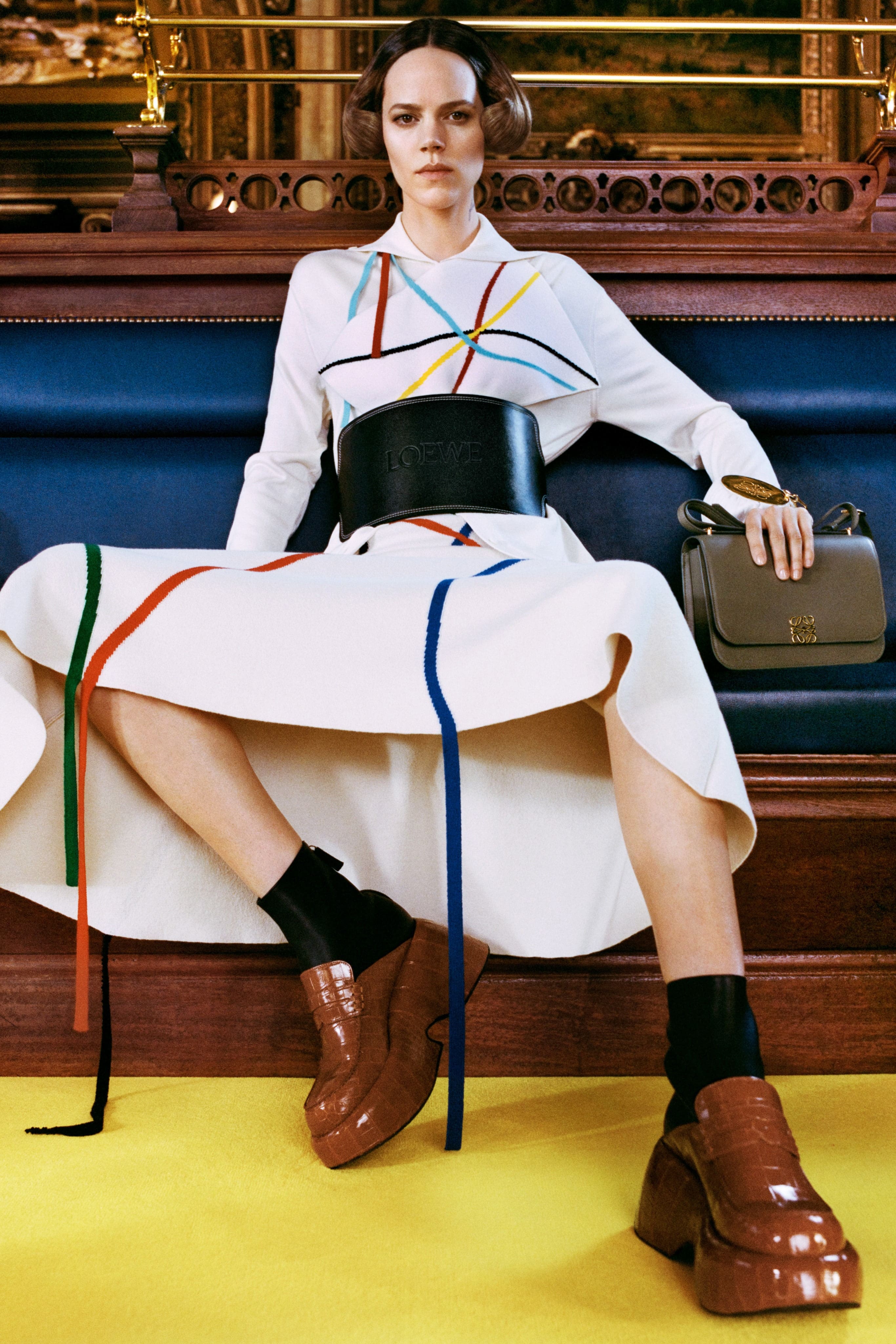 Джонатан Андерсон снова мастерски смешал в одном флаконе десятки стилей, референсов и ассоциаций. Фигурные ботильоны списаны с обуви придворных 18 века, укороченные жакеты с бахромой намекают на облачения испанских матадоров, а психоделические принты на асимметричных платьях, графичные наряды и пышные укладки транслируют эклектичный гламур 60-70-х годов. В этот пестрый, но неизменно гармоничный конструктор Андерсон вписал спортивные мотивы и деликатные прообразы европейской аристократии 19 — начала 20 века. Архитектурные трикотажные топы и платья, надетые вместе, драпированные демикутюрные вечерние наряды, безупречные брючные костюмы с рубашками — каждую вещь осенней коллекции хочется непременно надеть и отправиться на сцену театра. Образы, созданные дизайнером, напоминают о фильмах Ингмара Бергмана, где роскошные наряды героинь, по последней моде тех времен, всегда дополняли строгие укладки.