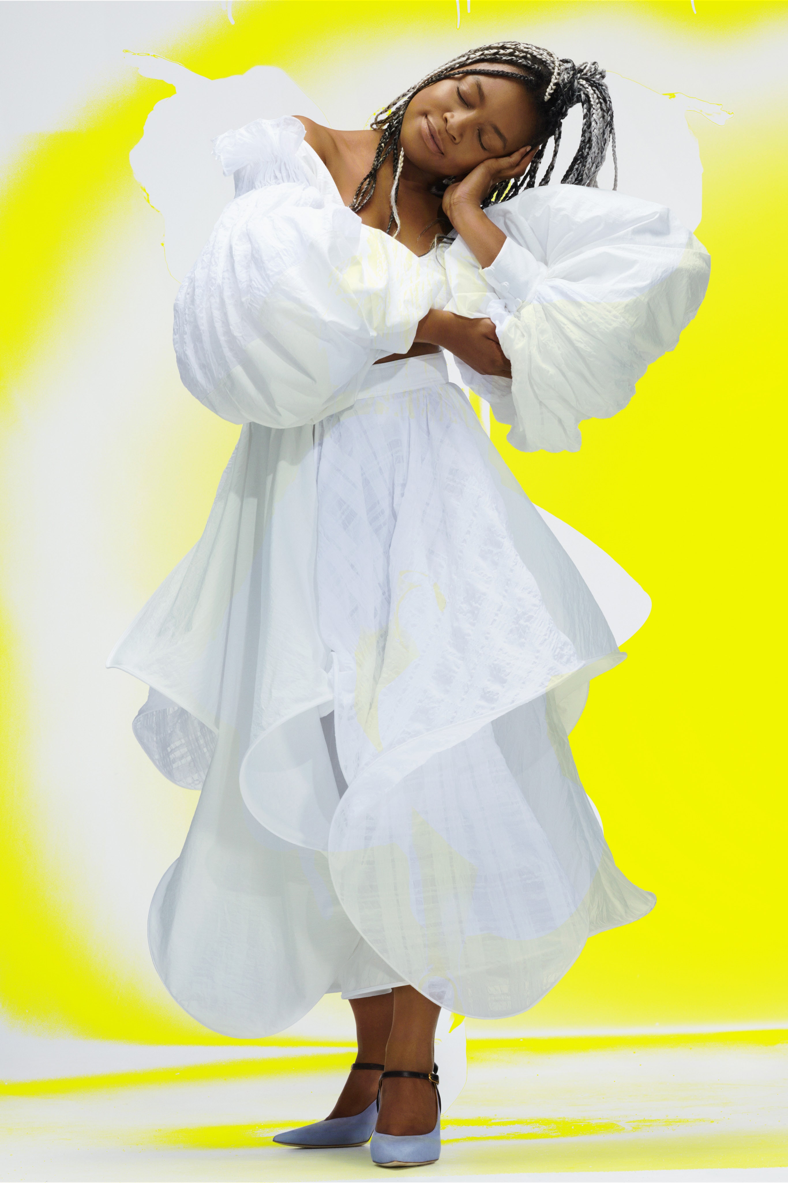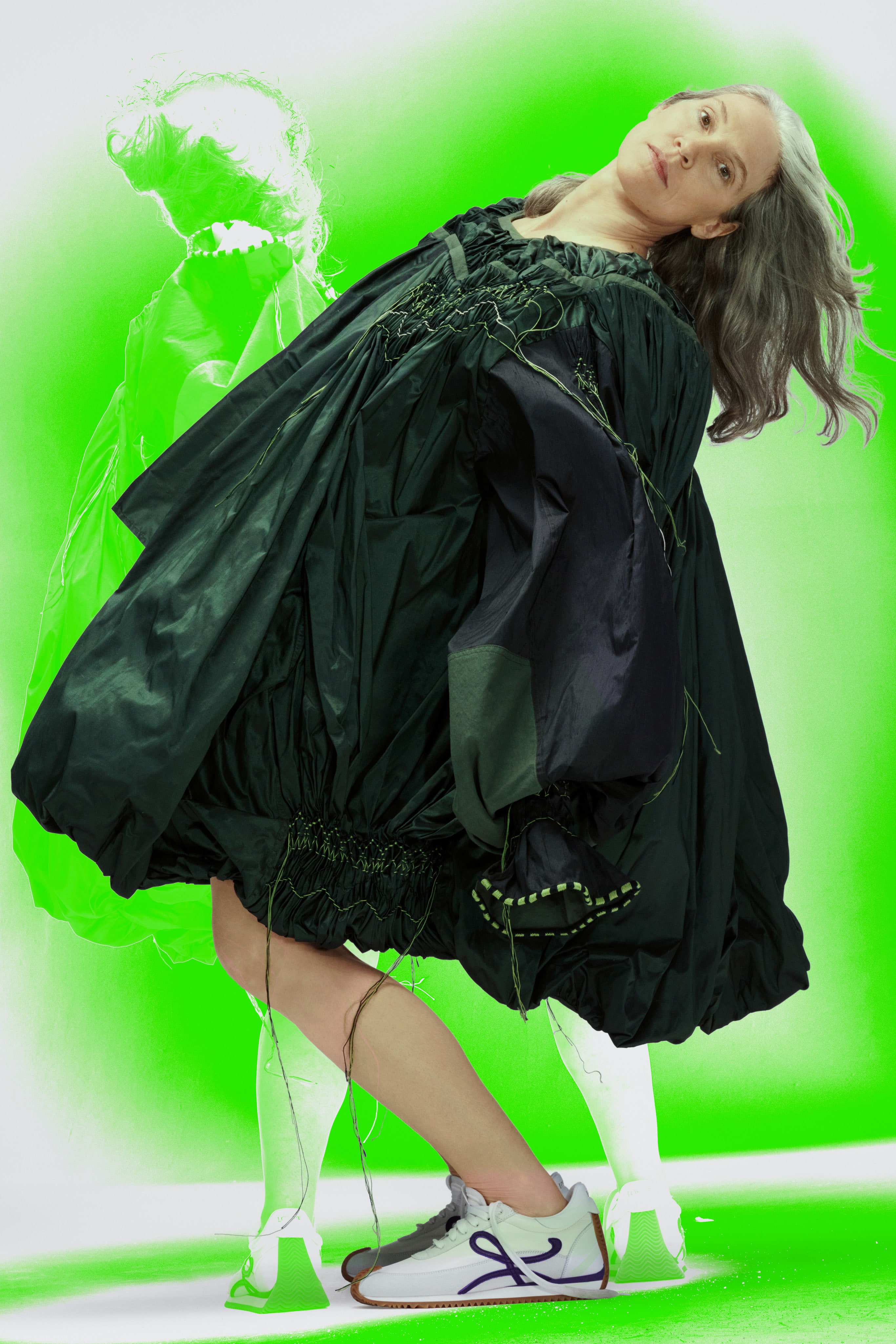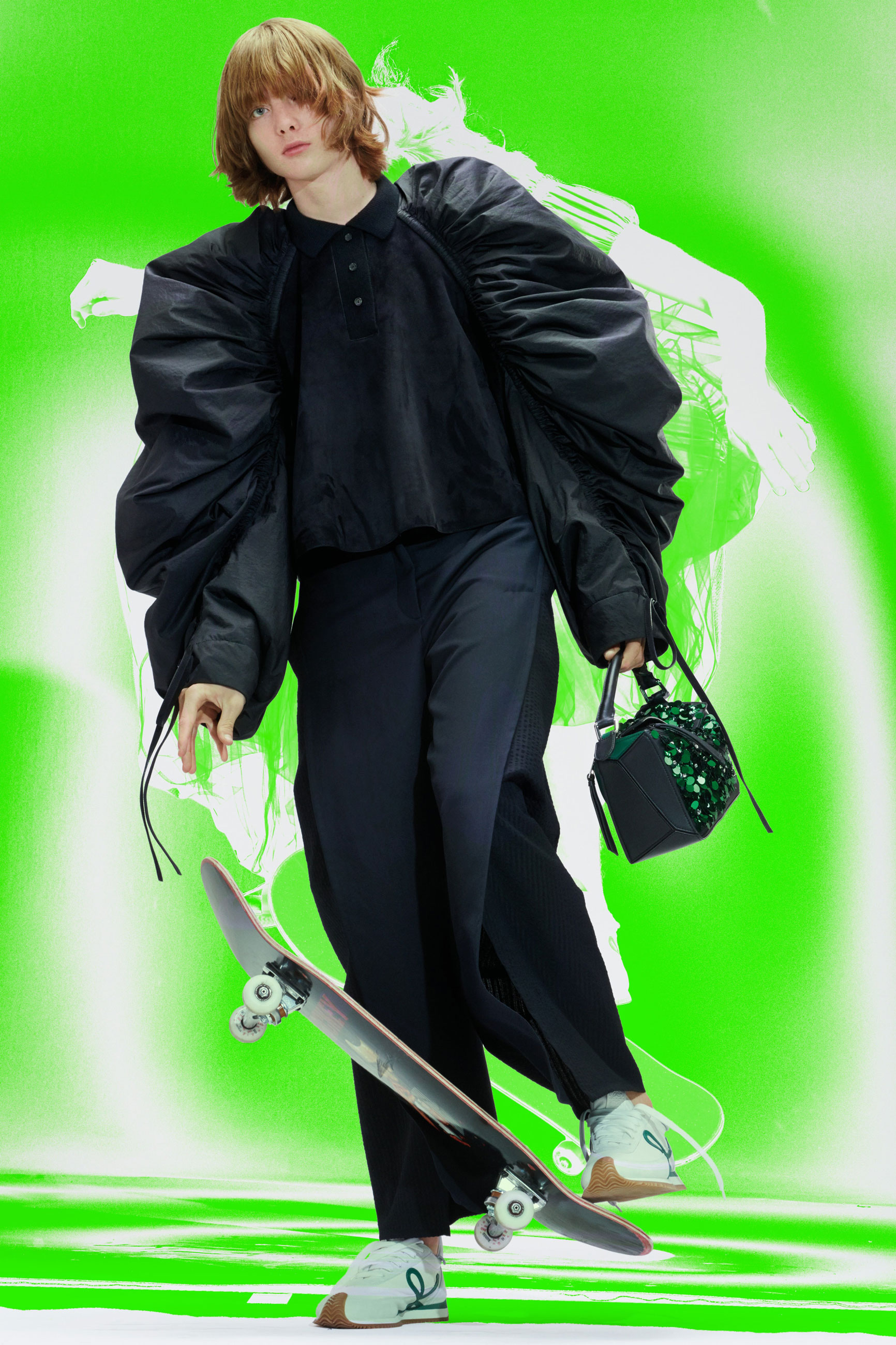 В новой коллекции Джонатана Андерсона для Loewe разные платья соединены в одно узлами, поверх драпированного мини расположился прозрачный кринолин из фатина, а у рубашки поло рукава как в лучших нарядах героинь сериала "Династия". Нарочито кукольные платья из шитого кружева дополнены маленькими сумочками, что вполне очевидно, зато элегантные пальто и вечерние наряды сплошь "раздуты" гиперобъемными буфами и плиссировками и представляют собой нечто среднее между сценическими костюмами балета Оскара Шлеммера и модной выходкой. От этого весенняя коллекция только интереснее.