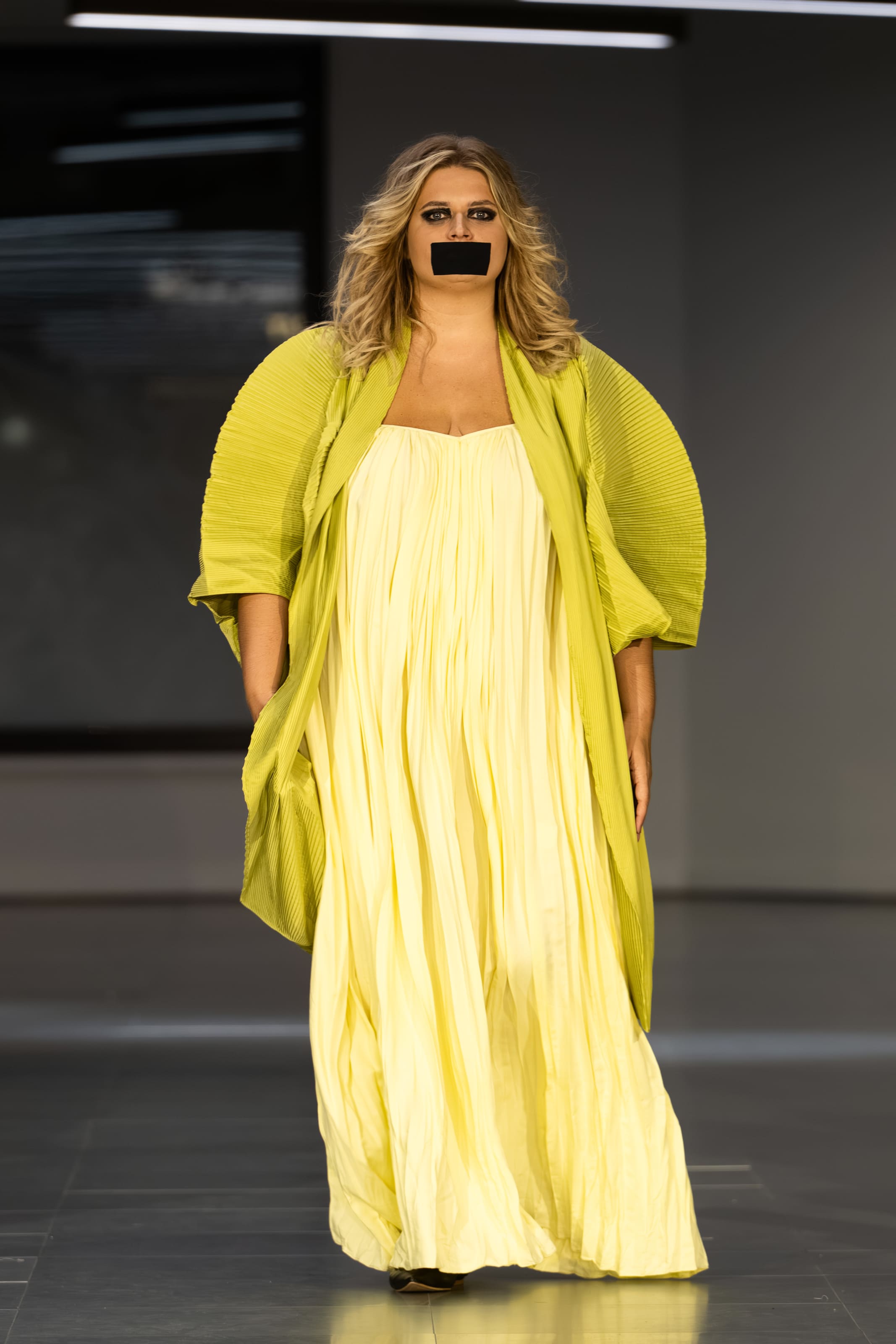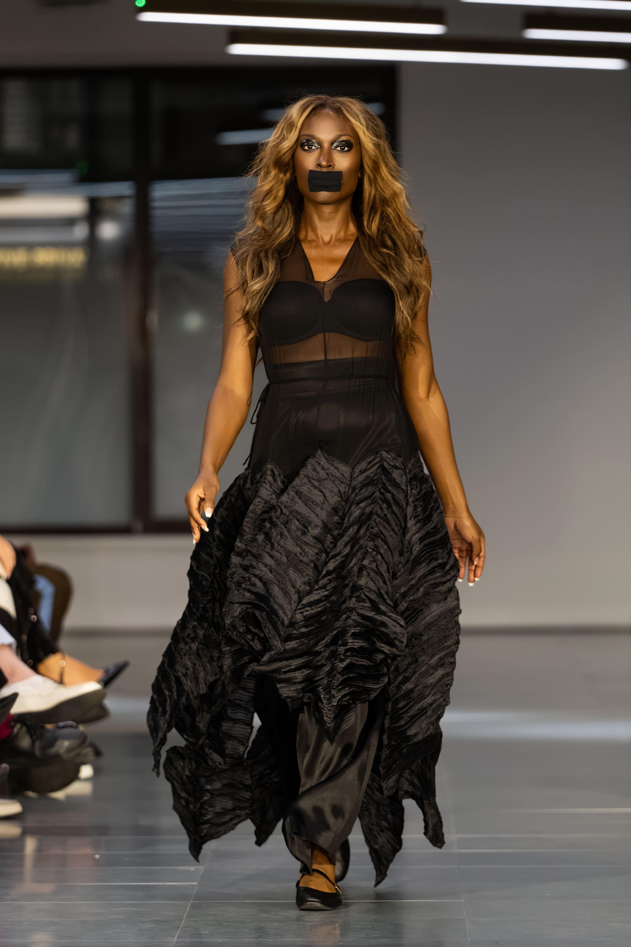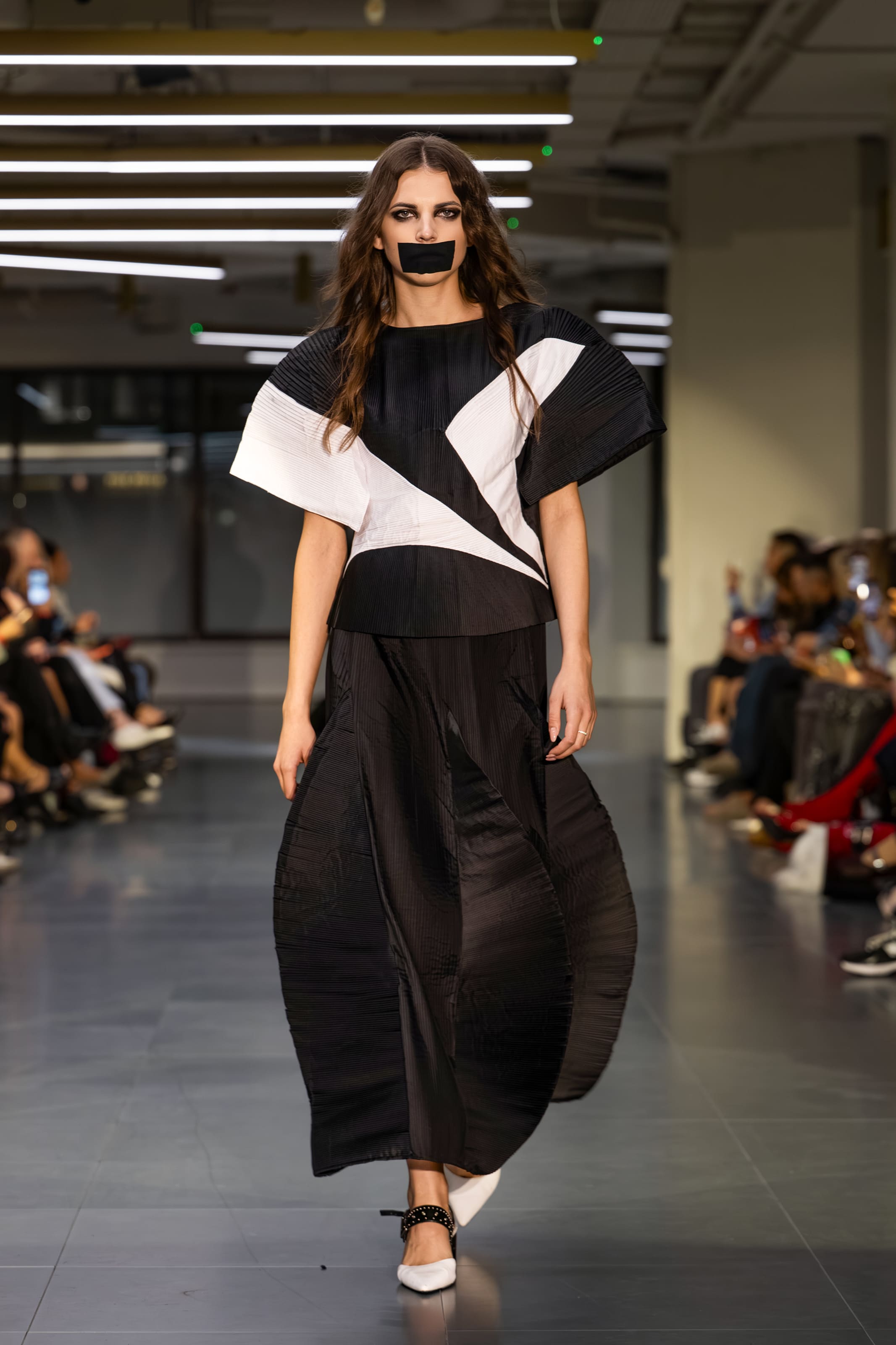 Поки війна в Україні зникає з заголовків, але не з реальності, TAMAR KEBURIA повертається на подіум London Fashion Week з колекцією «ЗАМОВЧАНА» — потужною відповіддю на зростаючу байдужість світу. Окрім знакових для бренду архітектурних образів на подіумі моделі демонстрували своєрідний перформанс, дефілюючи з чорною стрічкою на вустах.