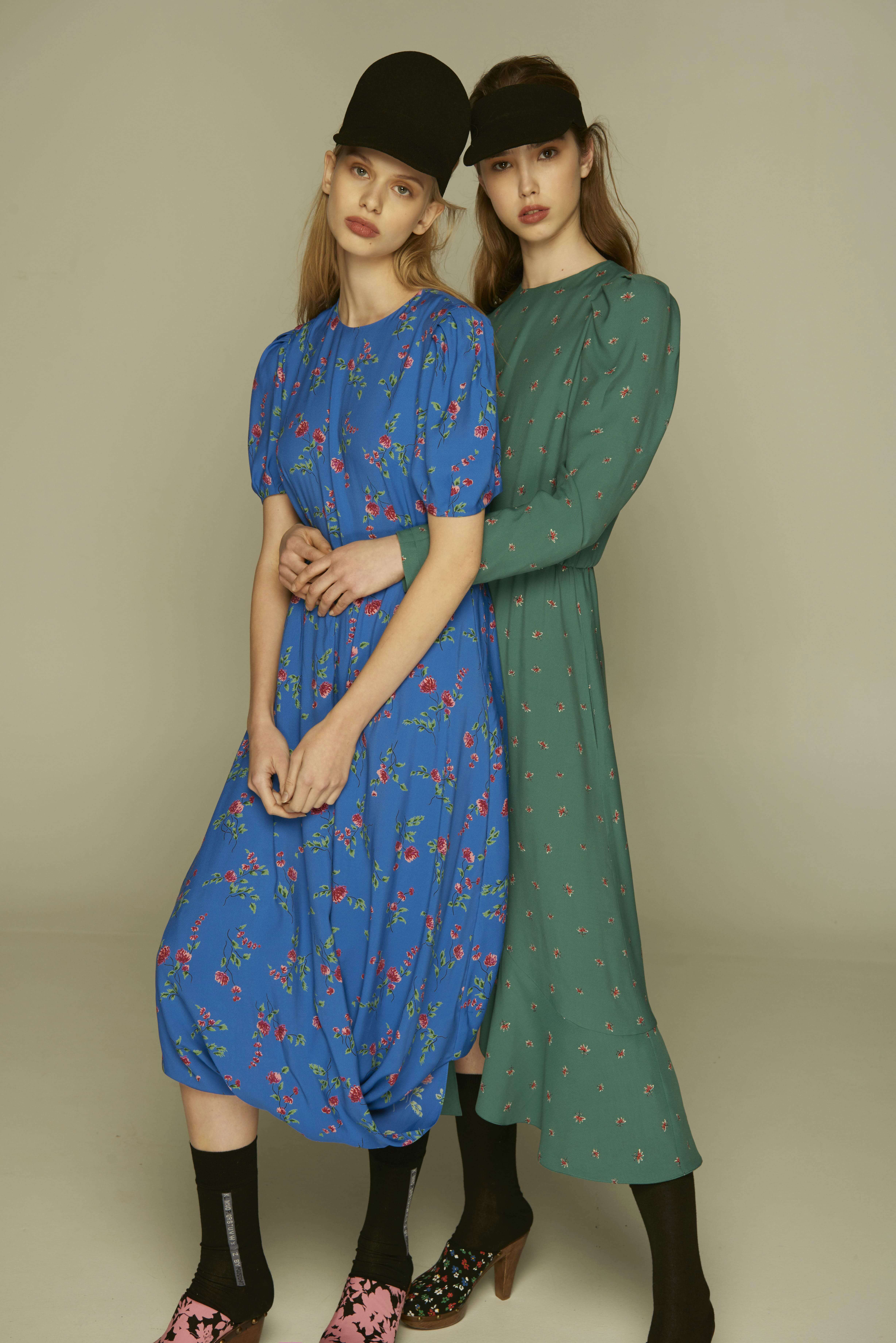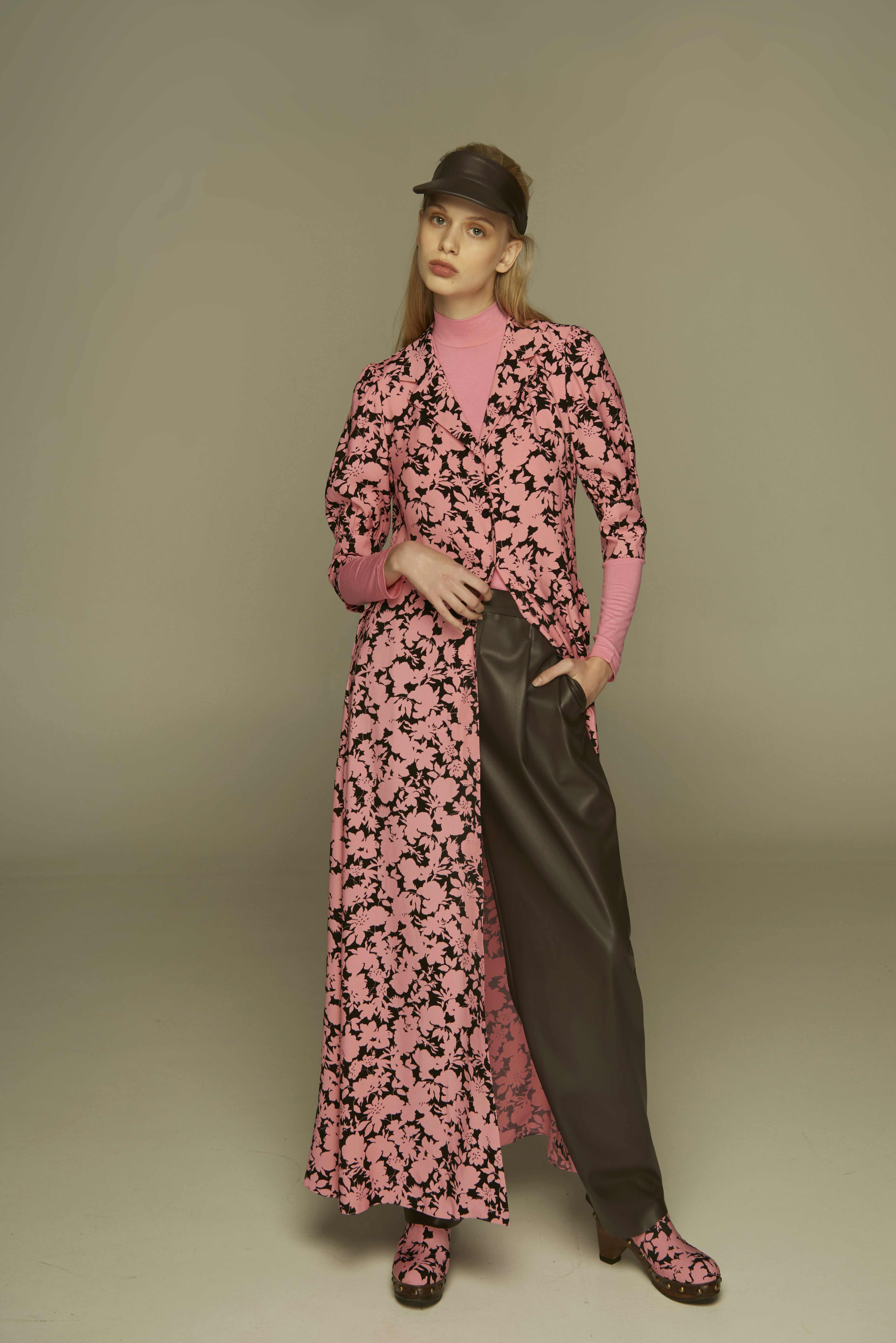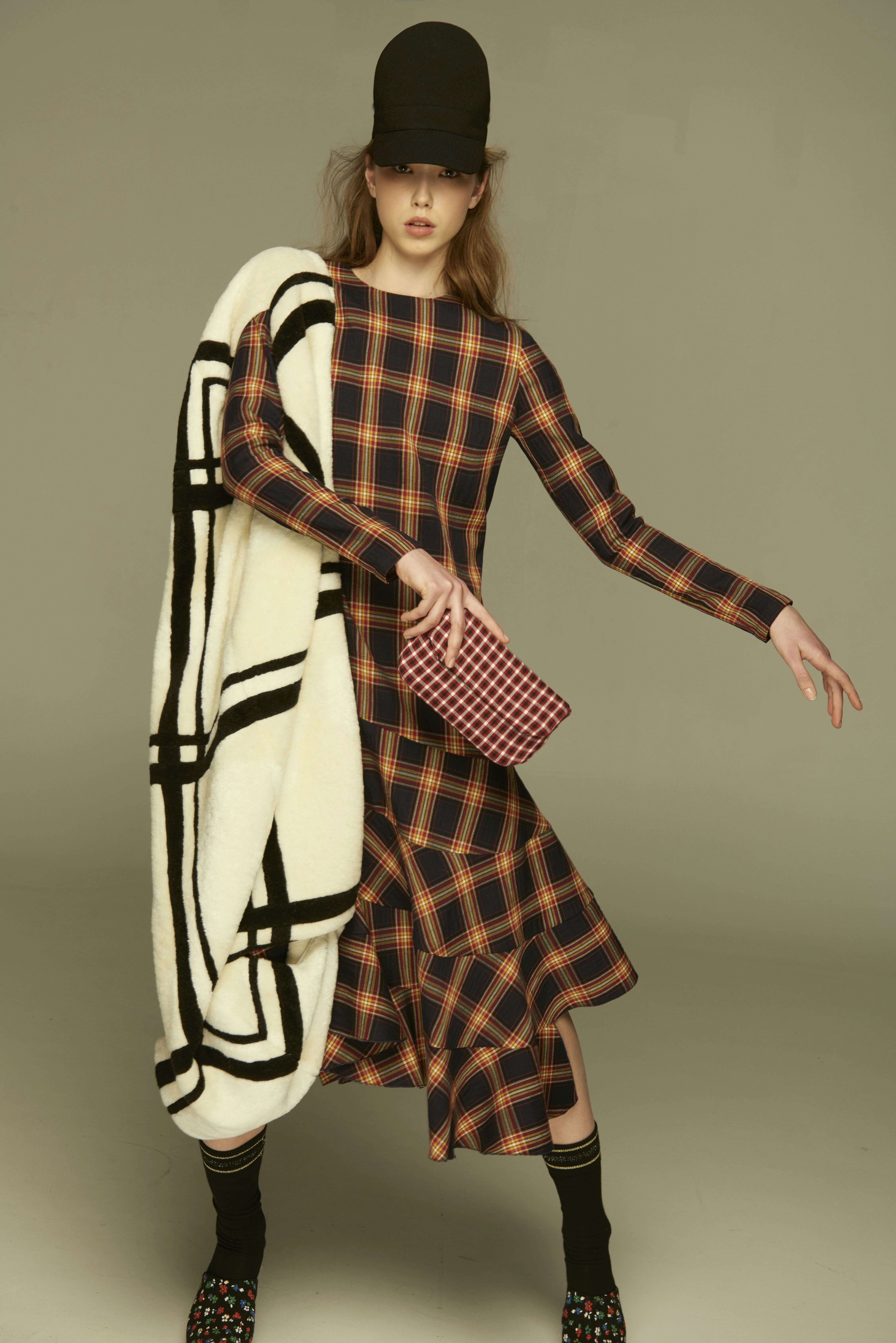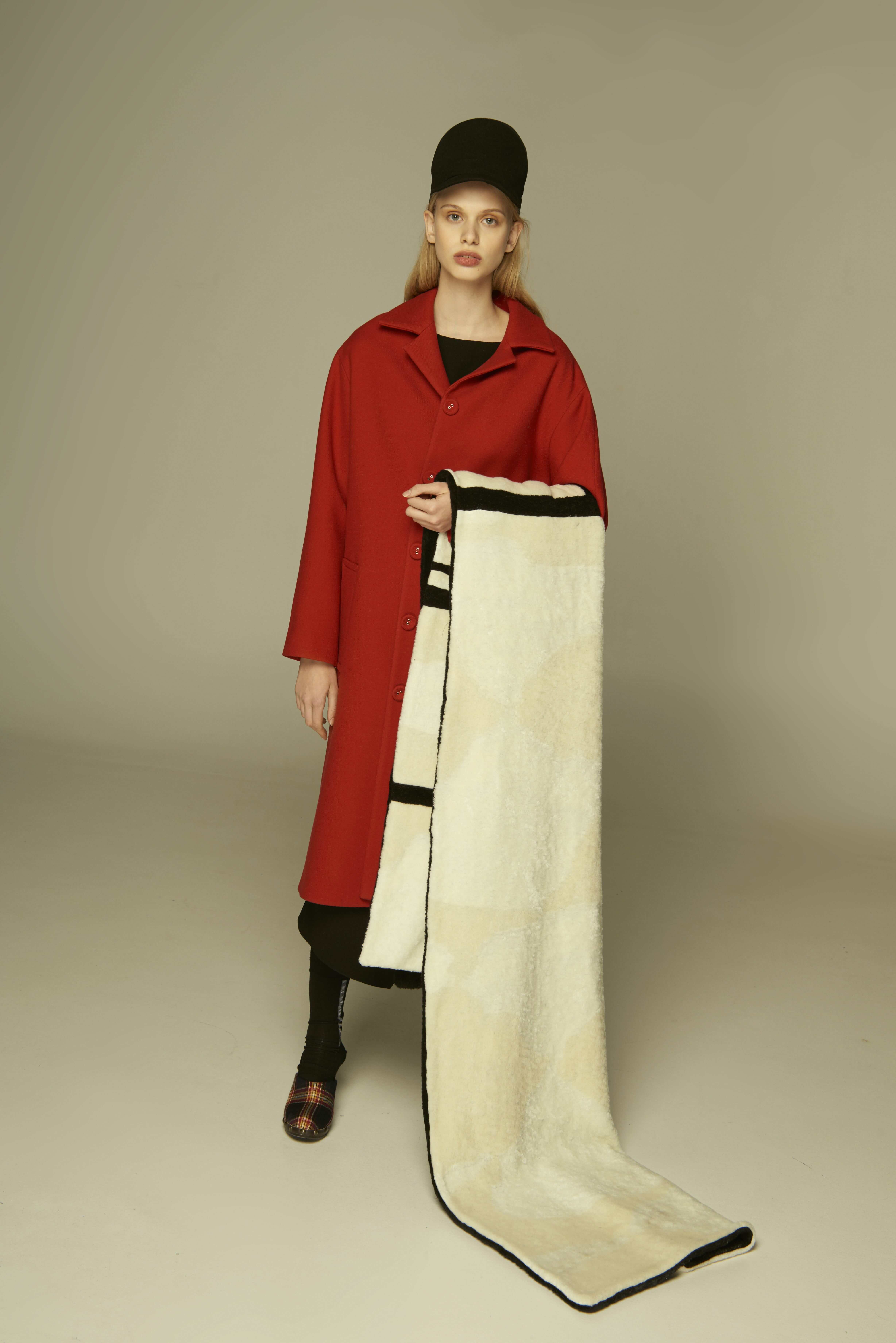 В коллекции присутствуют элегантные и уютные пальто, нежные платья, необычных форм головные уборы. Сочетания цветочных принтов с размытой клеткой, вкрапления ярких оттенков розового или нежно-голубого эффектно аккомпанируют объёмным конструкциям вещей, многослойности и разнообразию фактур.