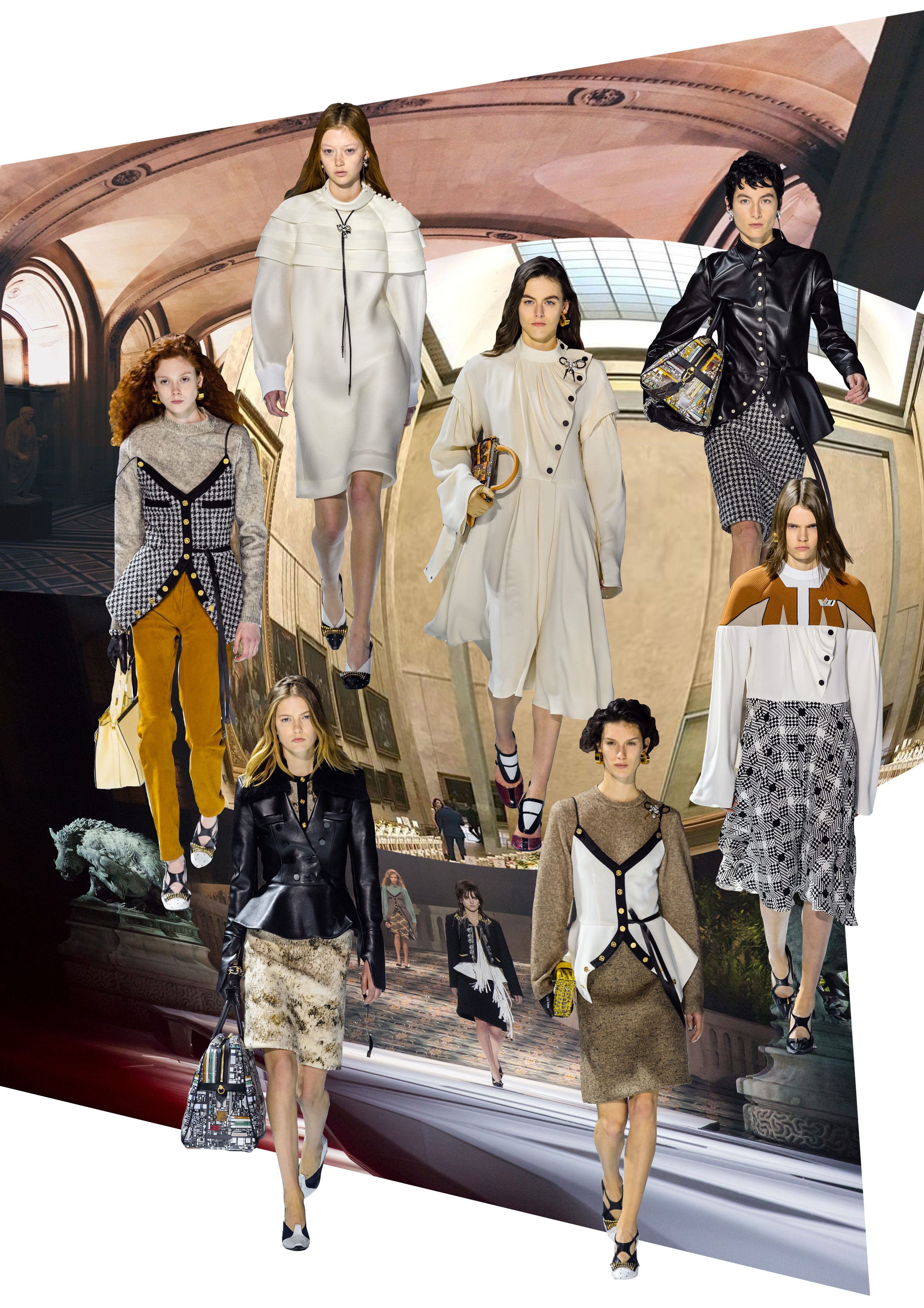Накануне вся модная публика собралась на заднем дворе парижского Лувра, чтобы посмотреть на новое шоу Louis Vuitton. Модели прогуливались по закрытому пассажу, который был построен по приказу Наполеона III ради пышных приемов, проходя мимо гигантских статуй диких кабанов. К слову, никто, кроме рабочих, больше не сможет сюда попасть в ближайшие три года — двор закрывается на реконструкцию.