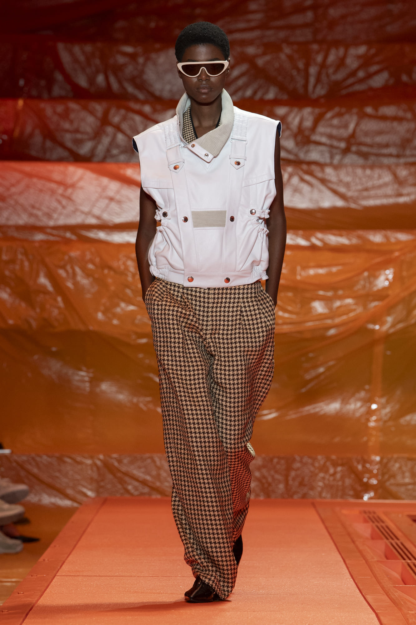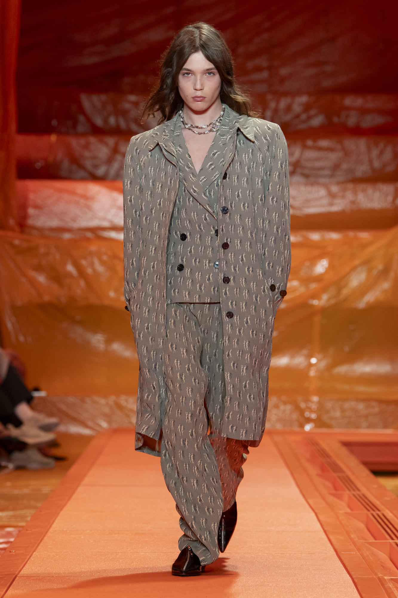 Оранжева повітряна куля всередині та зовні — такою була локація нового показу Louis Vuitton, створена в колаборації з Джеймсом Чінландом. Ця будівля на Єлисейських полях, в якій пройшла Всесвітня виставка 1900 року, невдовзі стане ще одним простором бренду. «У часовому плані це узгоджено з історією Louis Vuitton», — сказав дизайнер Ніколя Гескьєр.